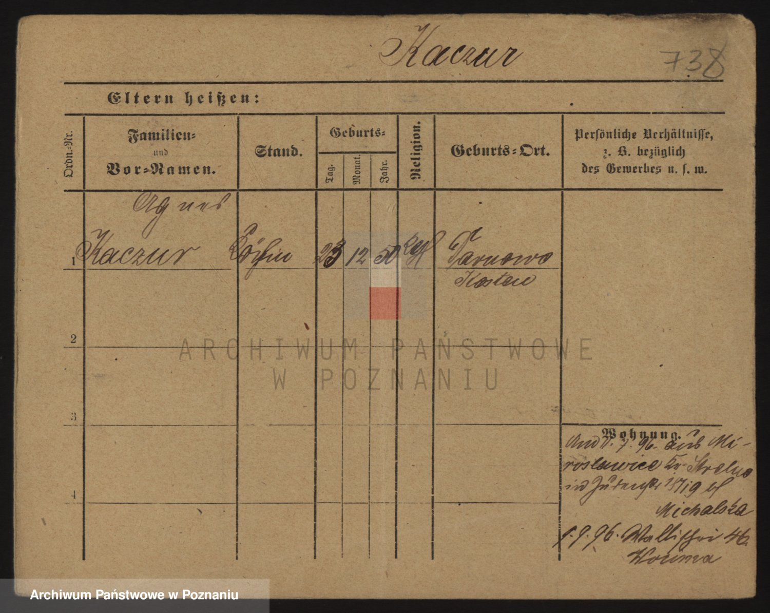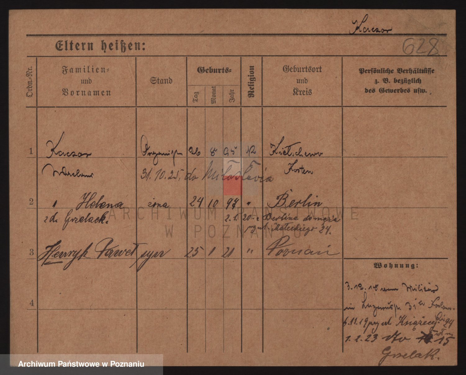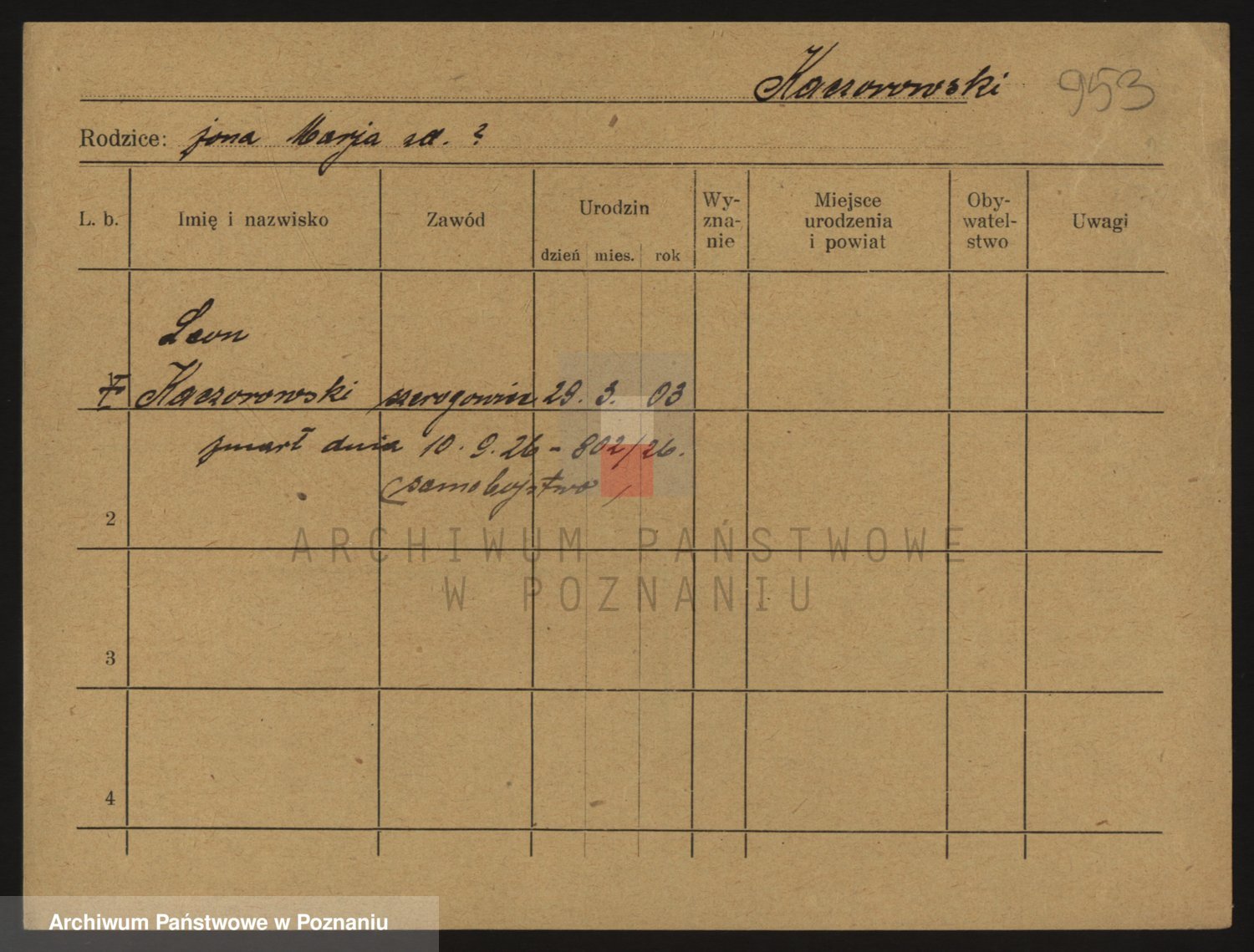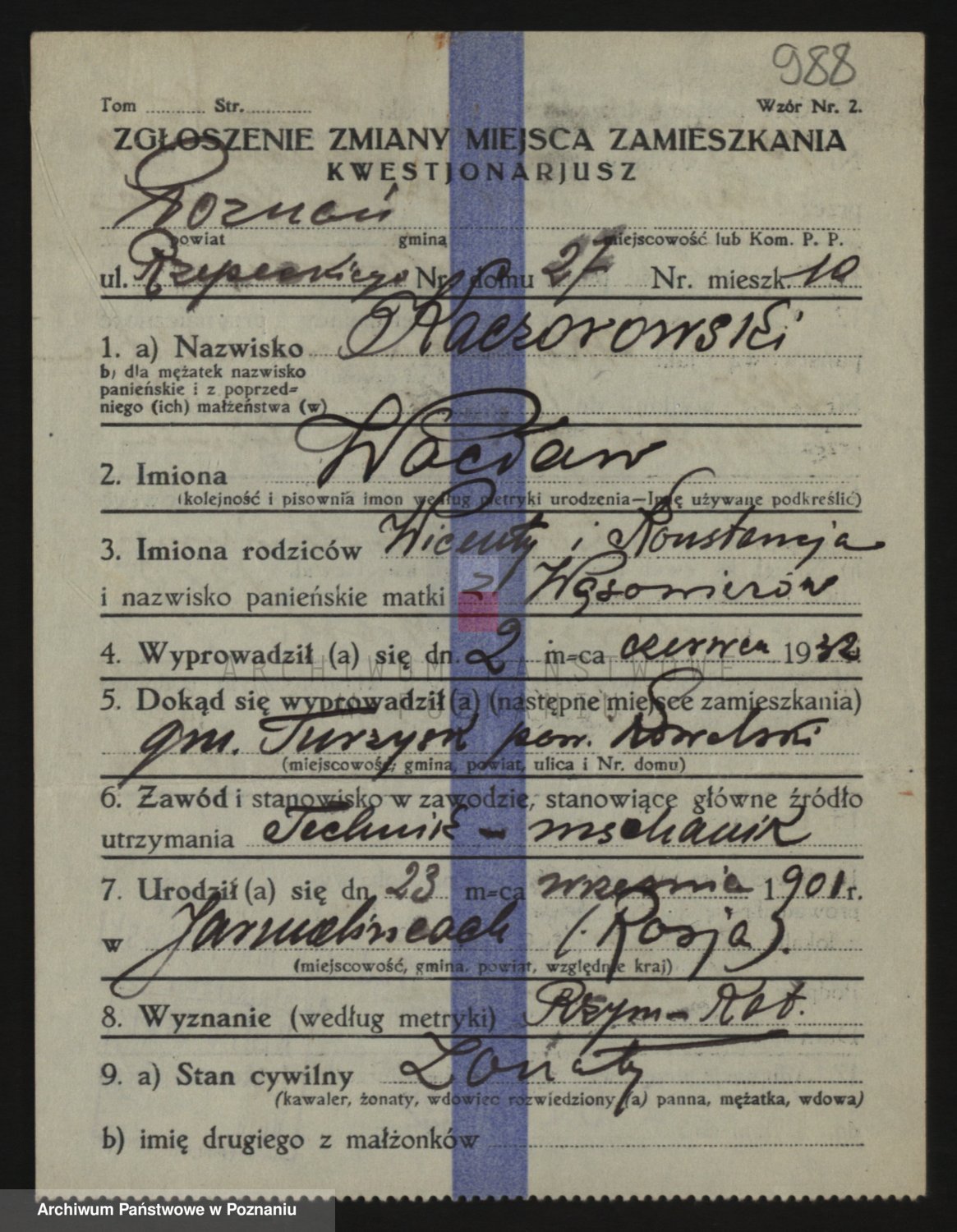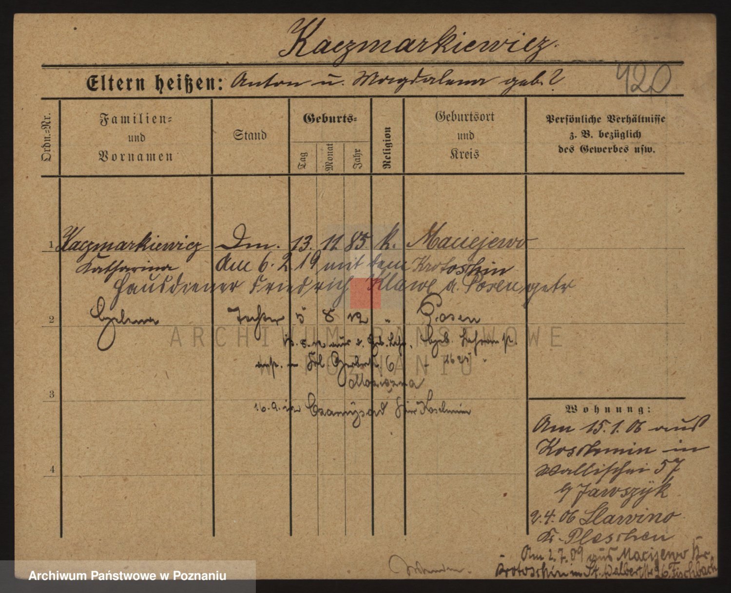 Podgląd karty osobowej dostępny jest po kliknięciu na nazwisko lub ikonkę karty. Można dokonywać powiększenia (ikony na górze) lub przechodzić między kolejnymi skanami (strzałki po bokach).