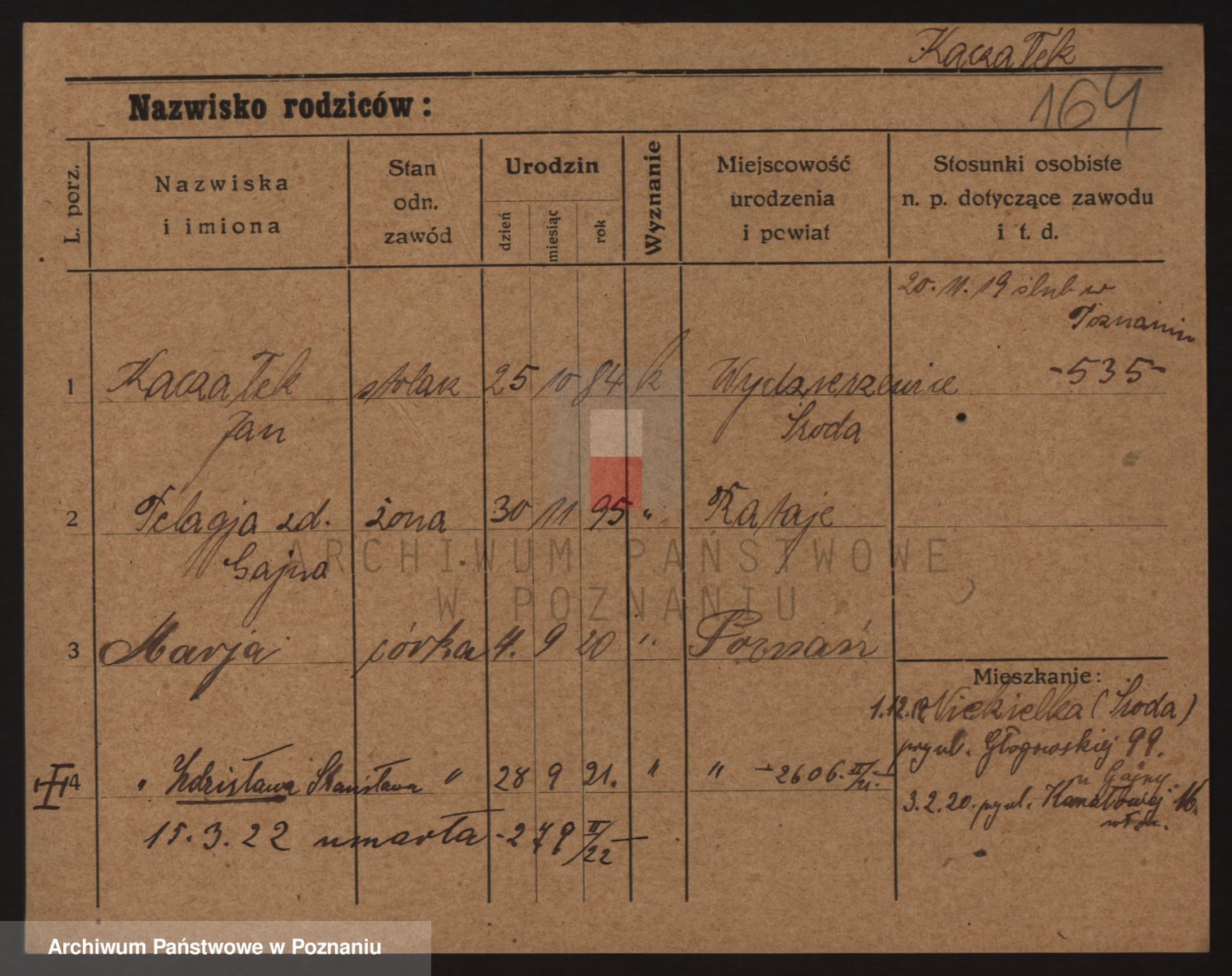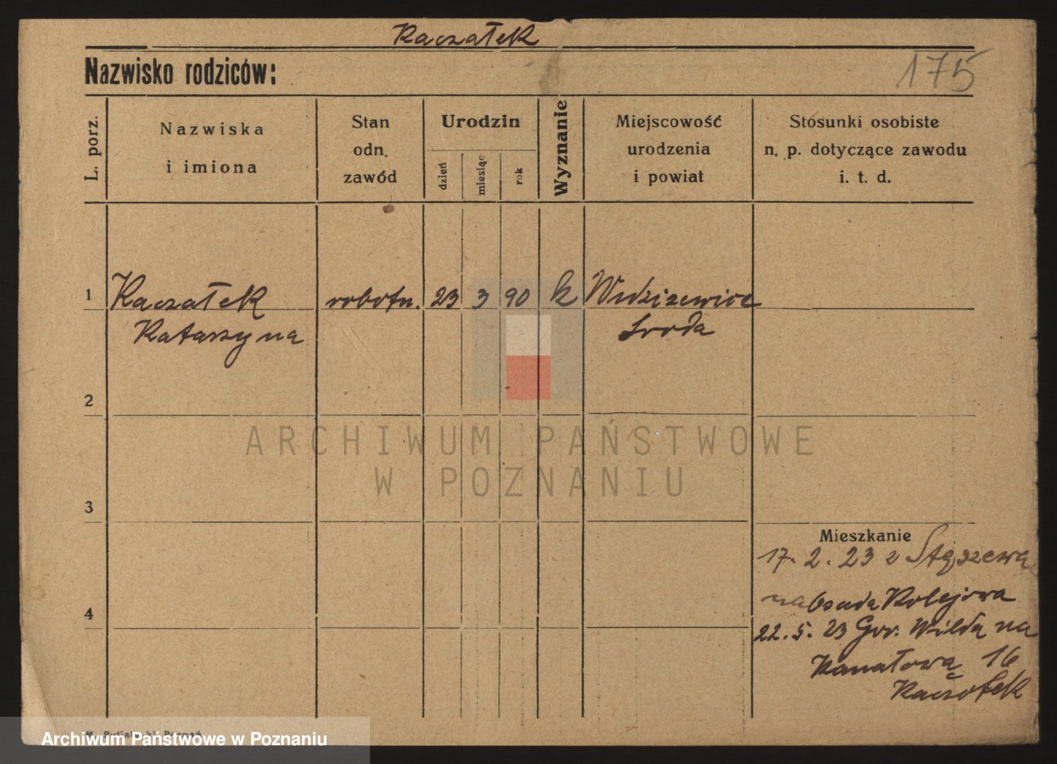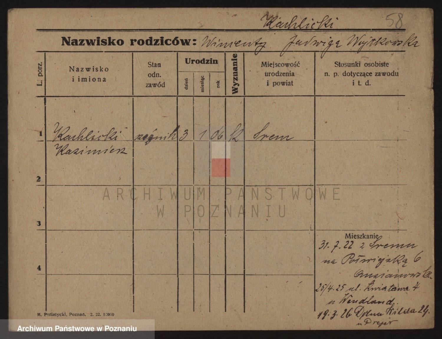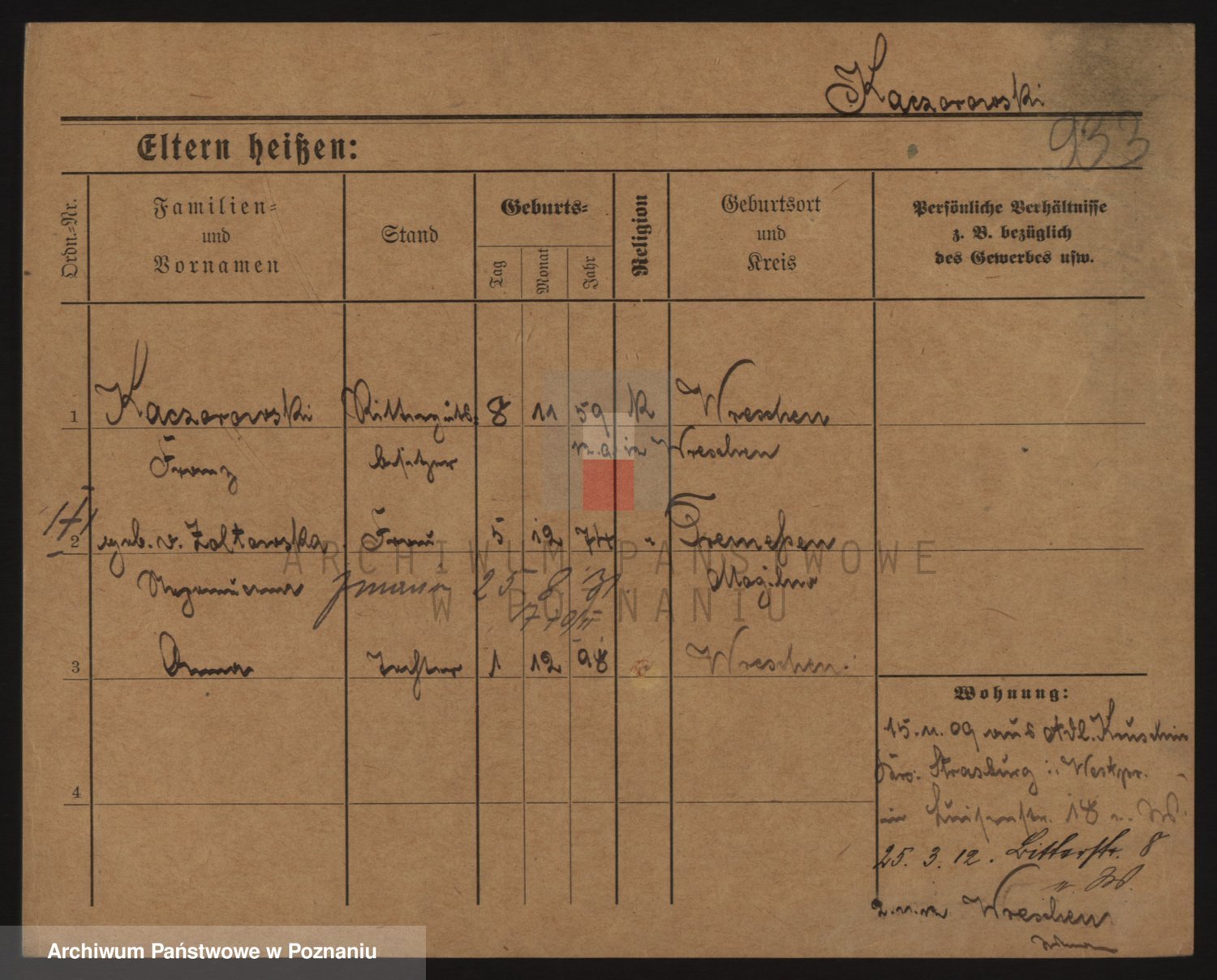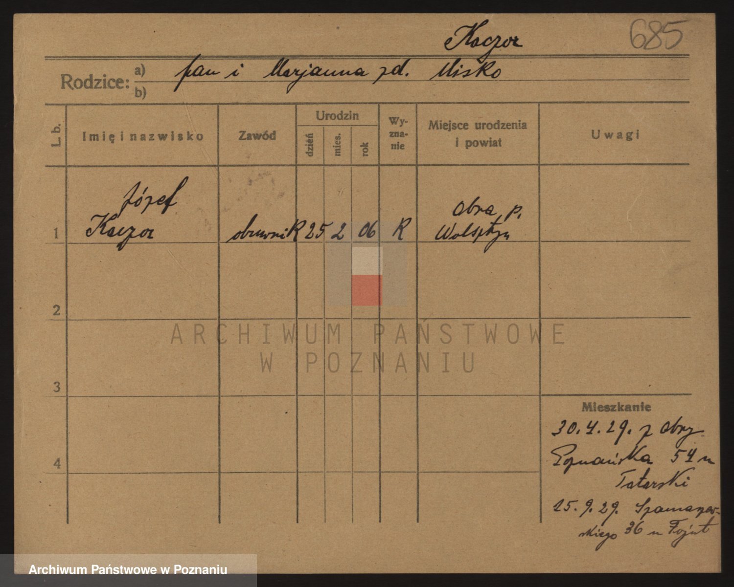 Podgląd karty osobowej dostępny jest po kliknięciu na nazwisko lub ikonkę karty. Można dokonywać powiększenia (ikony na górze) lub przechodzić między kolejnymi skanami (strzałki po bokach).