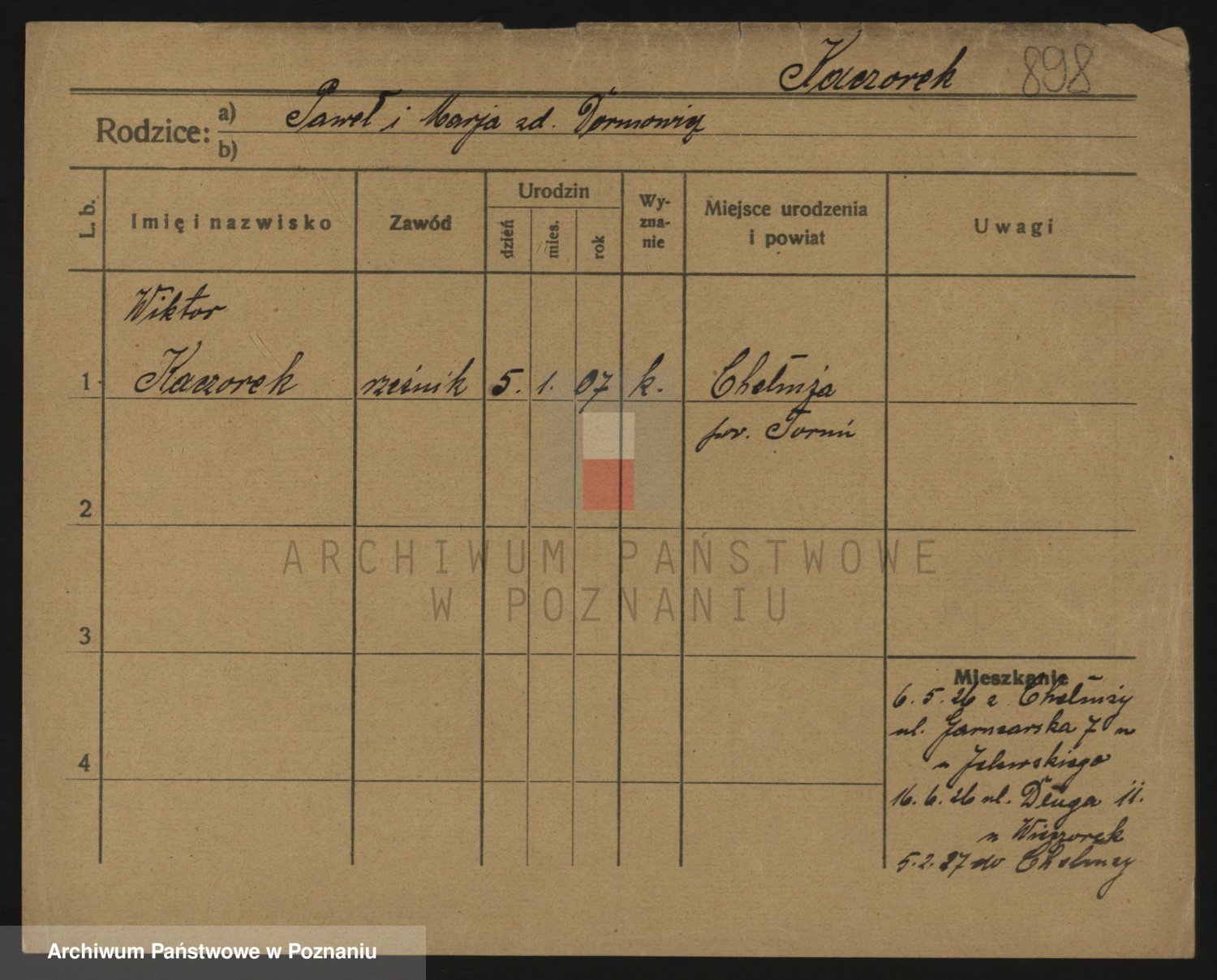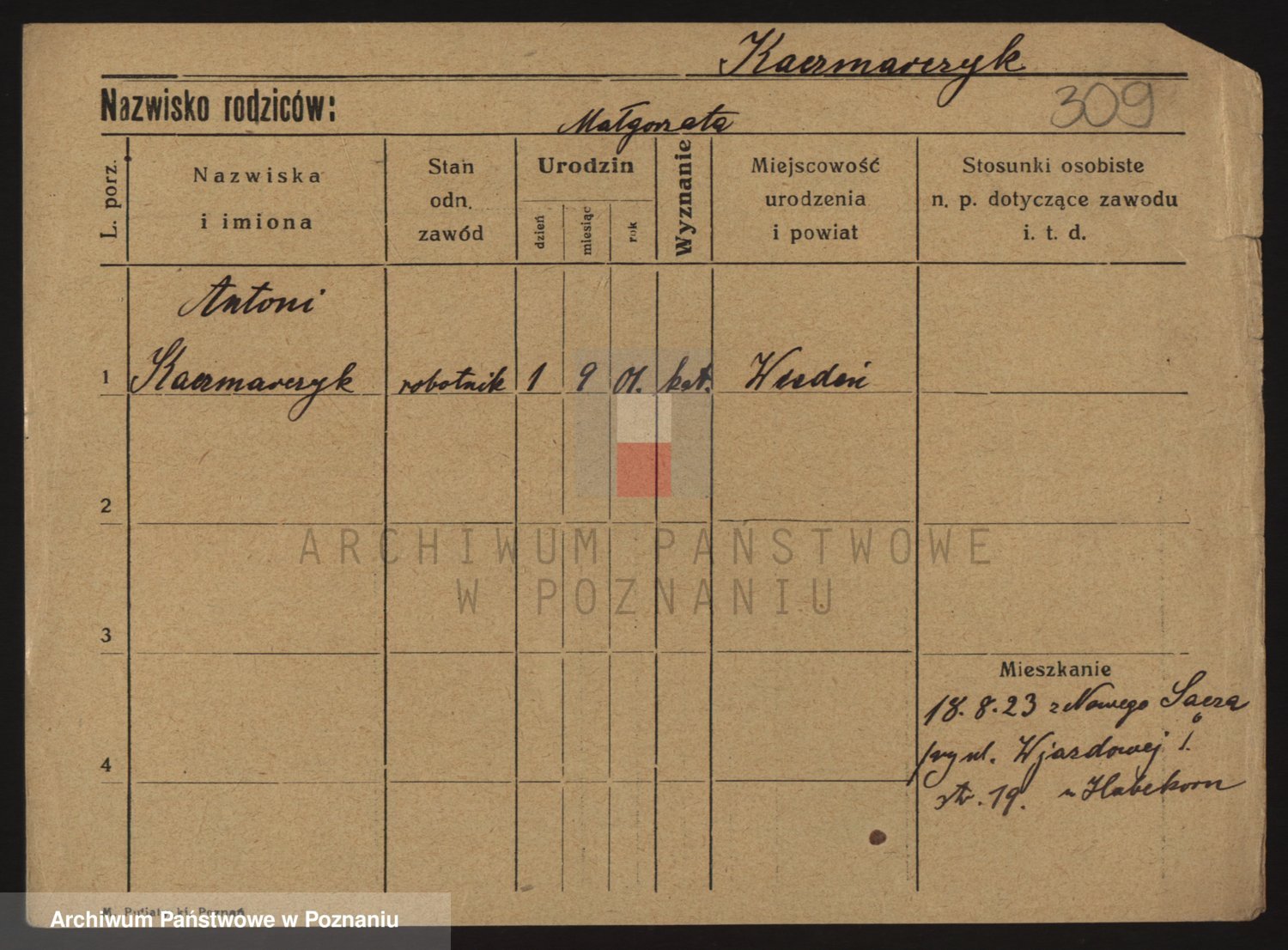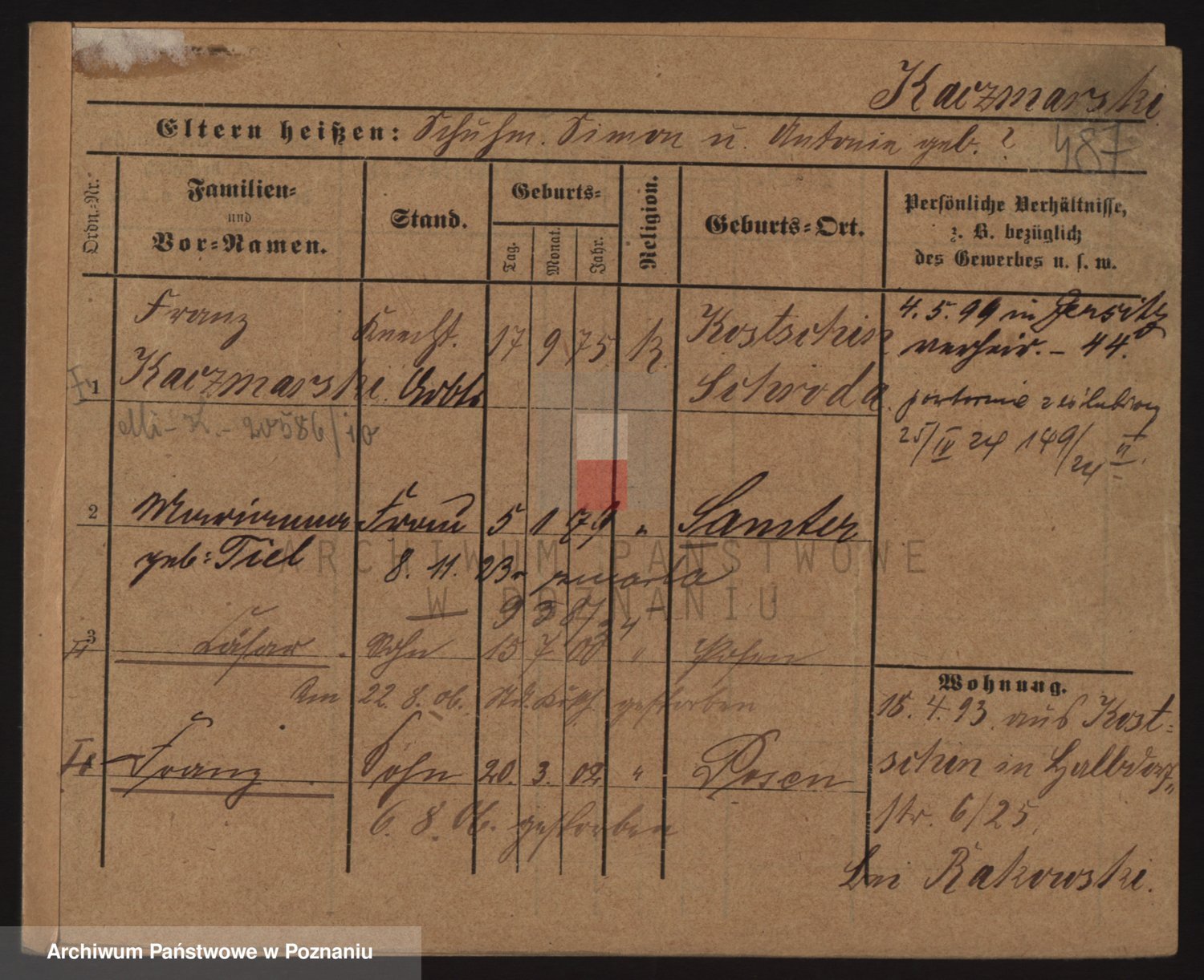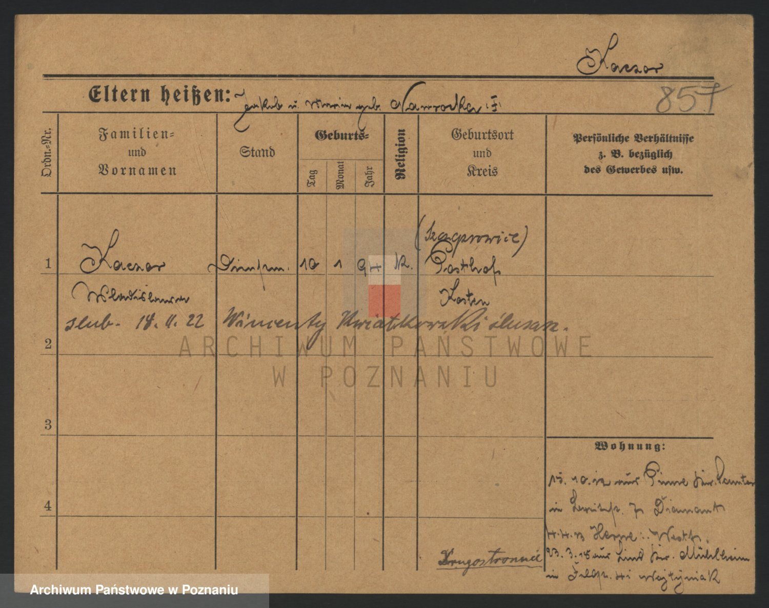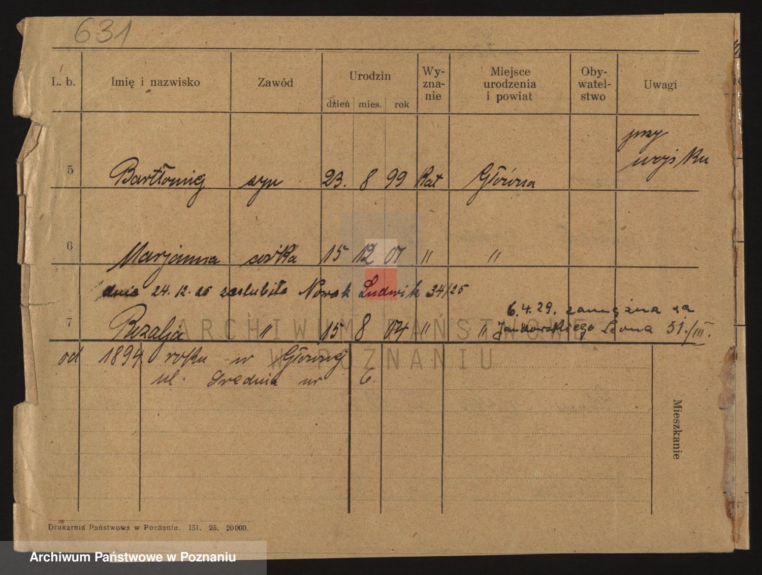 Podgląd karty osobowej dostępny jest po kliknięciu na nazwisko lub ikonkę karty. Można dokonywać powiększenia (ikony na górze) lub przechodzić między kolejnymi skanami (strzałki po bokach).