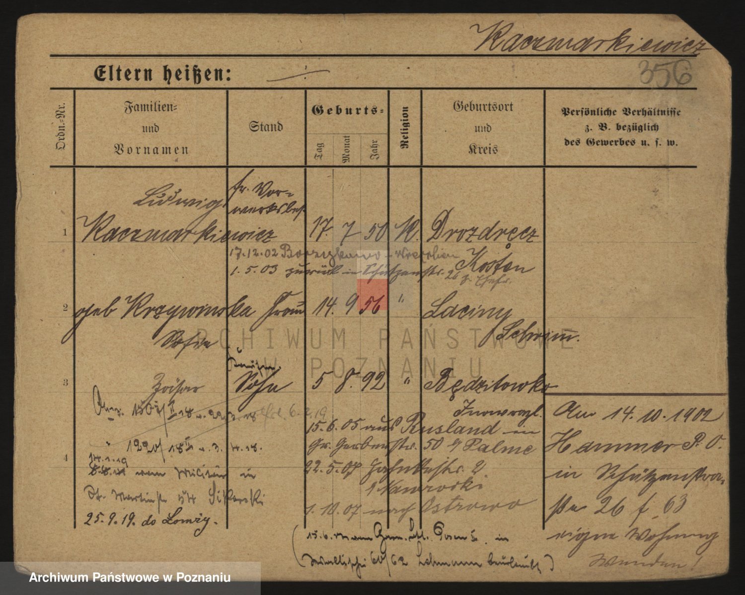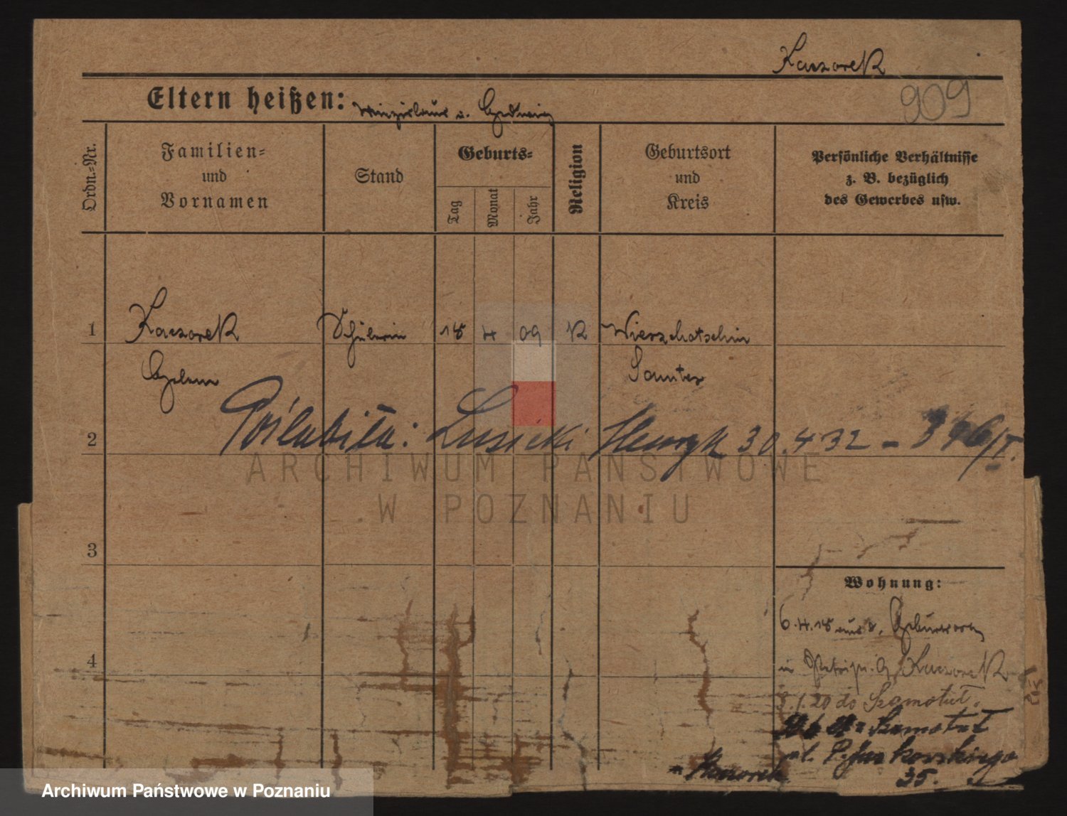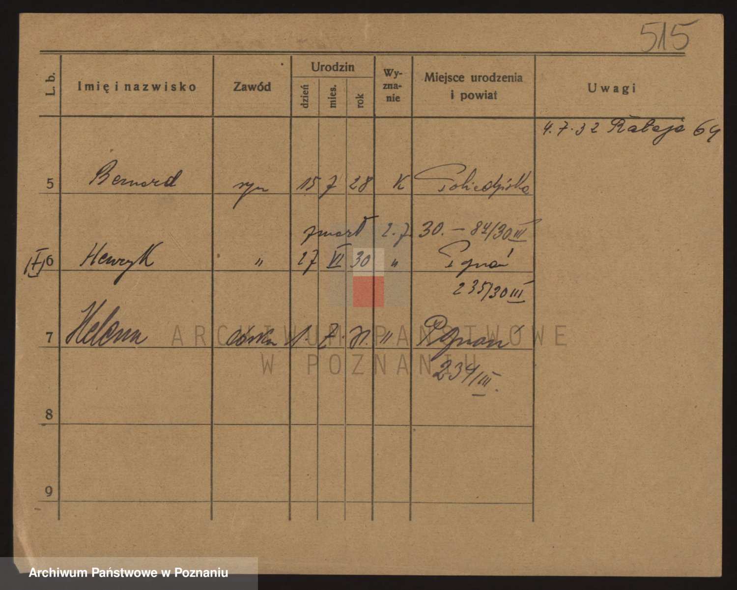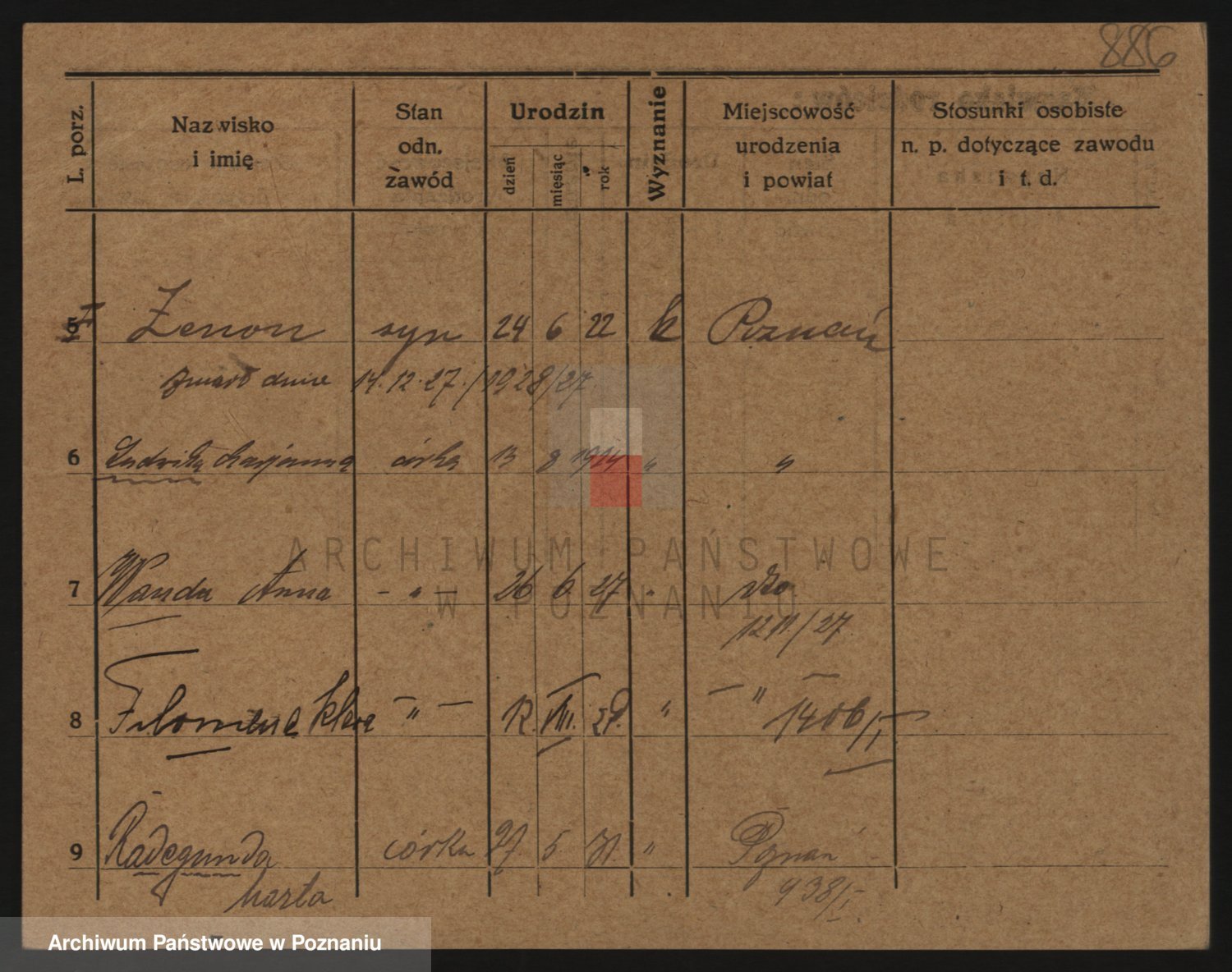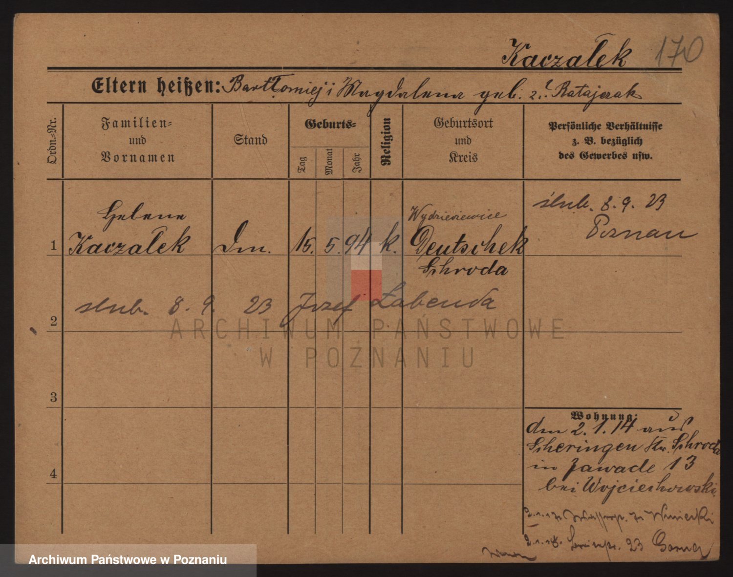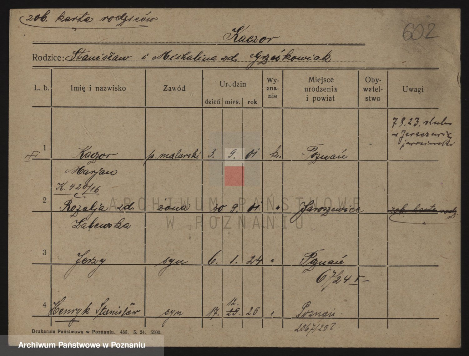 Podgląd karty osobowej dostępny jest po kliknięciu na nazwisko lub ikonkę karty. Można dokonywać powiększenia (ikony na górze) lub przechodzić między kolejnymi skanami (strzałki po bokach).