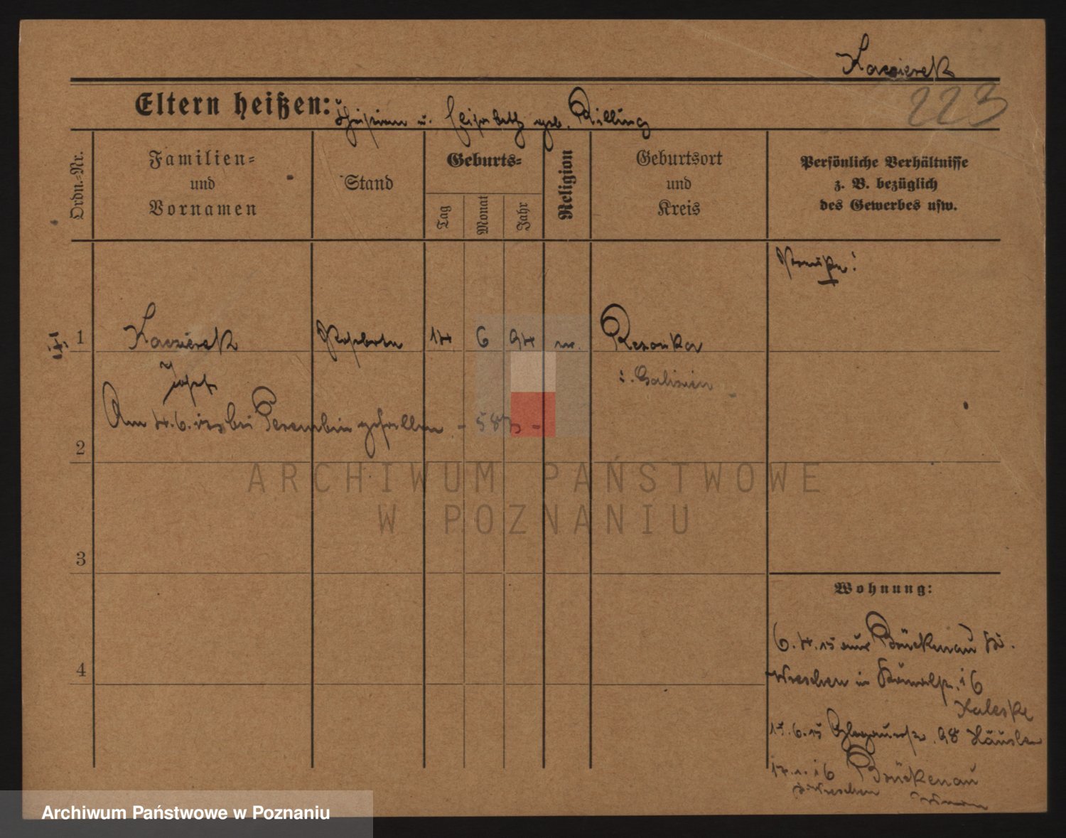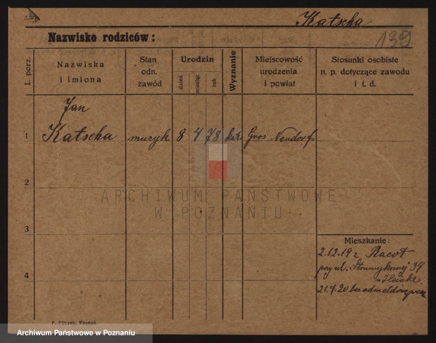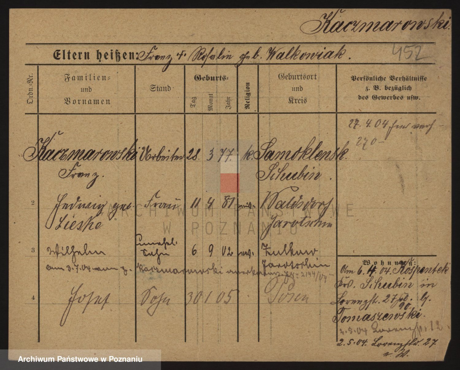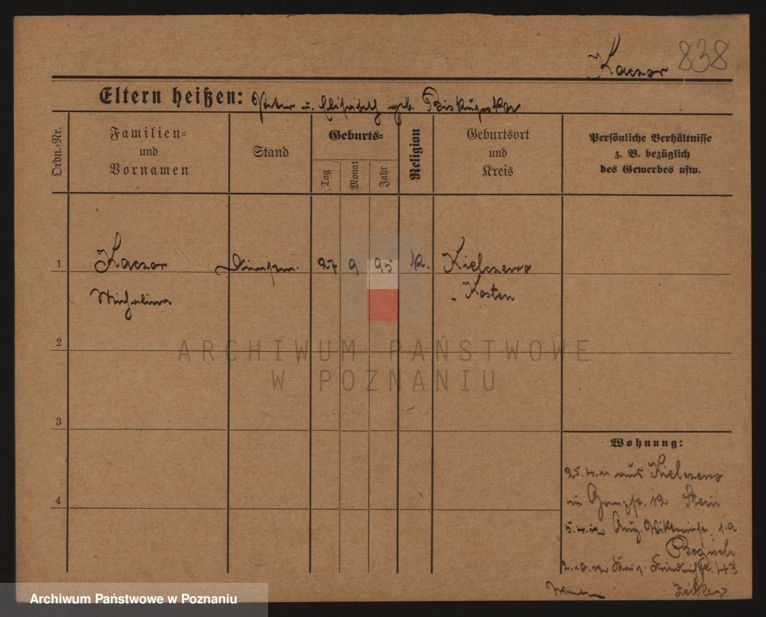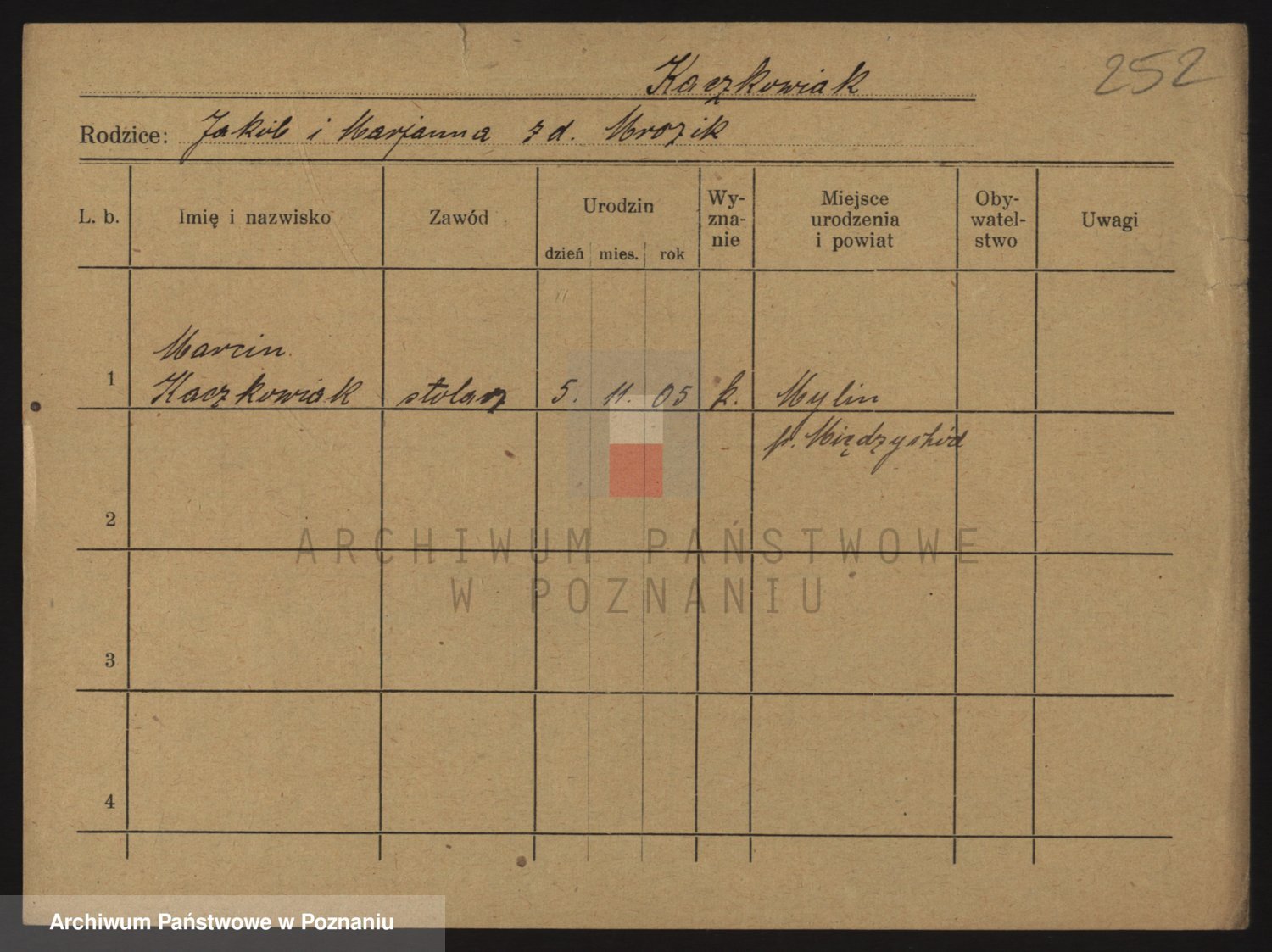 Podgląd karty osobowej dostępny jest po kliknięciu na nazwisko lub ikonkę karty. Można dokonywać powiększenia (ikony na górze) lub przechodzić między kolejnymi skanami (strzałki po bokach).