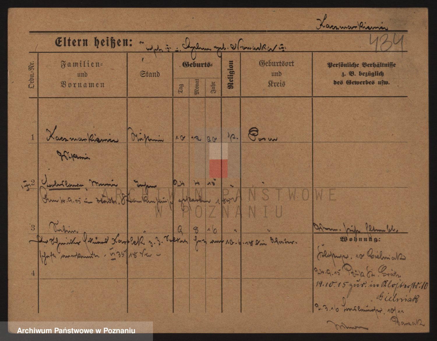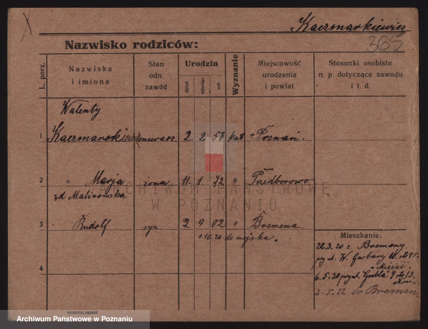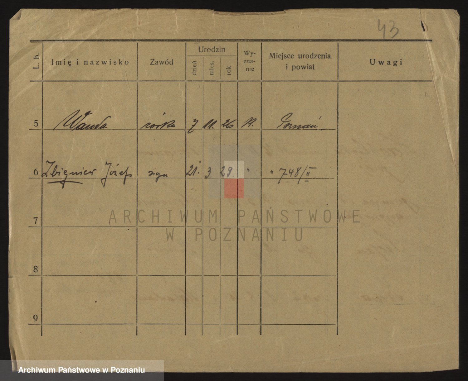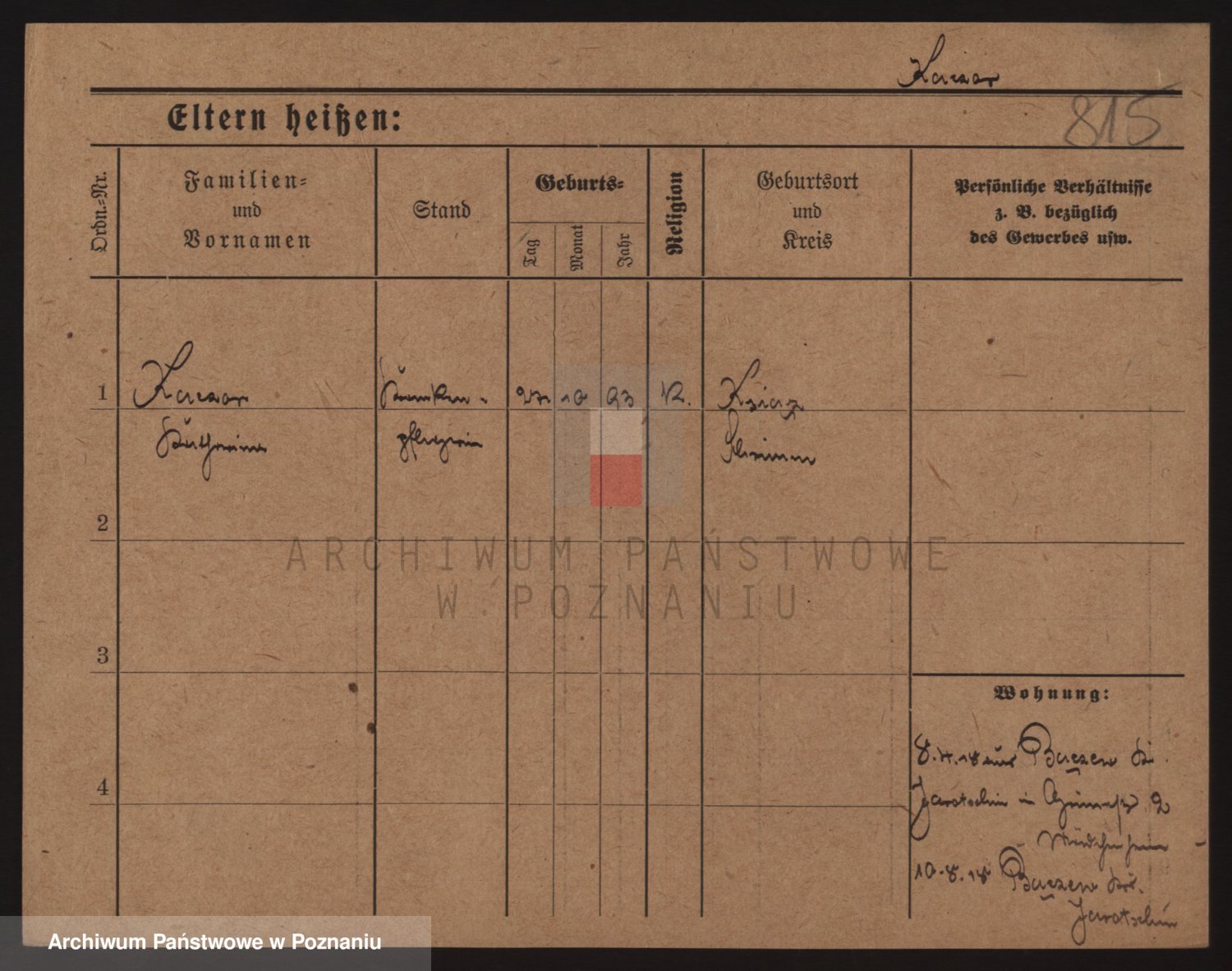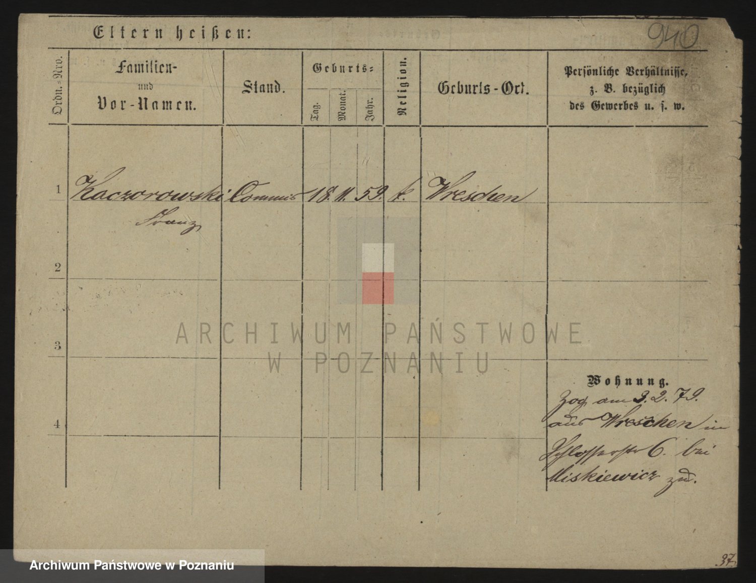 Podgląd karty osobowej dostępny jest po kliknięciu na nazwisko lub ikonkę karty. Można dokonywać powiększenia (ikony na górze) lub przechodzić między kolejnymi skanami (strzałki po bokach).