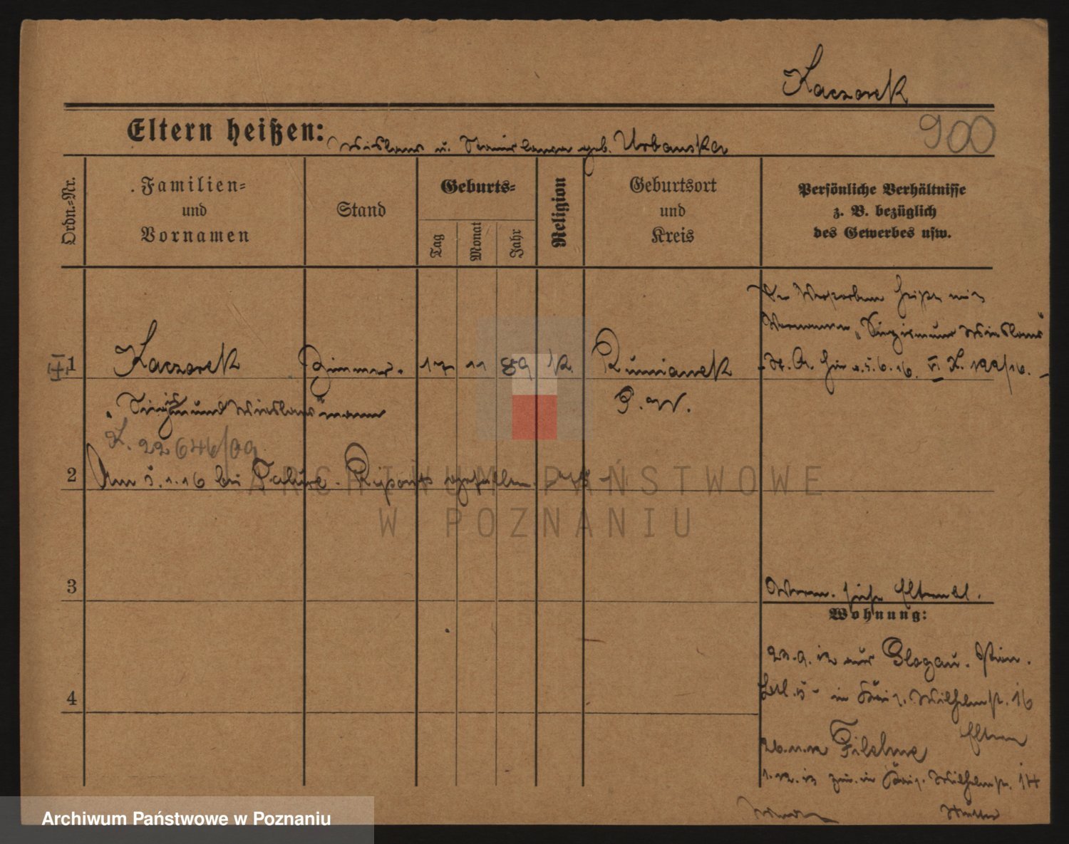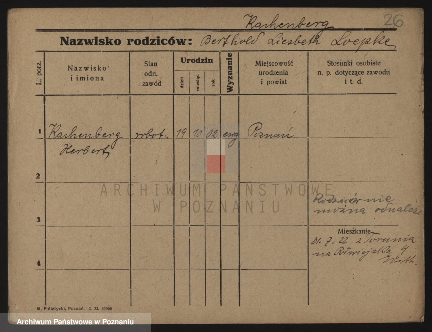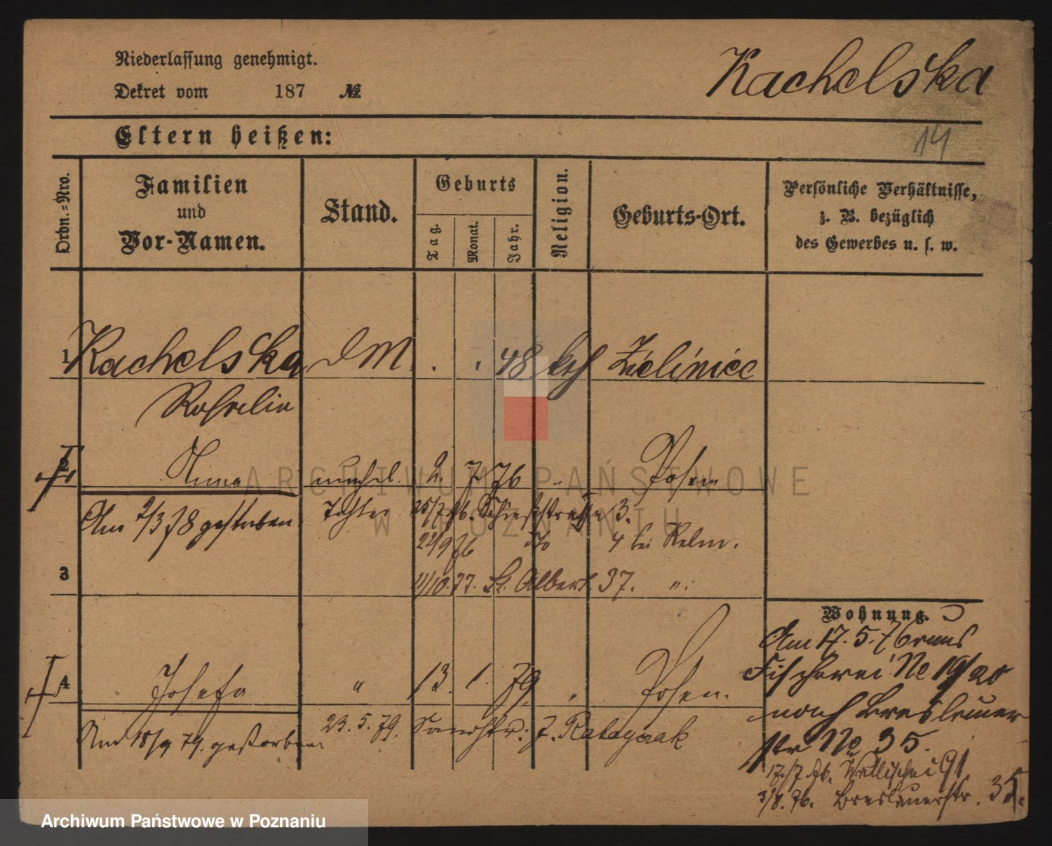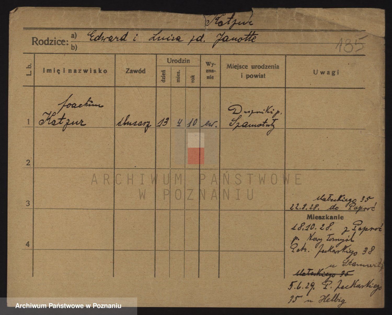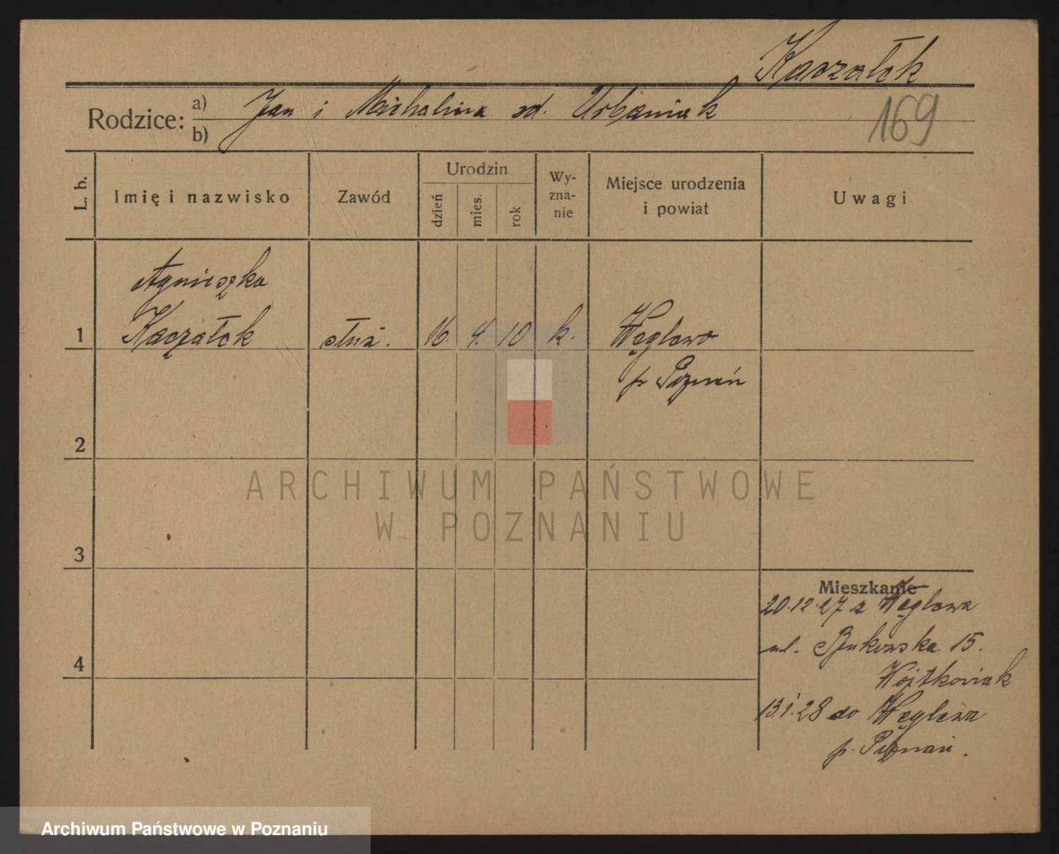 Podgląd karty osobowej dostępny jest po kliknięciu na nazwisko lub ikonkę karty. Można dokonywać powiększenia (ikony na górze) lub przechodzić między kolejnymi skanami (strzałki po bokach).