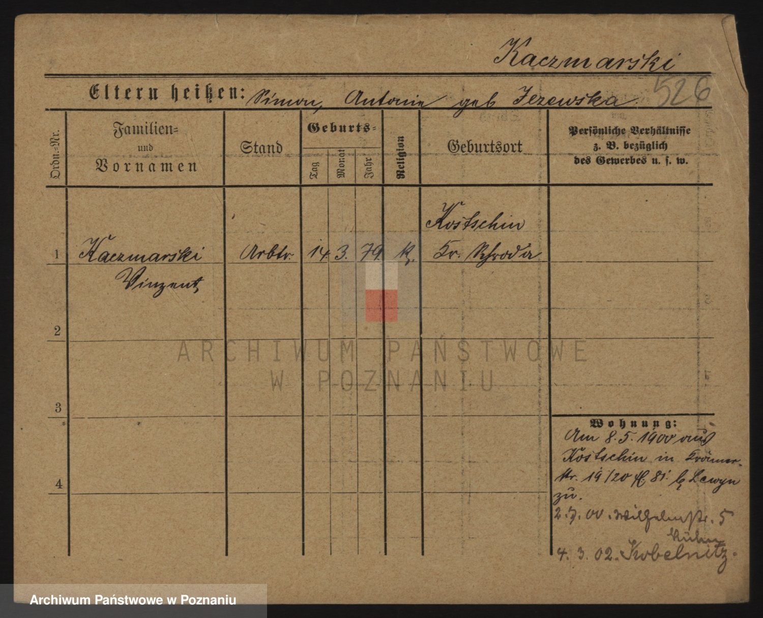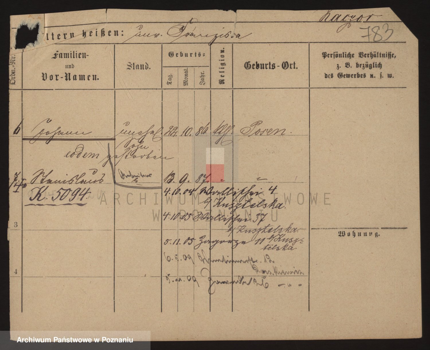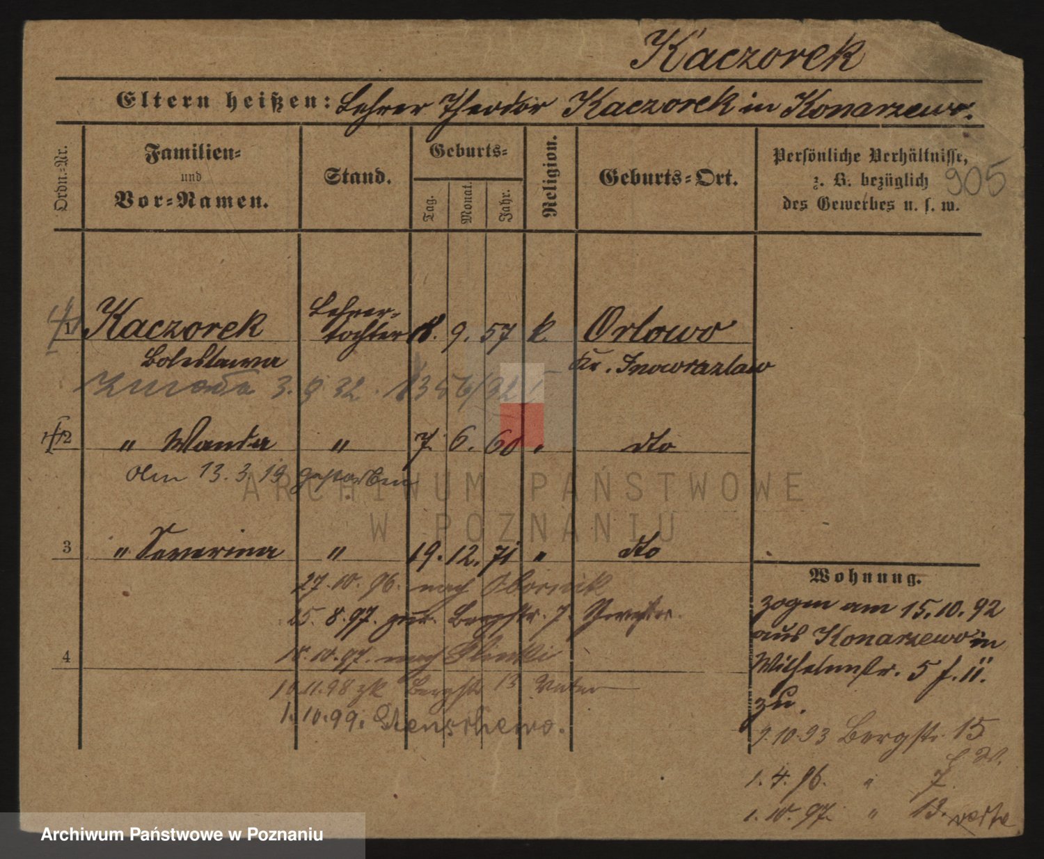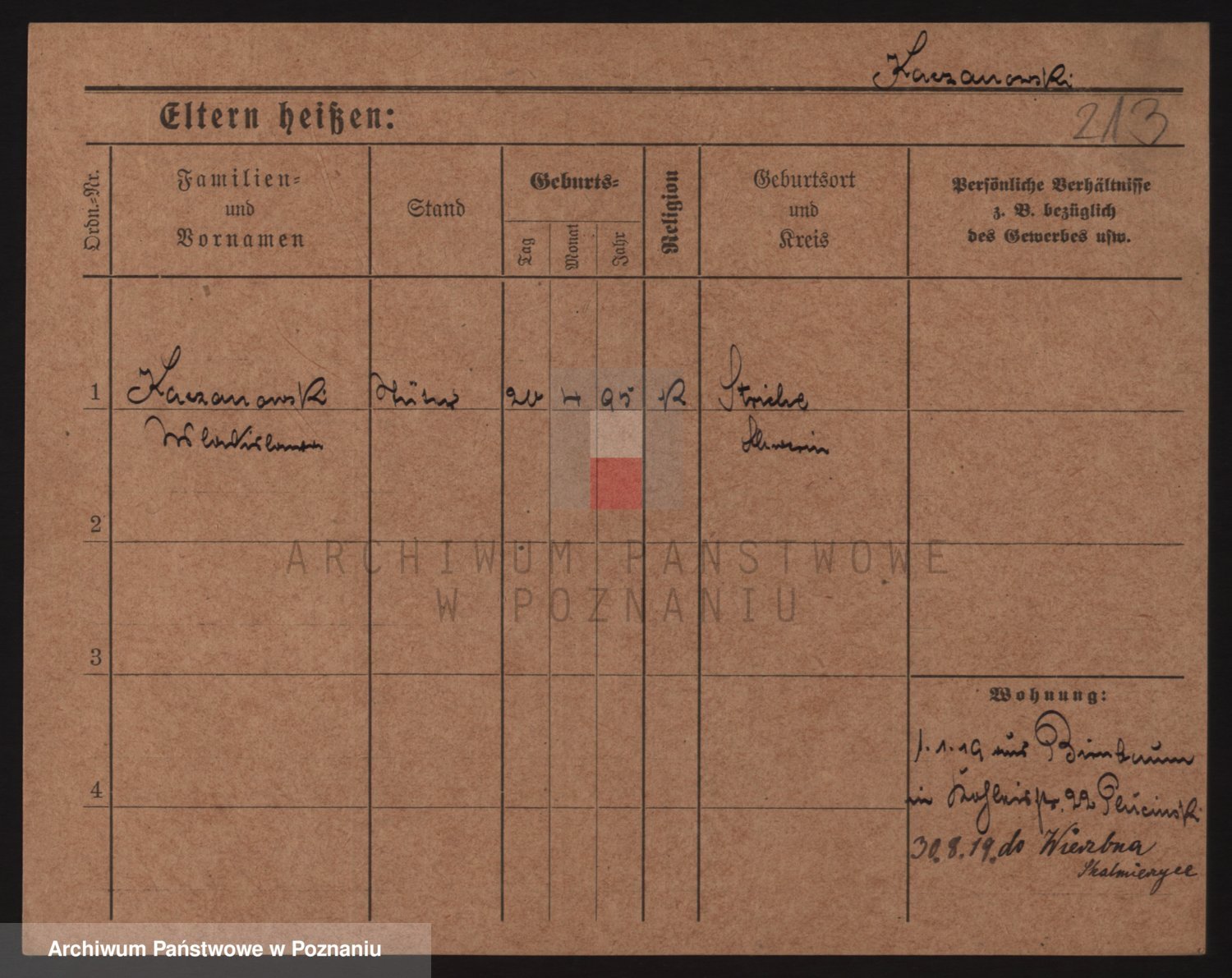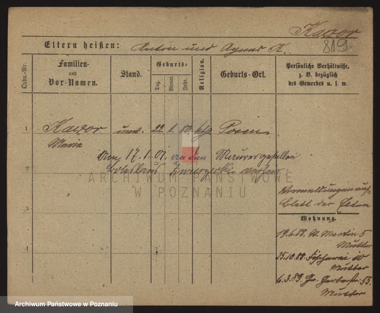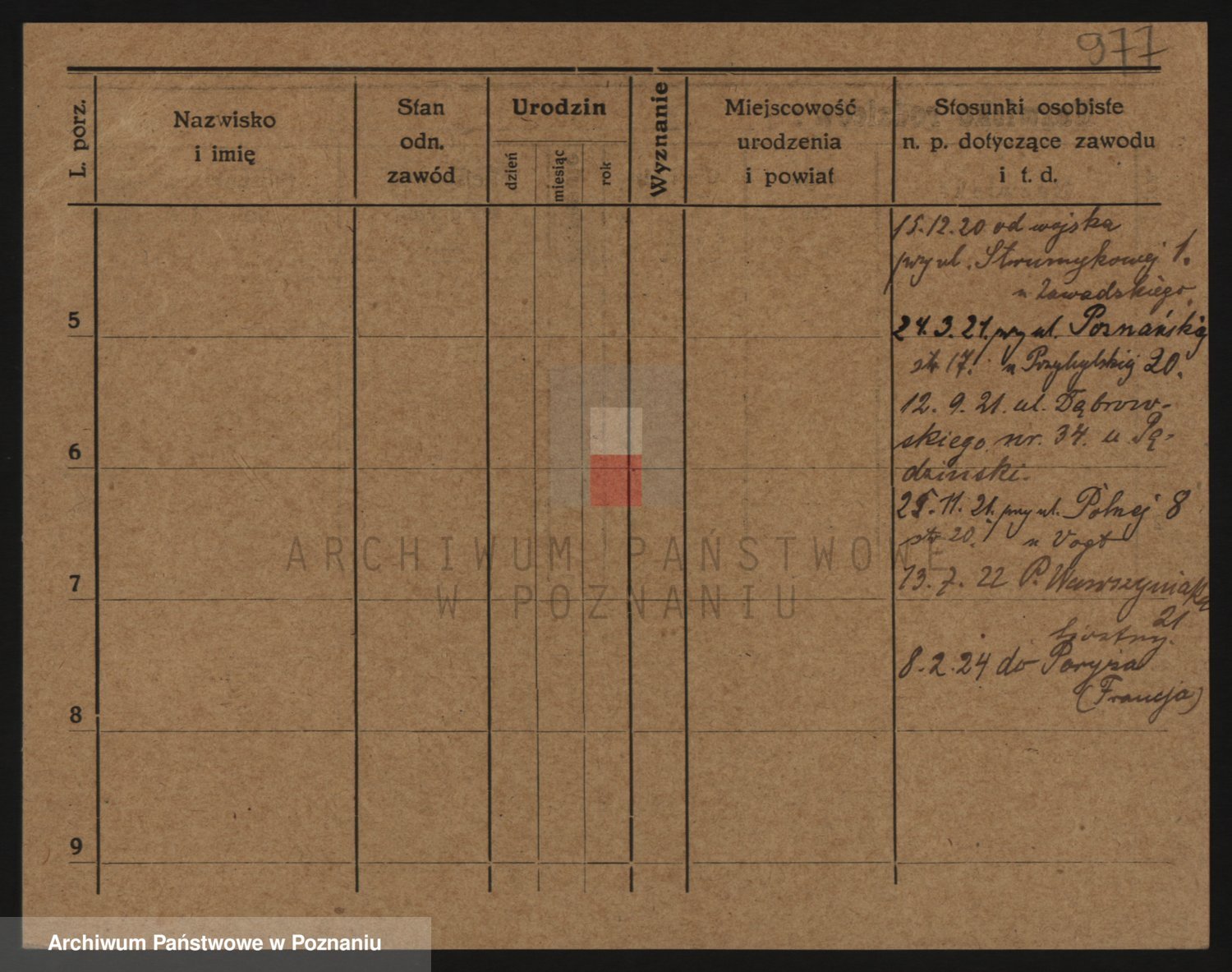 Podgląd karty osobowej dostępny jest po kliknięciu na nazwisko lub ikonkę karty. Można dokonywać powiększenia (ikony na górze) lub przechodzić między kolejnymi skanami (strzałki po bokach).