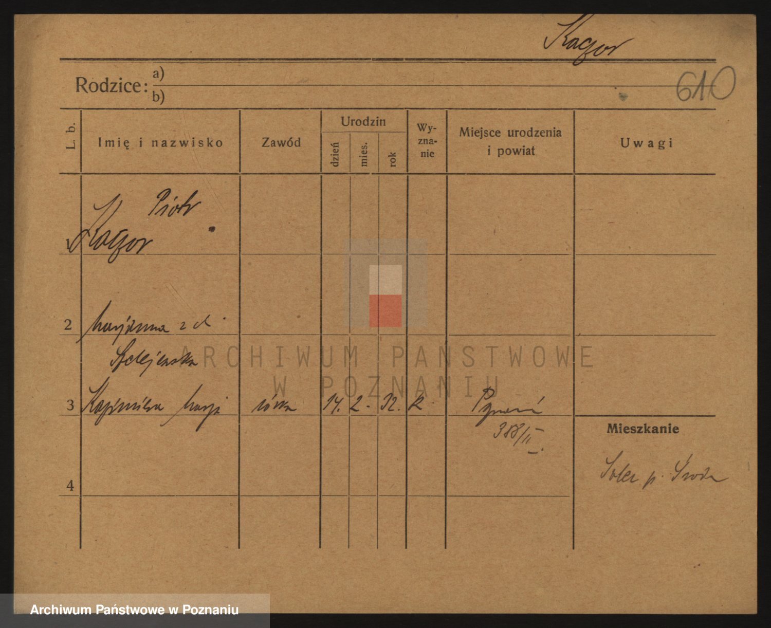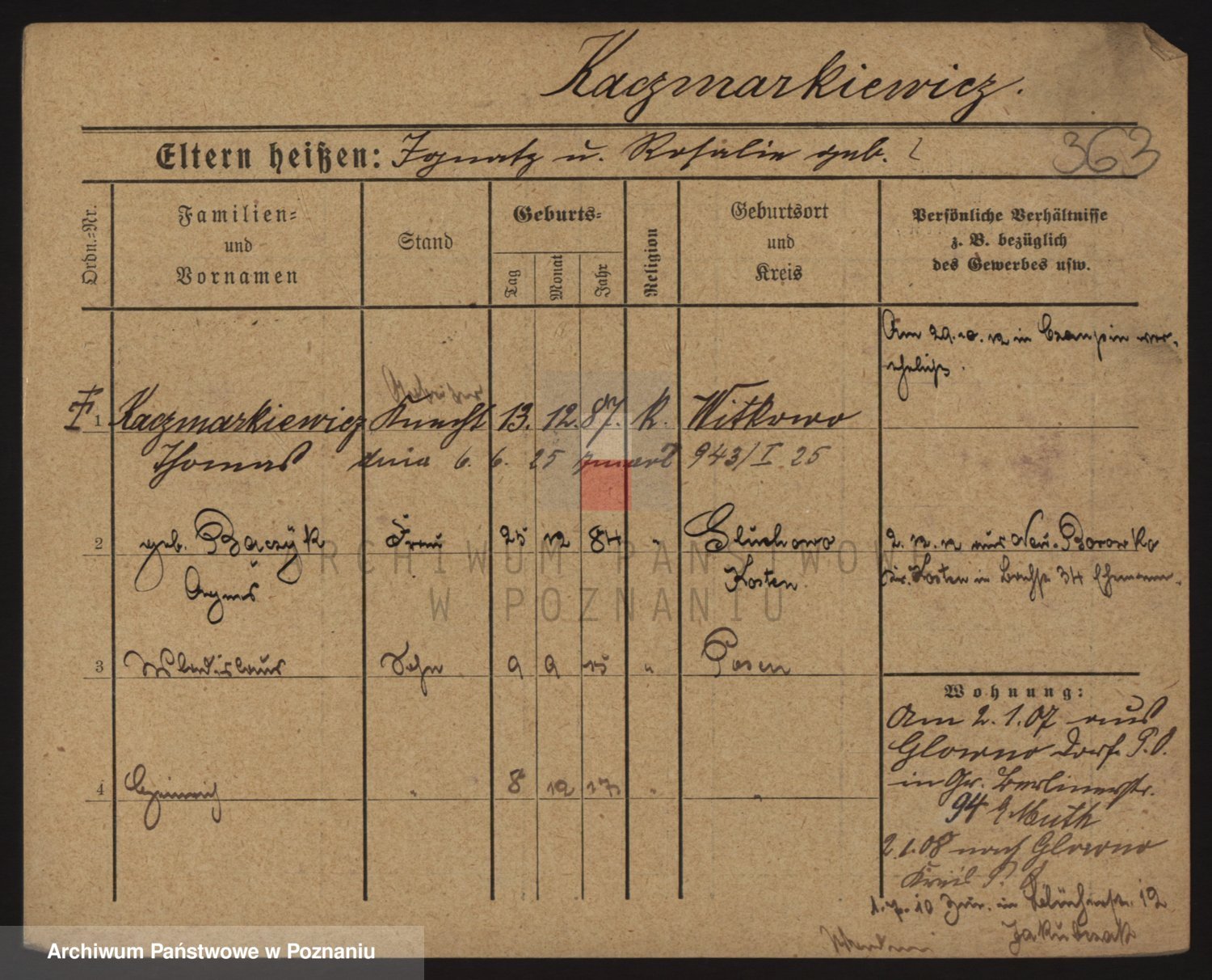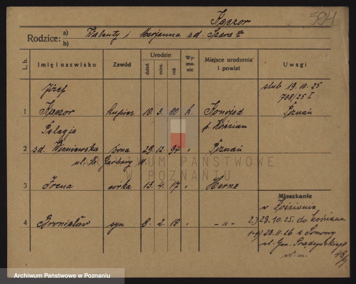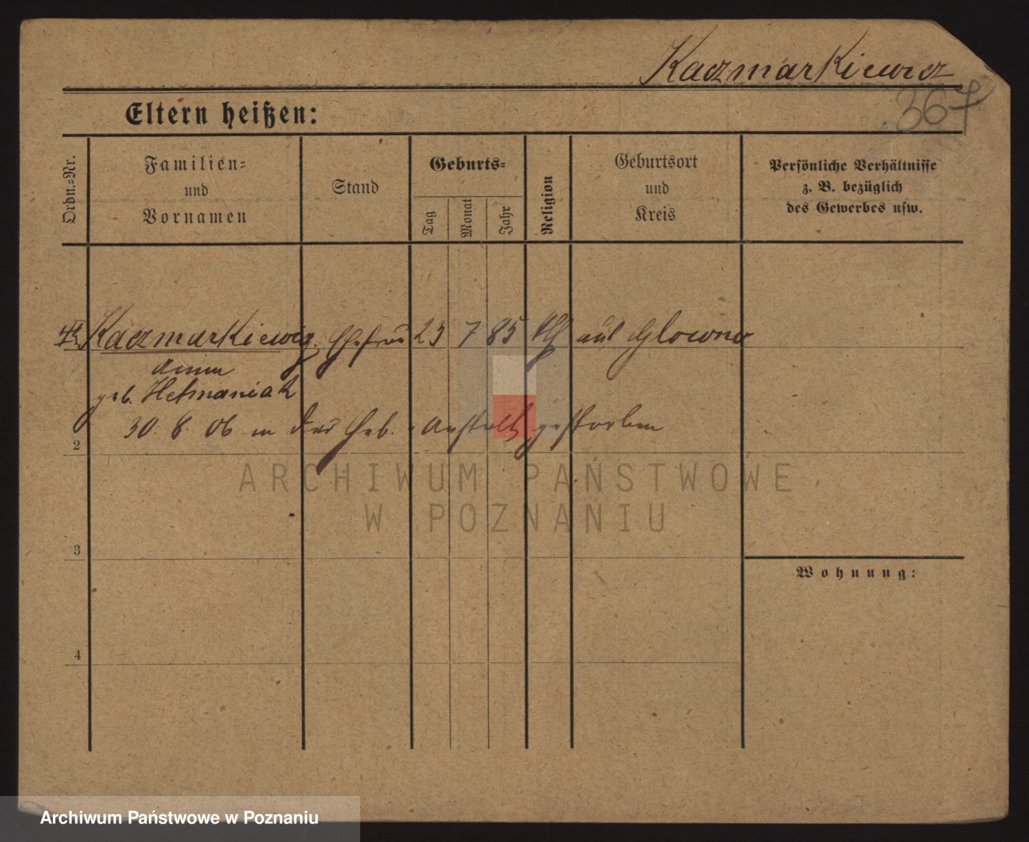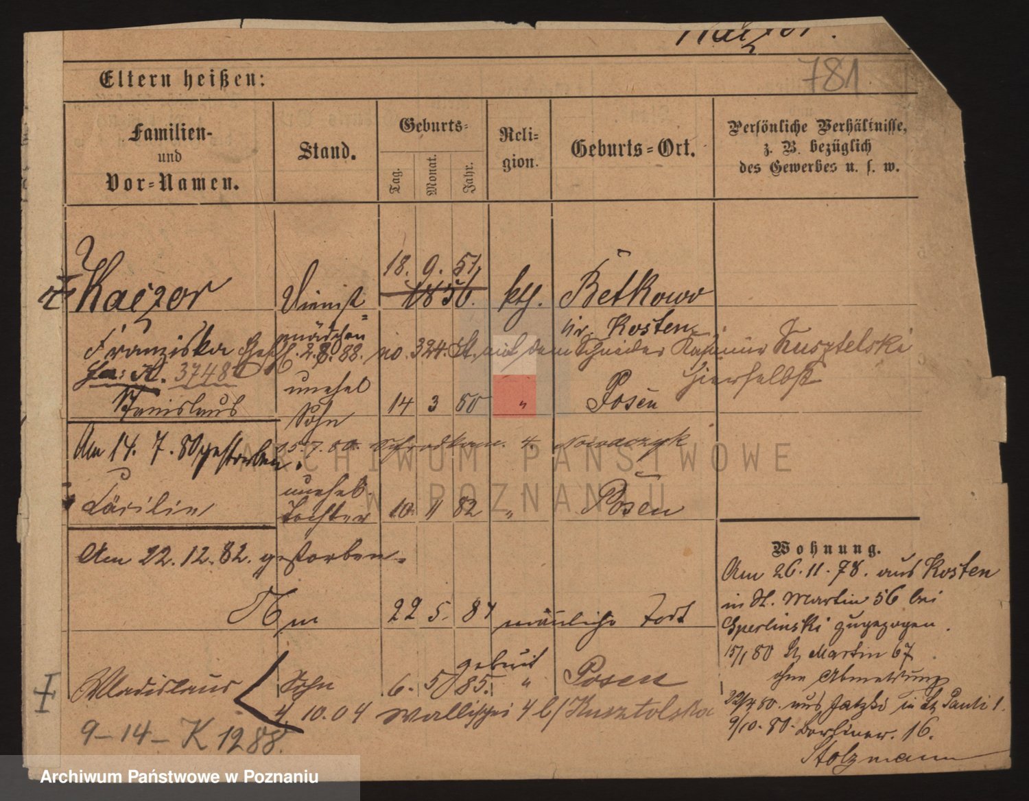 Podgląd karty osobowej dostępny jest po kliknięciu na nazwisko lub ikonkę karty. Można dokonywać powiększenia (ikony na górze) lub przechodzić między kolejnymi skanami (strzałki po bokach).