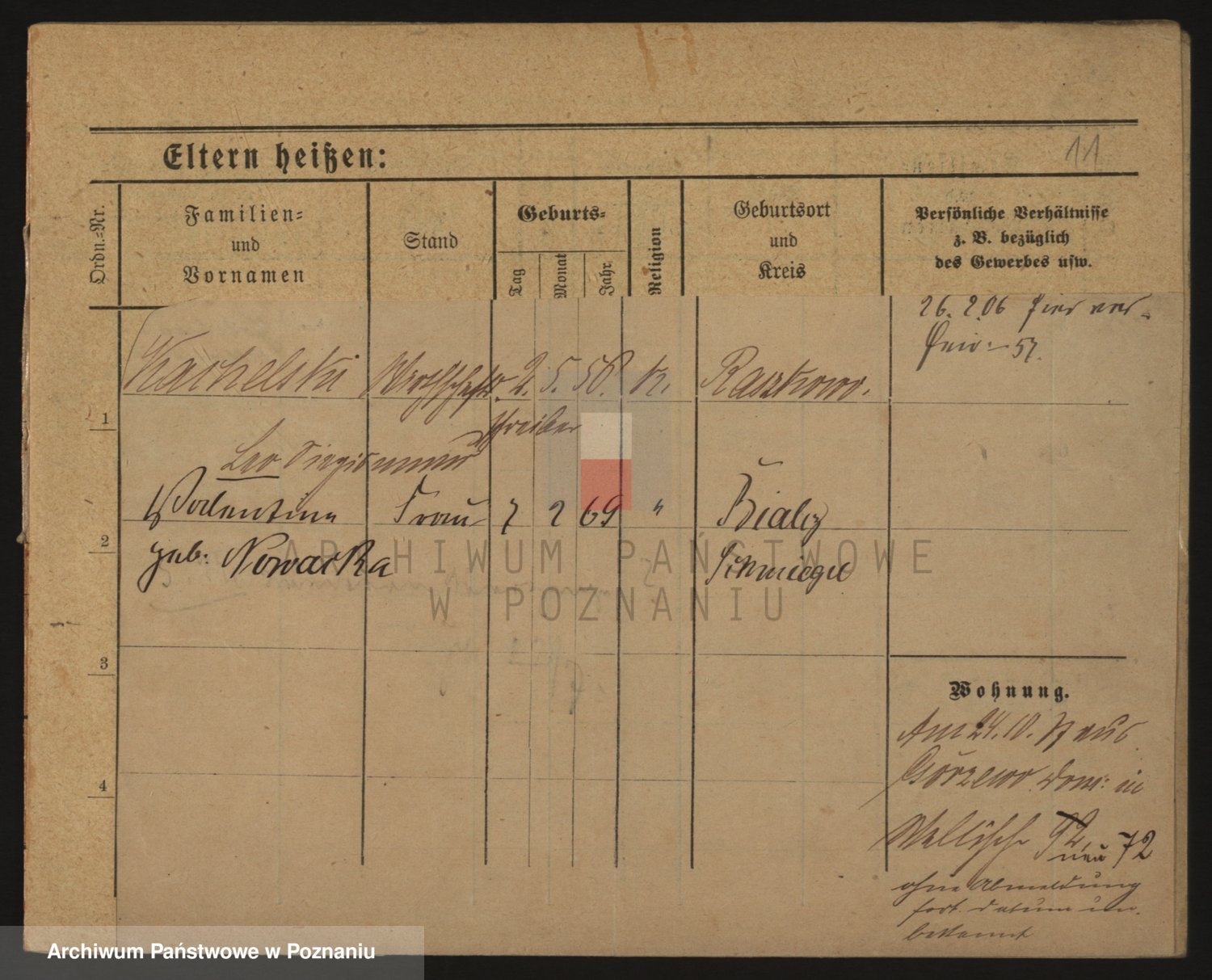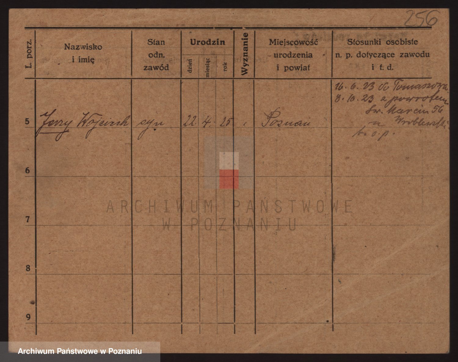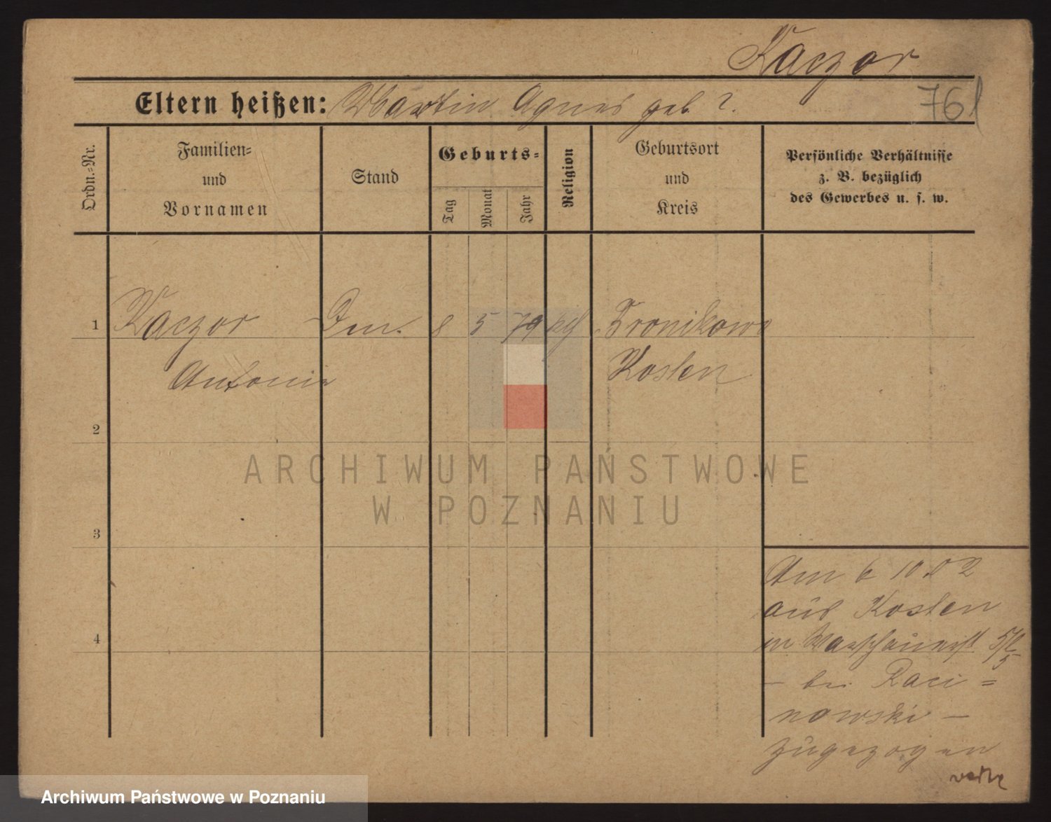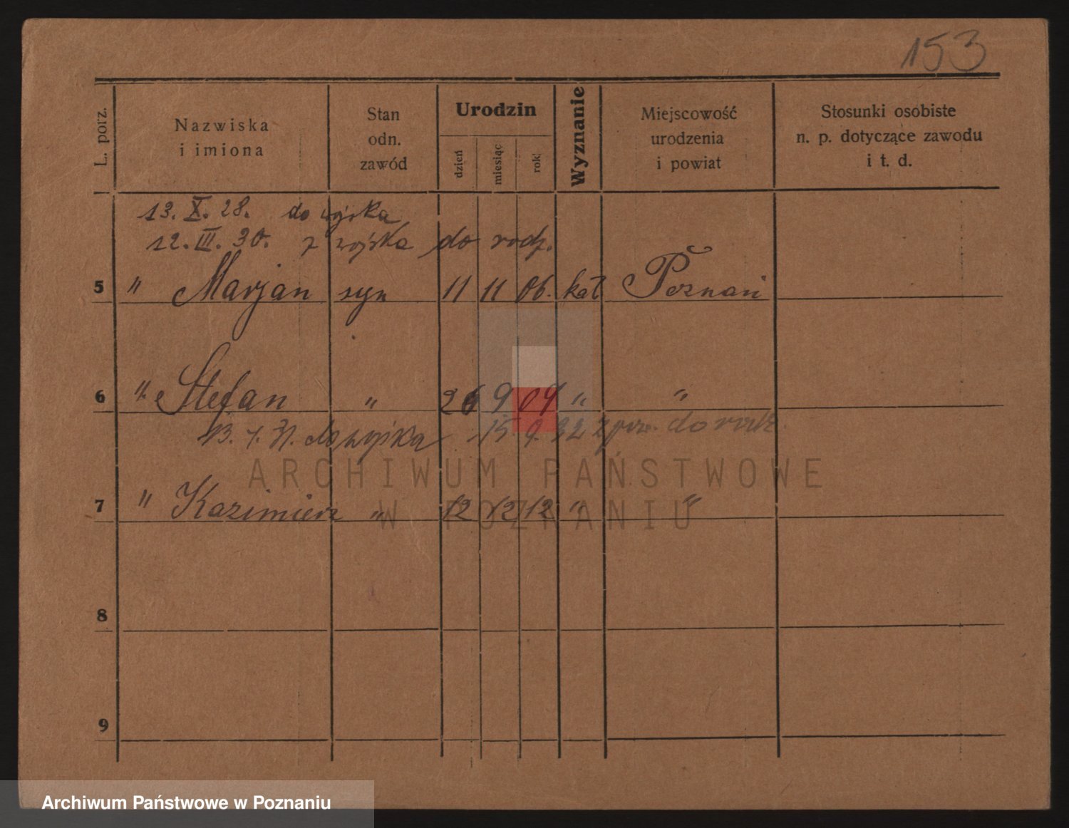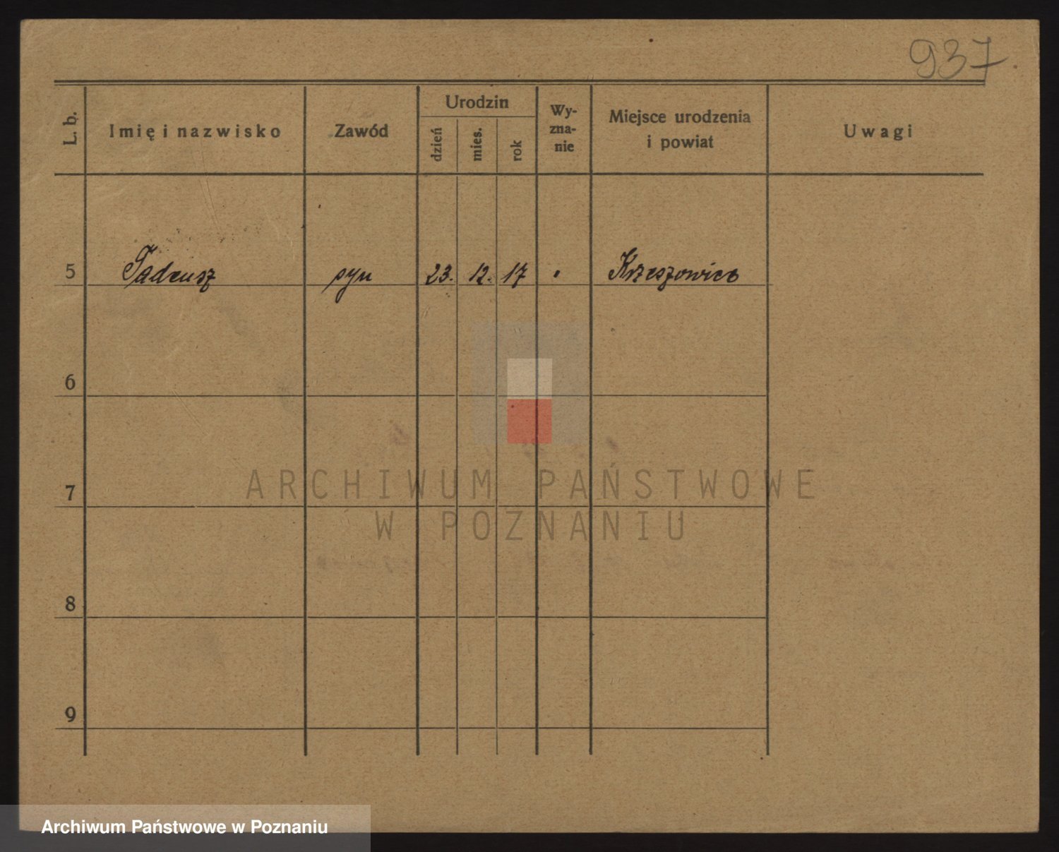 Podgląd karty osobowej dostępny jest po kliknięciu na nazwisko lub ikonkę karty. Można dokonywać powiększenia (ikony na górze) lub przechodzić między kolejnymi skanami (strzałki po bokach).