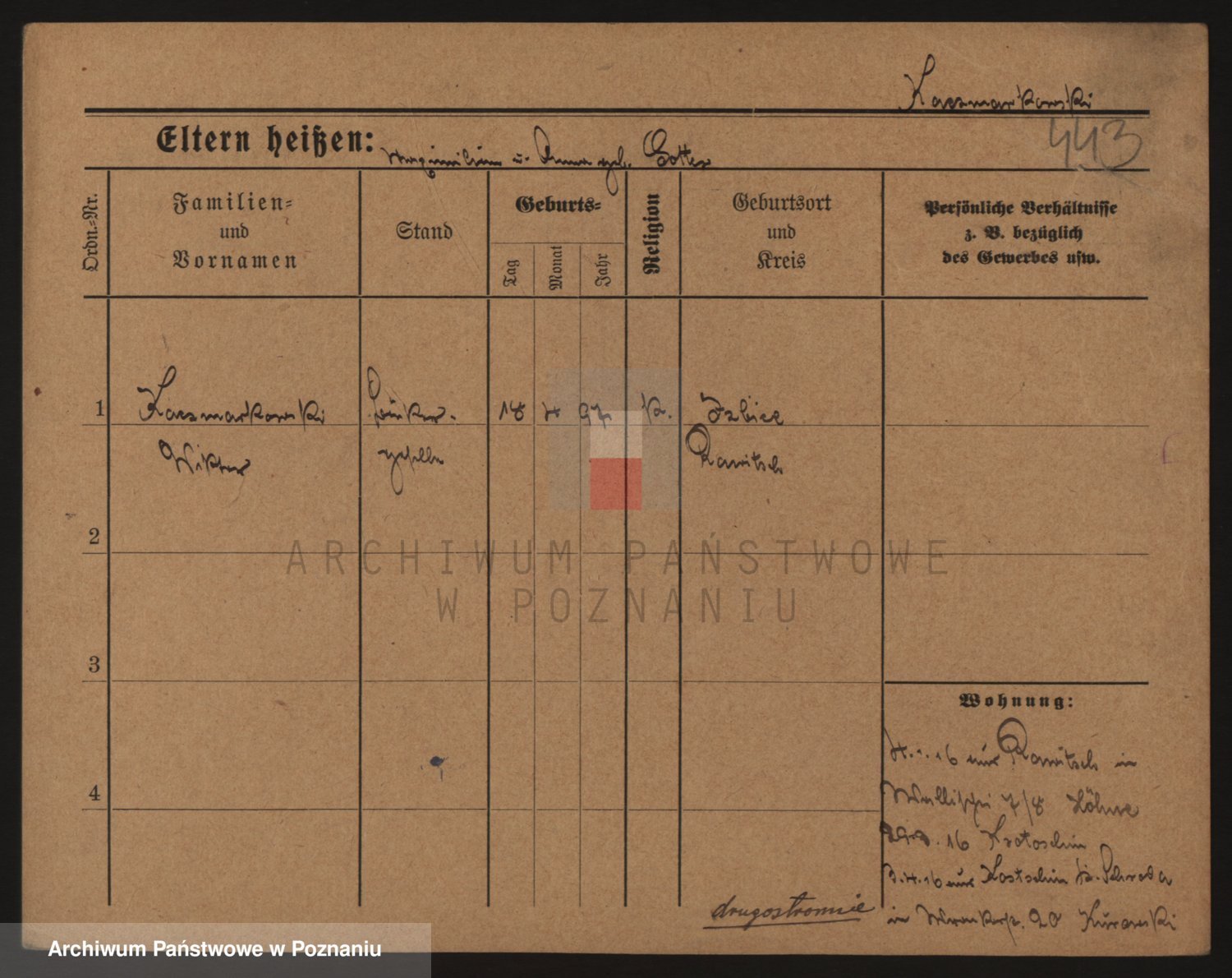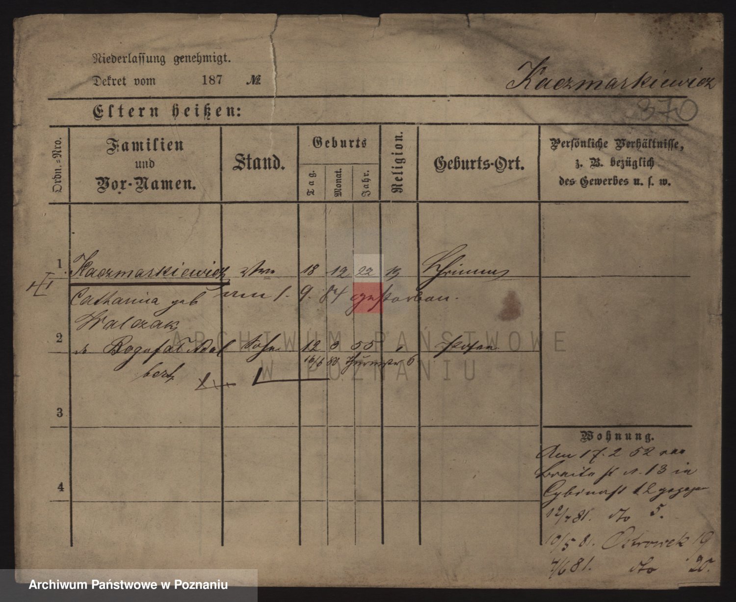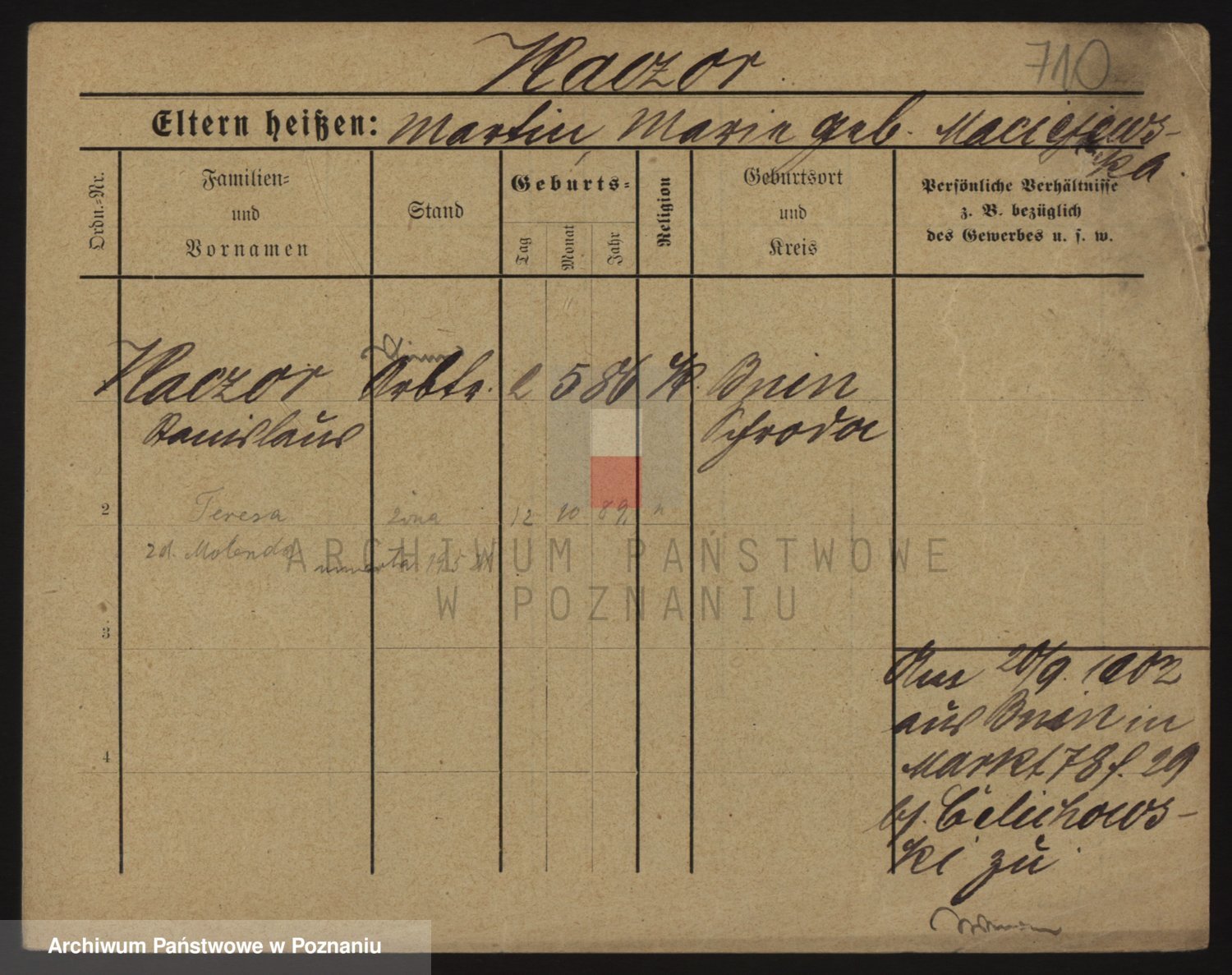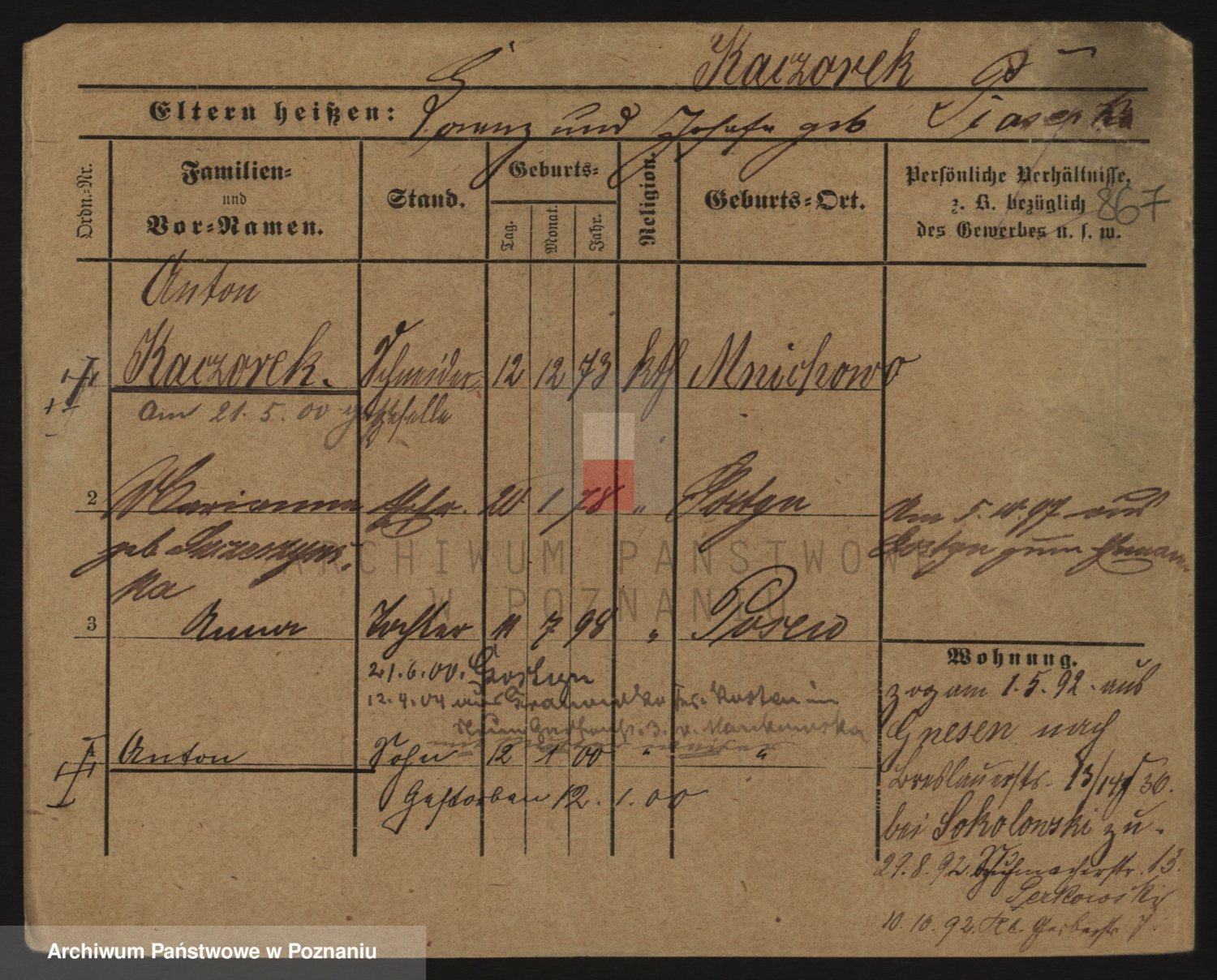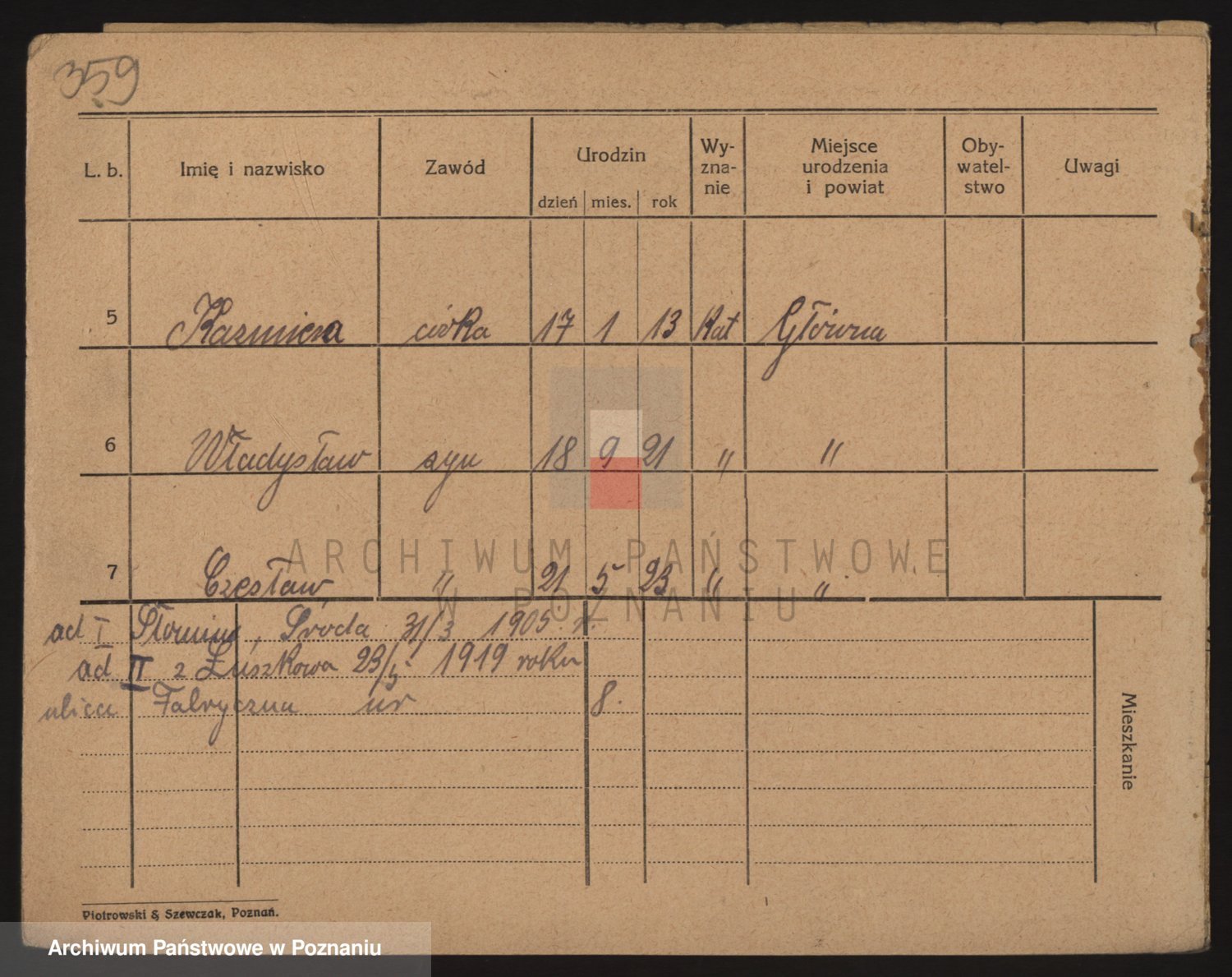 Podgląd karty osobowej dostępny jest po kliknięciu na nazwisko lub ikonkę karty. Można dokonywać powiększenia (ikony na górze) lub przechodzić między kolejnymi skanami (strzałki po bokach).