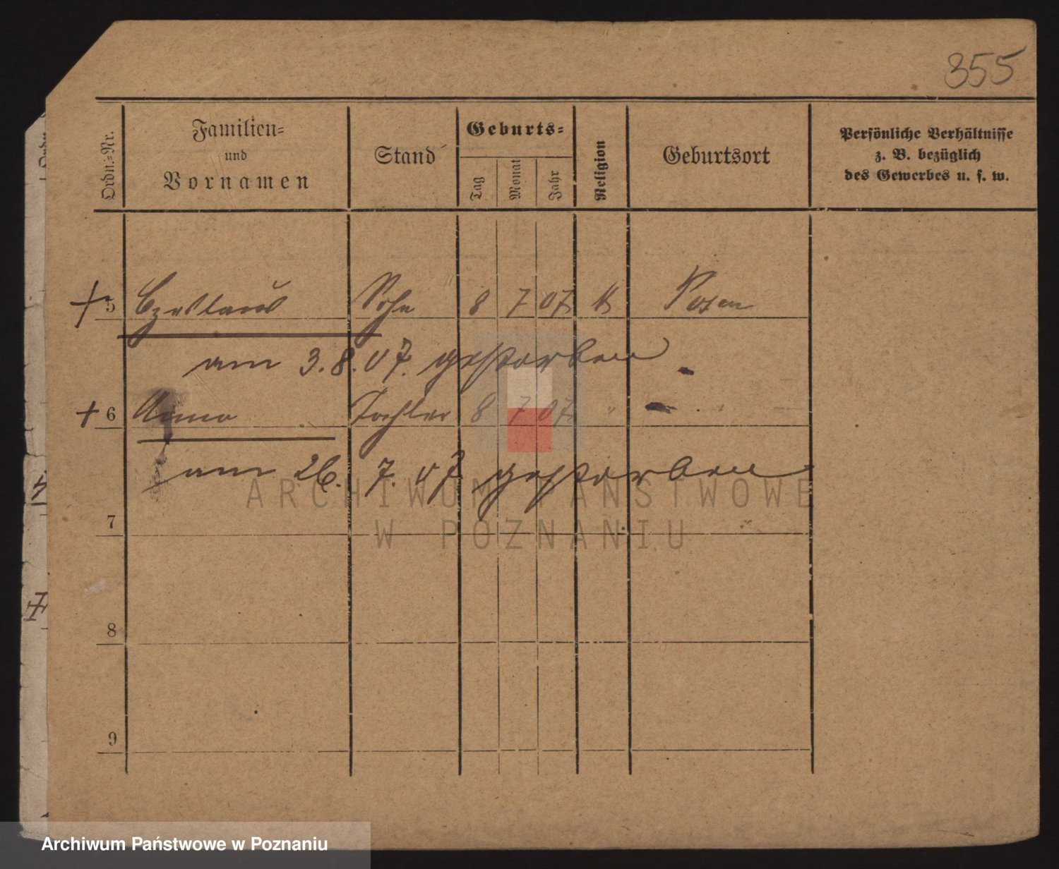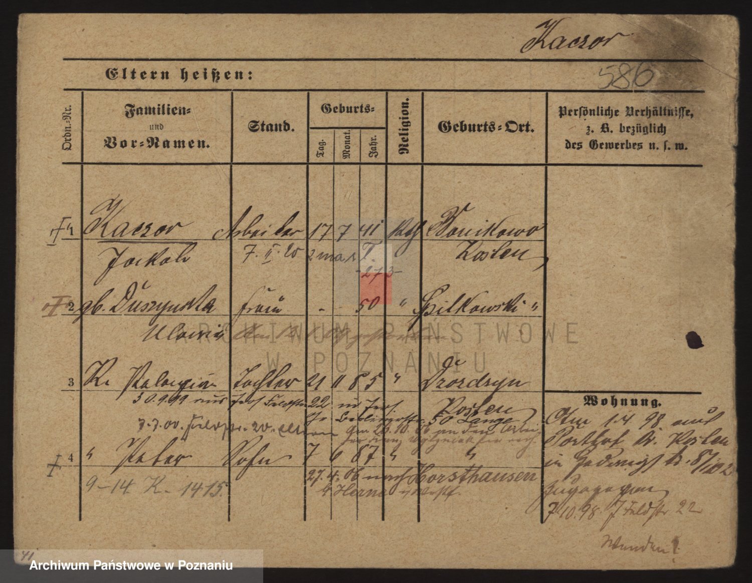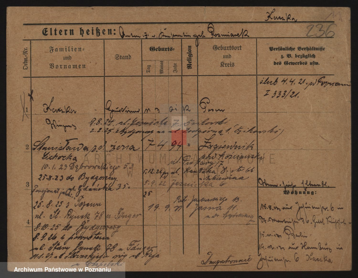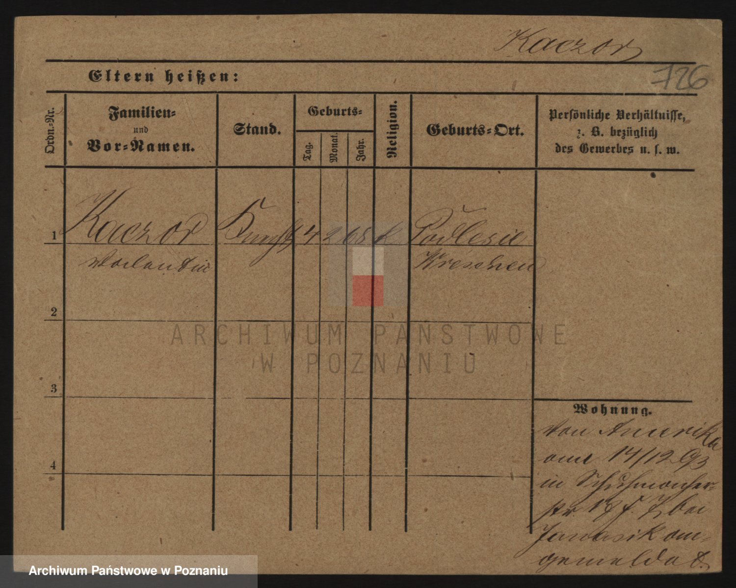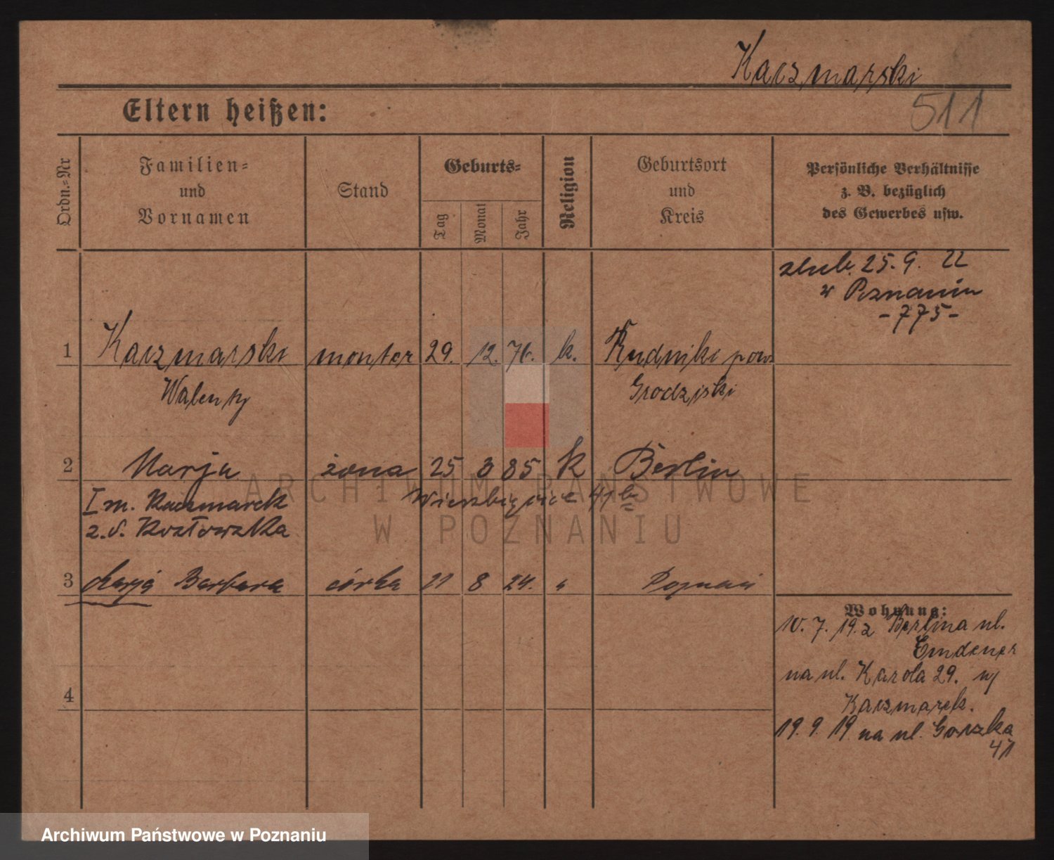 Podgląd karty osobowej dostępny jest po kliknięciu na nazwisko lub ikonkę karty. Można dokonywać powiększenia (ikony na górze) lub przechodzić między kolejnymi skanami (strzałki po bokach).