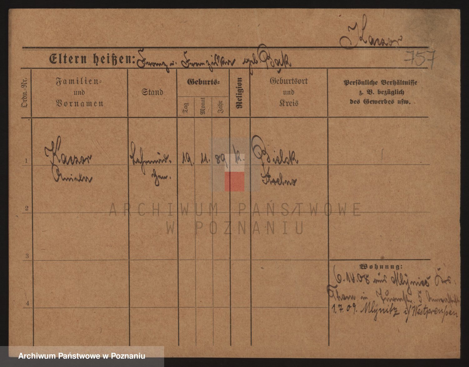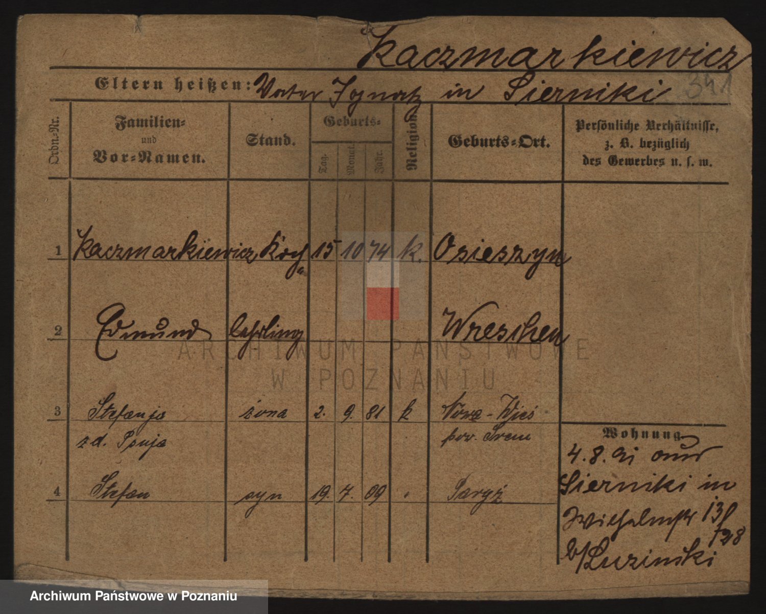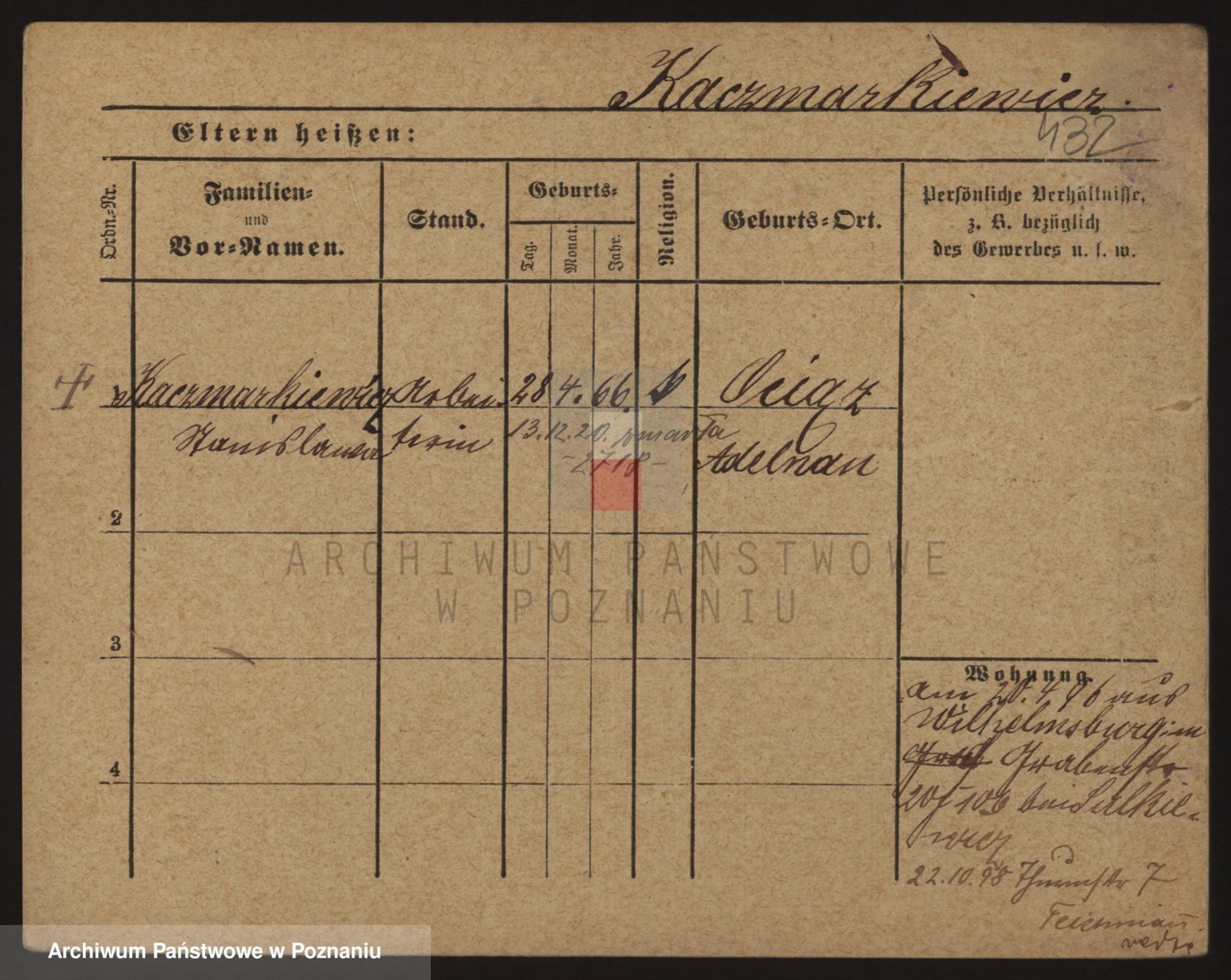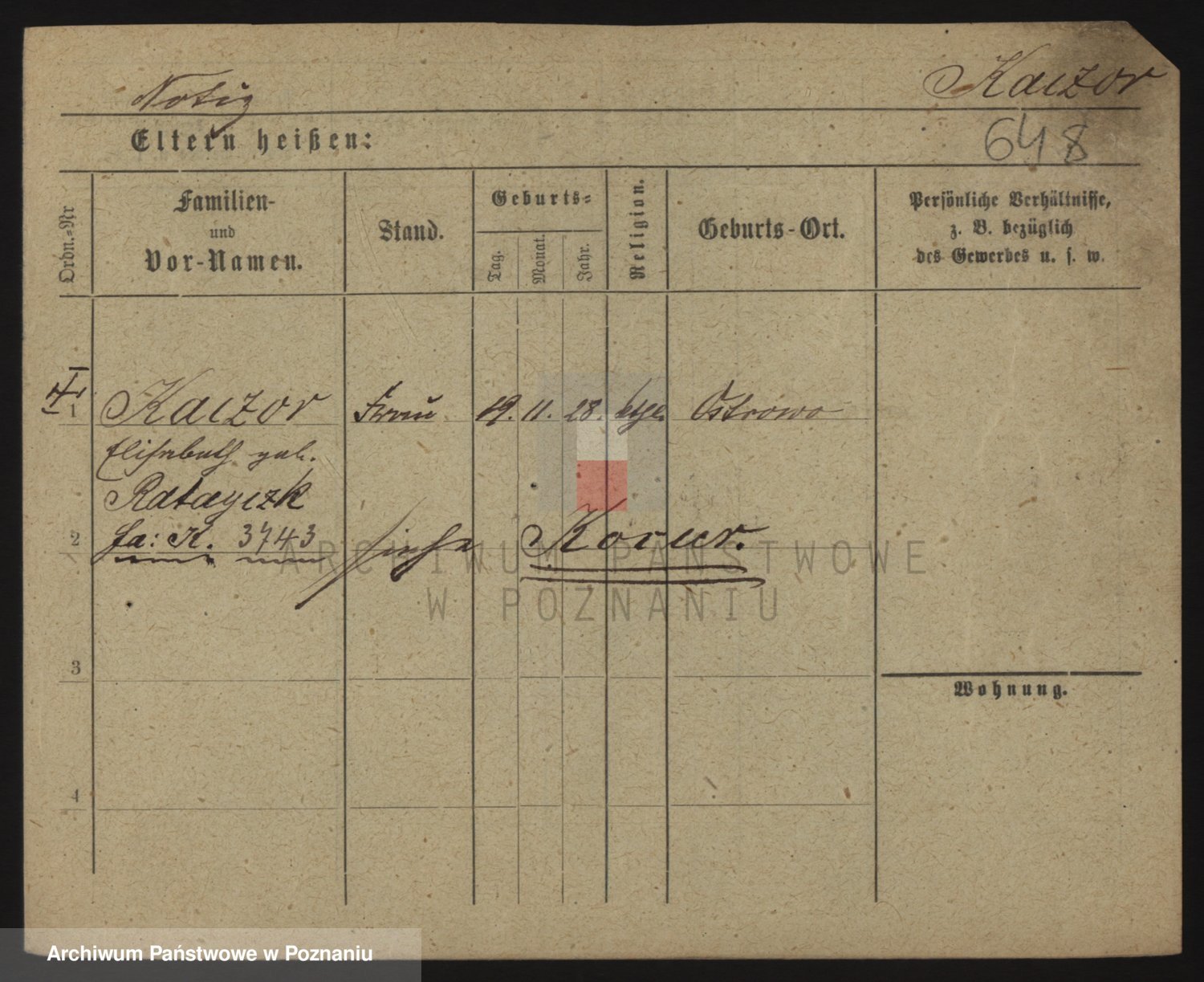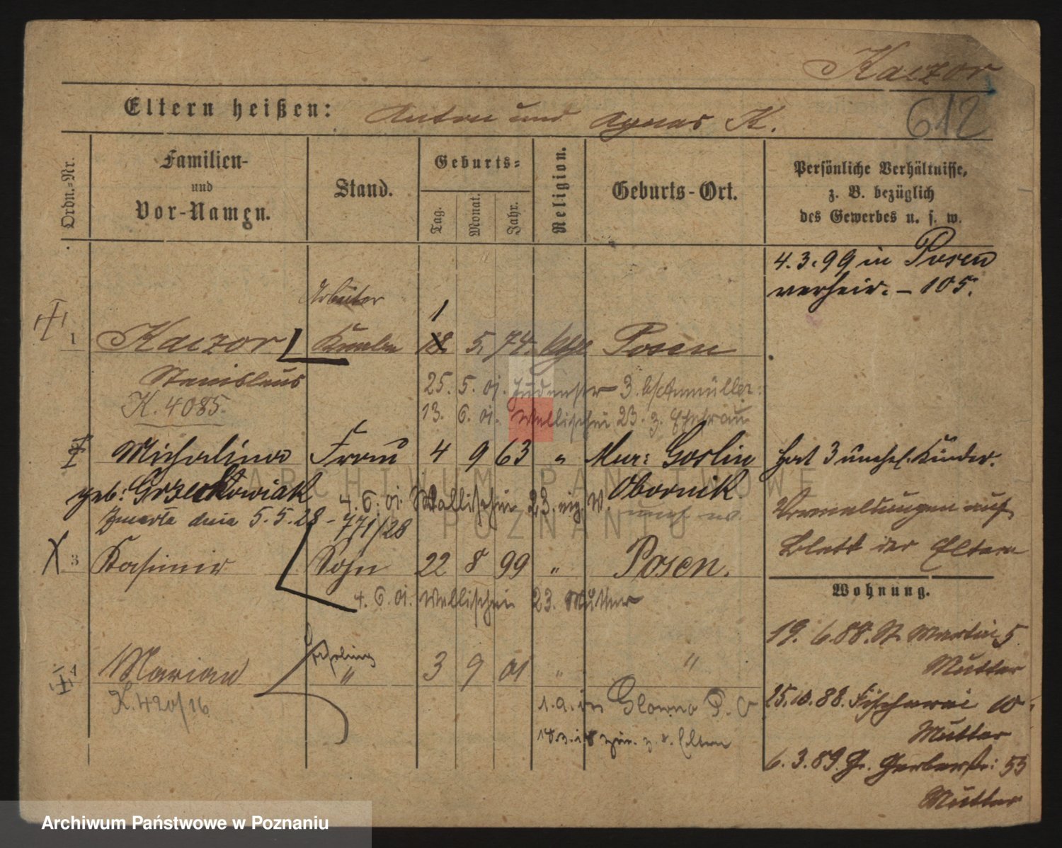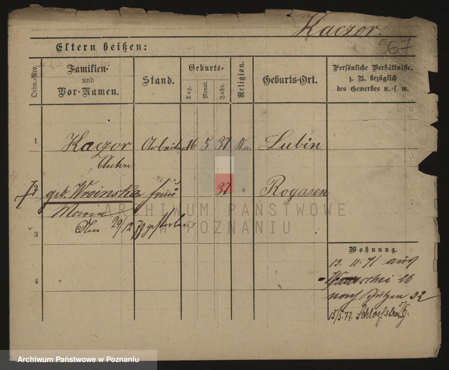 Podgląd karty osobowej dostępny jest po kliknięciu na nazwisko lub ikonkę karty. Można dokonywać powiększenia (ikony na górze) lub przechodzić między kolejnymi skanami (strzałki po bokach).