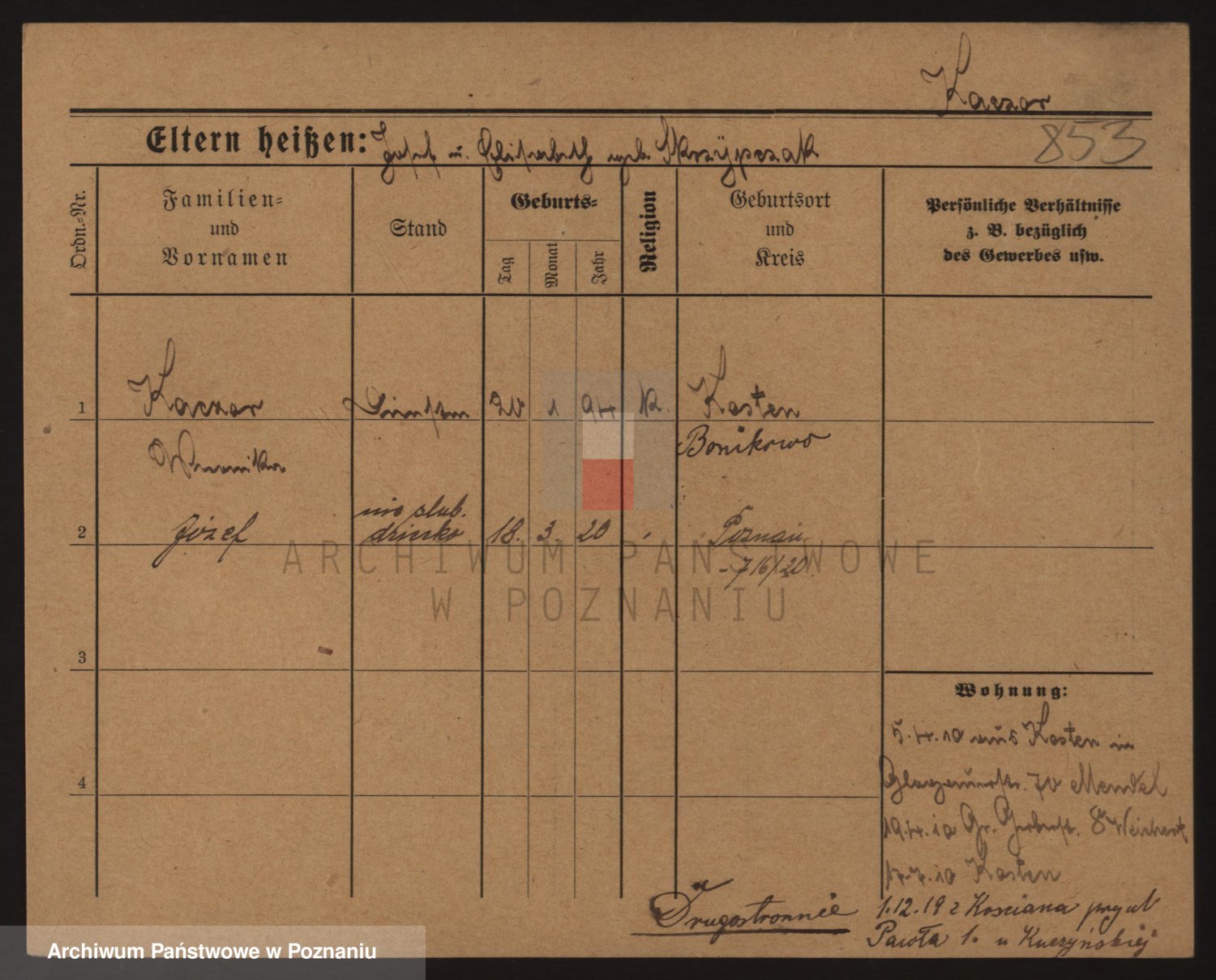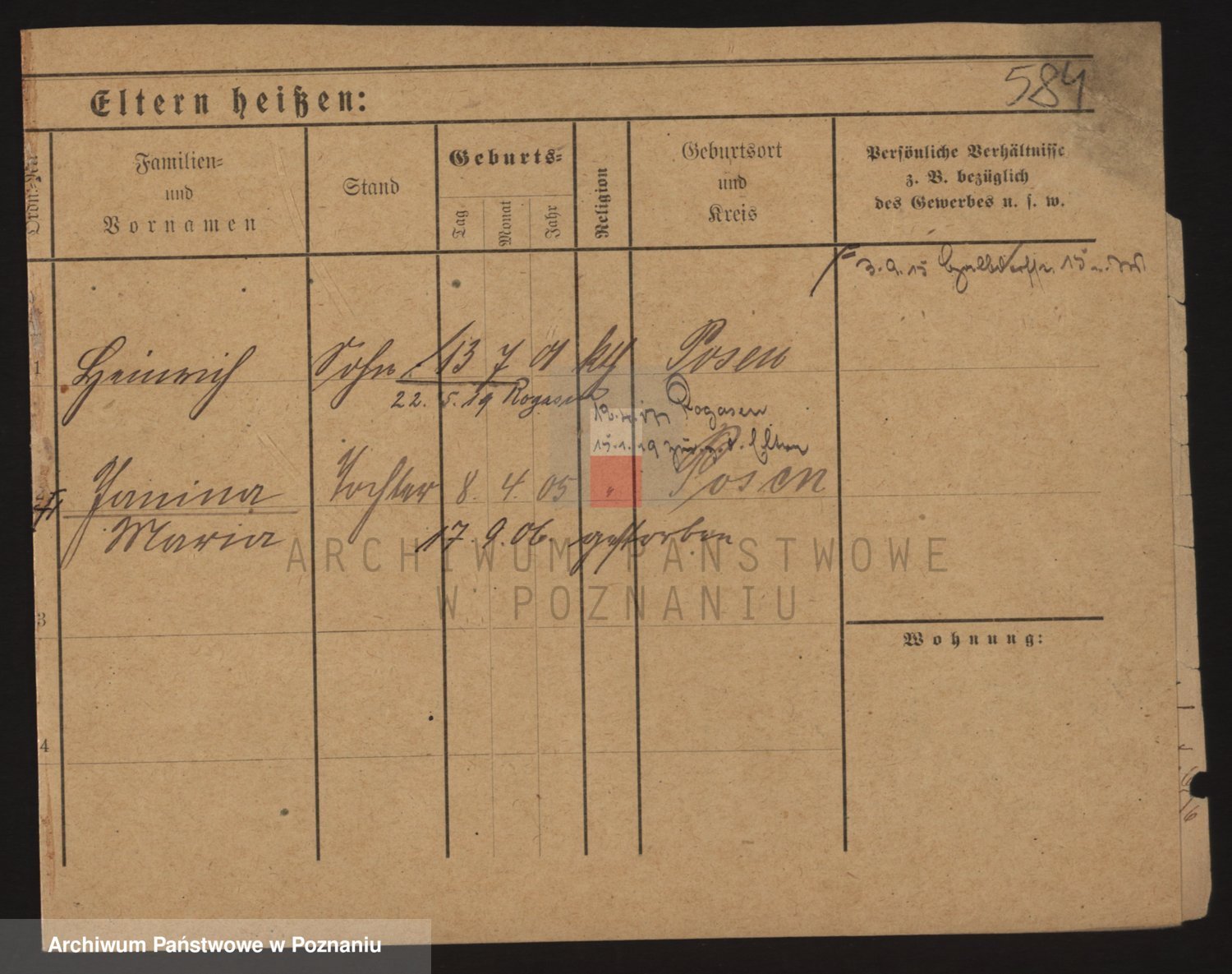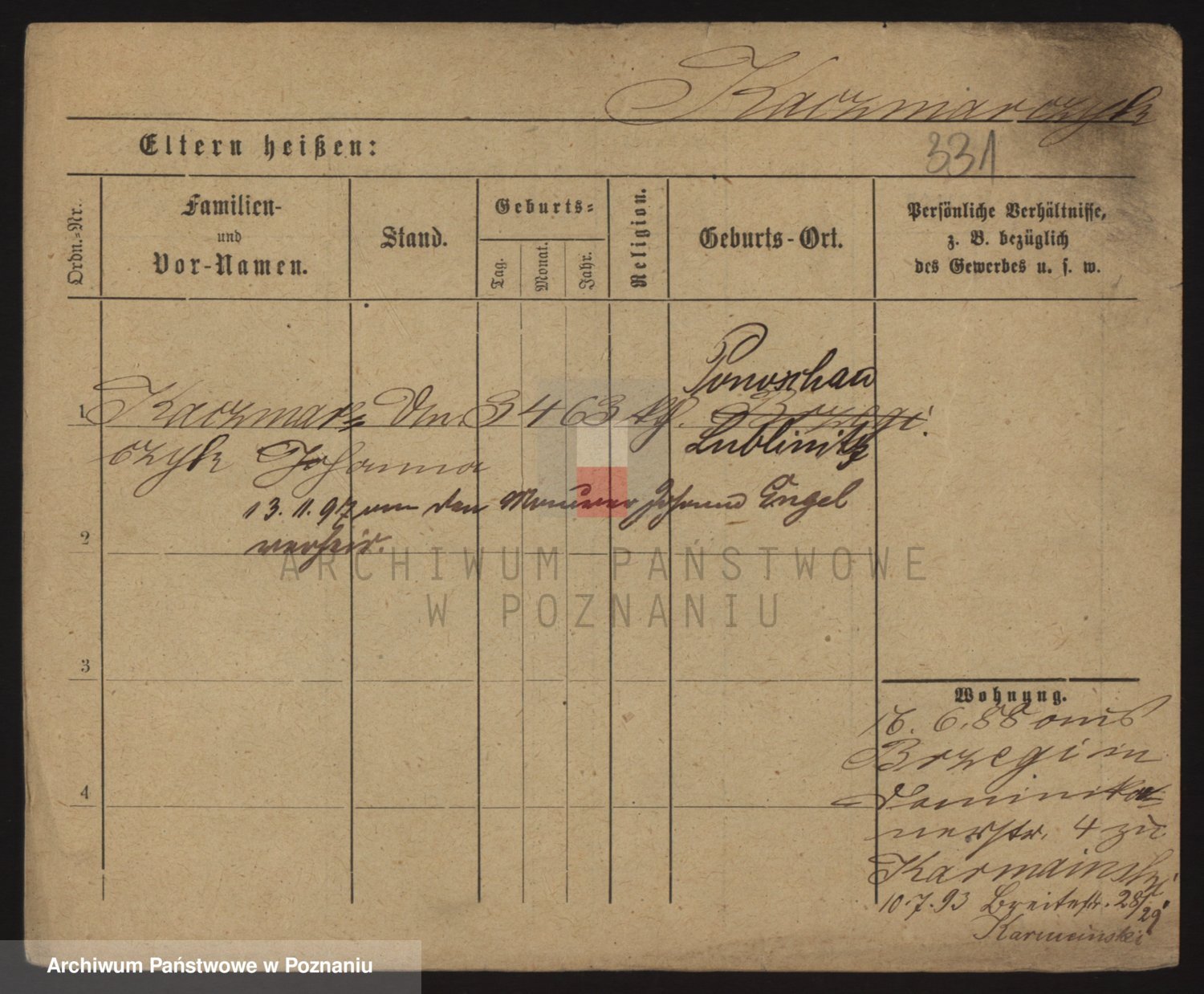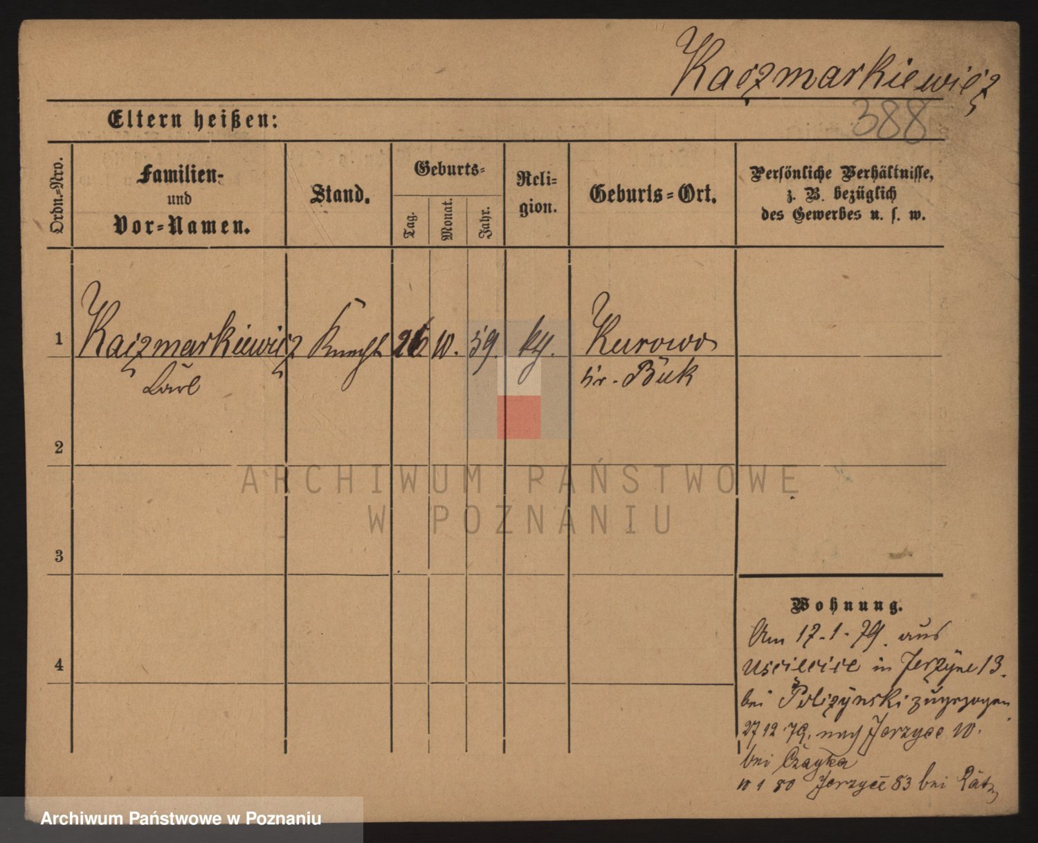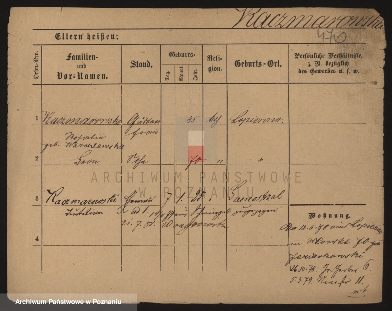 Podgląd karty osobowej dostępny jest po kliknięciu na nazwisko lub ikonkę karty. Można dokonywać powiększenia (ikony na górze) lub przechodzić między kolejnymi skanami (strzałki po bokach).