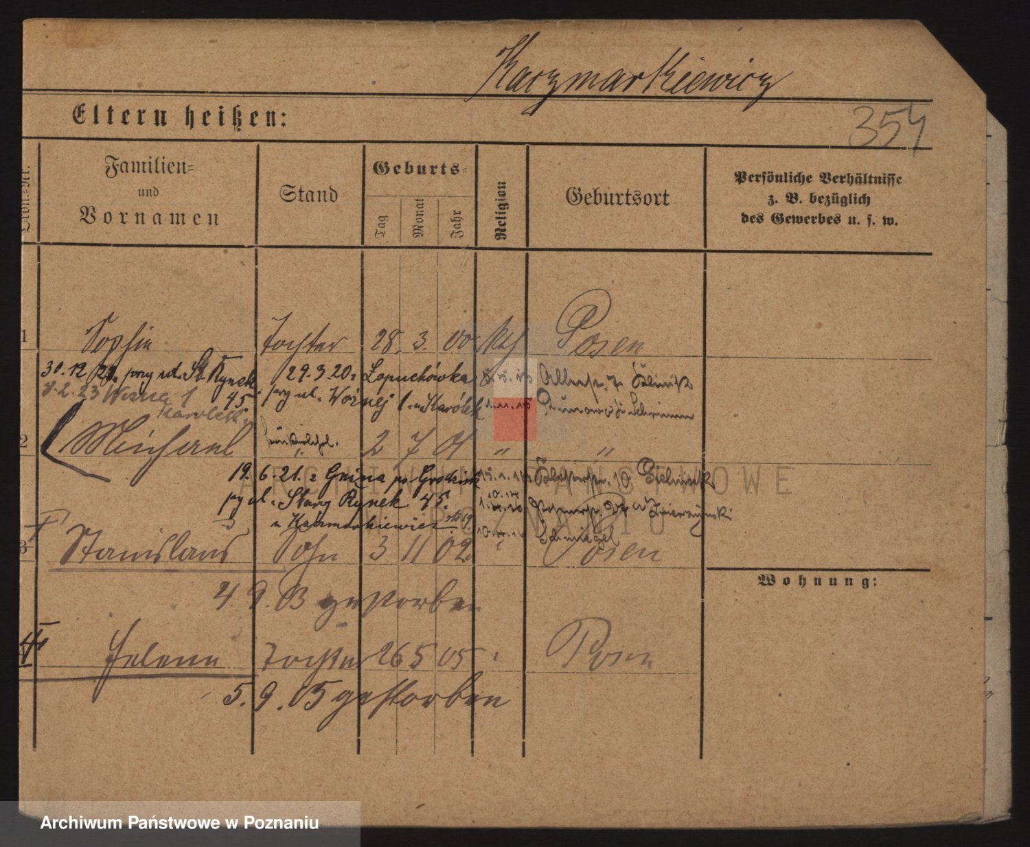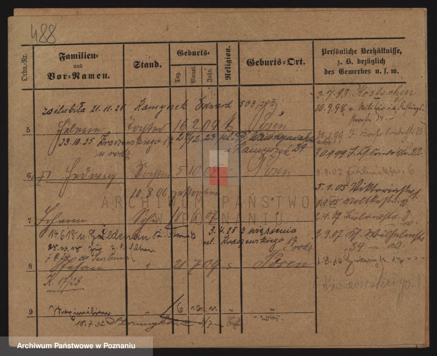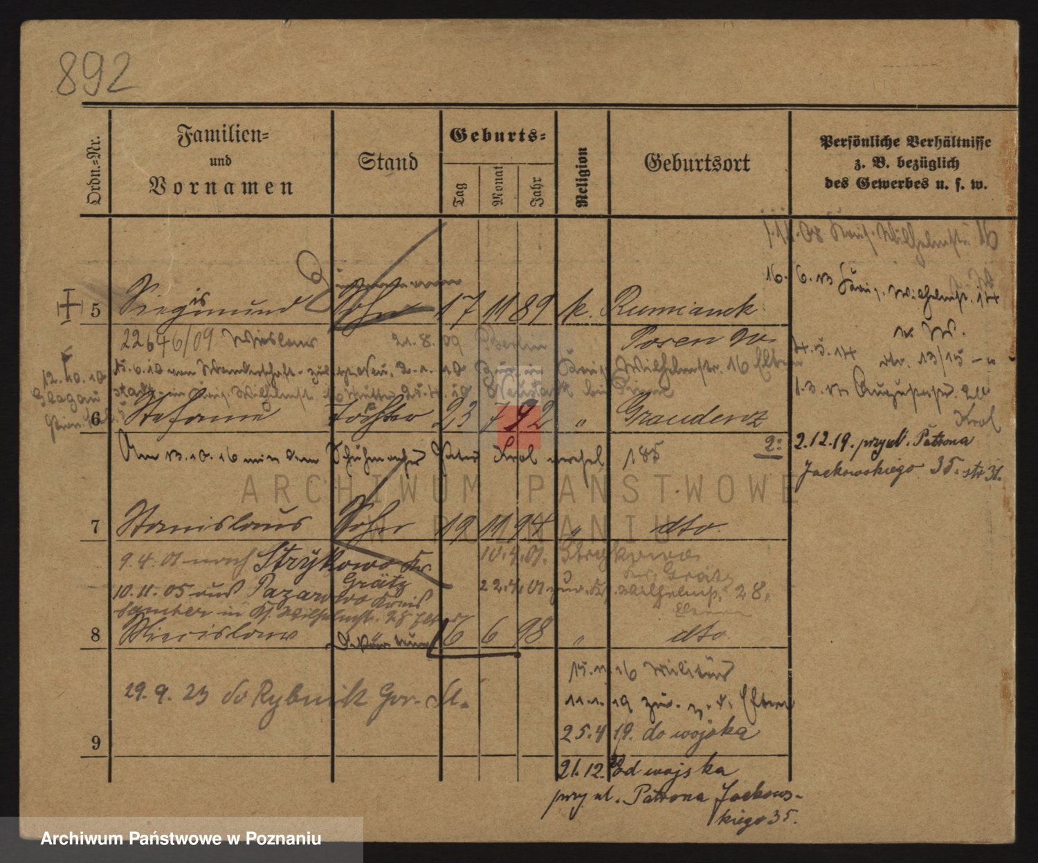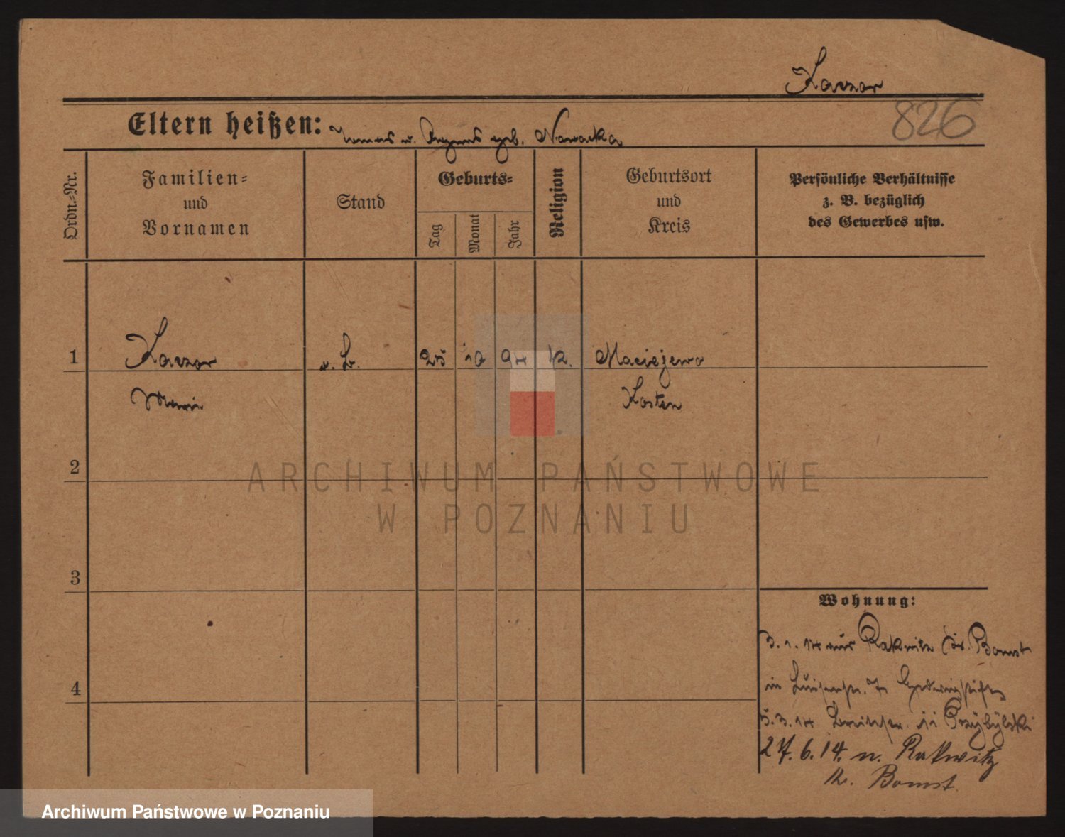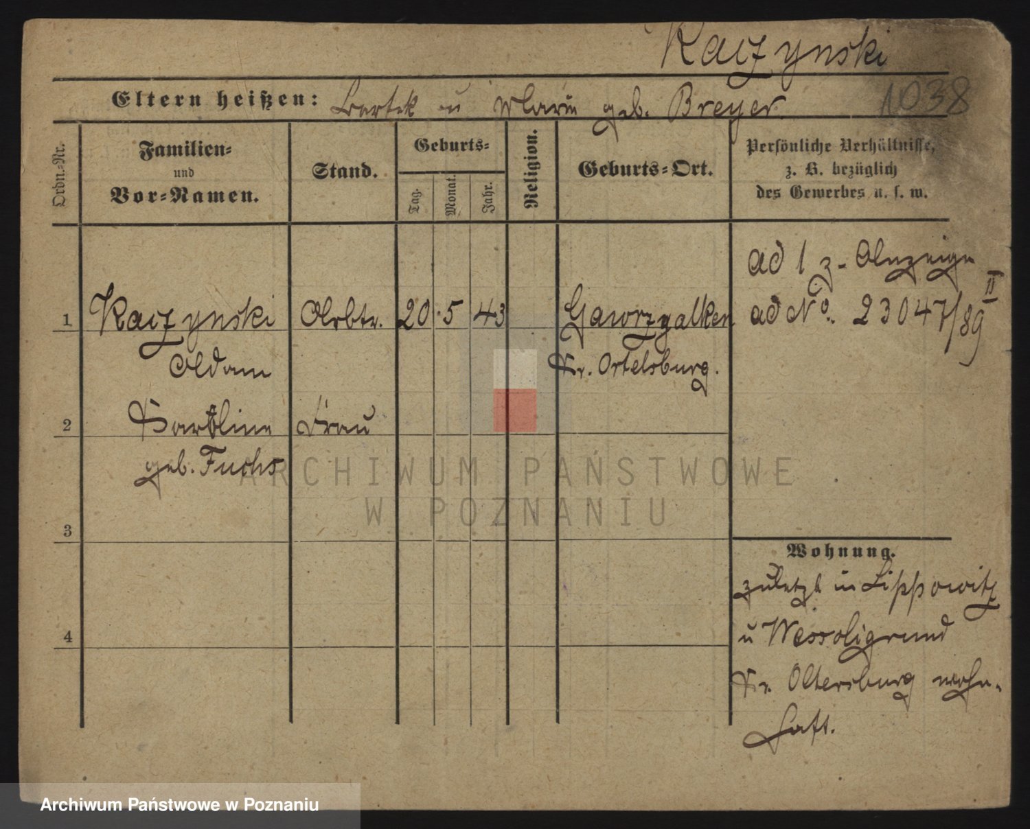 Podgląd karty osobowej dostępny jest po kliknięciu na nazwisko lub ikonkę karty. Można dokonywać powiększenia (ikony na górze) lub przechodzić między kolejnymi skanami (strzałki po bokach).