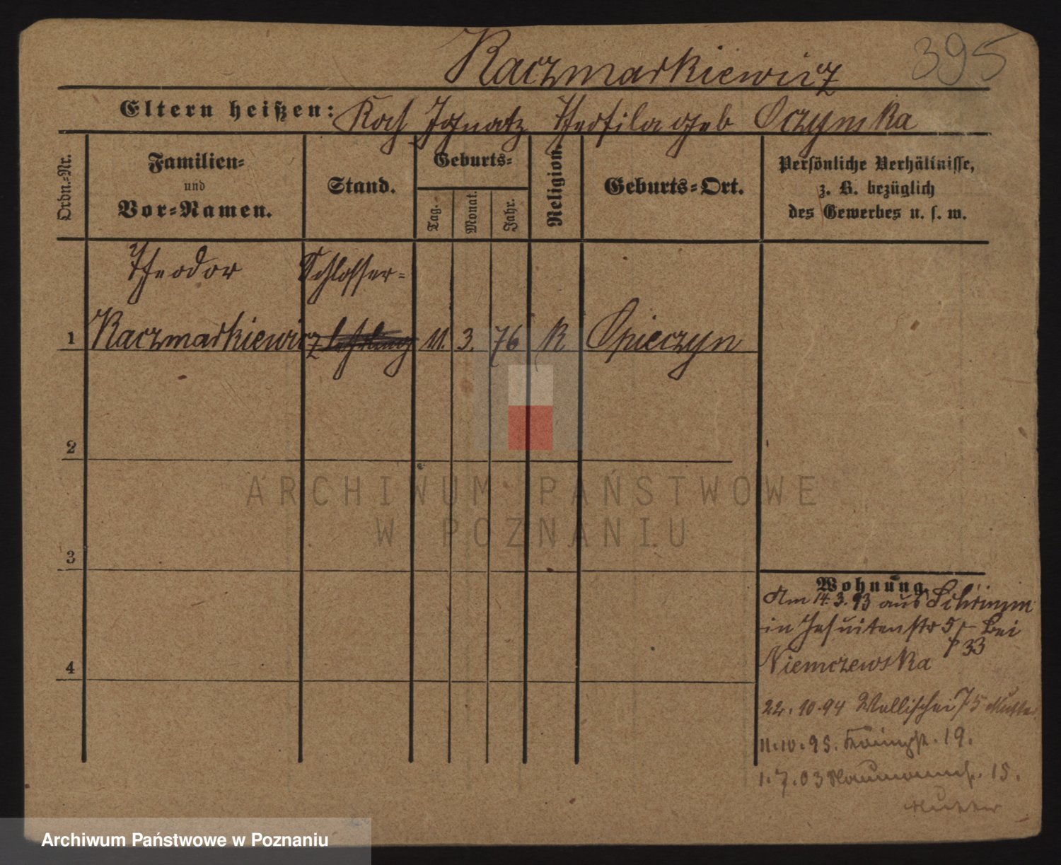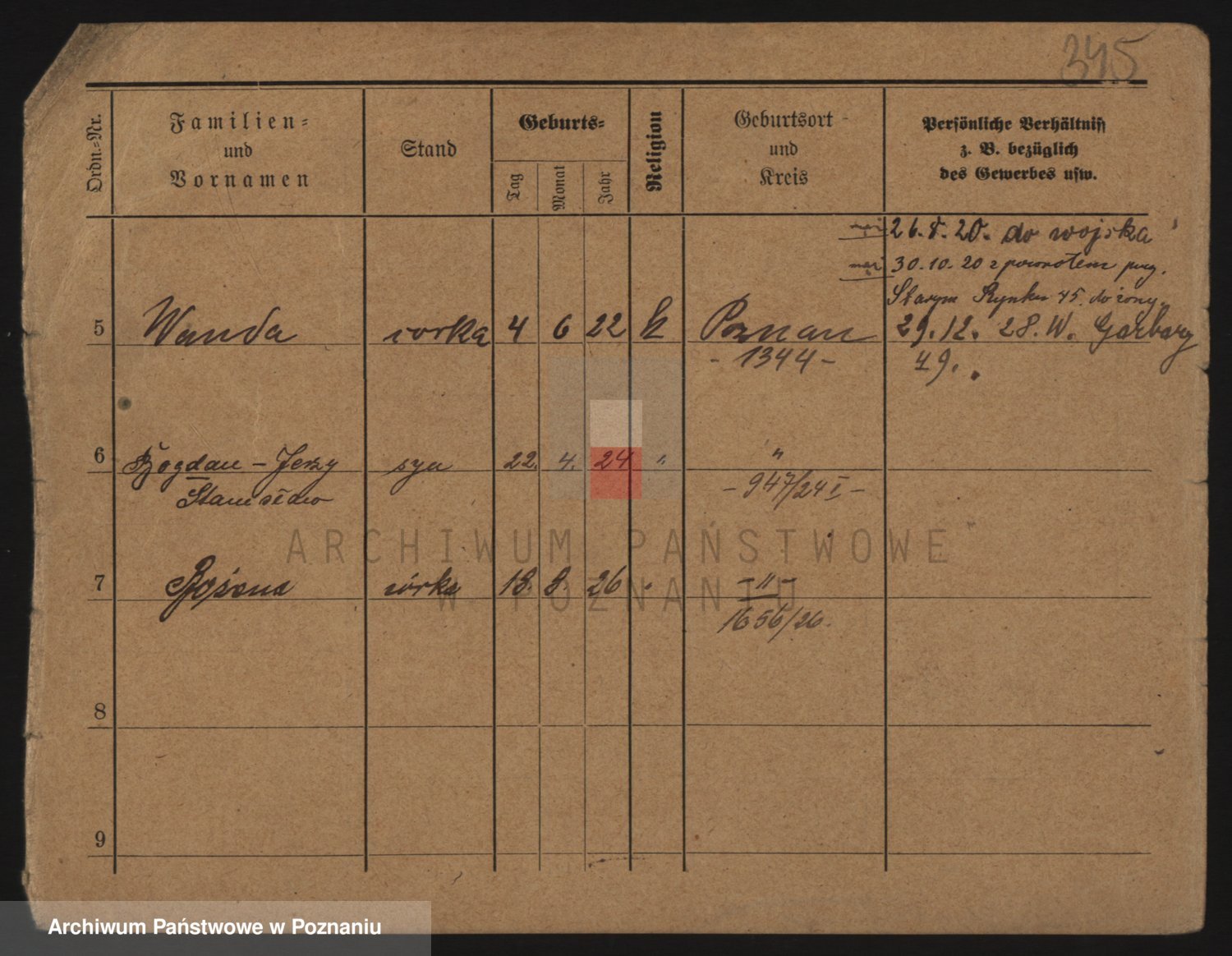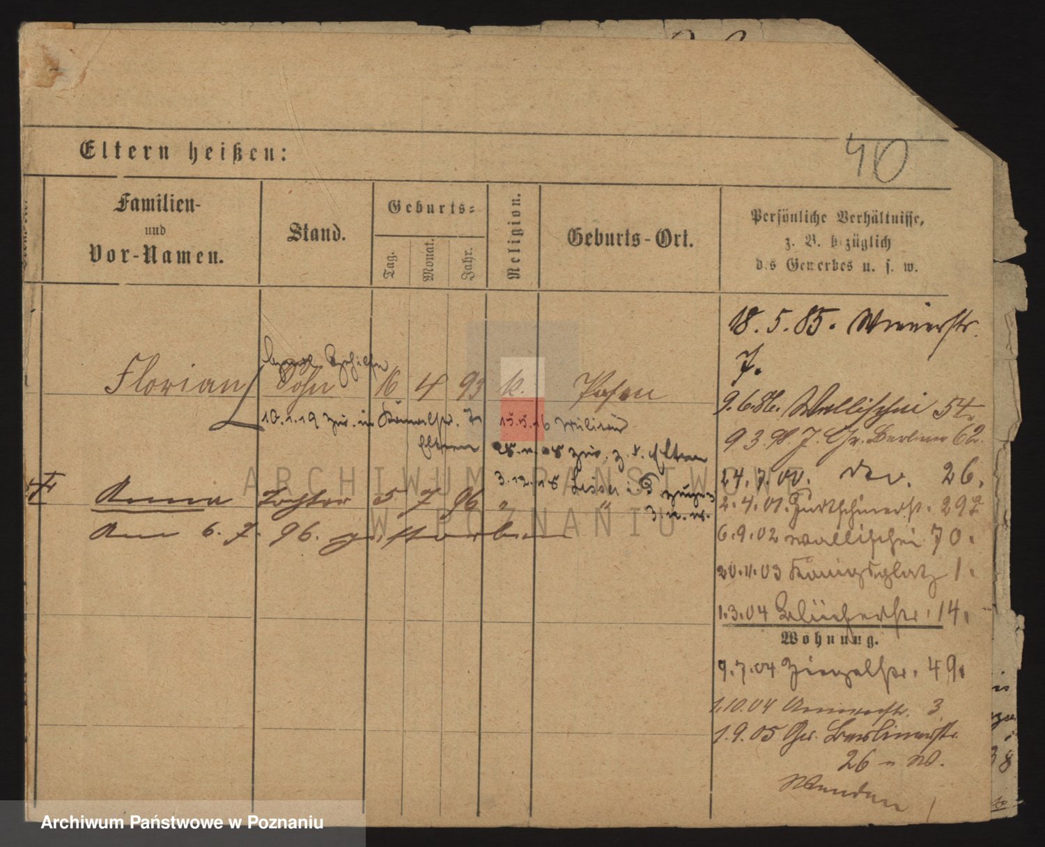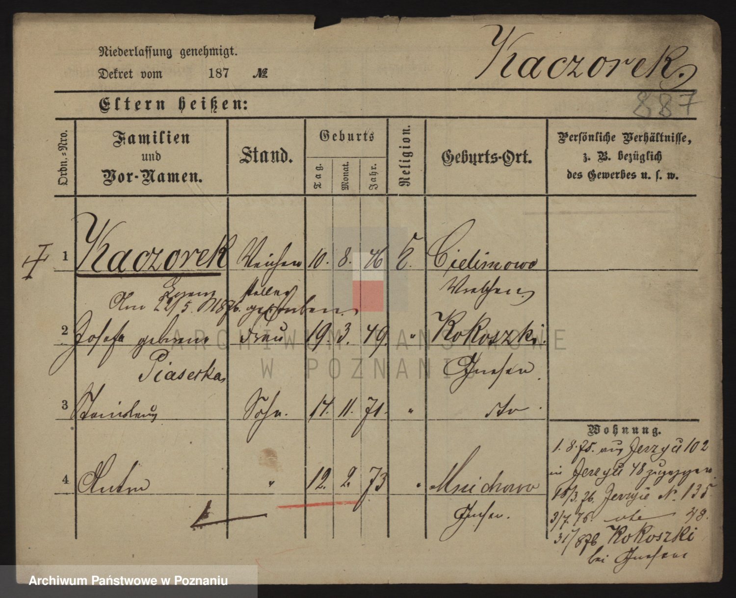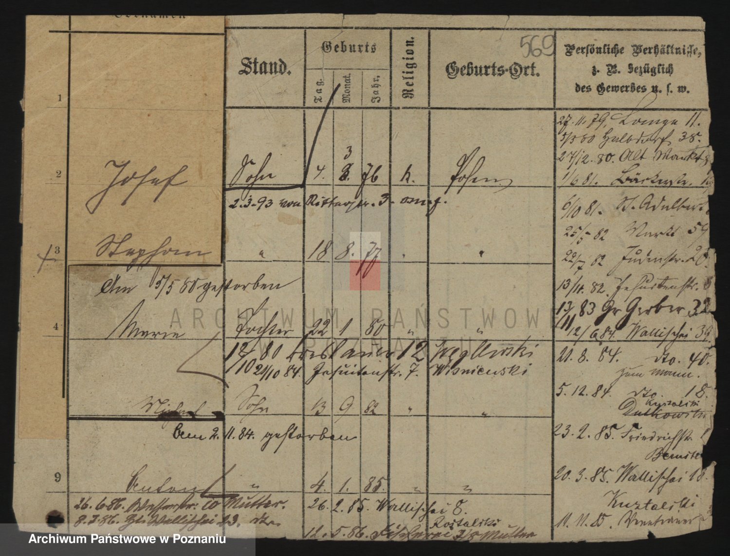 Podgląd karty osobowej dostępny jest po kliknięciu na nazwisko lub ikonkę karty. Można dokonywać powiększenia (ikony na górze) lub przechodzić między kolejnymi skanami (strzałki po bokach).