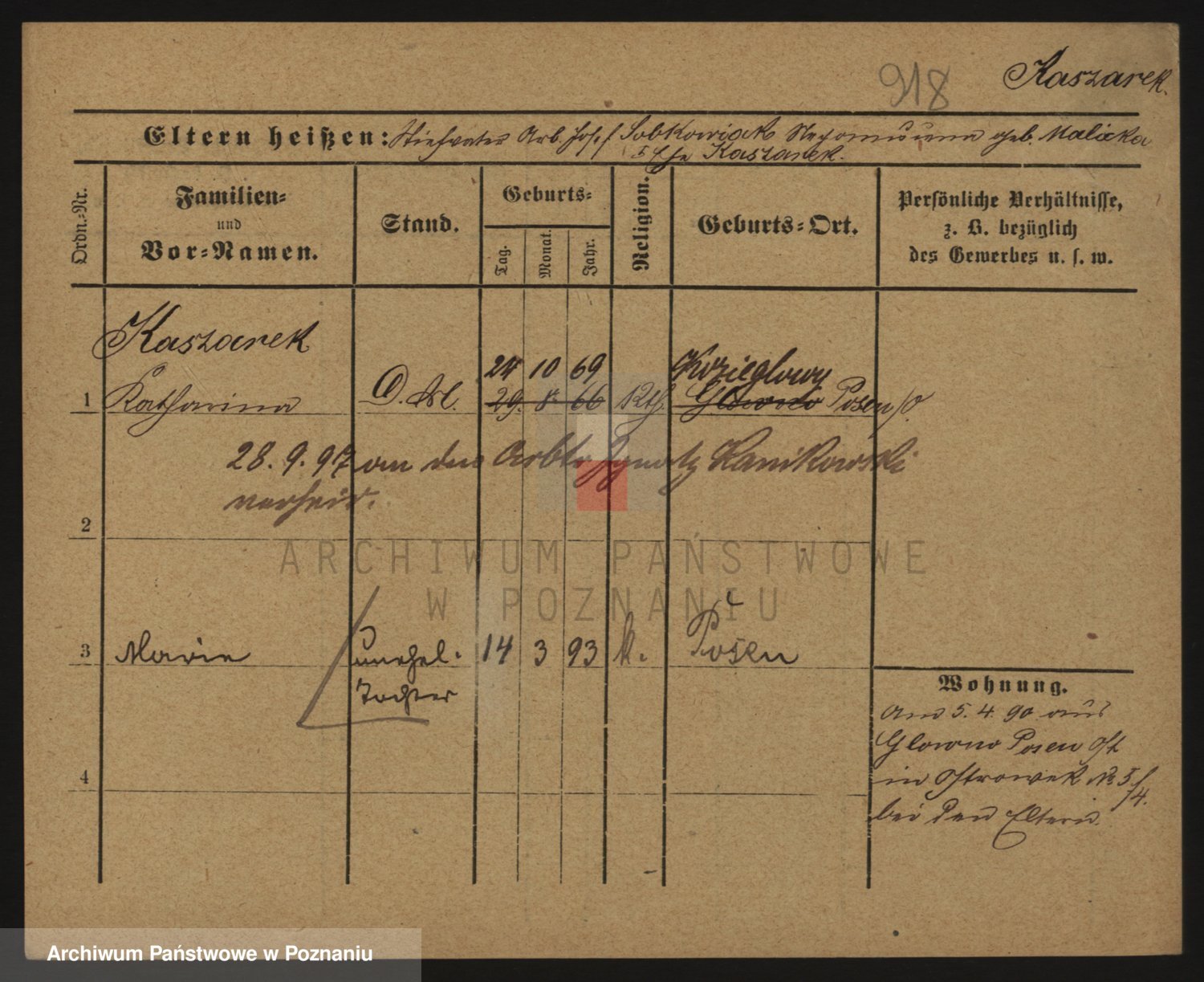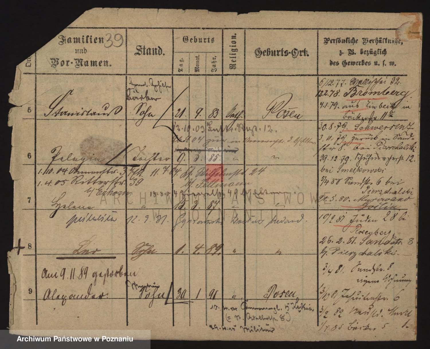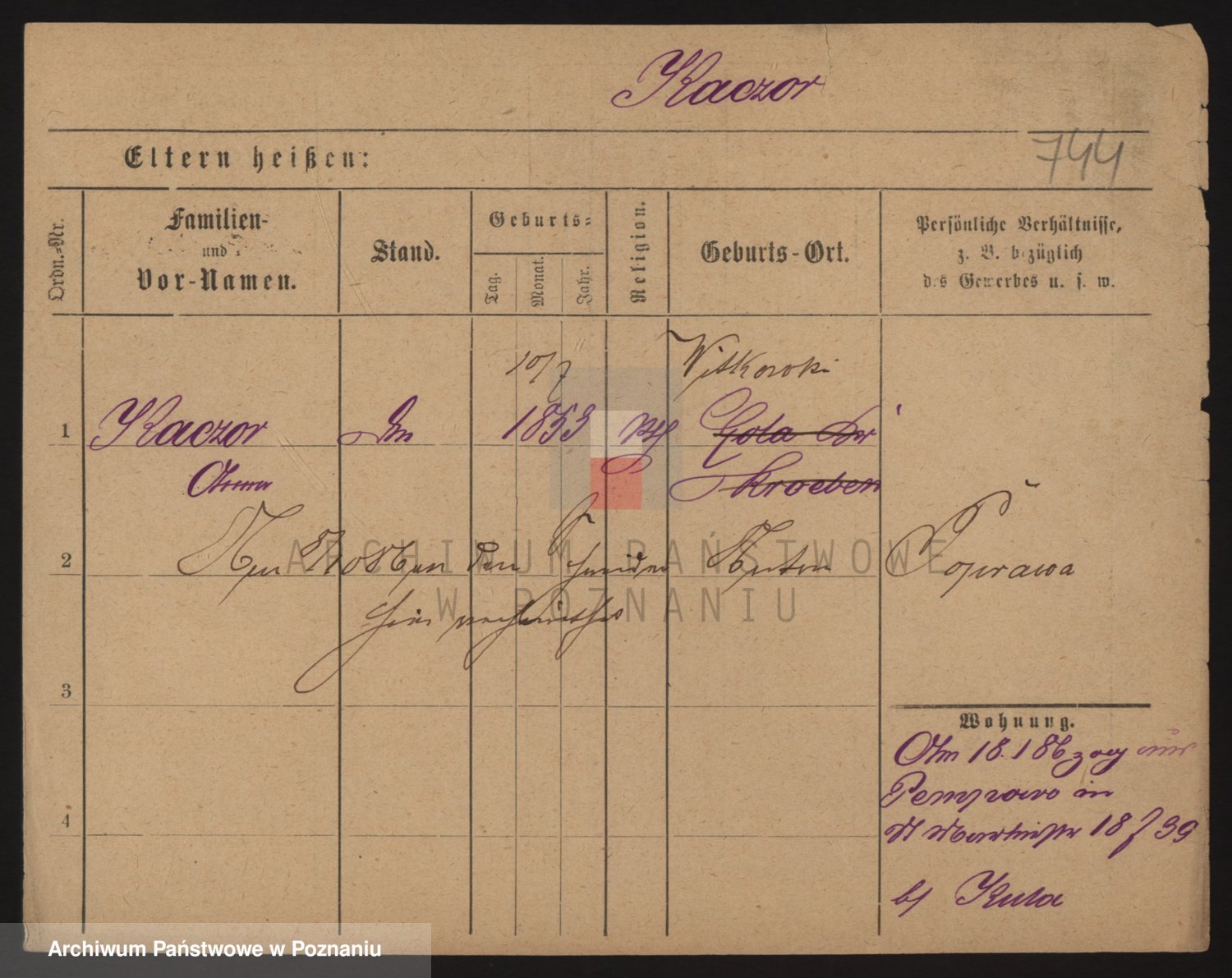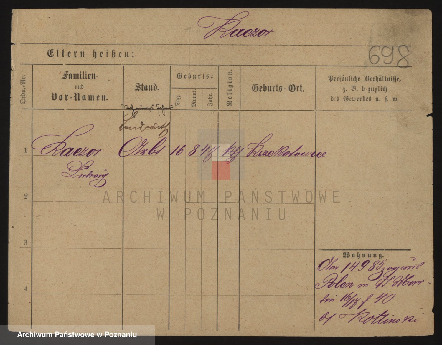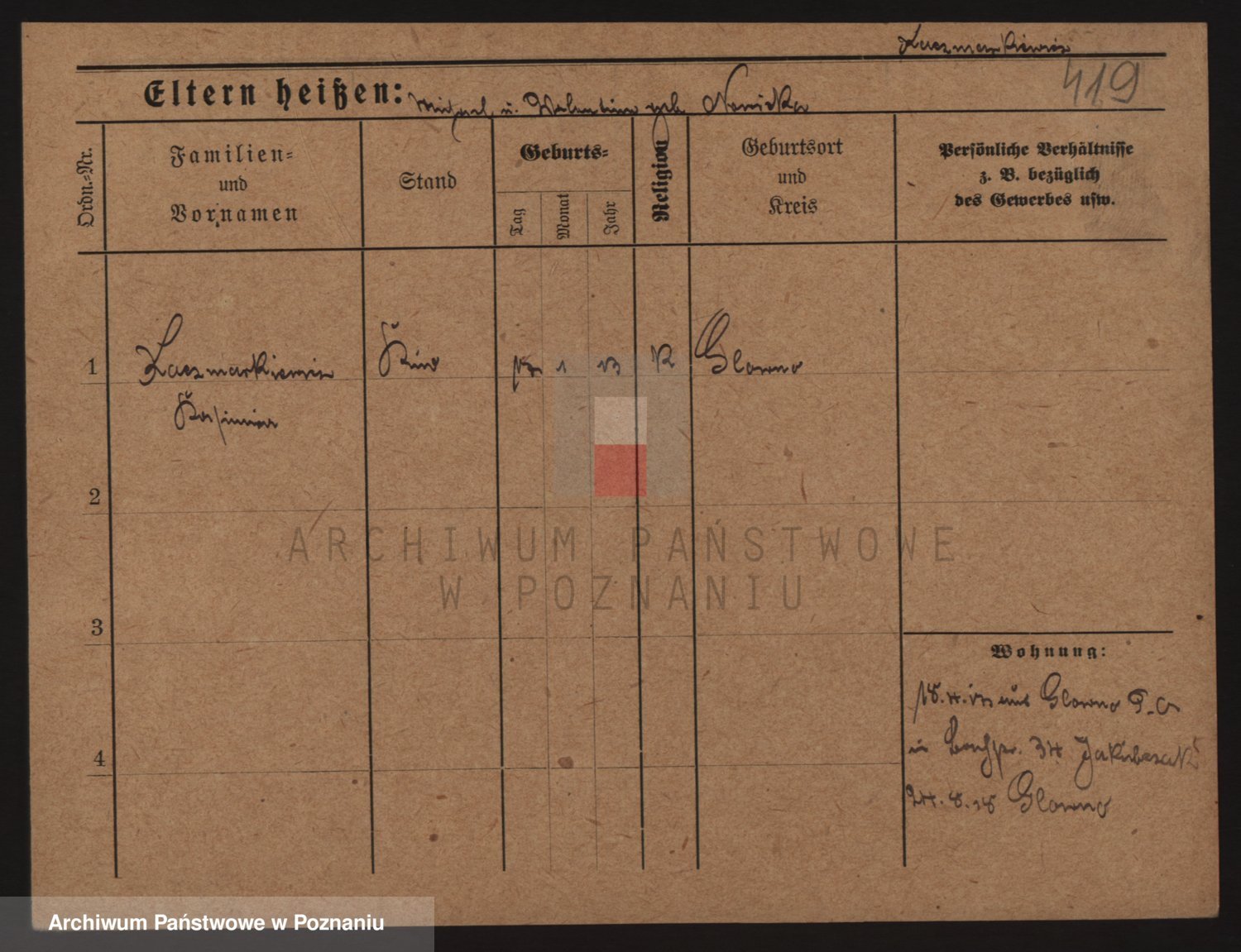 Podgląd karty osobowej dostępny jest po kliknięciu na nazwisko lub ikonkę karty. Można dokonywać powiększenia (ikony na górze) lub przechodzić między kolejnymi skanami (strzałki po bokach).