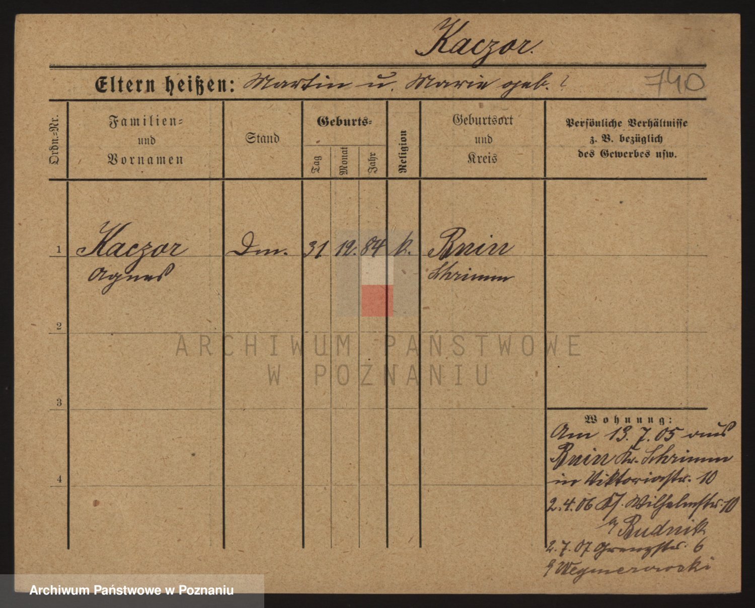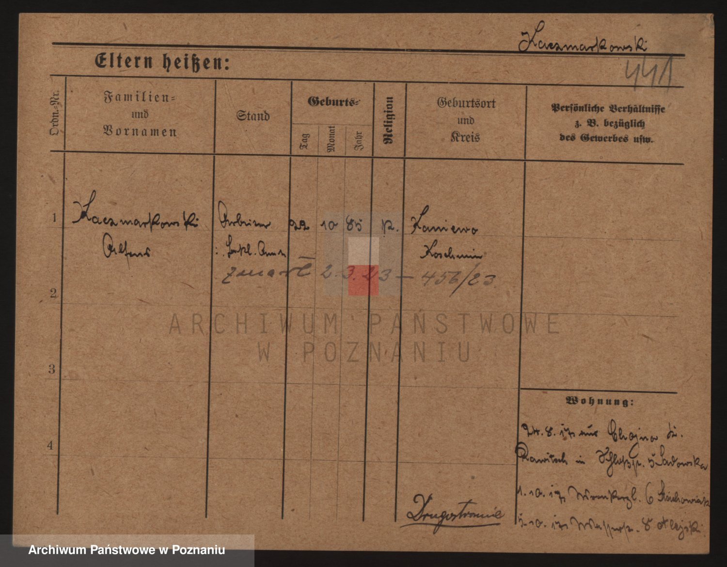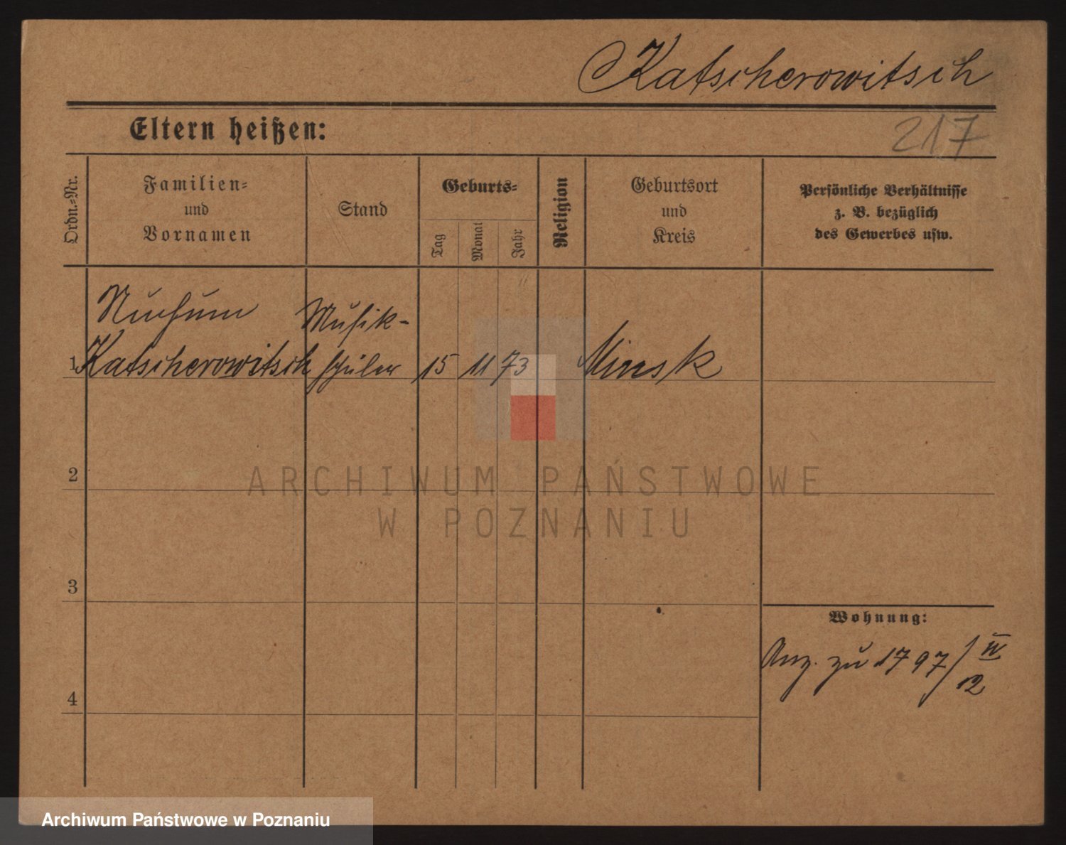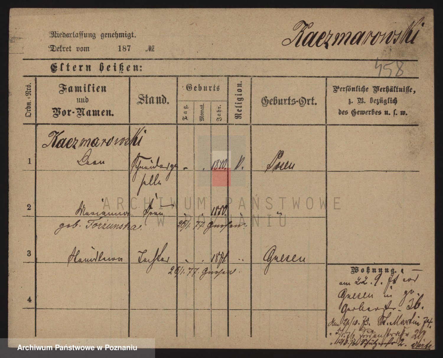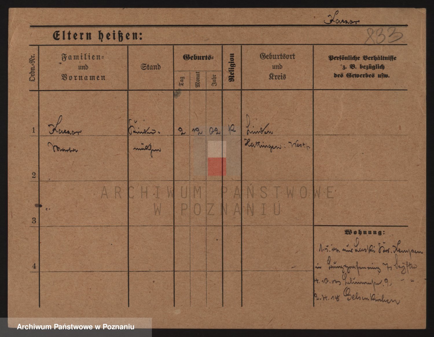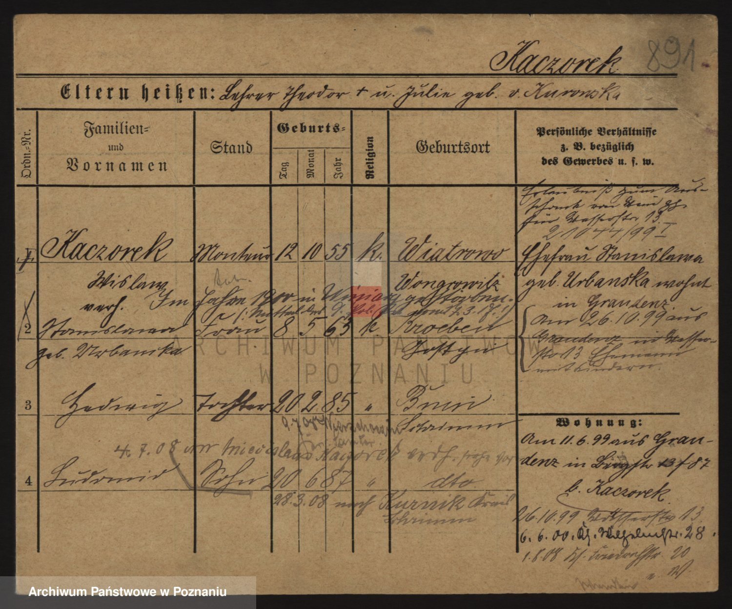 Podgląd karty osobowej dostępny jest po kliknięciu na nazwisko lub ikonkę karty. Można dokonywać powiększenia (ikony na górze) lub przechodzić między kolejnymi skanami (strzałki po bokach).