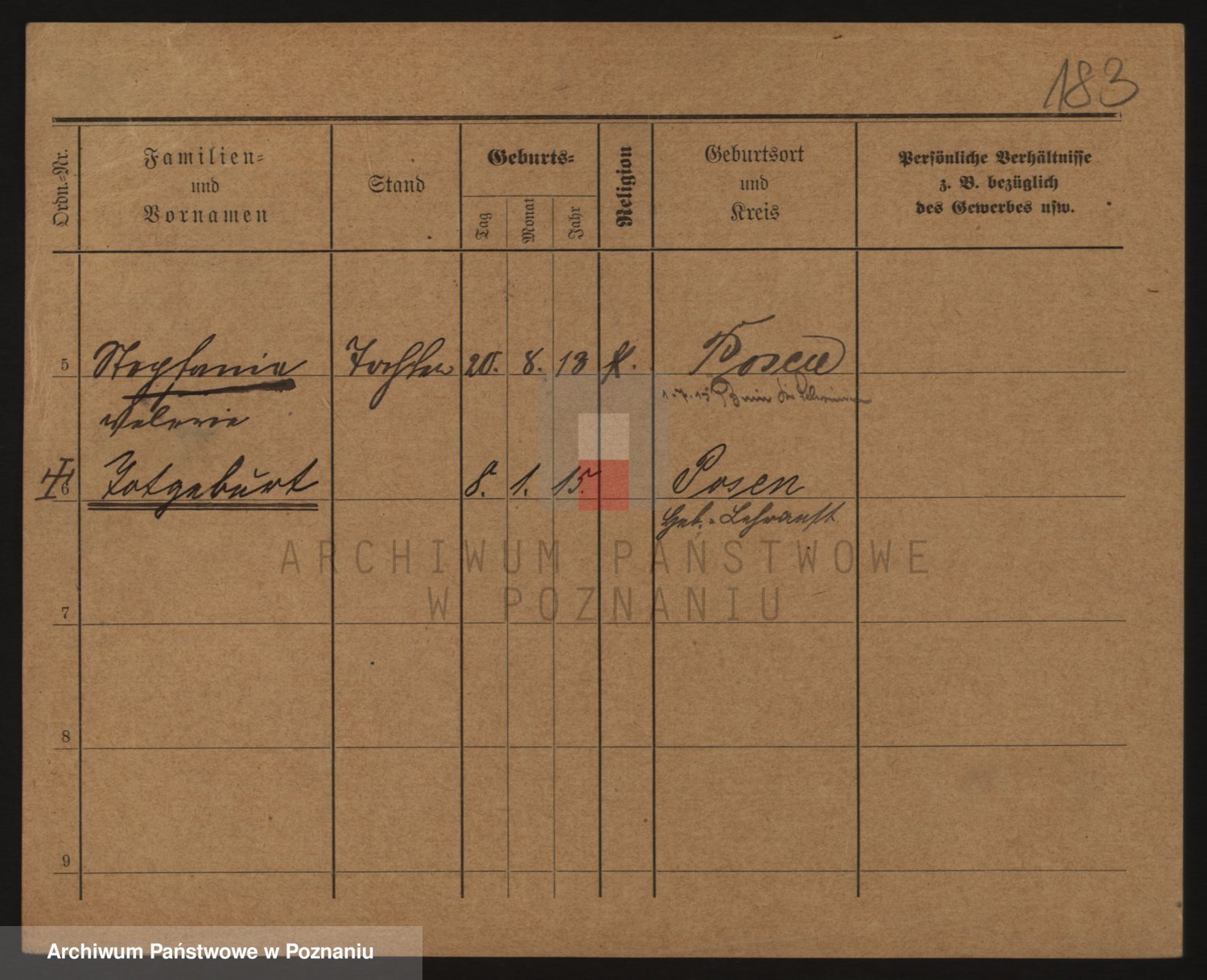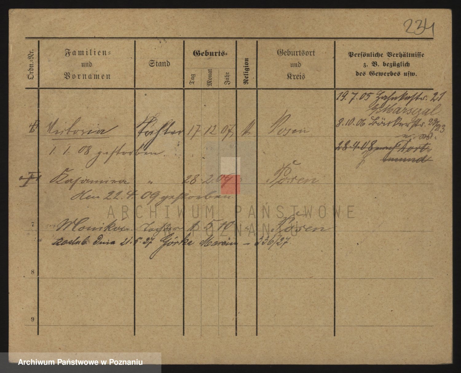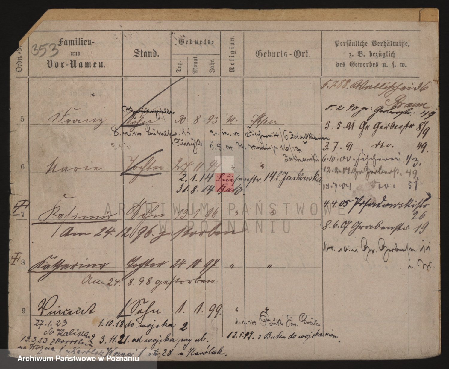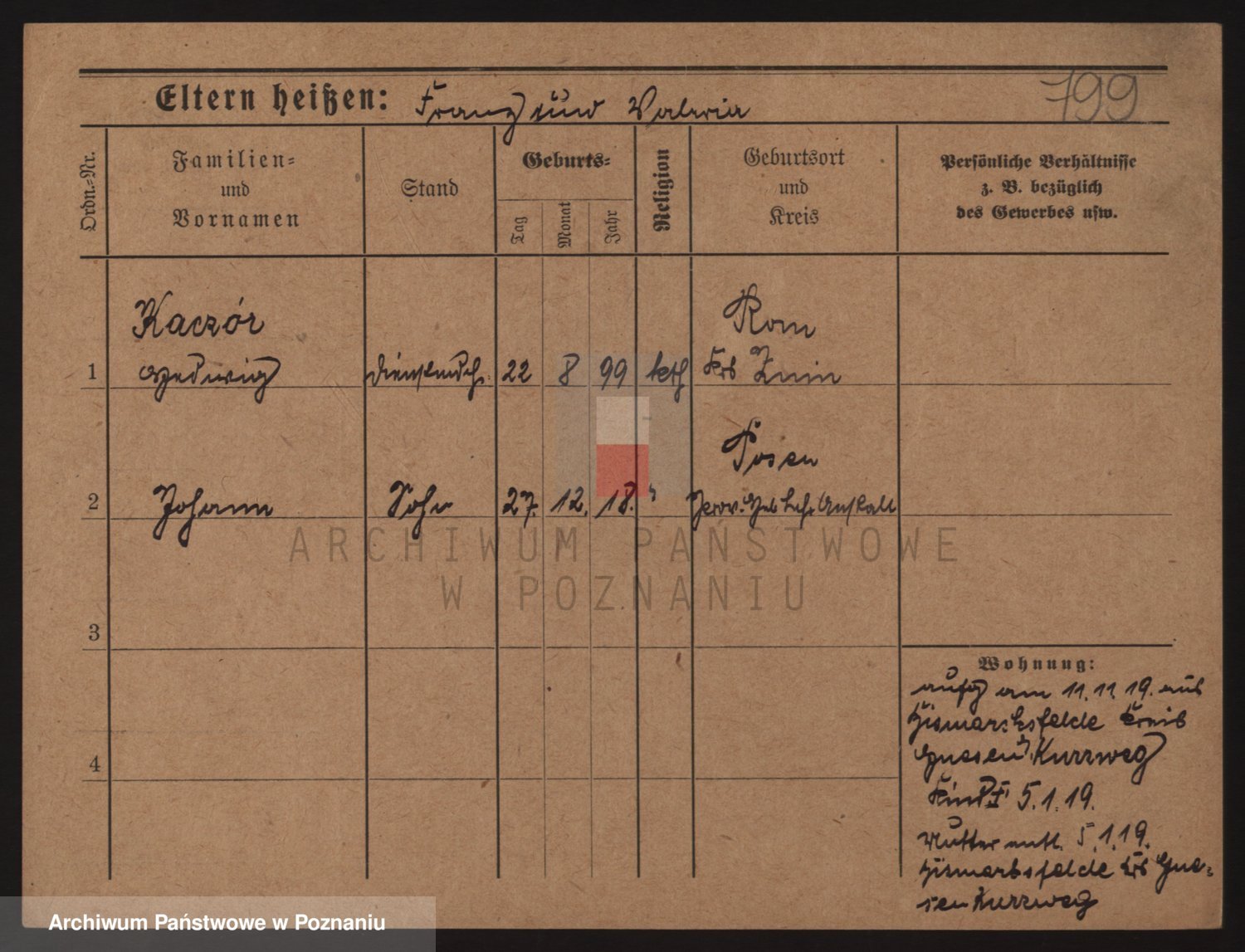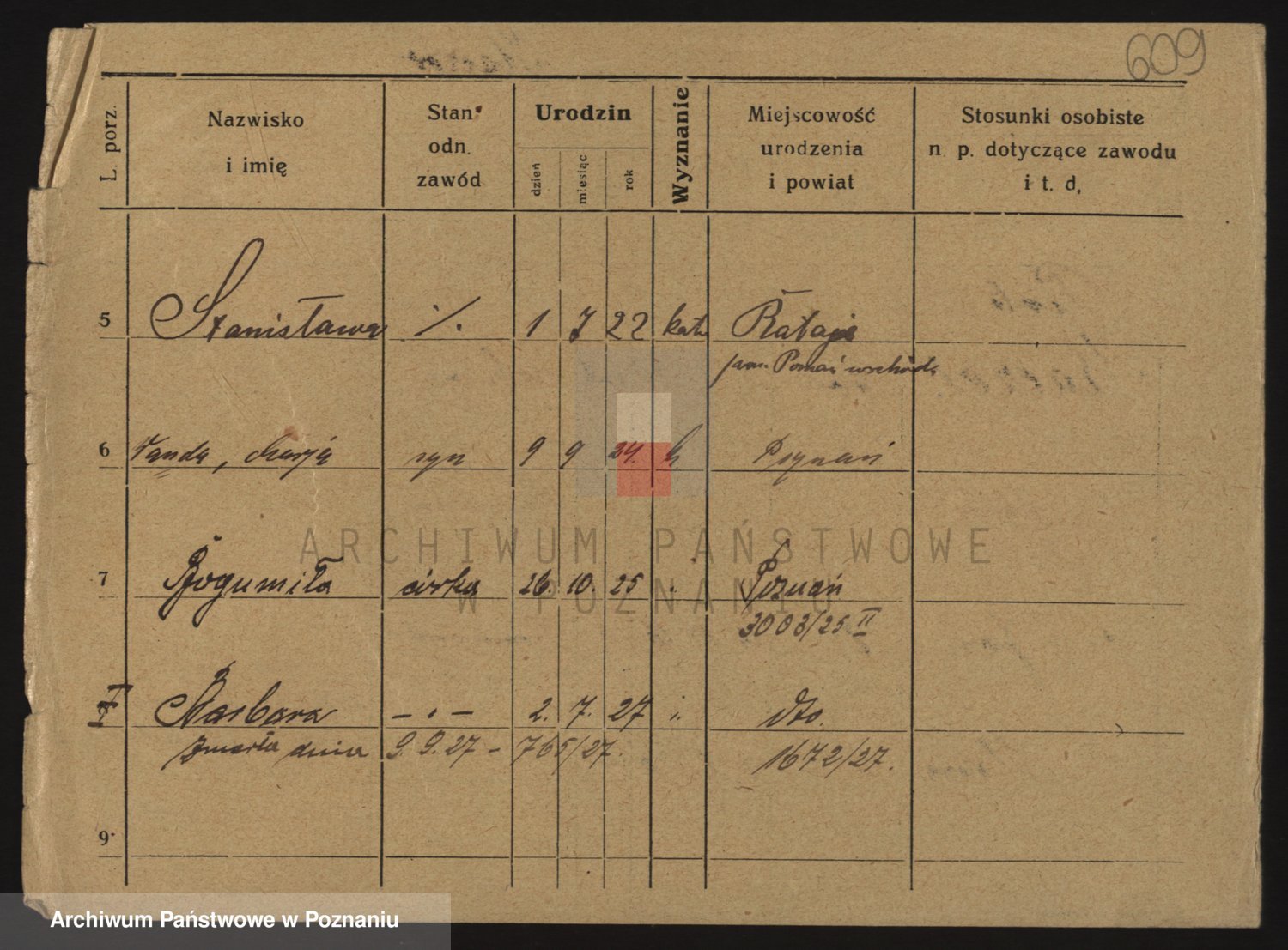 Podgląd karty osobowej dostępny jest po kliknięciu na nazwisko lub ikonkę karty. Można dokonywać powiększenia (ikony na górze) lub przechodzić między kolejnymi skanami (strzałki po bokach).