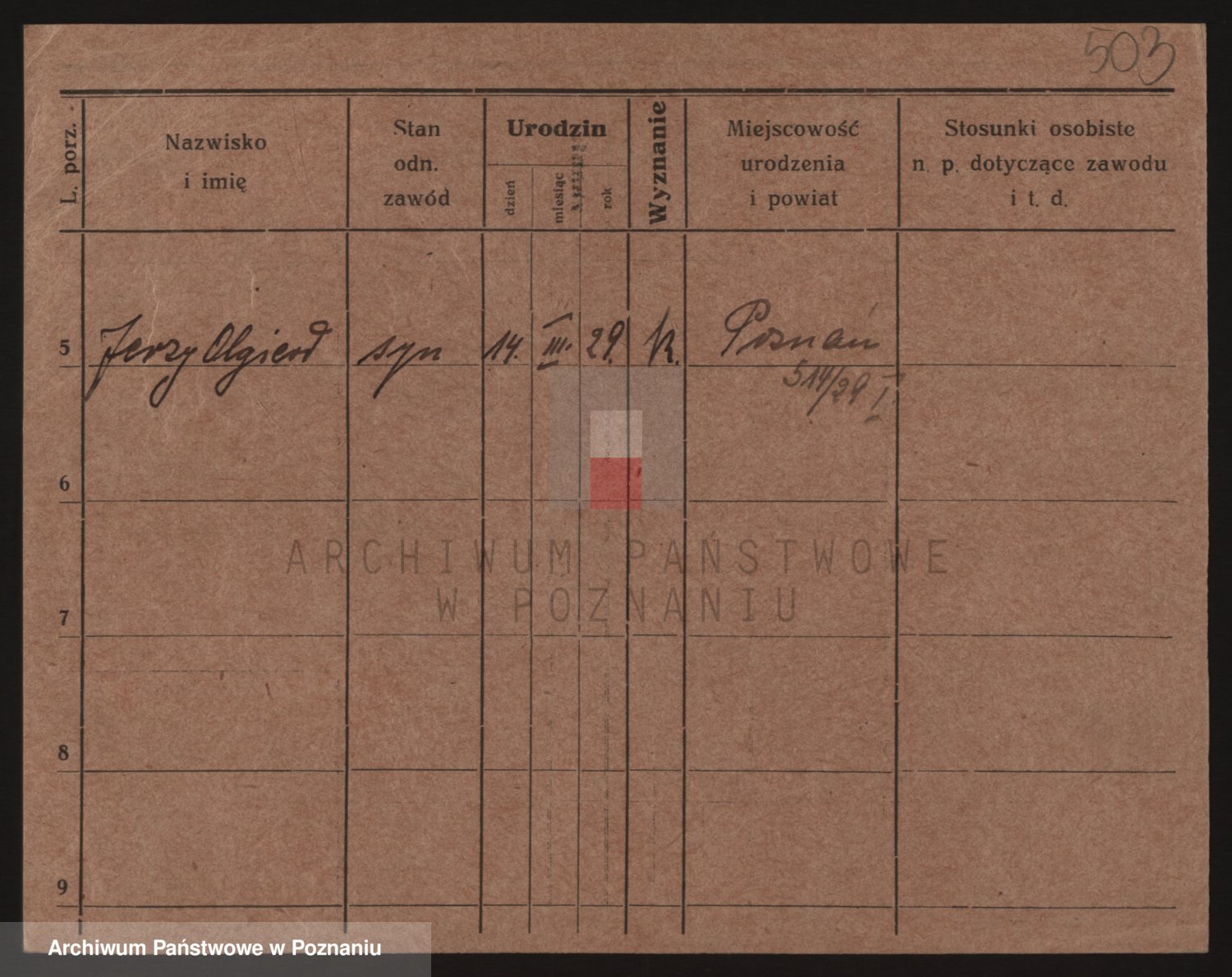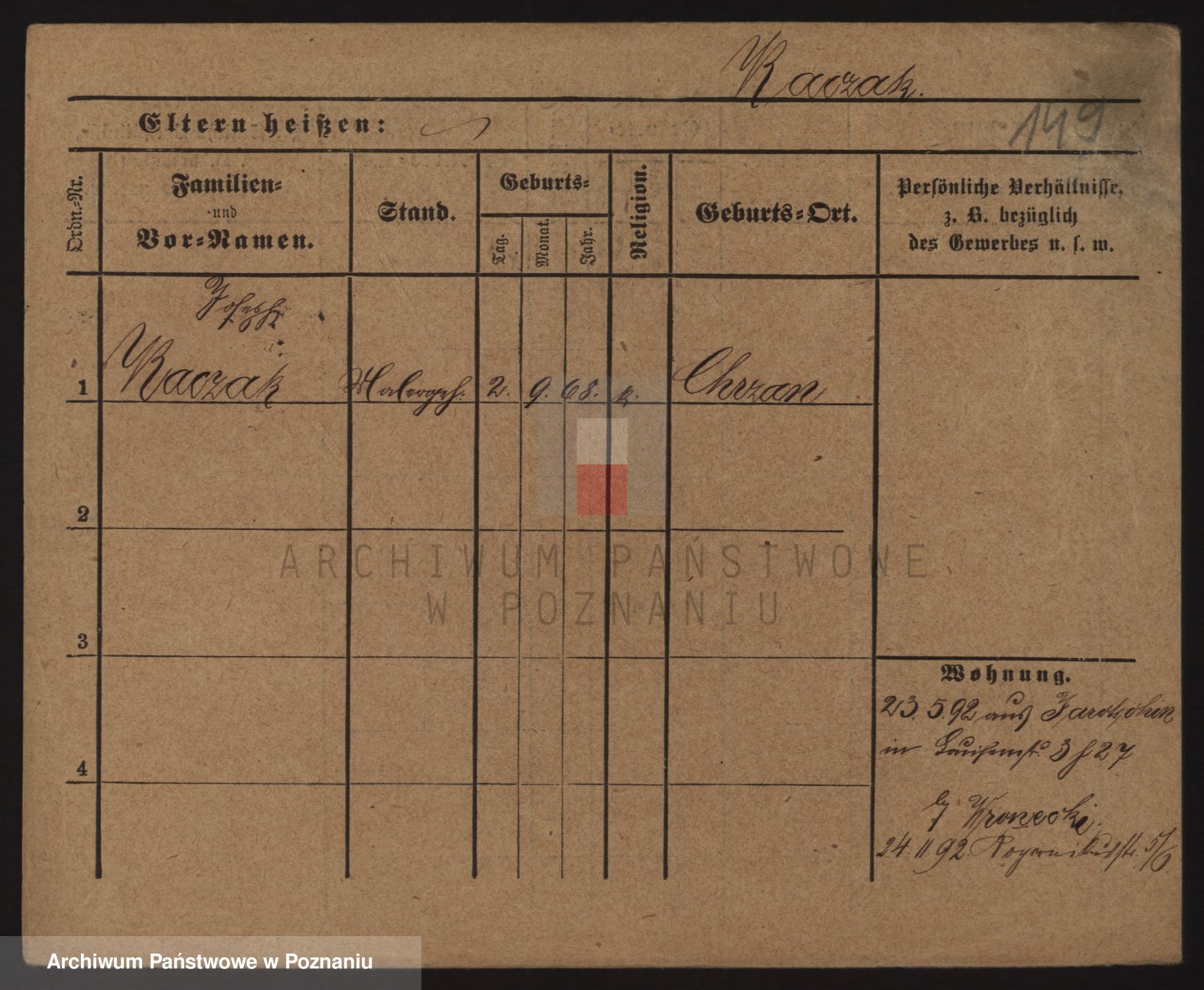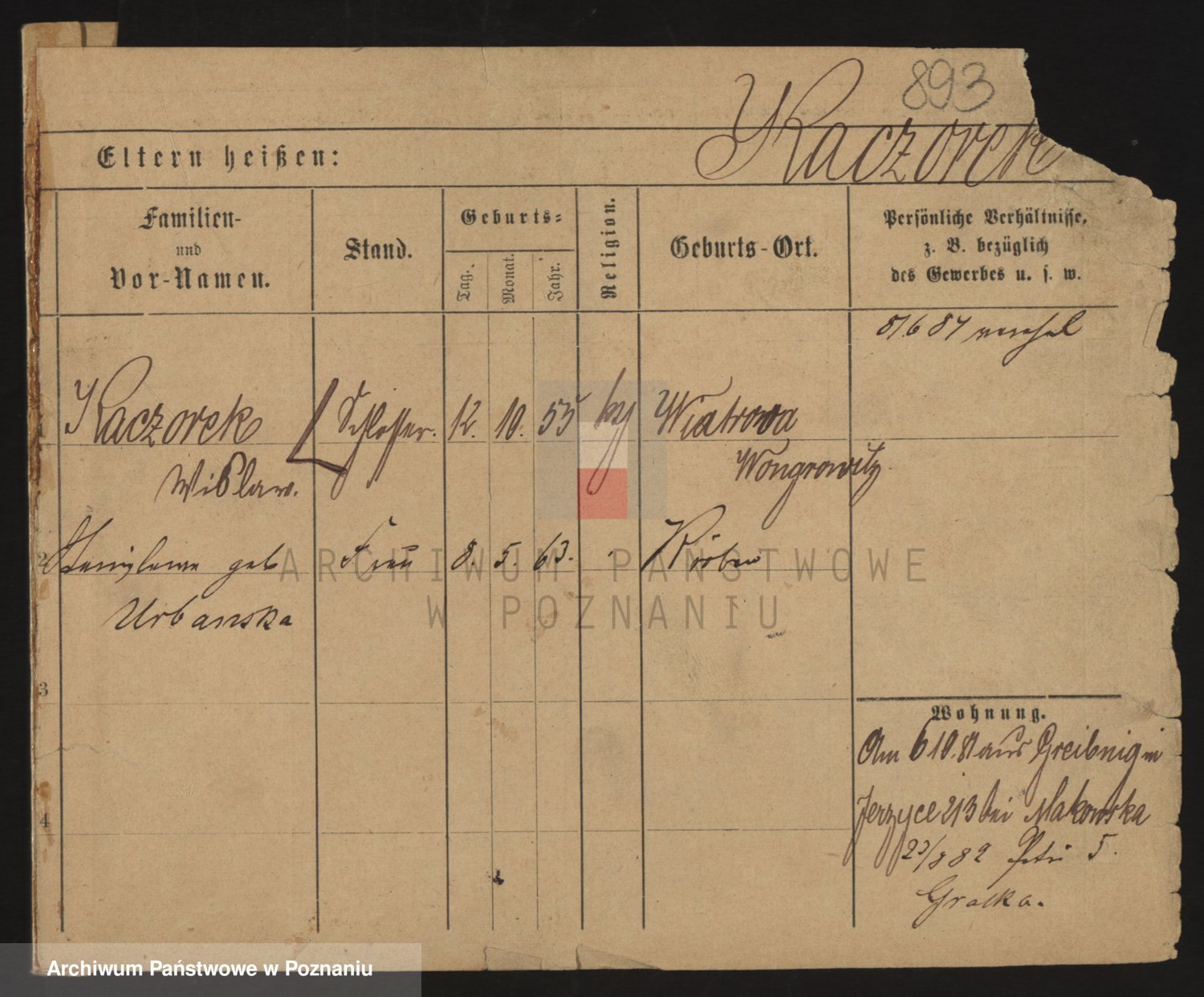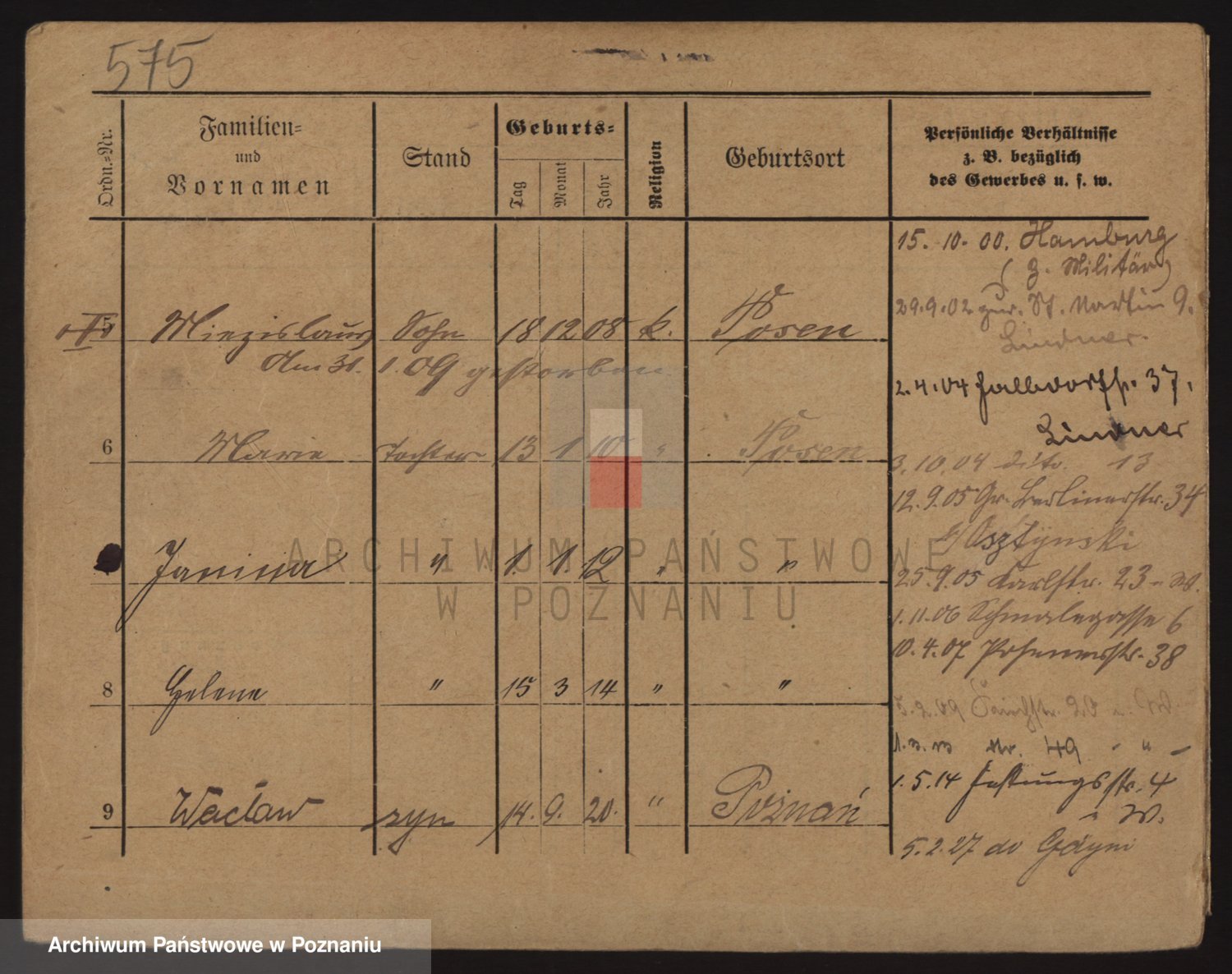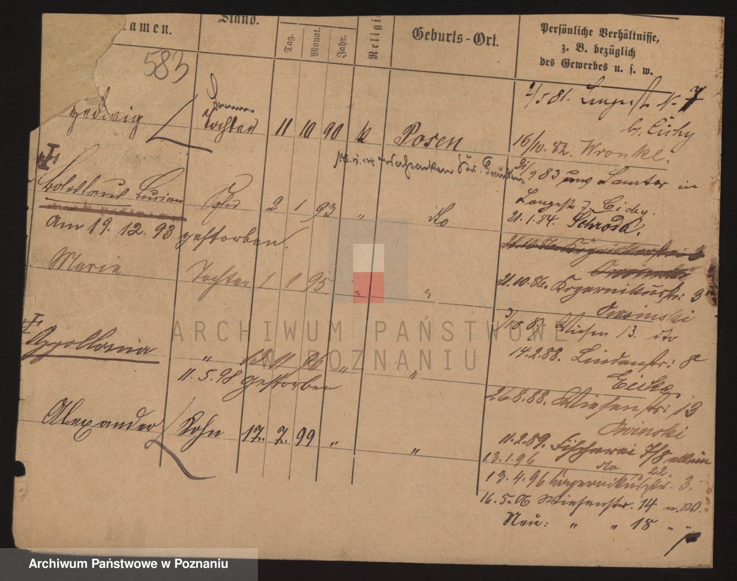 Podgląd karty osobowej dostępny jest po kliknięciu na nazwisko lub ikonkę karty. Można dokonywać powiększenia (ikony na górze) lub przechodzić między kolejnymi skanami (strzałki po bokach).