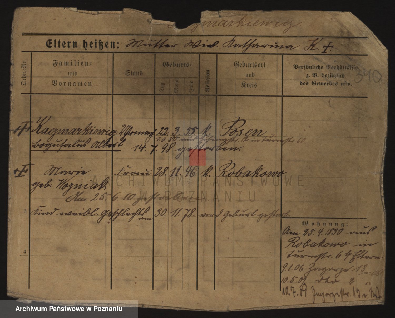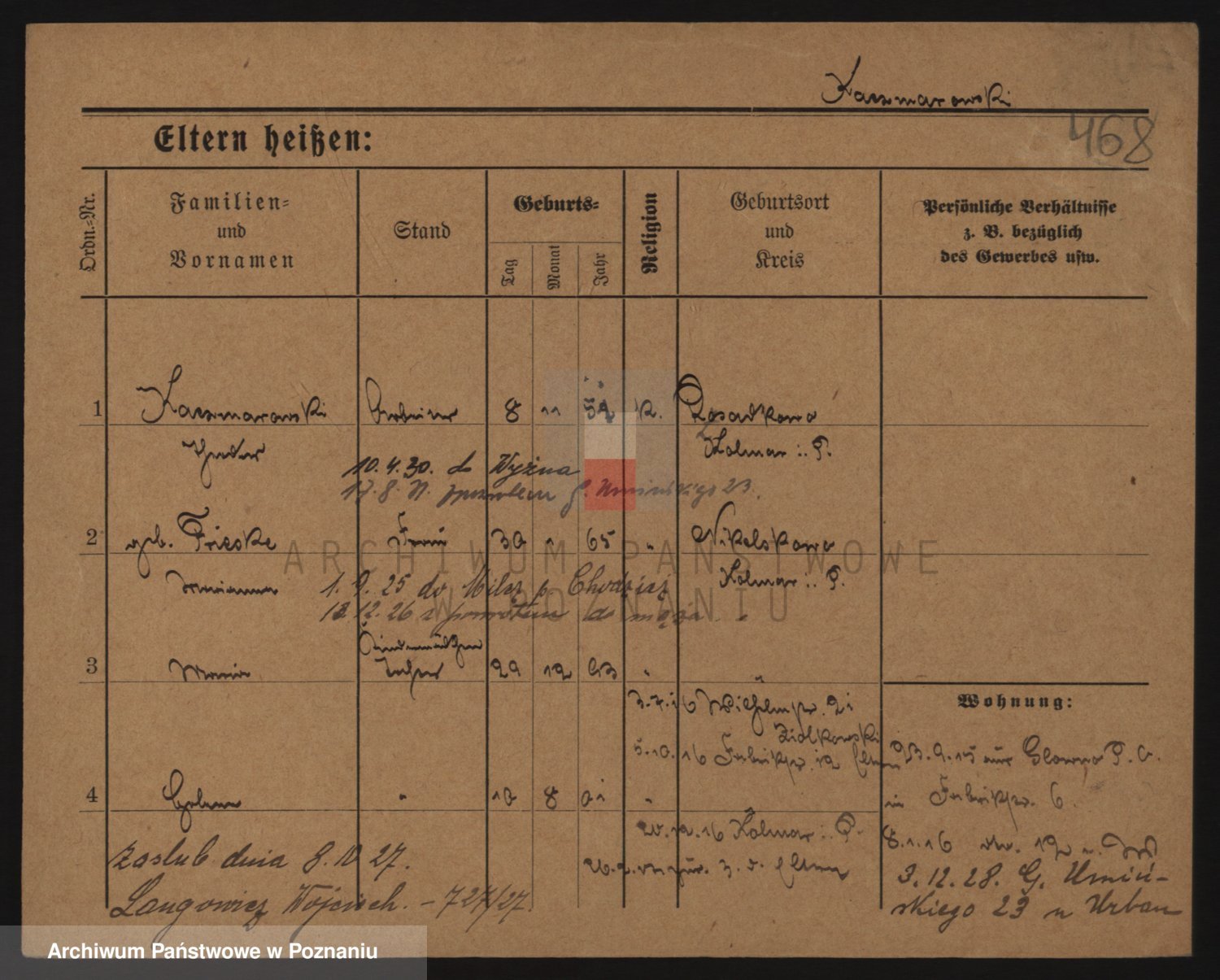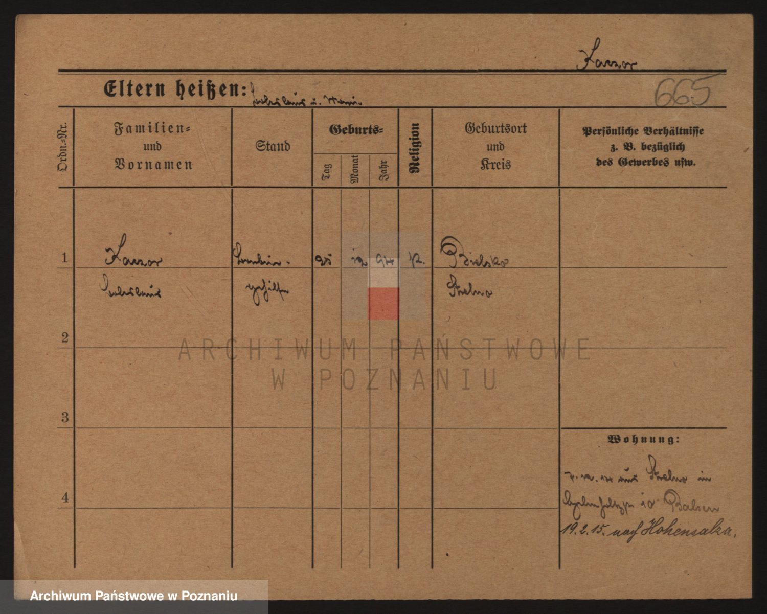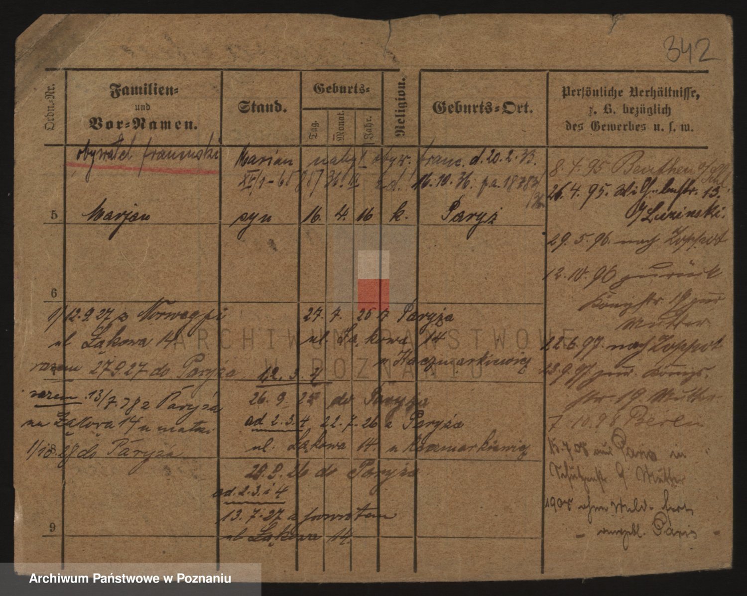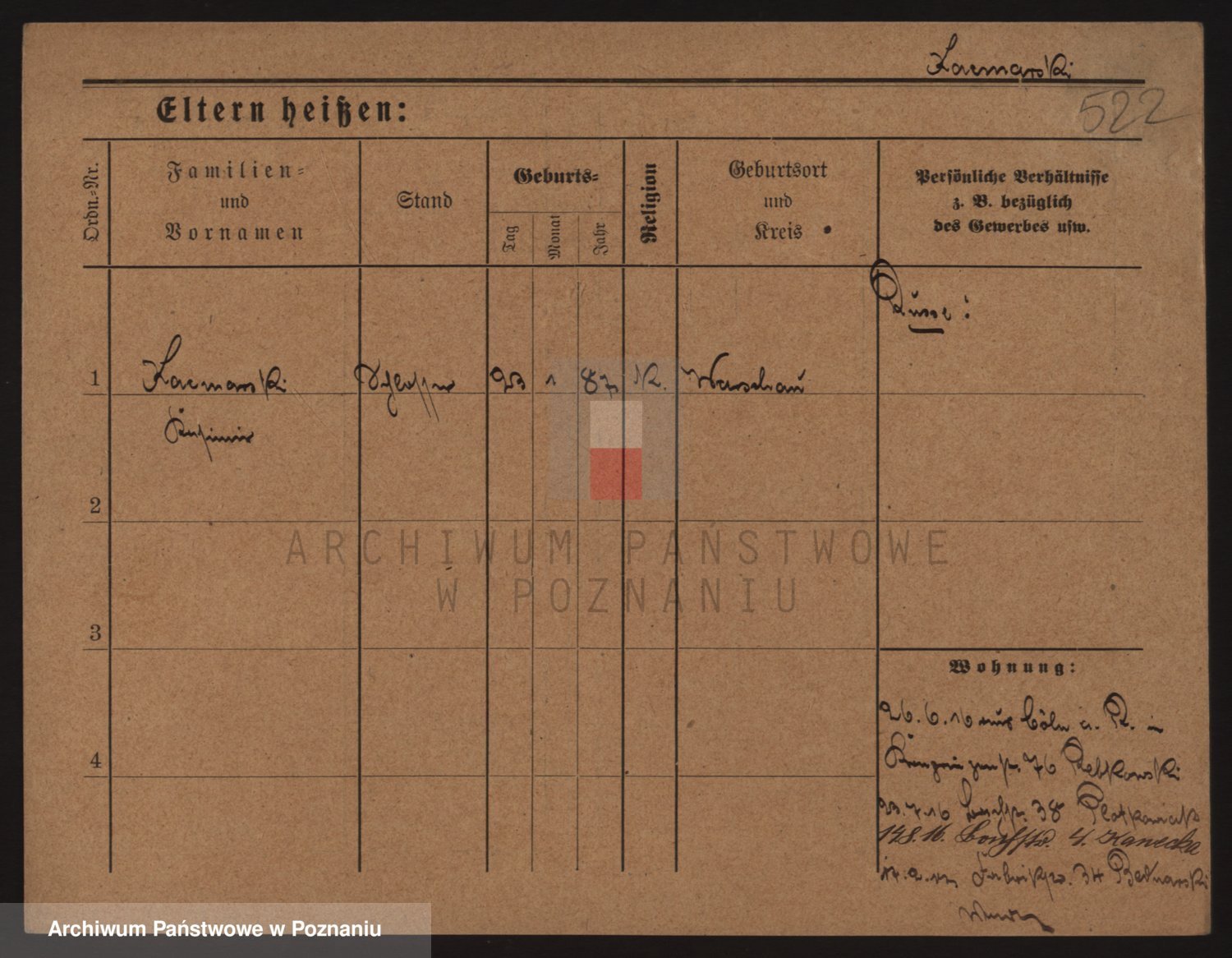 Podgląd karty osobowej dostępny jest po kliknięciu na nazwisko lub ikonkę karty. Można dokonywać powiększenia (ikony na górze) lub przechodzić między kolejnymi skanami (strzałki po bokach).