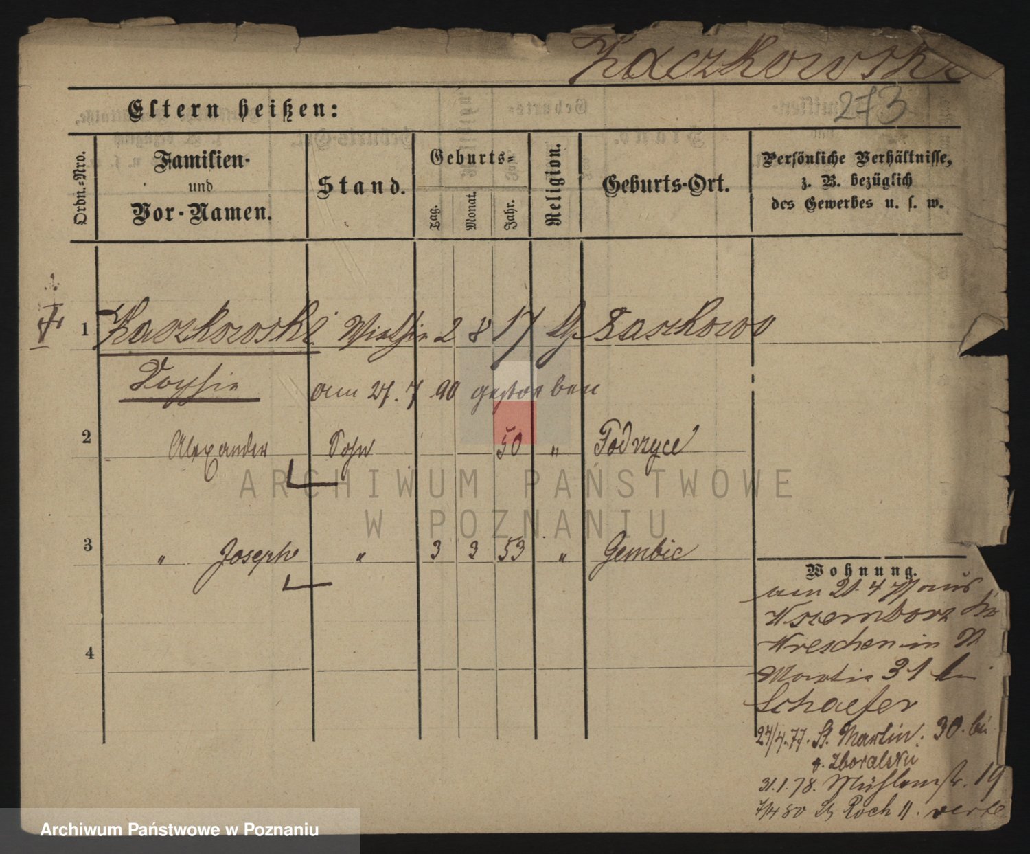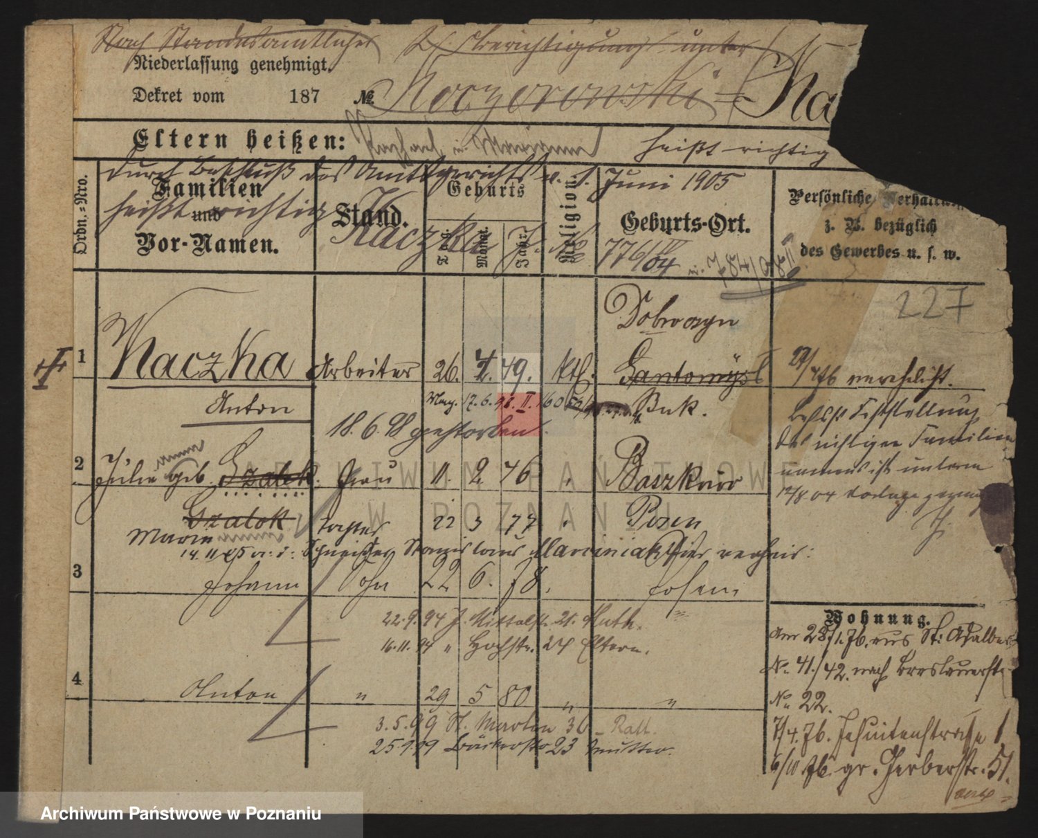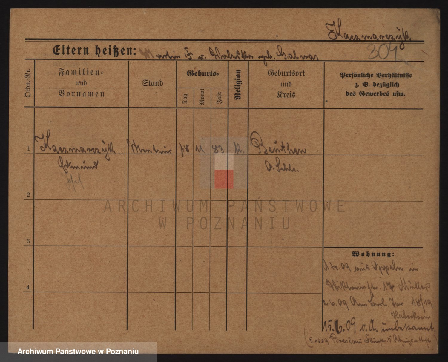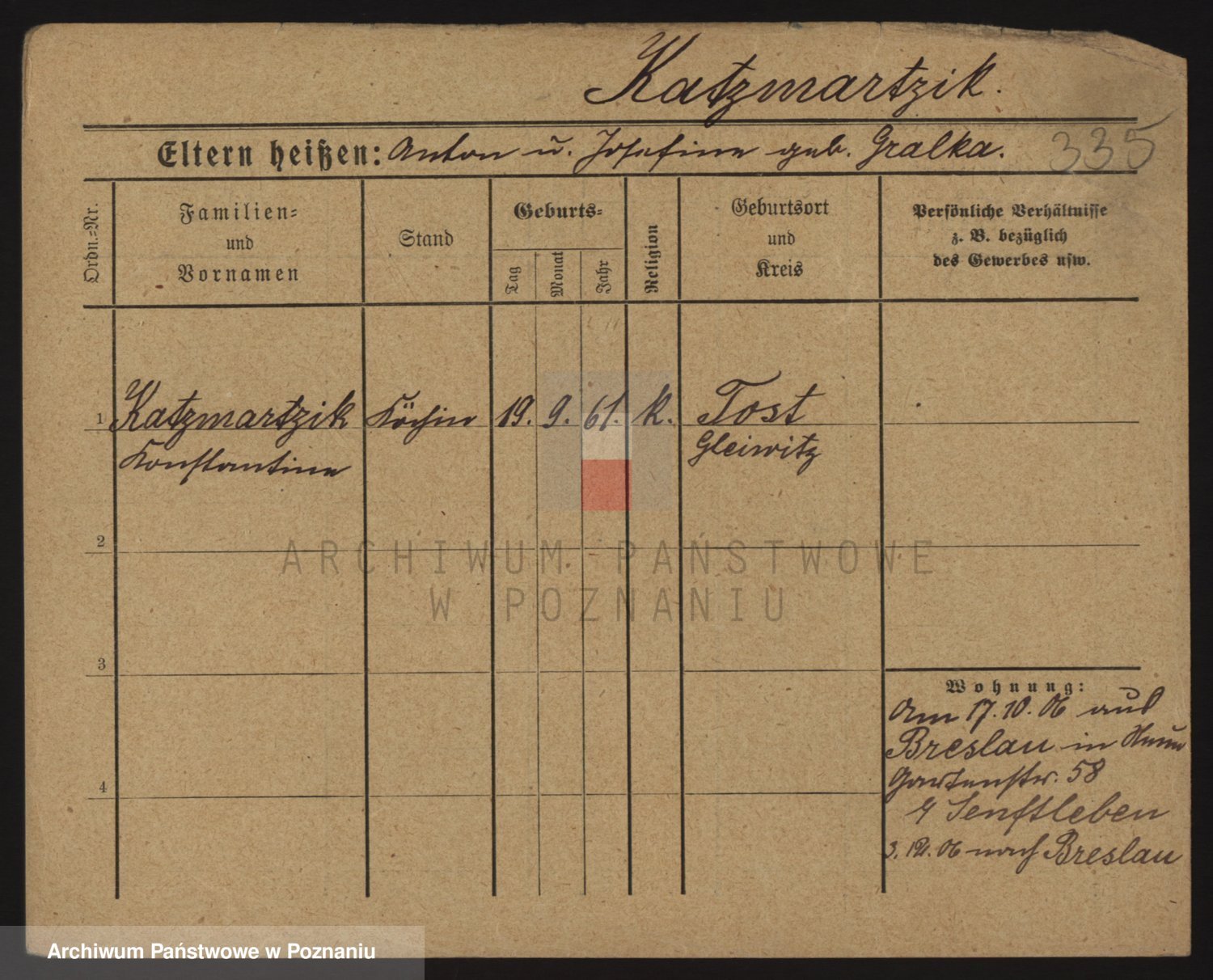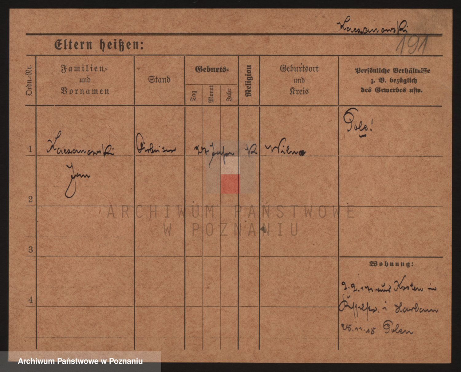 Podgląd karty osobowej dostępny jest po kliknięciu na nazwisko lub ikonkę karty. Można dokonywać powiększenia (ikony na górze) lub przechodzić między kolejnymi skanami (strzałki po bokach).