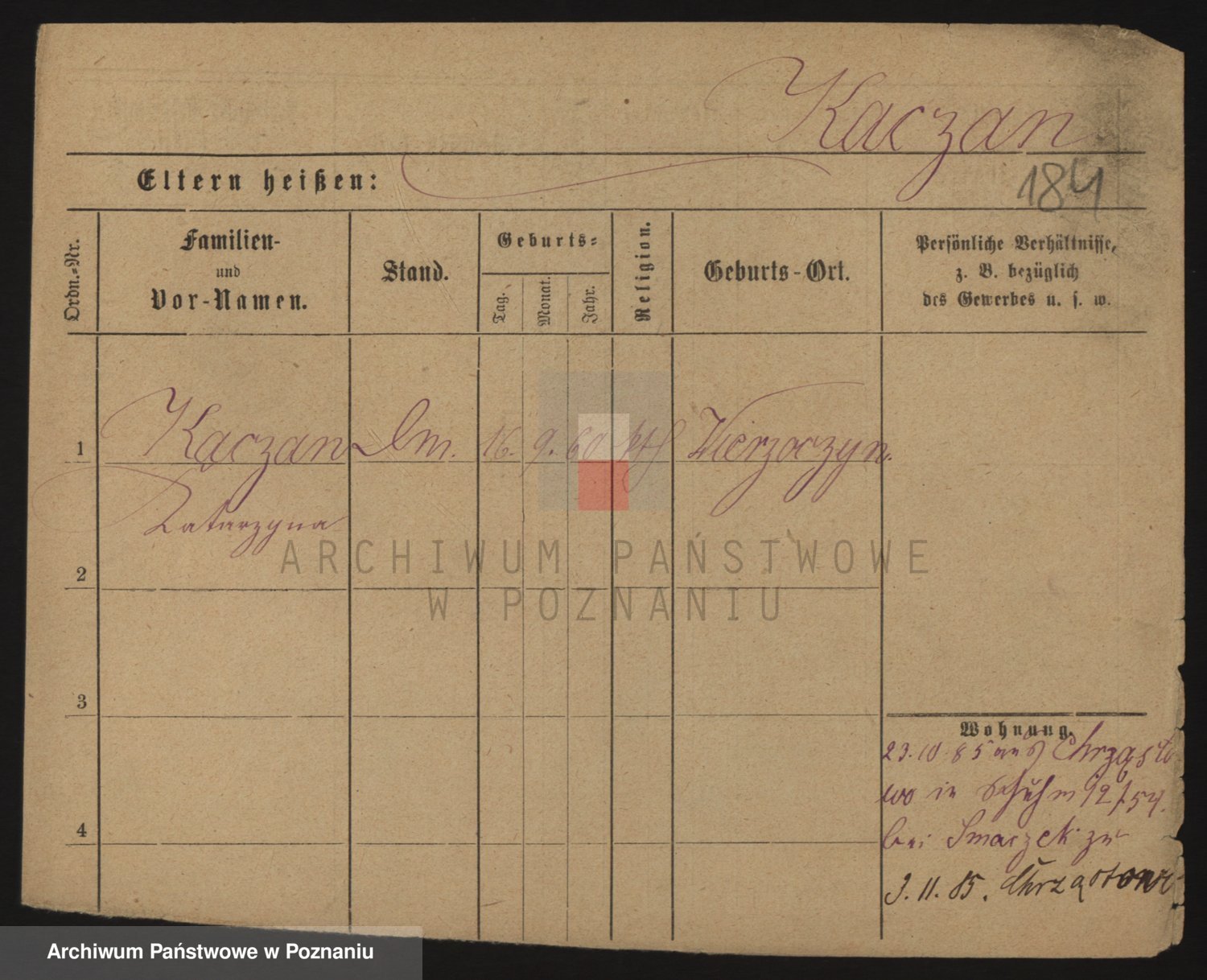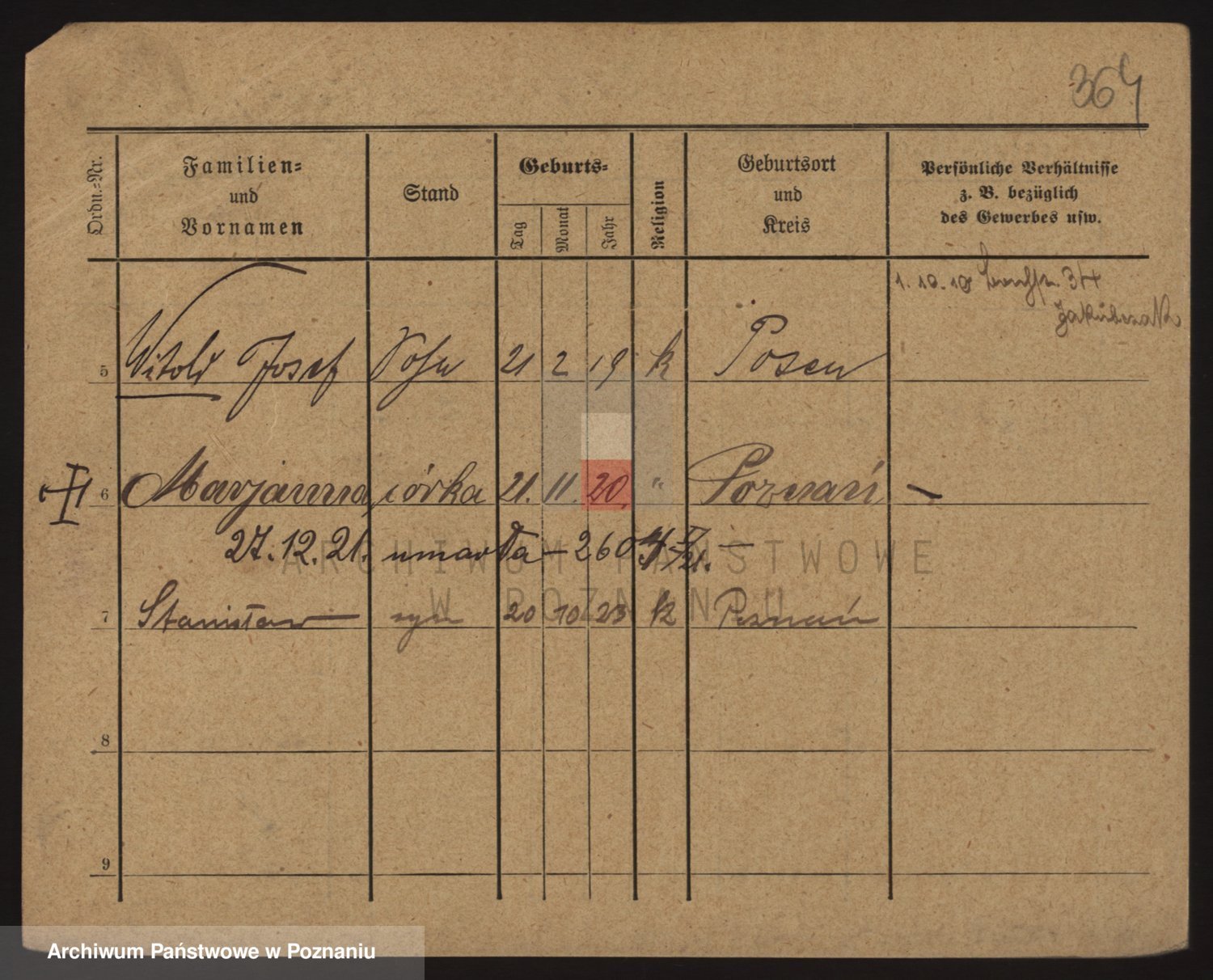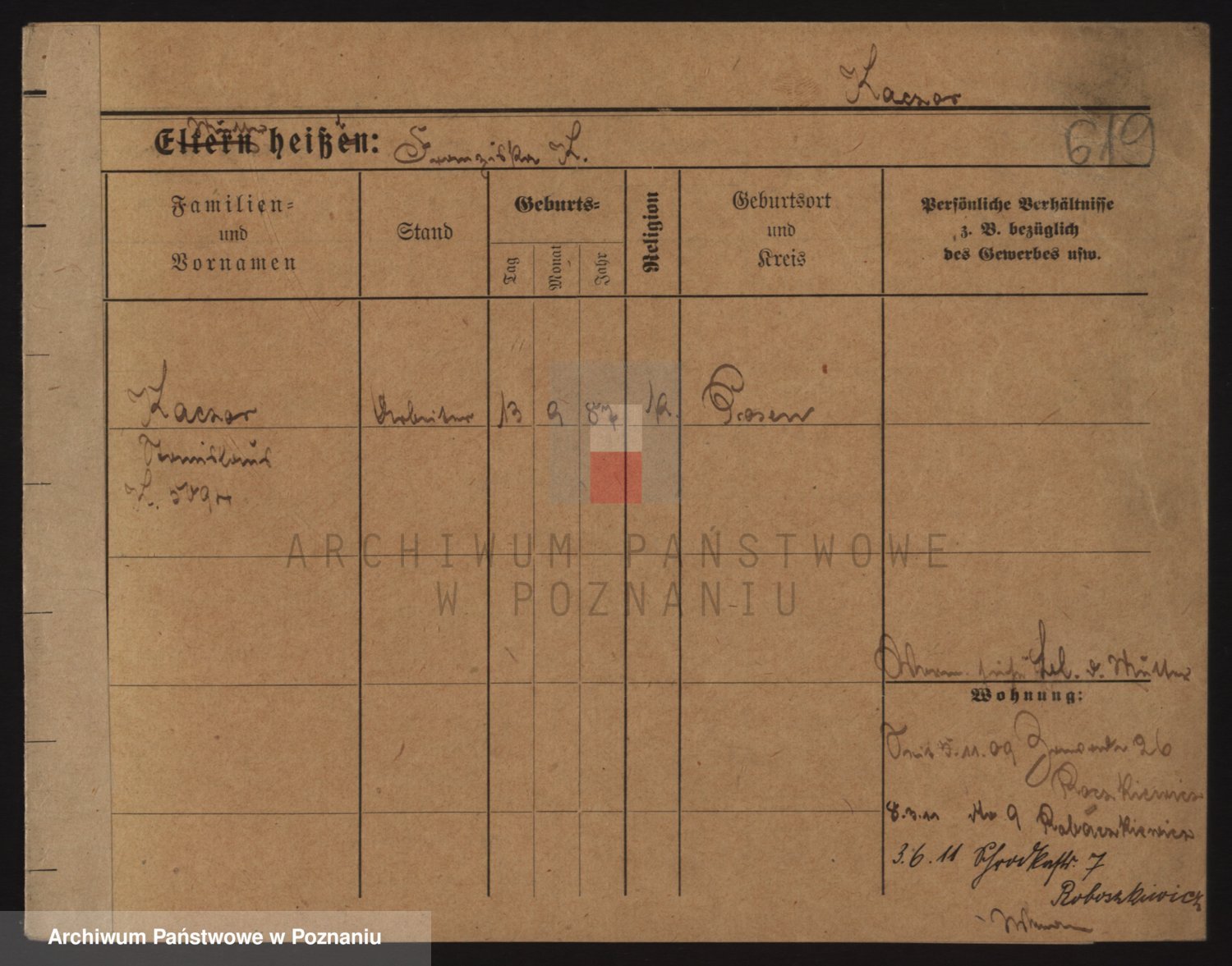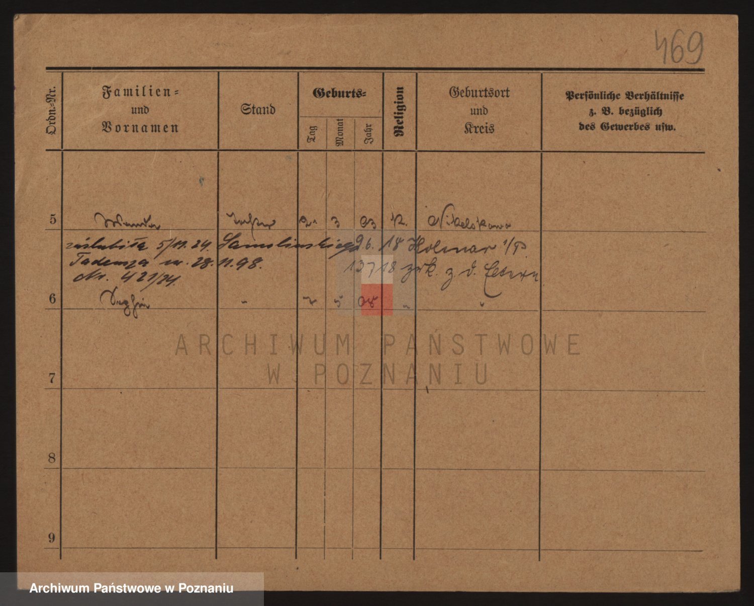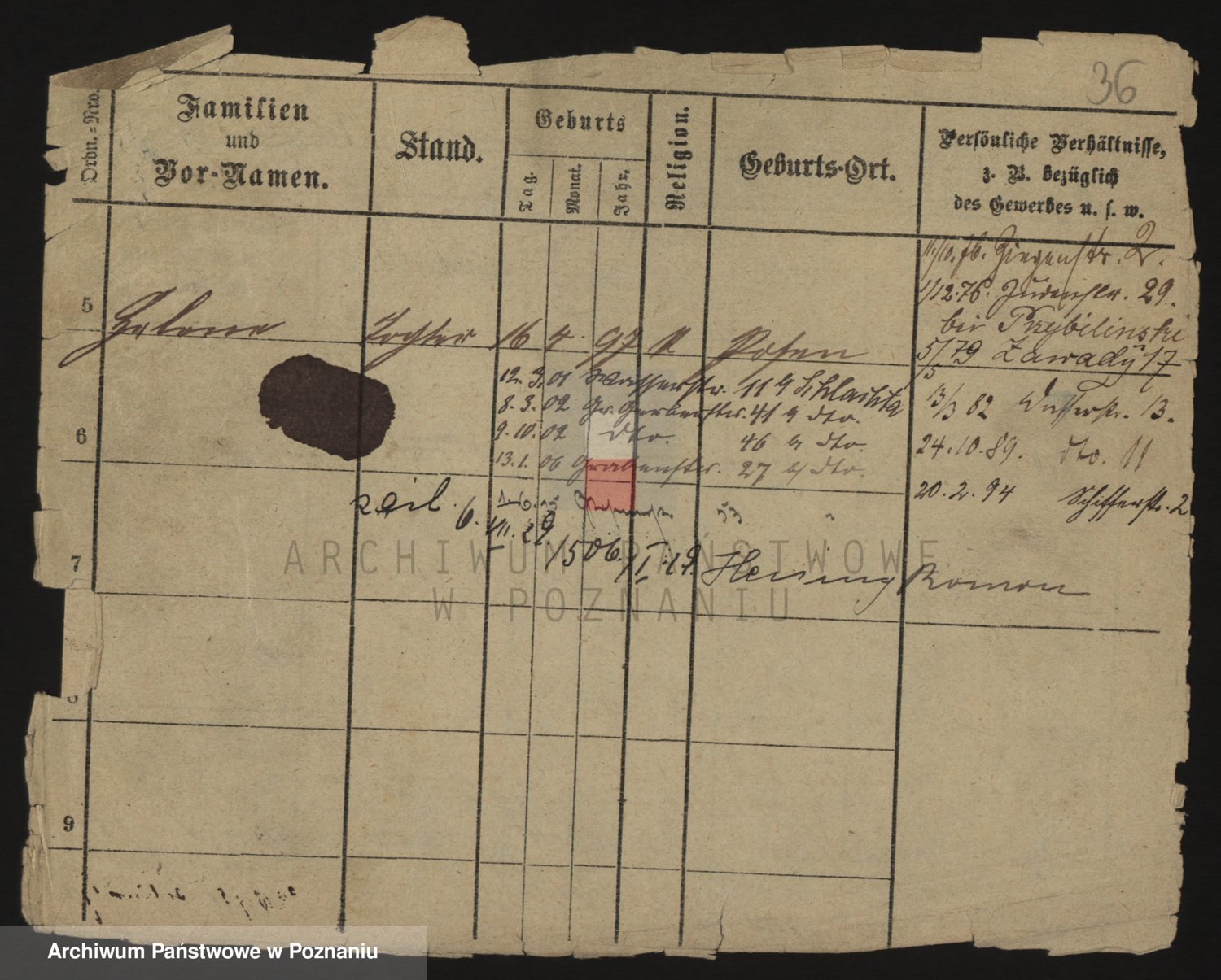 Podgląd karty osobowej dostępny jest po kliknięciu na nazwisko lub ikonkę karty. Można dokonywać powiększenia (ikony na górze) lub przechodzić między kolejnymi skanami (strzałki po bokach).
