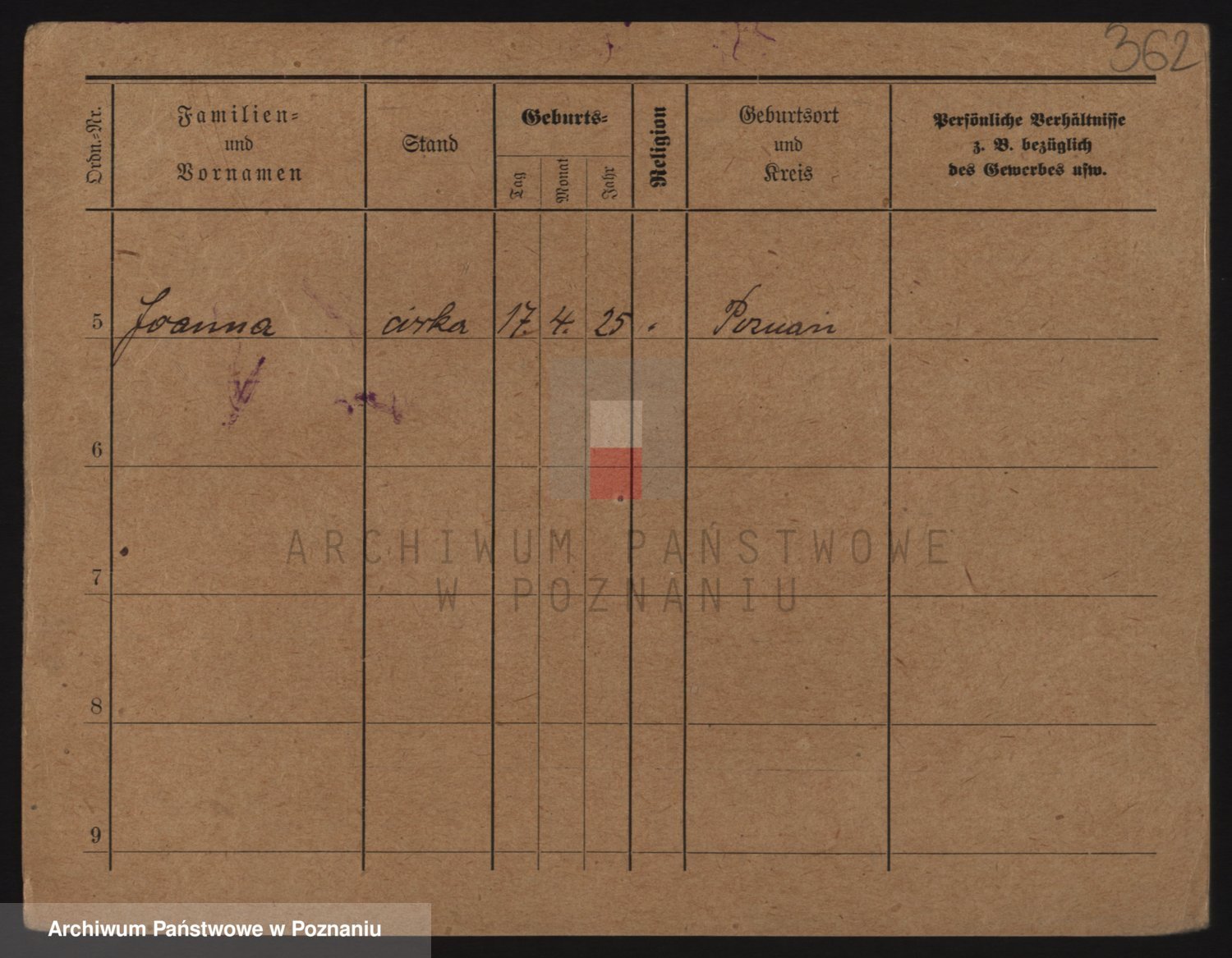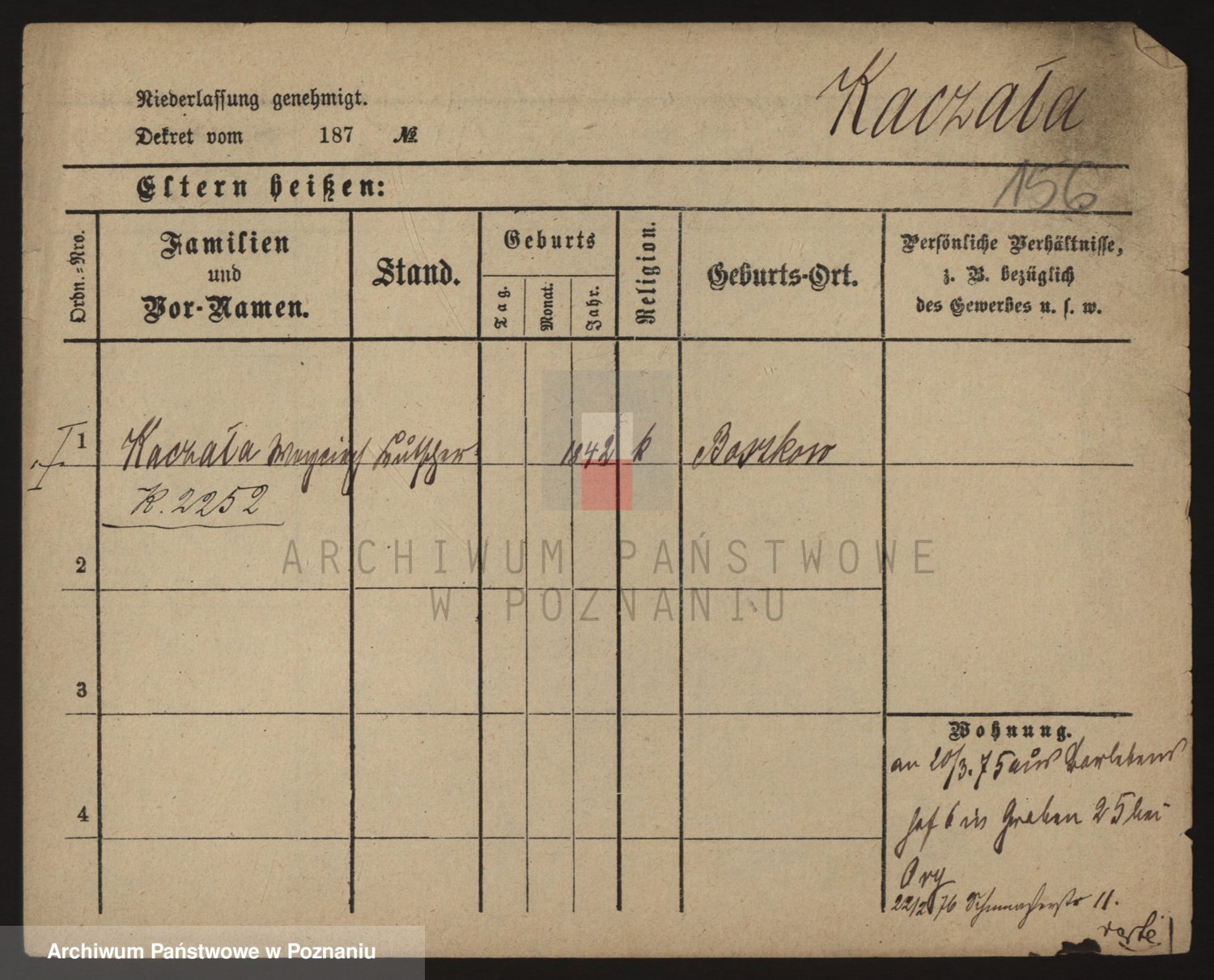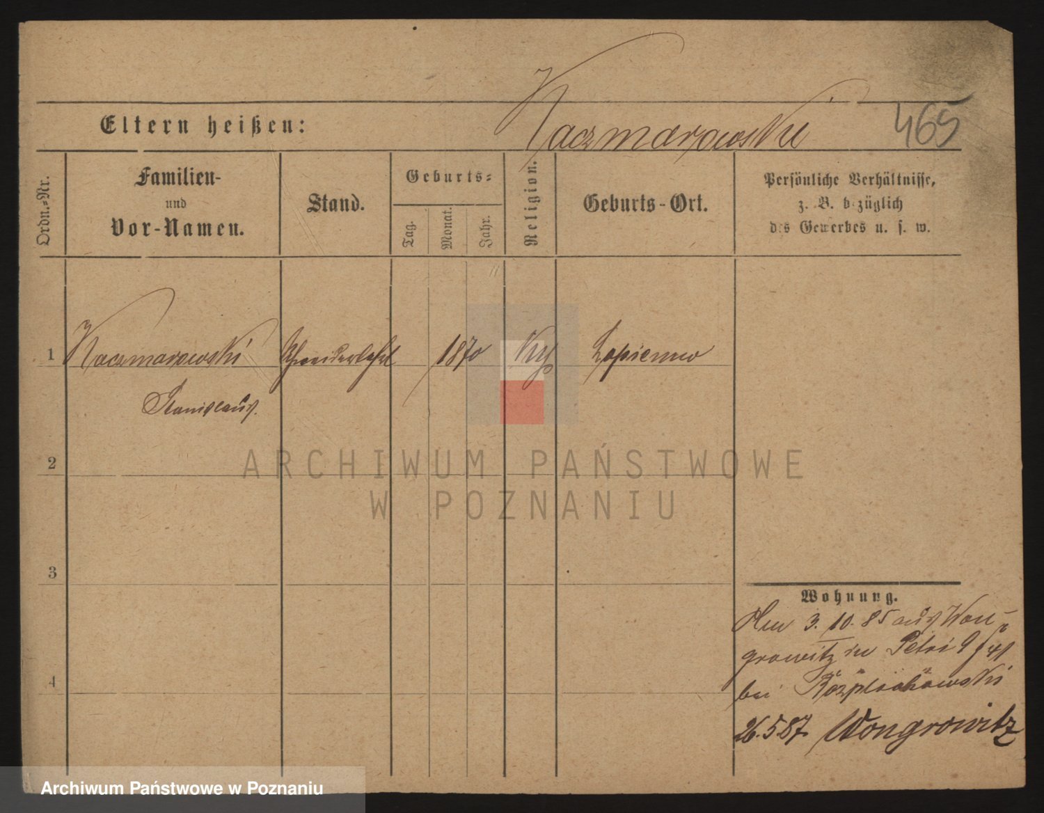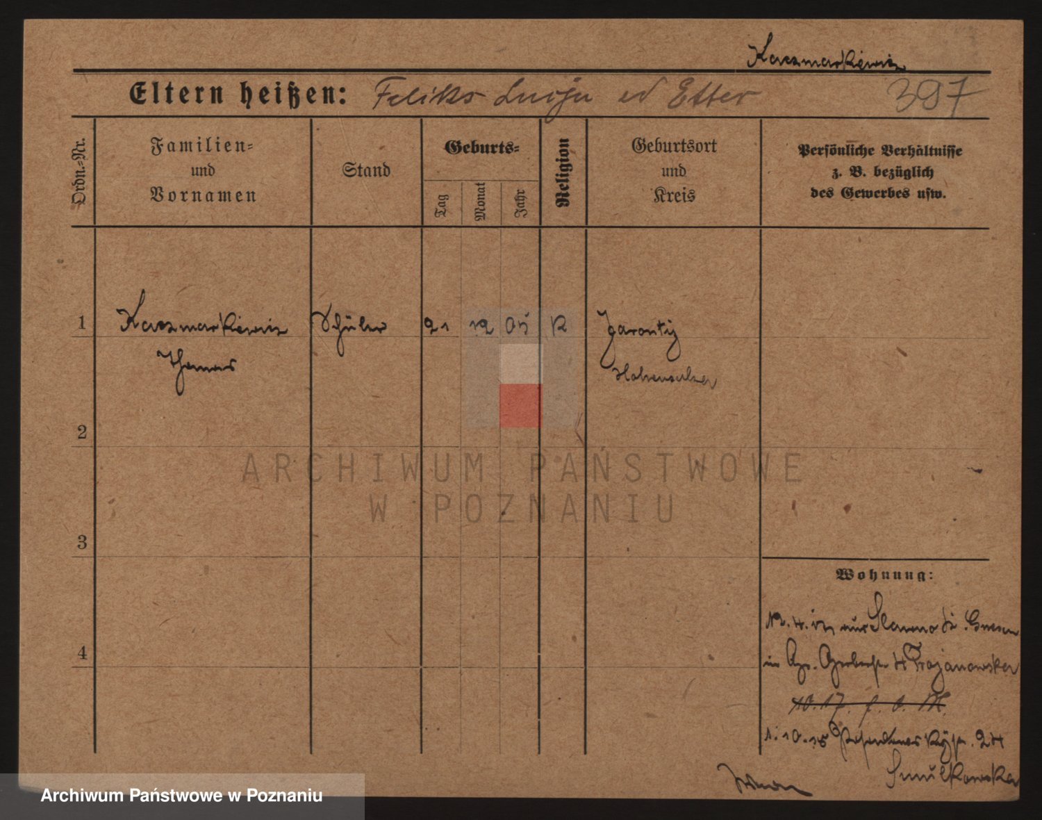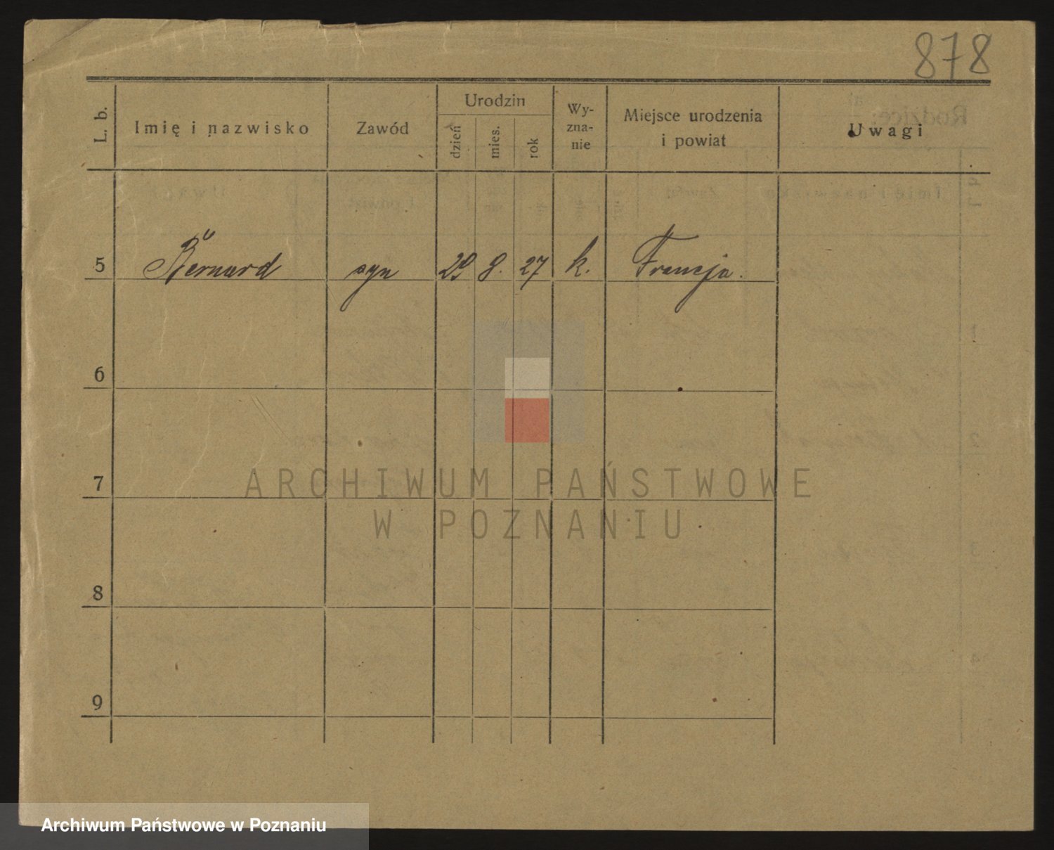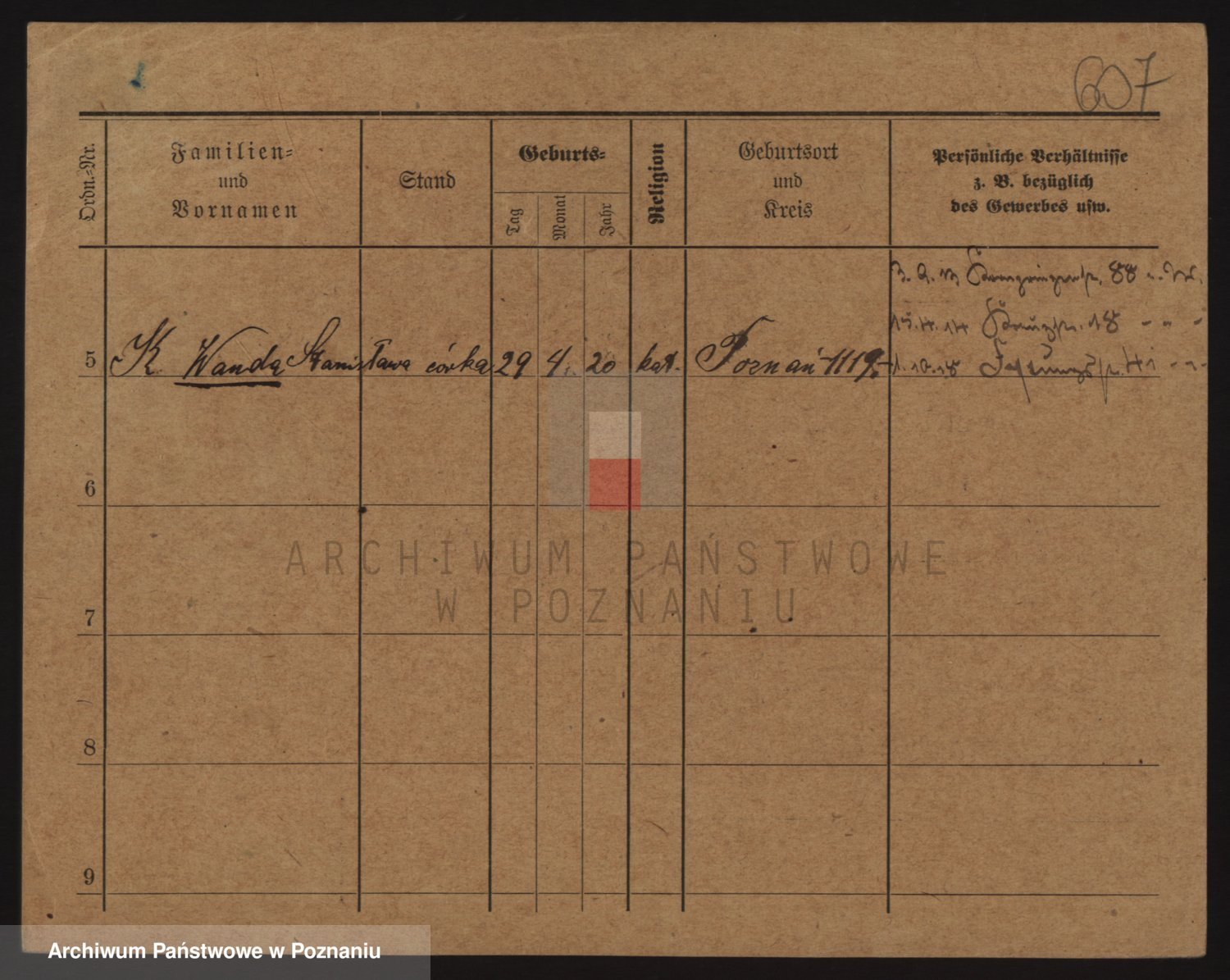 Podgląd karty osobowej dostępny jest po kliknięciu na nazwisko lub ikonkę karty. Można dokonywać powiększenia (ikony na górze) lub przechodzić między kolejnymi skanami (strzałki po bokach).