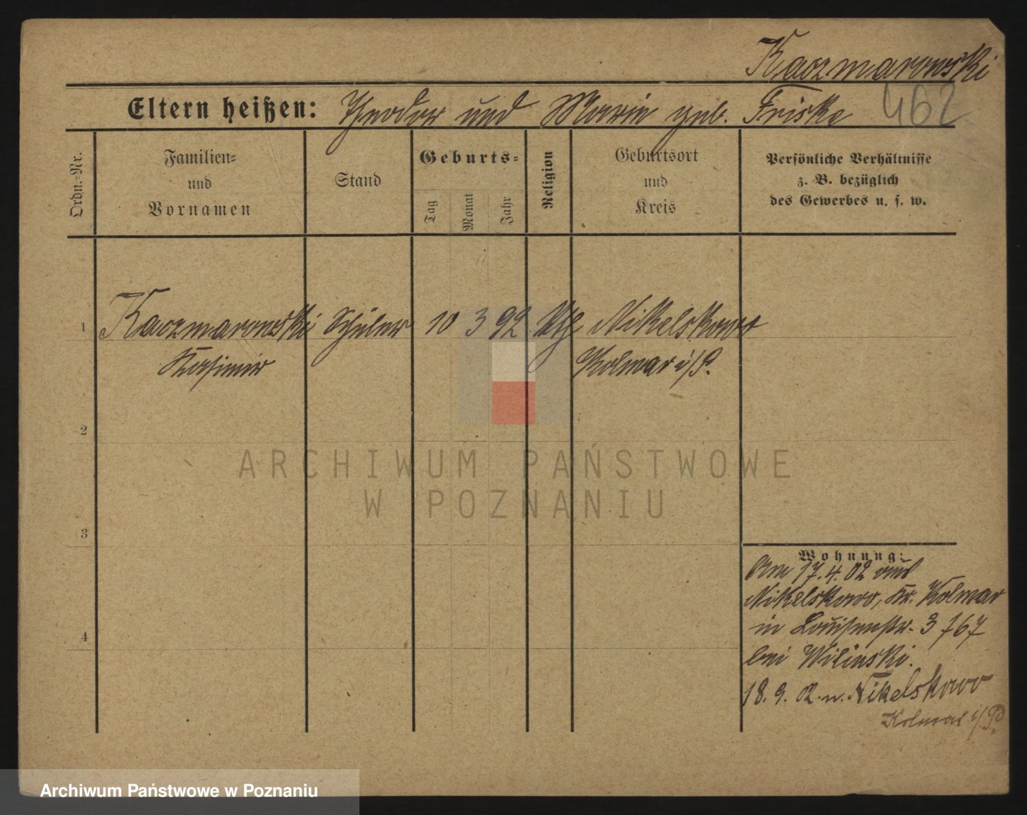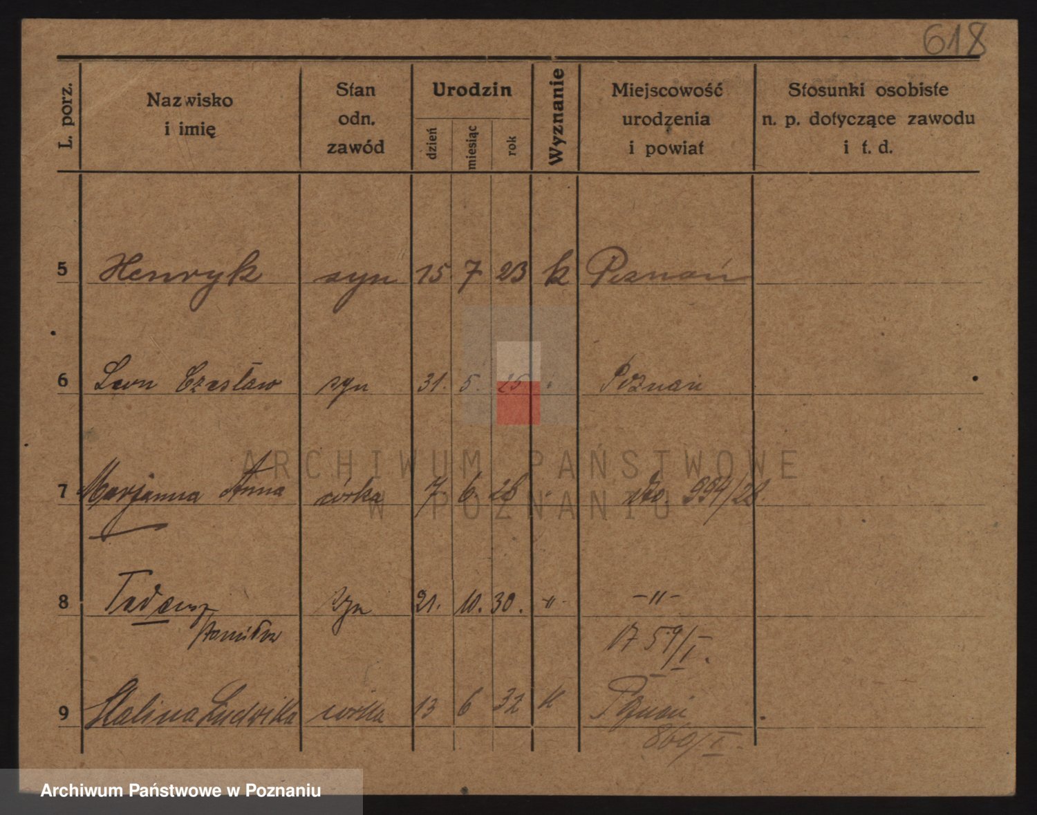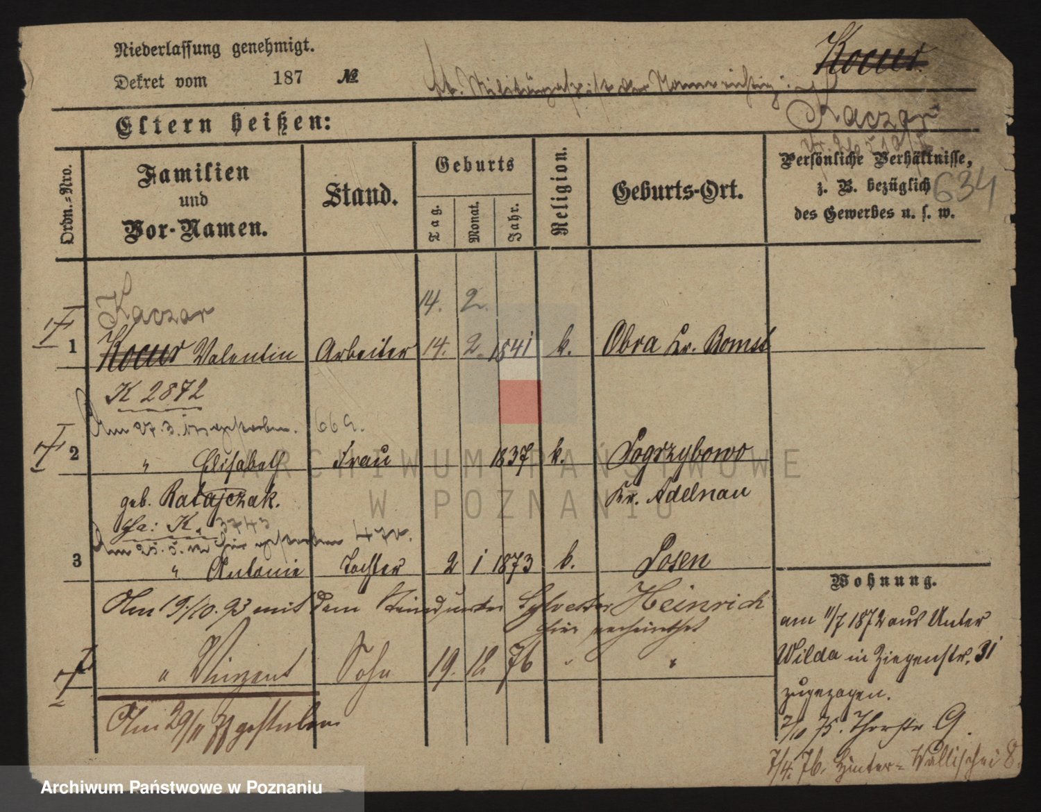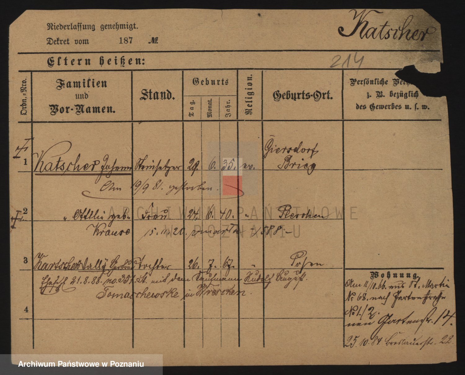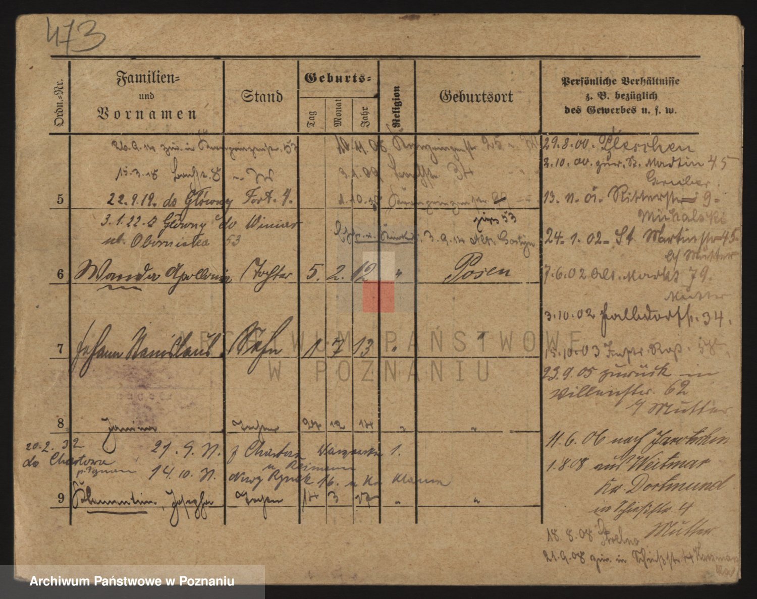 Podgląd karty osobowej dostępny jest po kliknięciu na nazwisko lub ikonkę karty. Można dokonywać powiększenia (ikony na górze) lub przechodzić między kolejnymi skanami (strzałki po bokach).