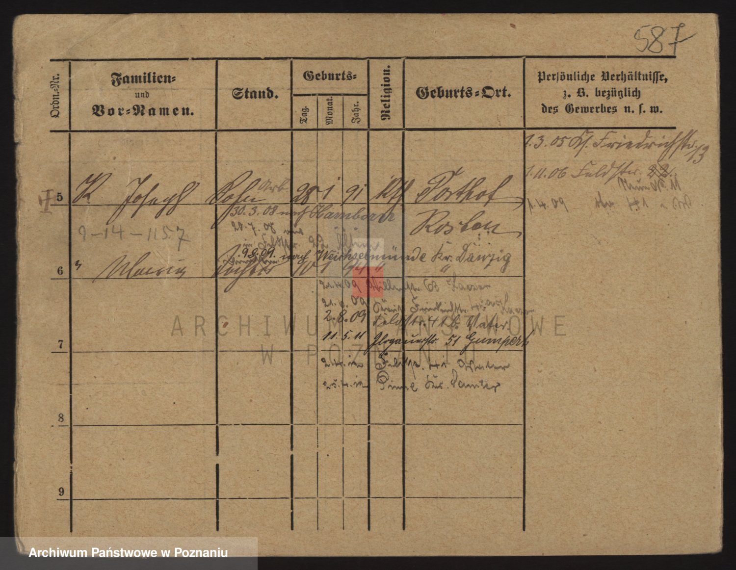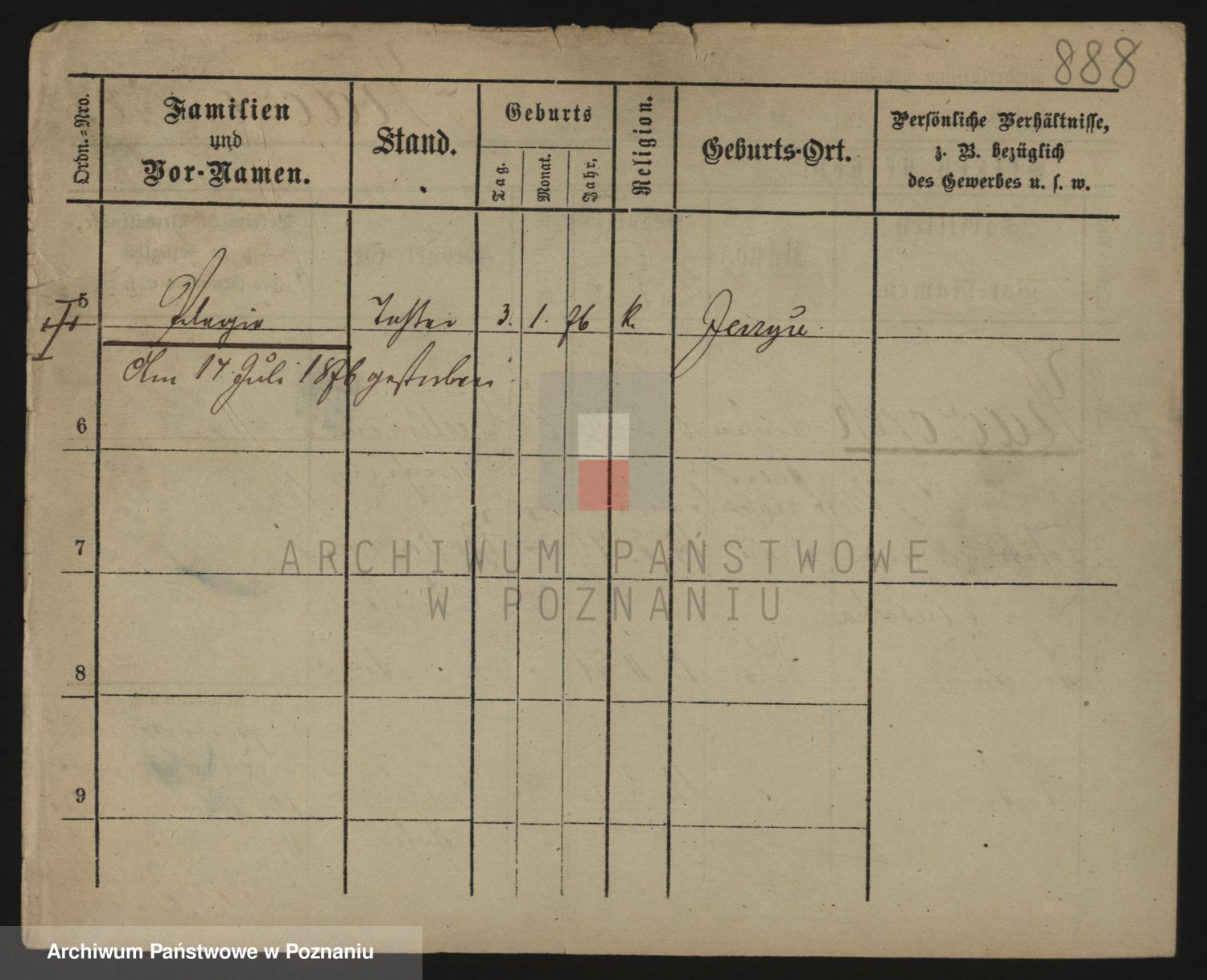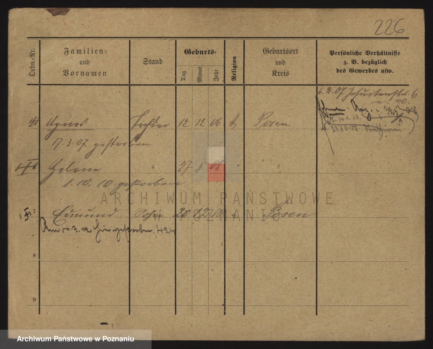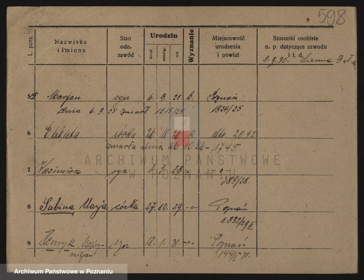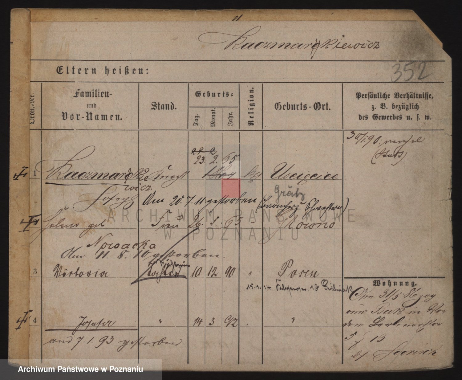 Podgląd karty osobowej dostępny jest po kliknięciu na nazwisko lub ikonkę karty. Można dokonywać powiększenia (ikony na górze) lub przechodzić między kolejnymi skanami (strzałki po bokach).