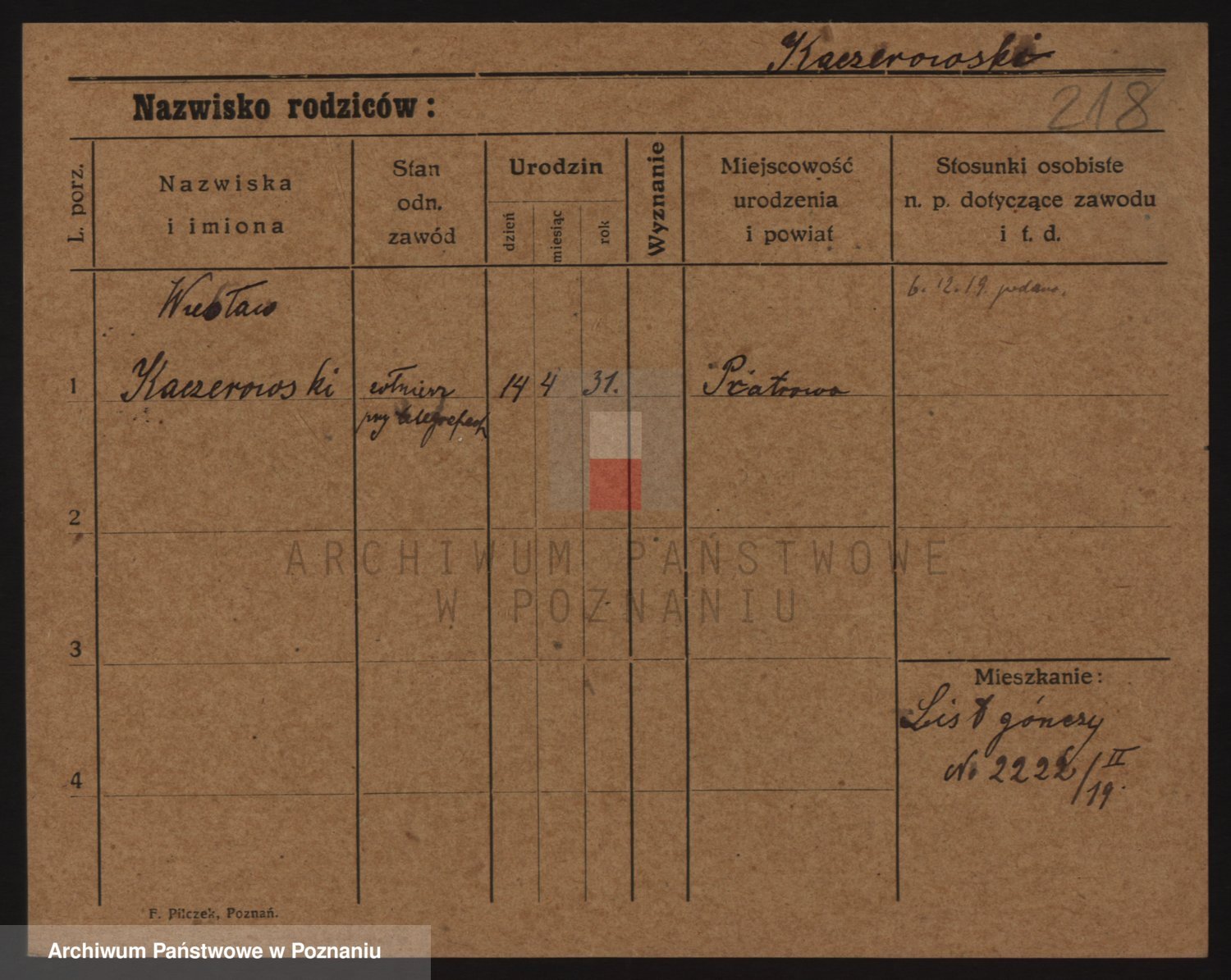 Kaczynski, Apolinary