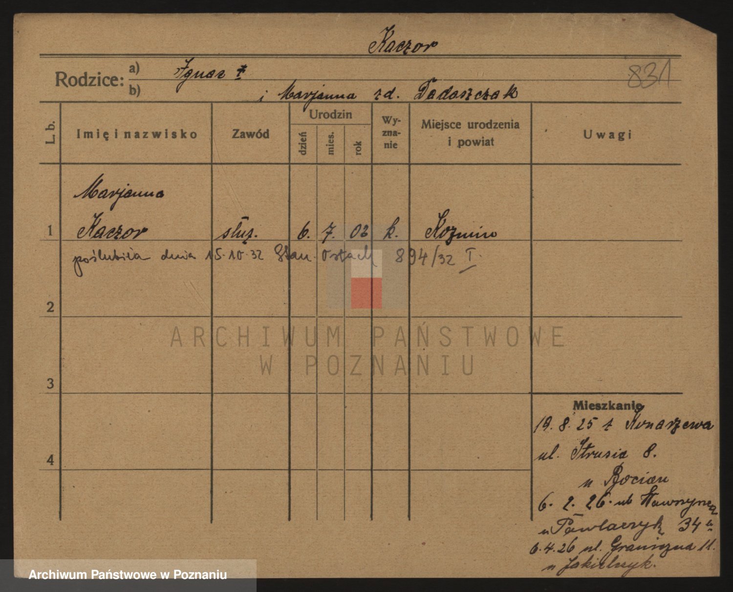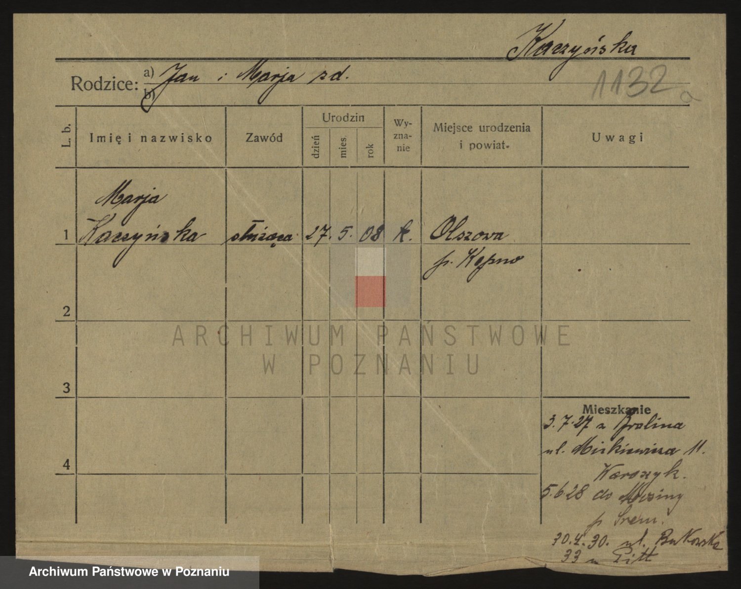 Kaczynska z d. Schuba, Marja