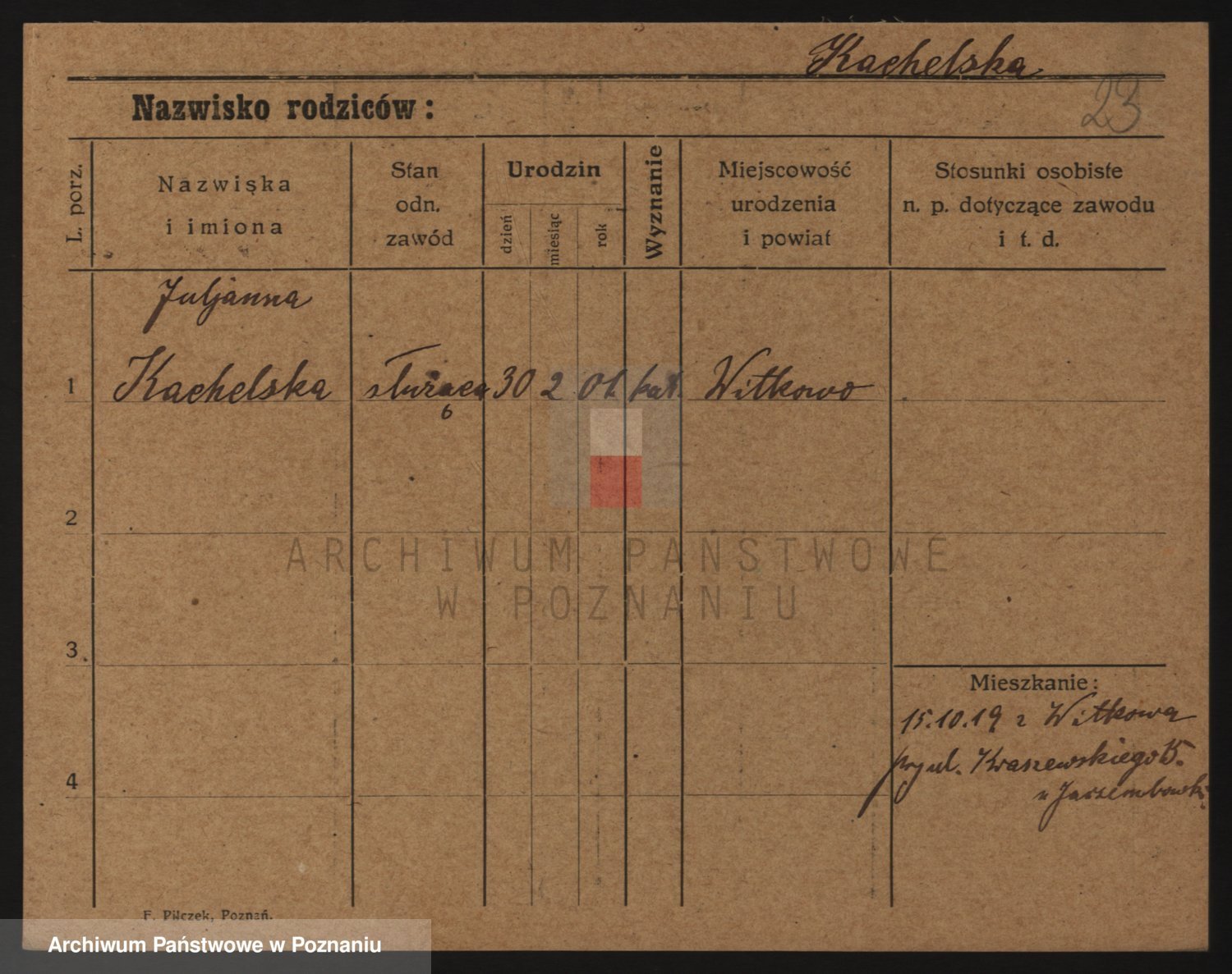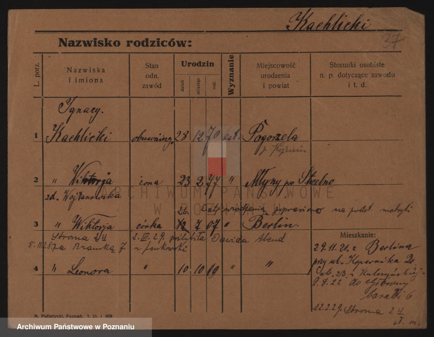 Kachlicki z d. Przybinska, Wiktoria
