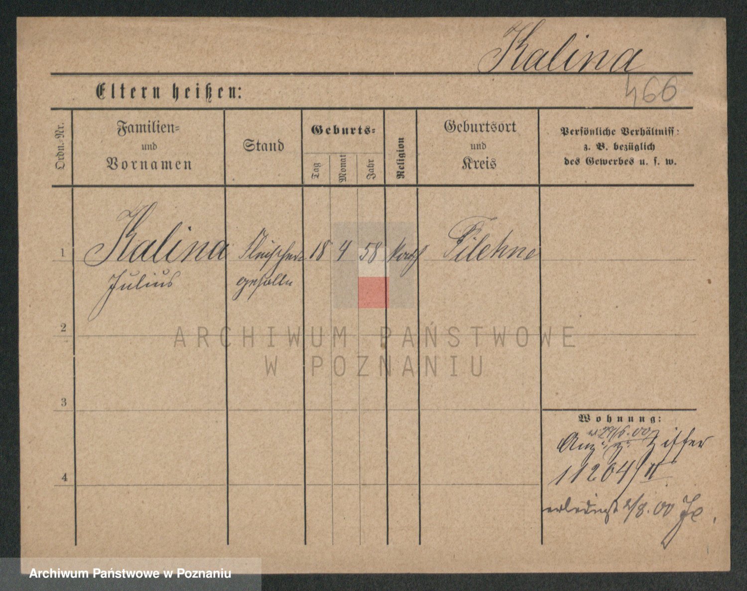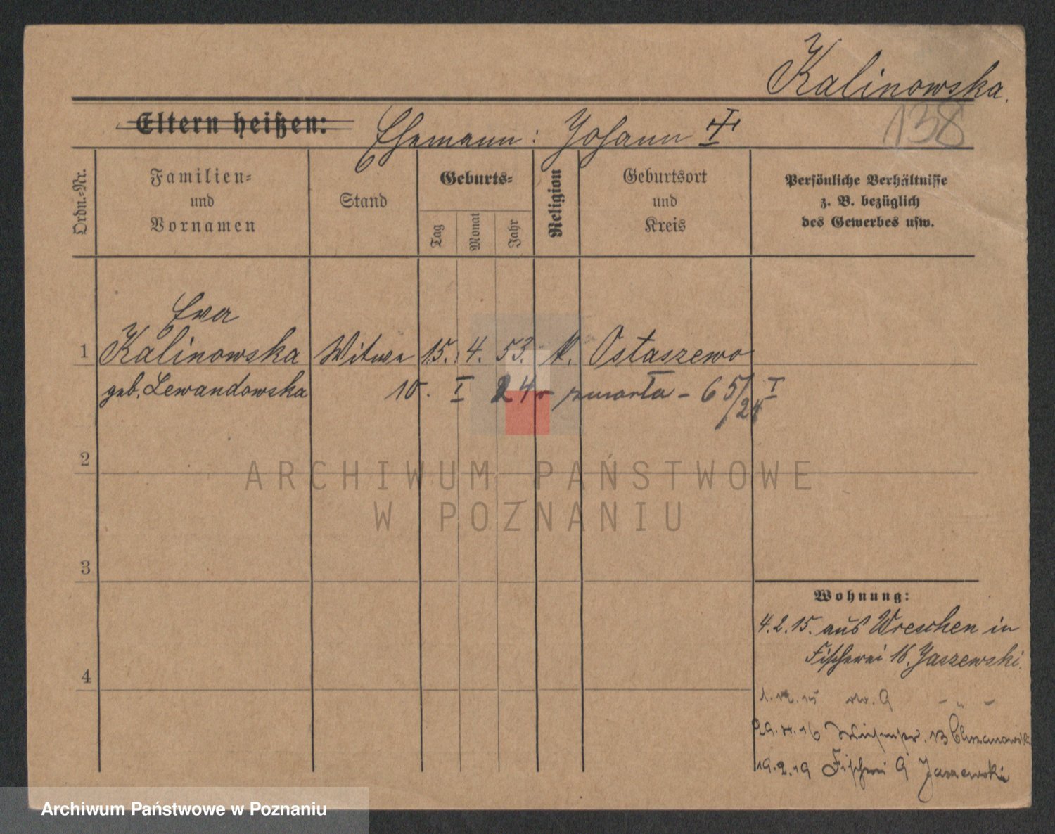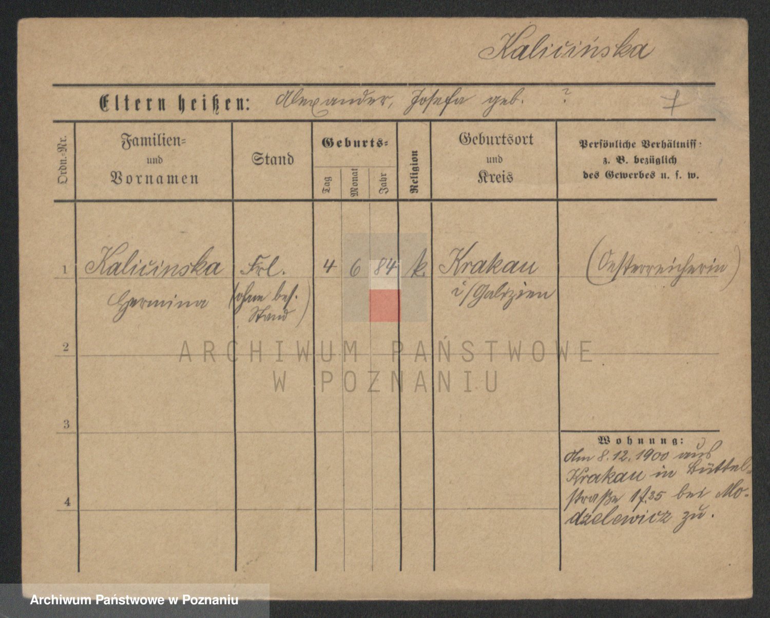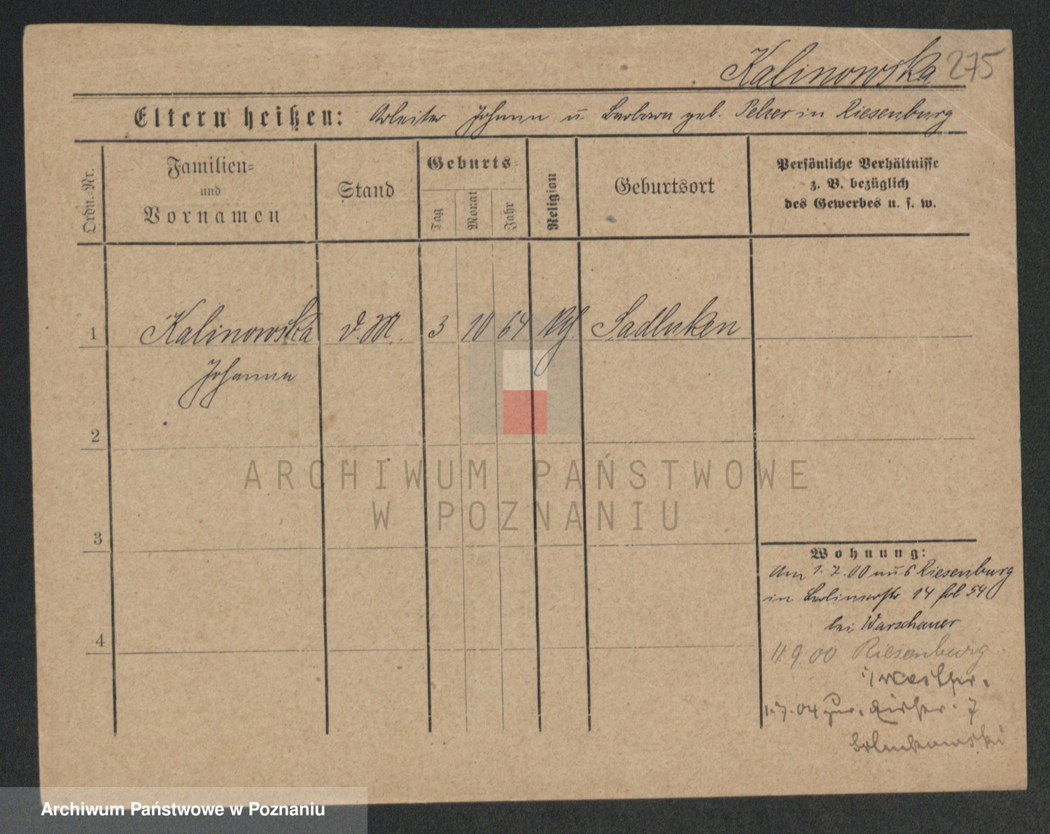 Kalinowski z d. Kadler I voto Sommerfeld, Anna