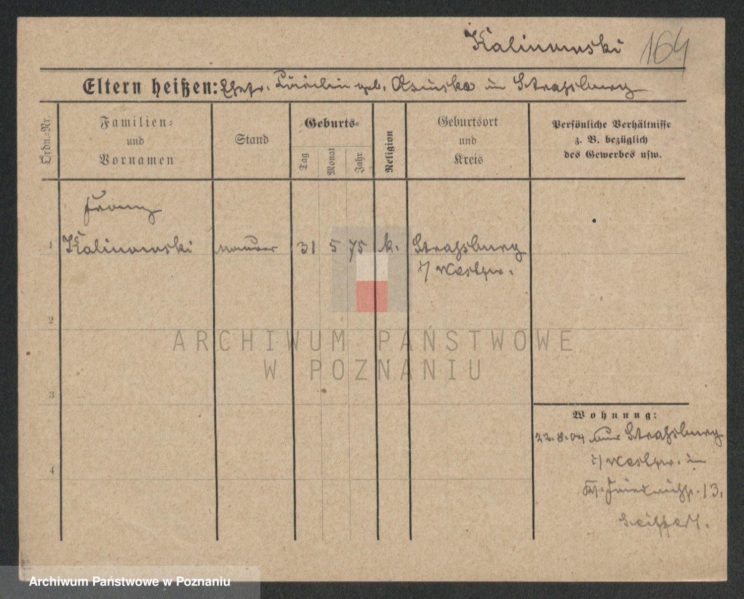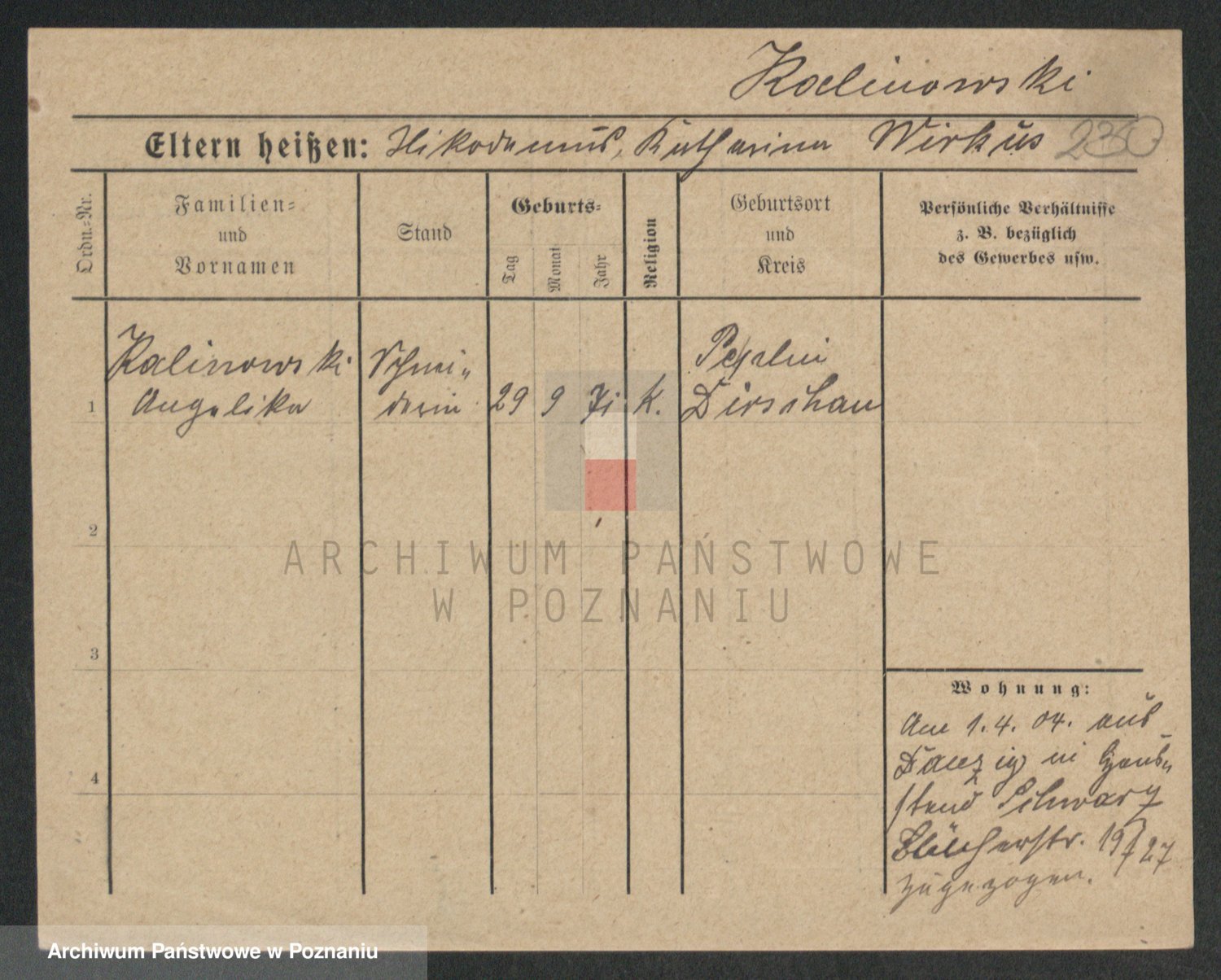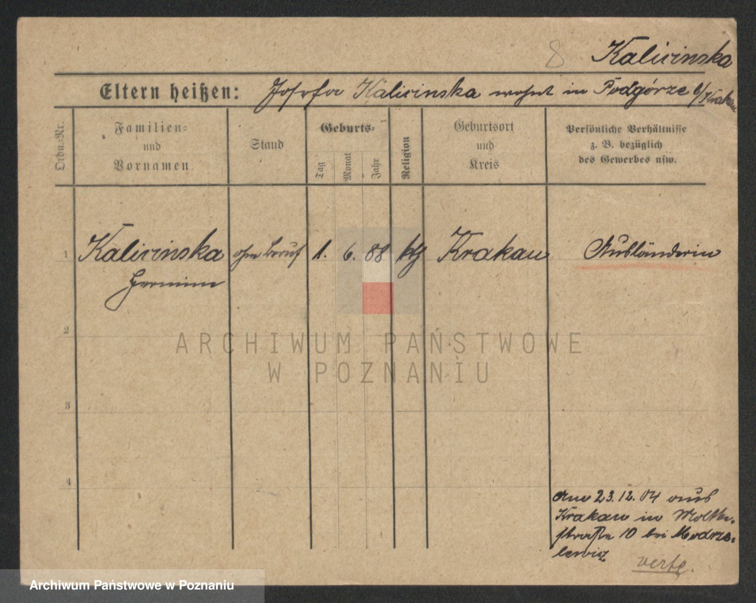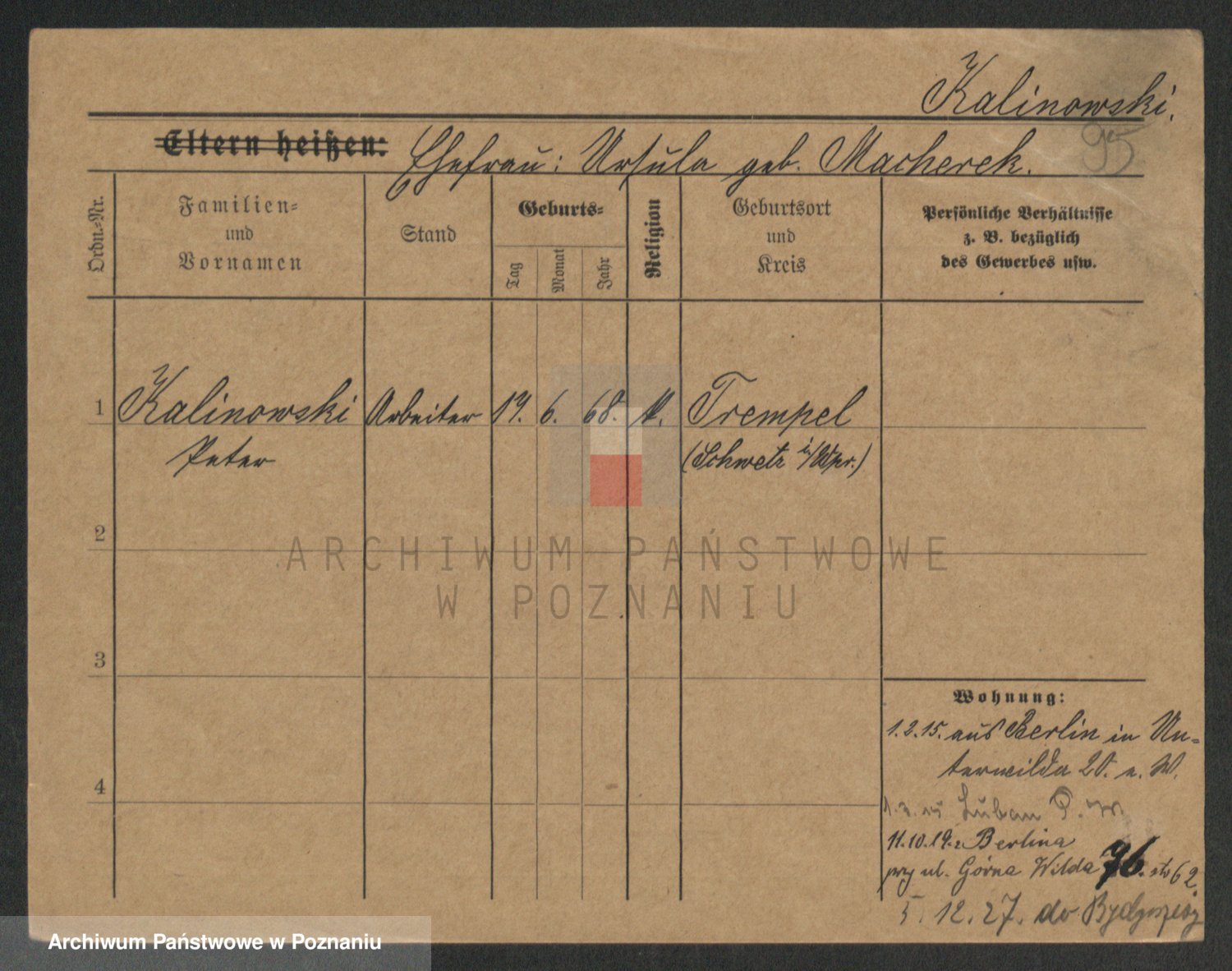Kalinowski z d. Kadler I voto Sommerfeld, Anna