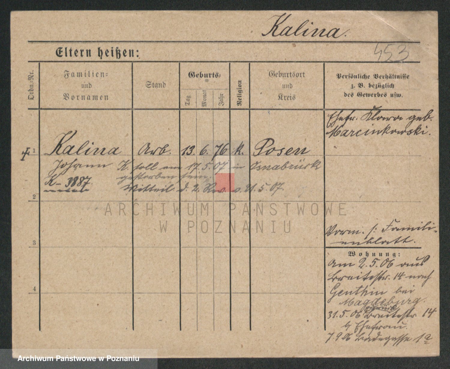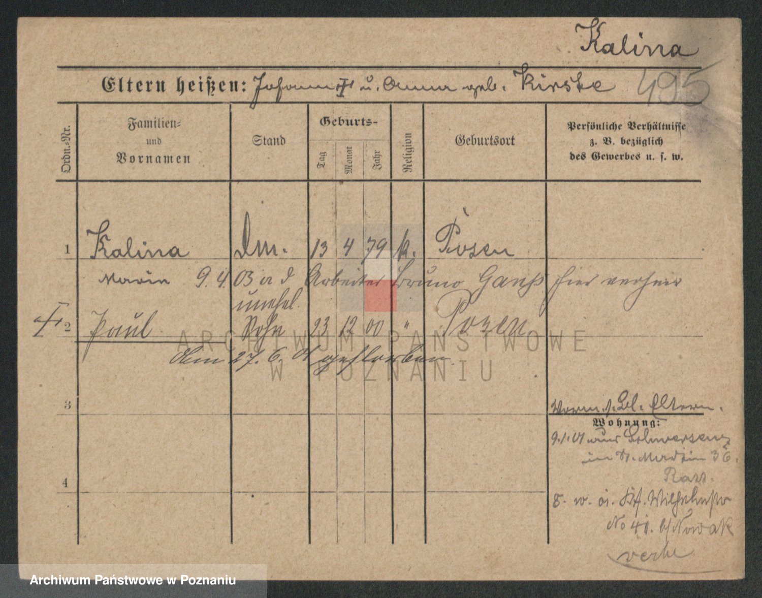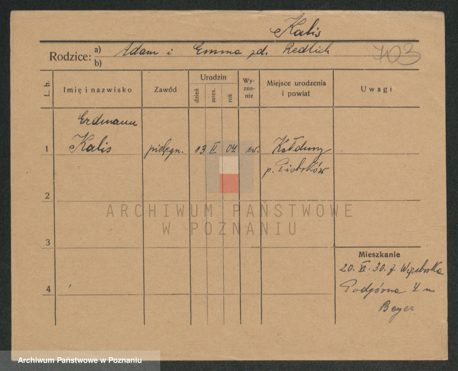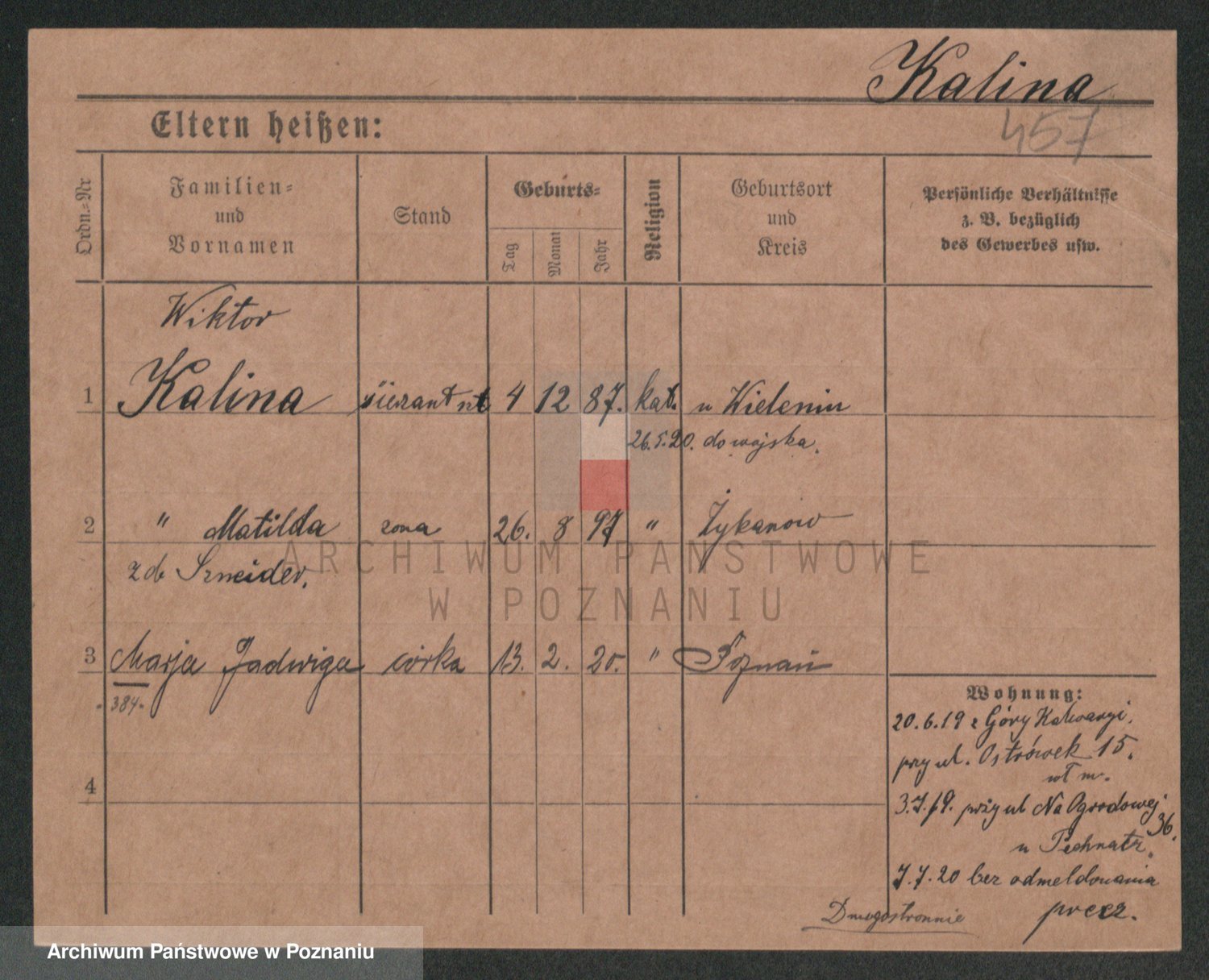 Kalinowski z d. Kadler I voto Sommerfeld, Anna
