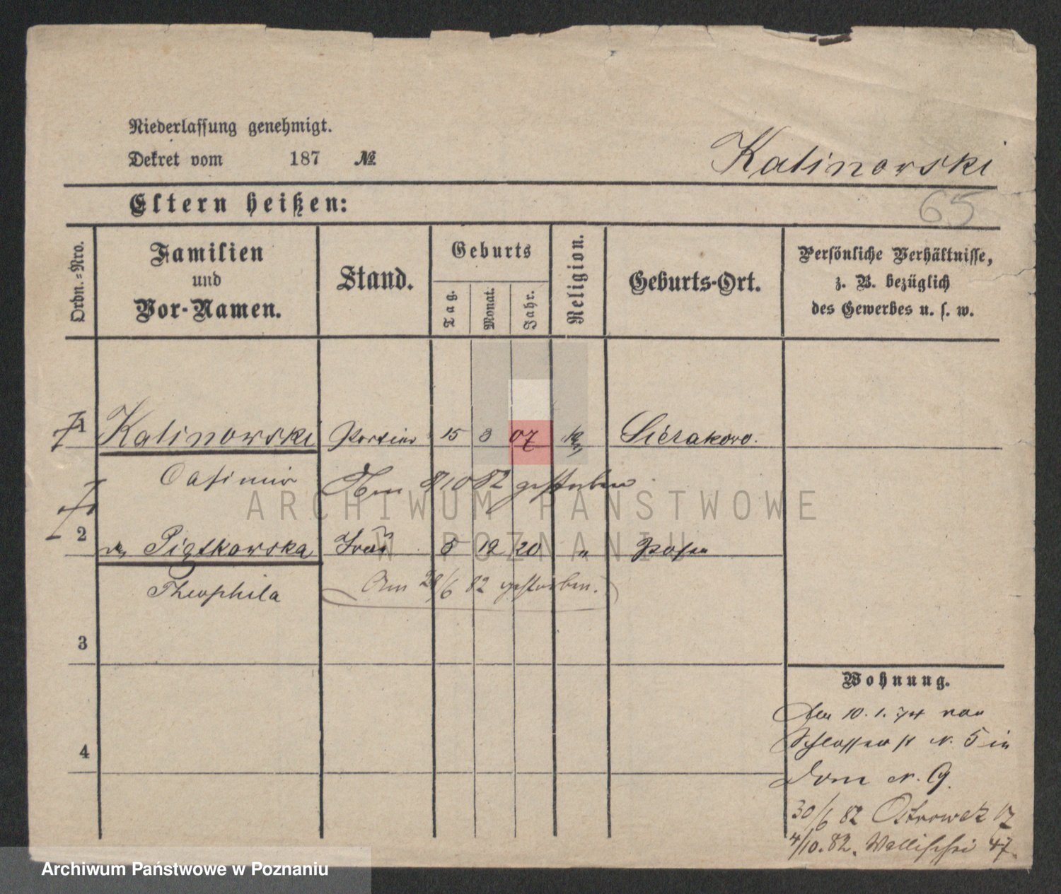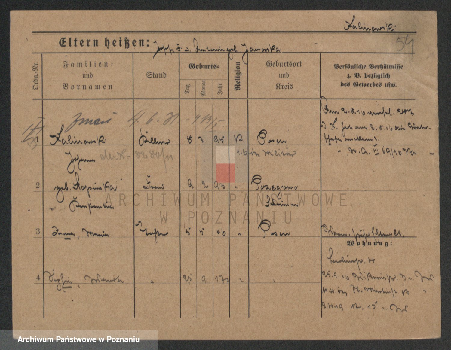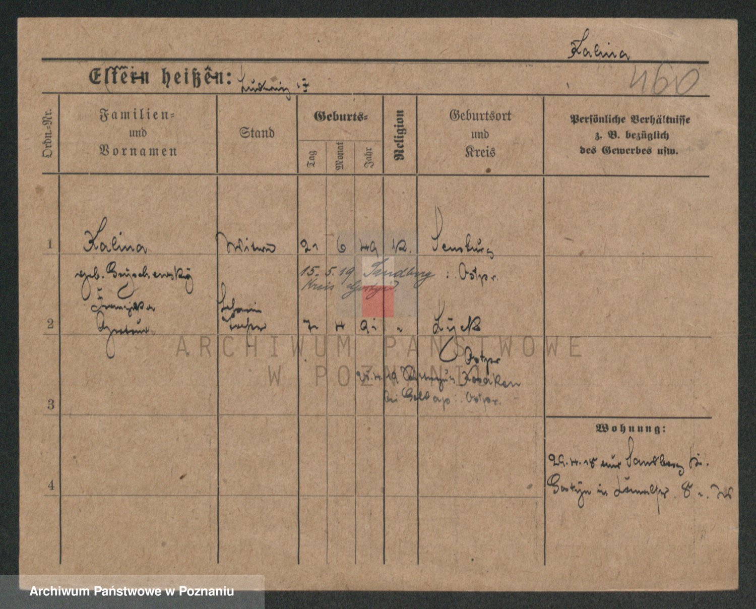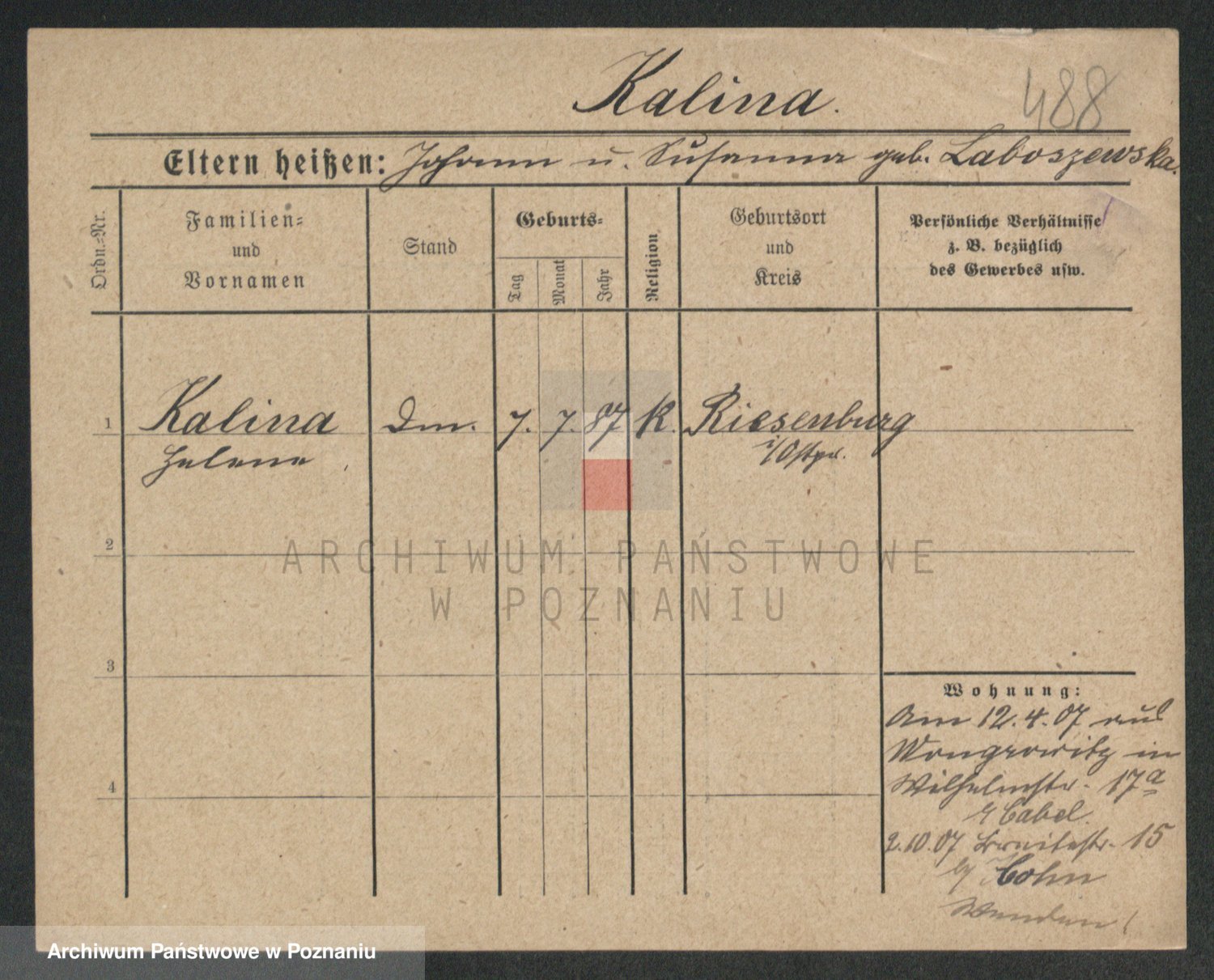 Kalinowski z d. Kadler I voto Sommerfeld, Anna