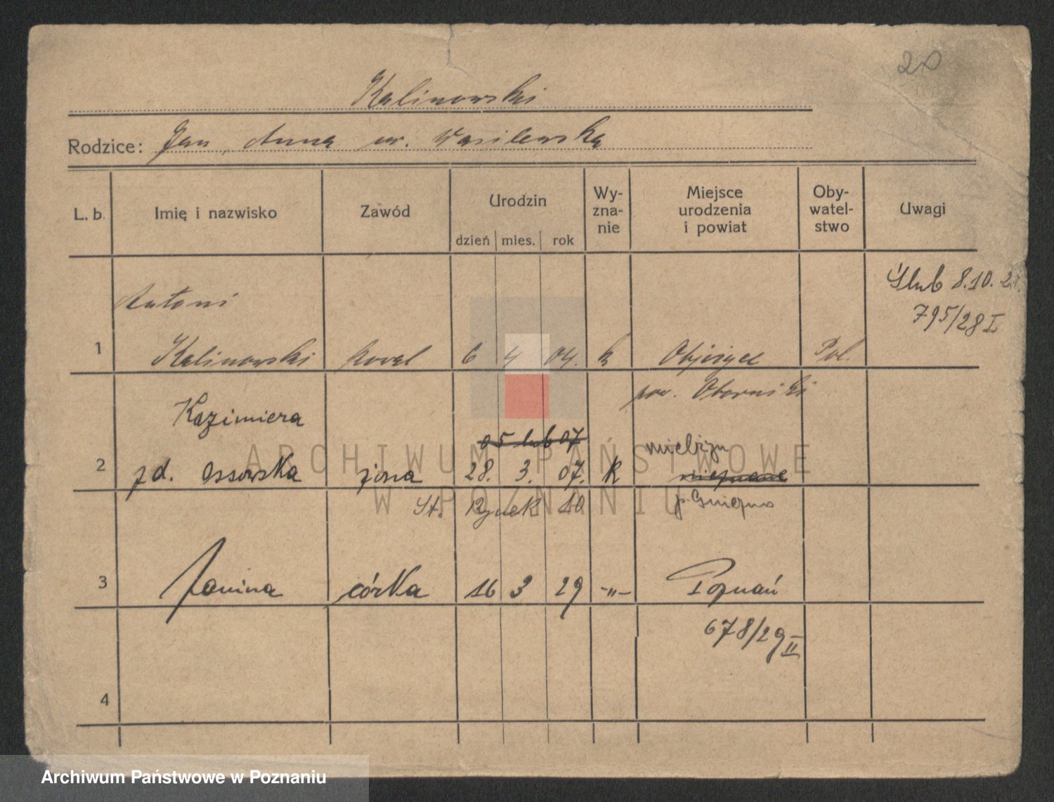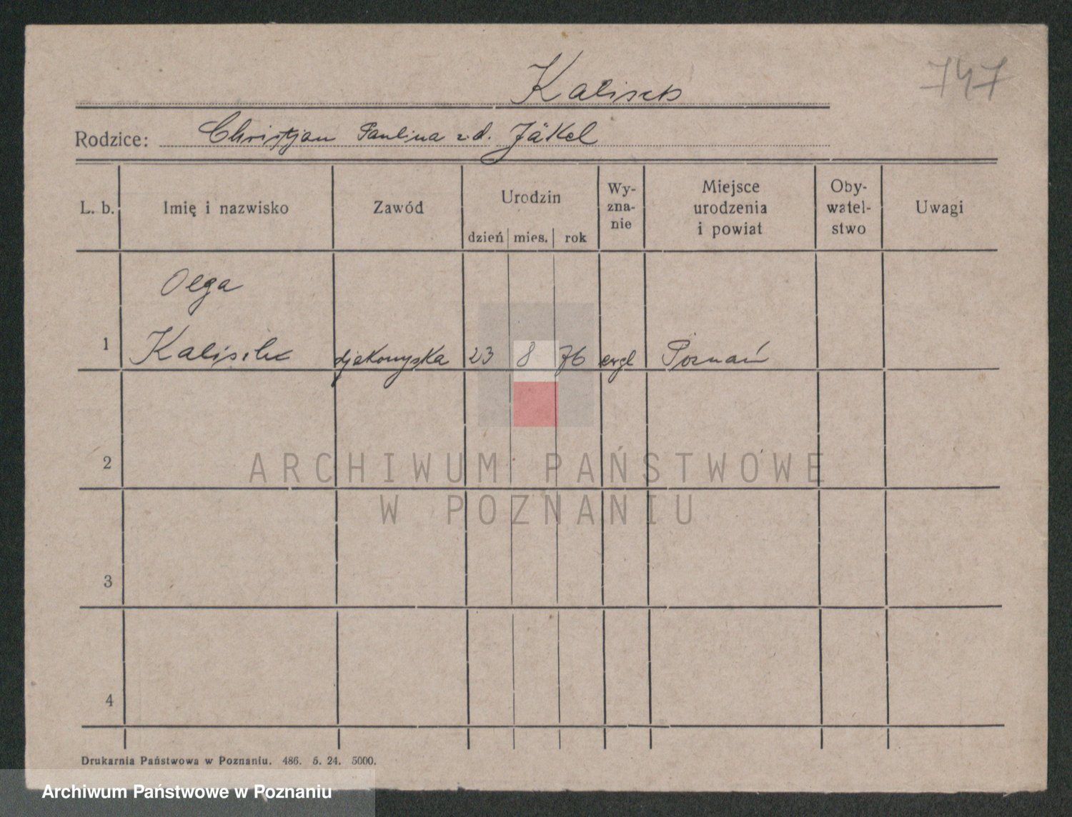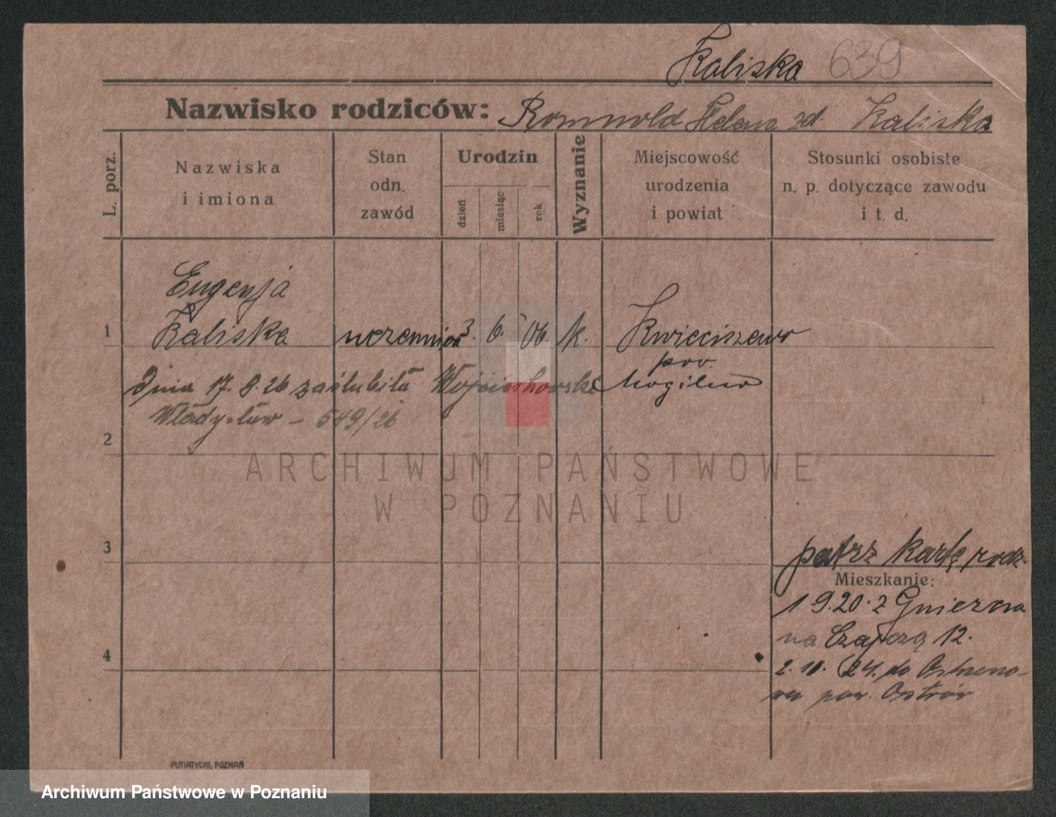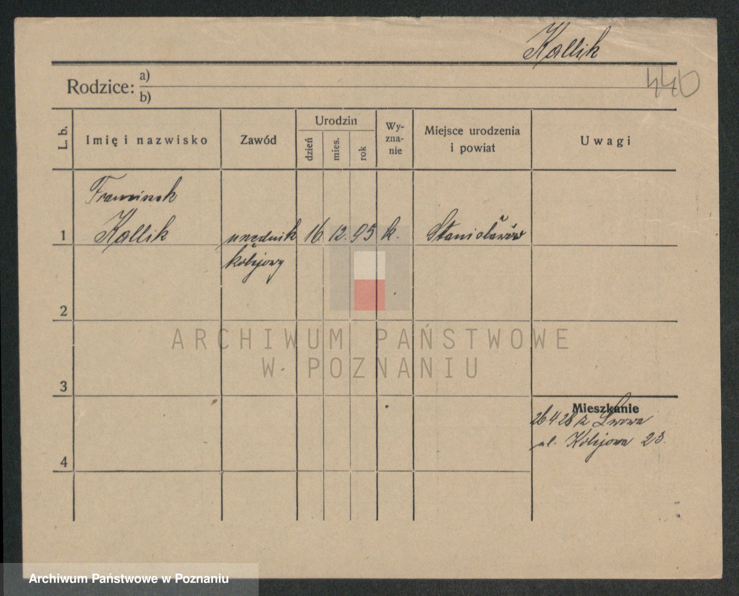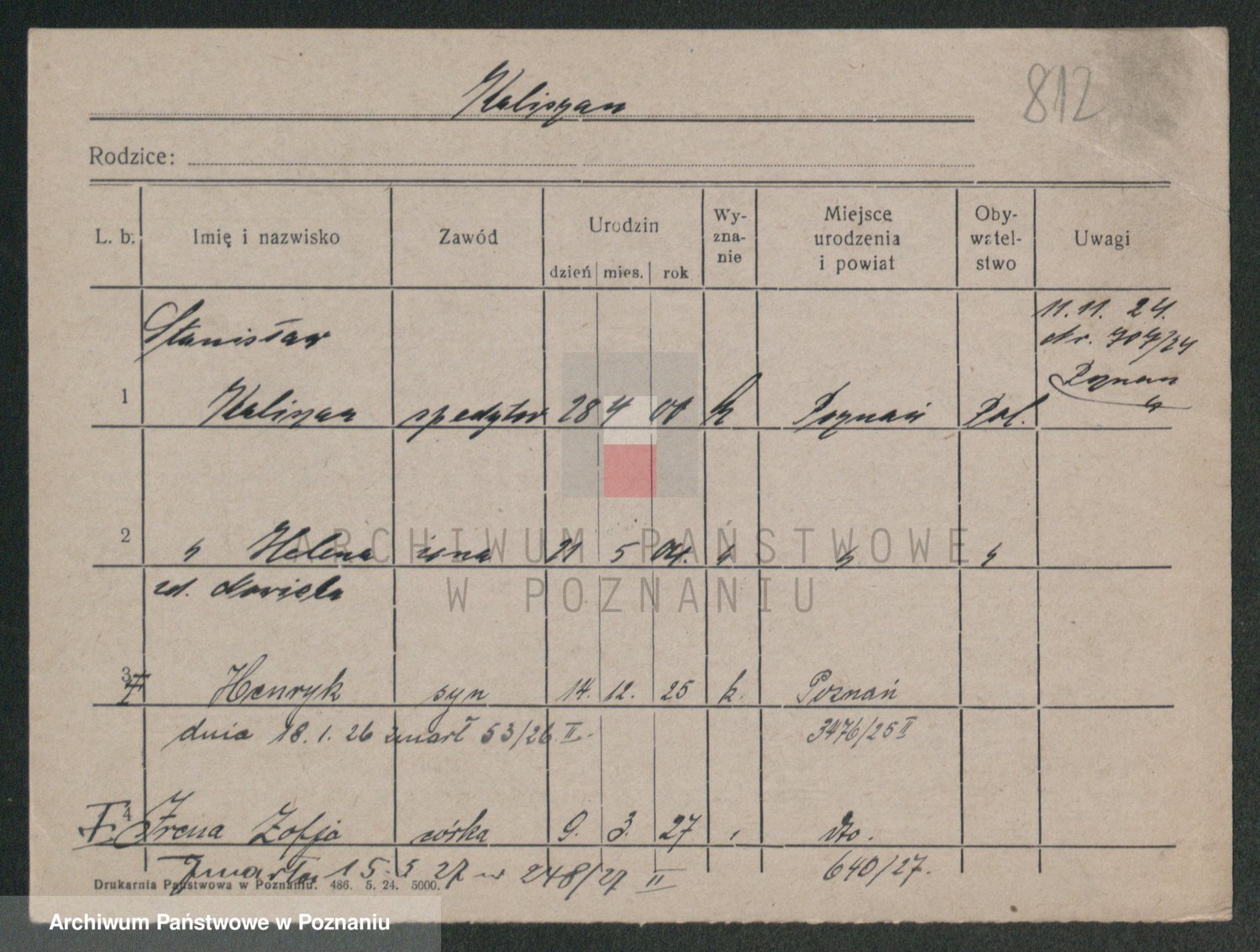 Podgląd karty osobowej dostępny jest po kliknięciu na nazwisko lub ikonkę karty. Można dokonywać powiększenia (ikony na górze) lub przechodzić między kolejnymi skanami (strzałki po bokach).