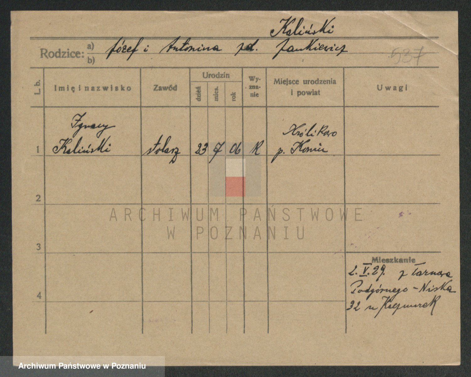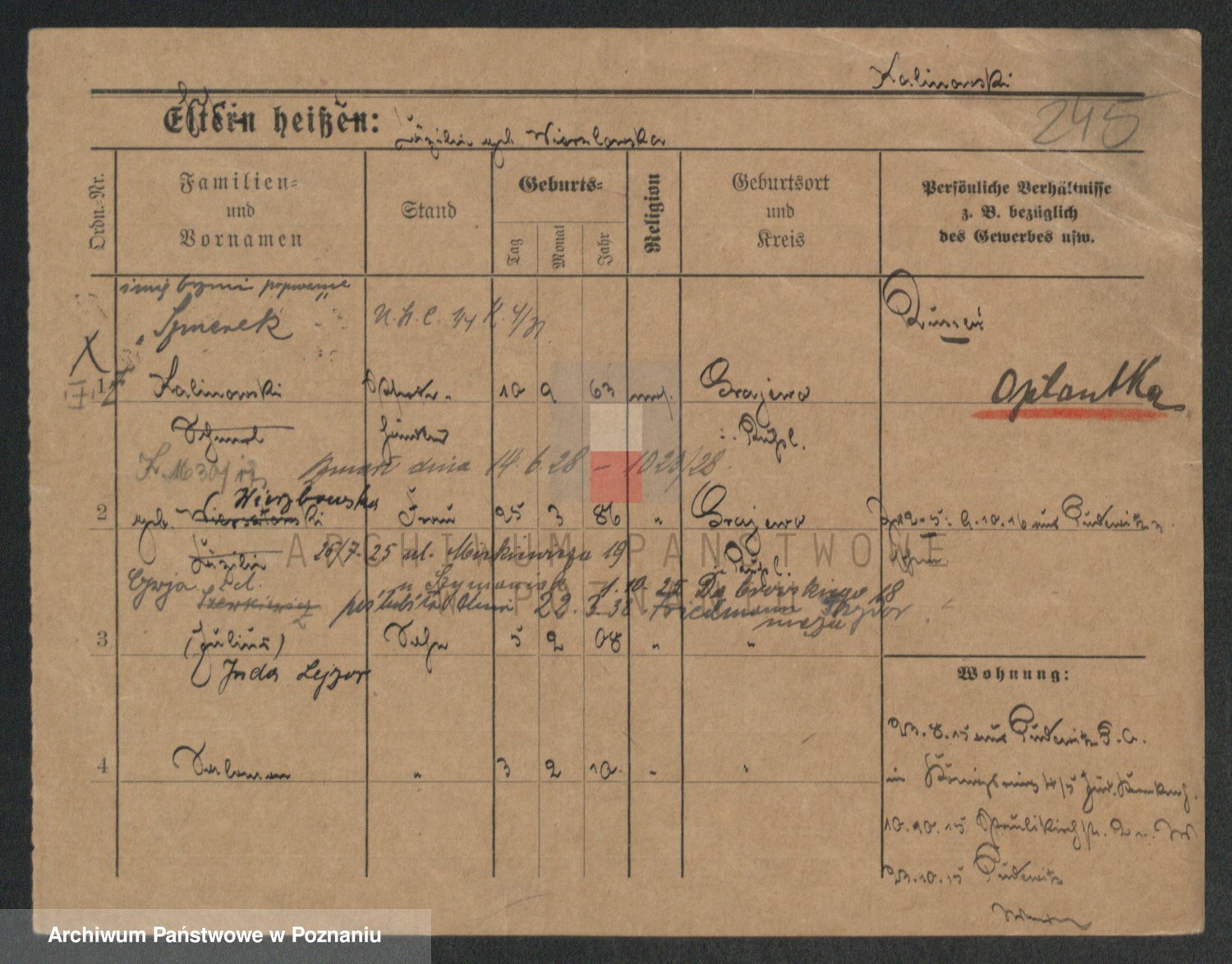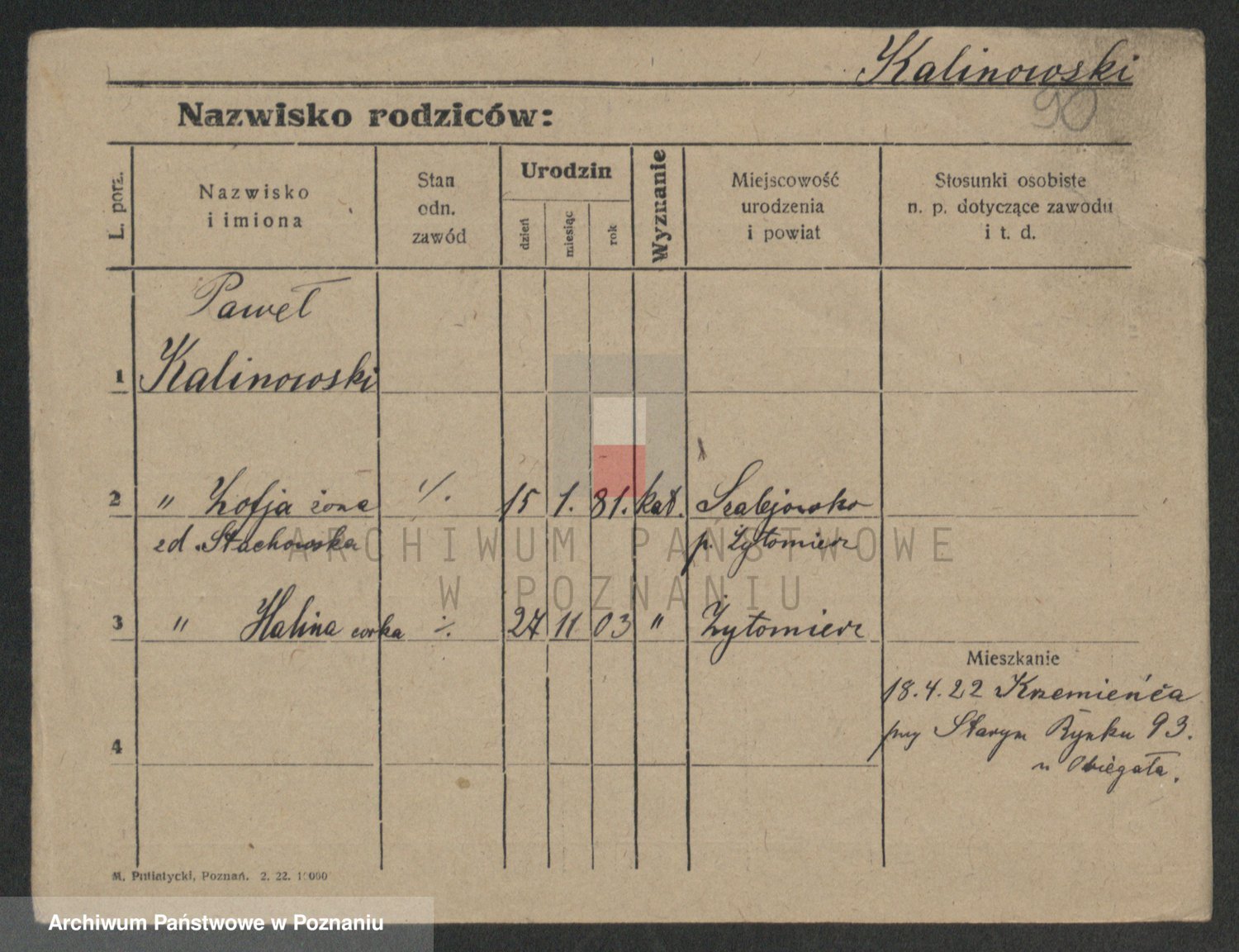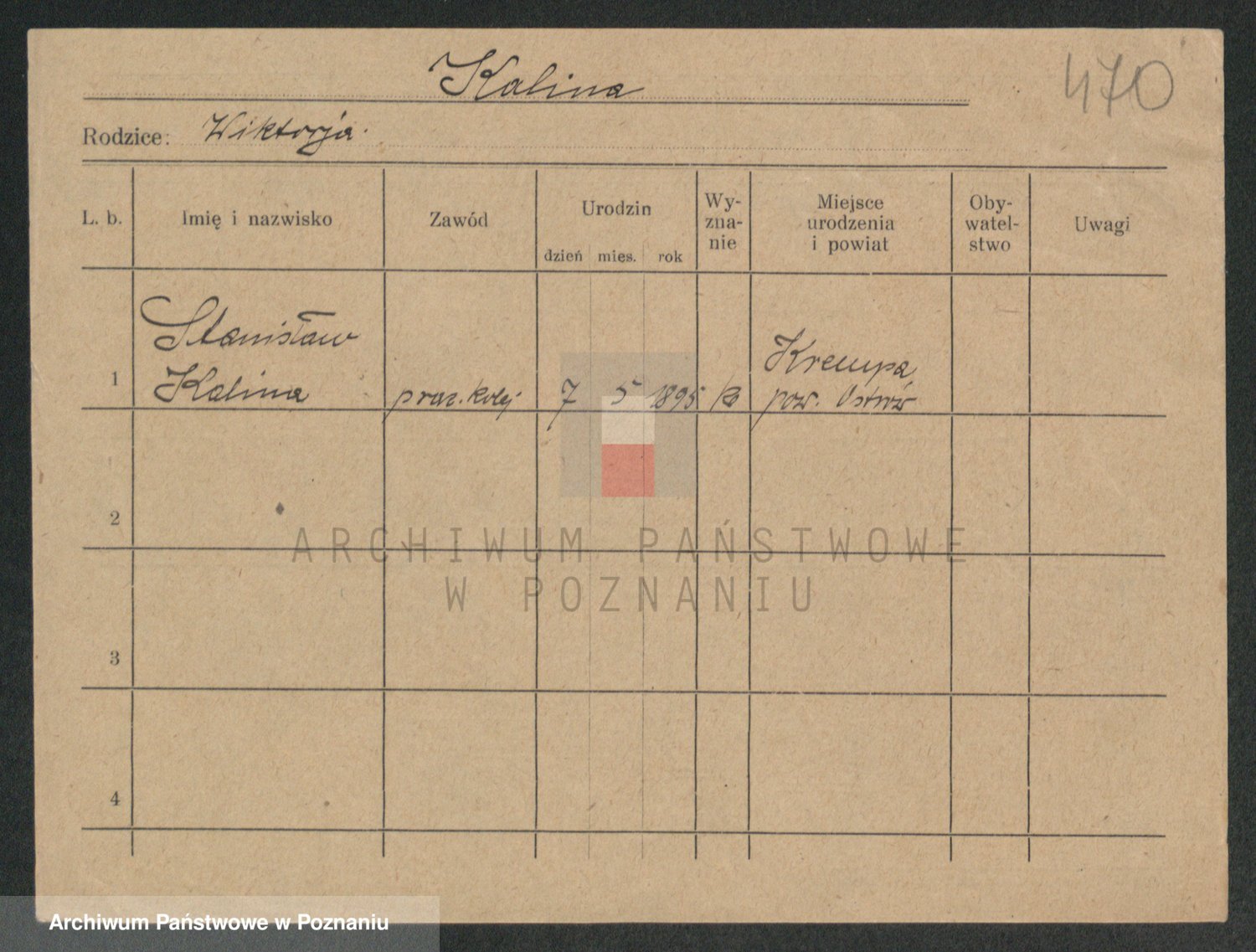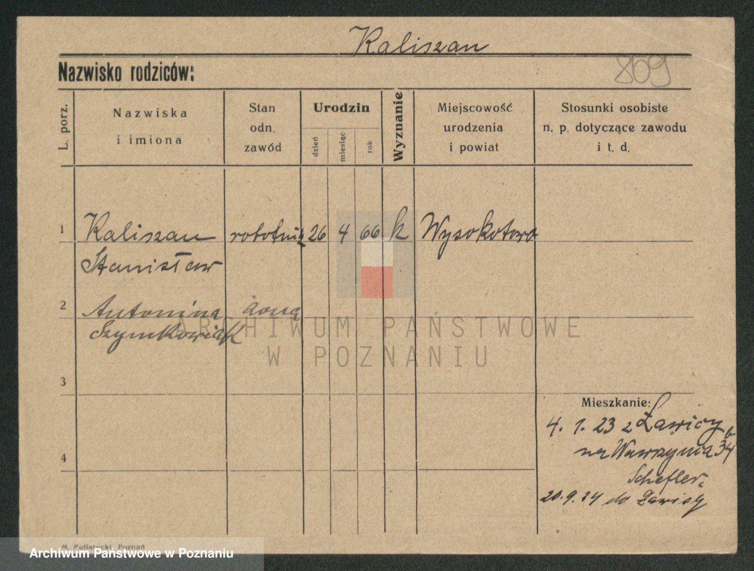 Podgląd karty osobowej dostępny jest po kliknięciu na nazwisko lub ikonkę karty. Można dokonywać powiększenia (ikony na górze) lub przechodzić między kolejnymi skanami (strzałki po bokach).