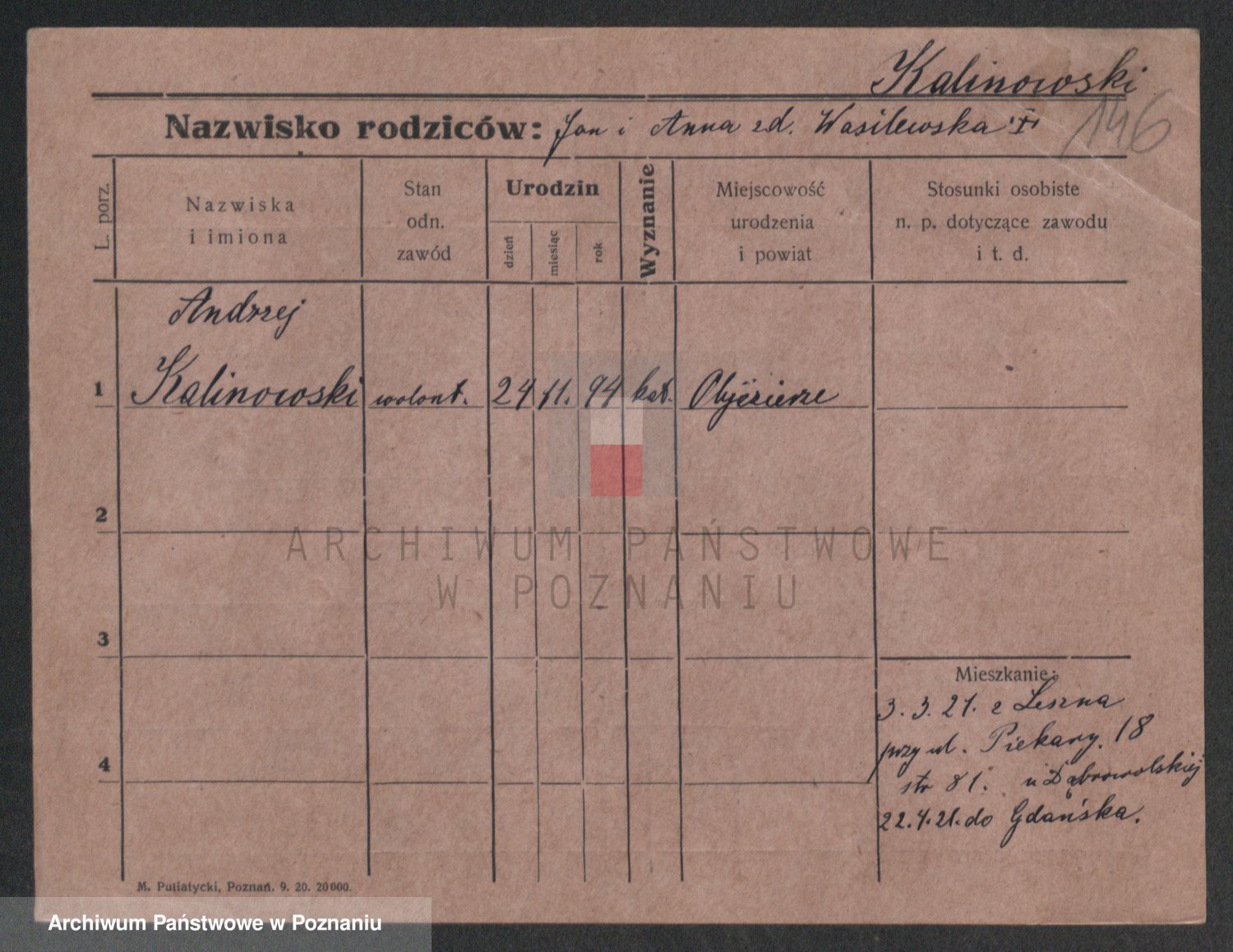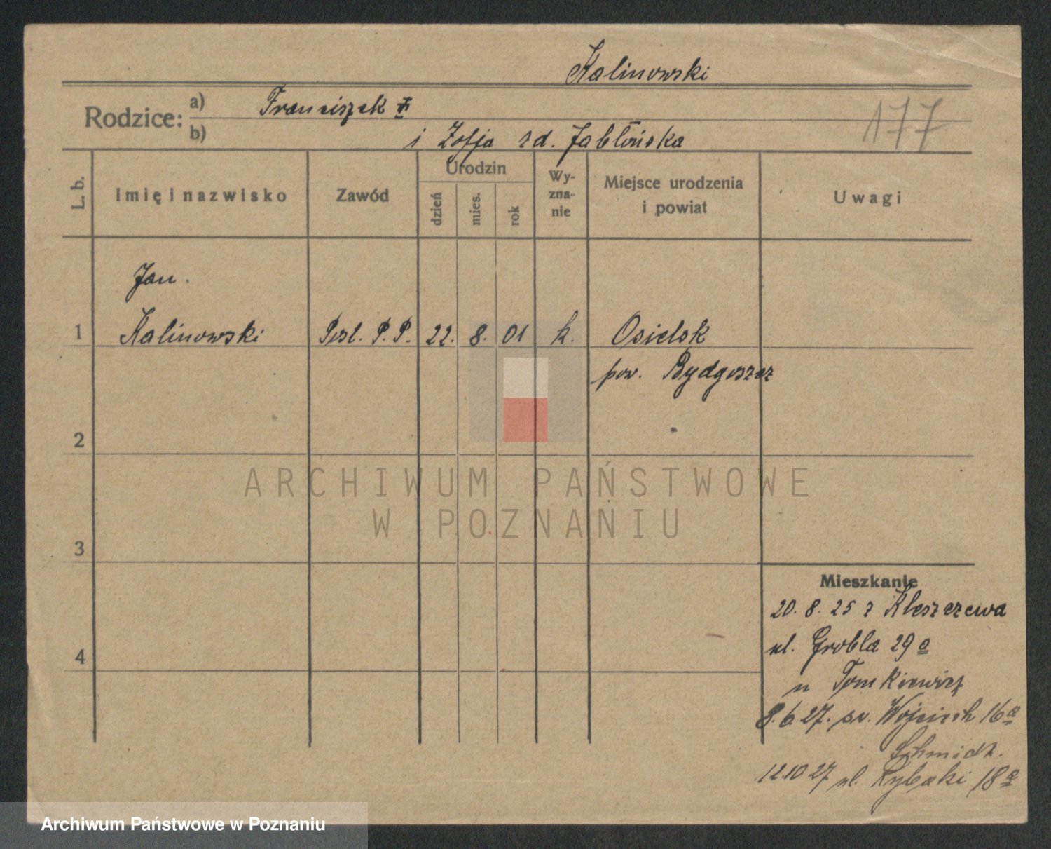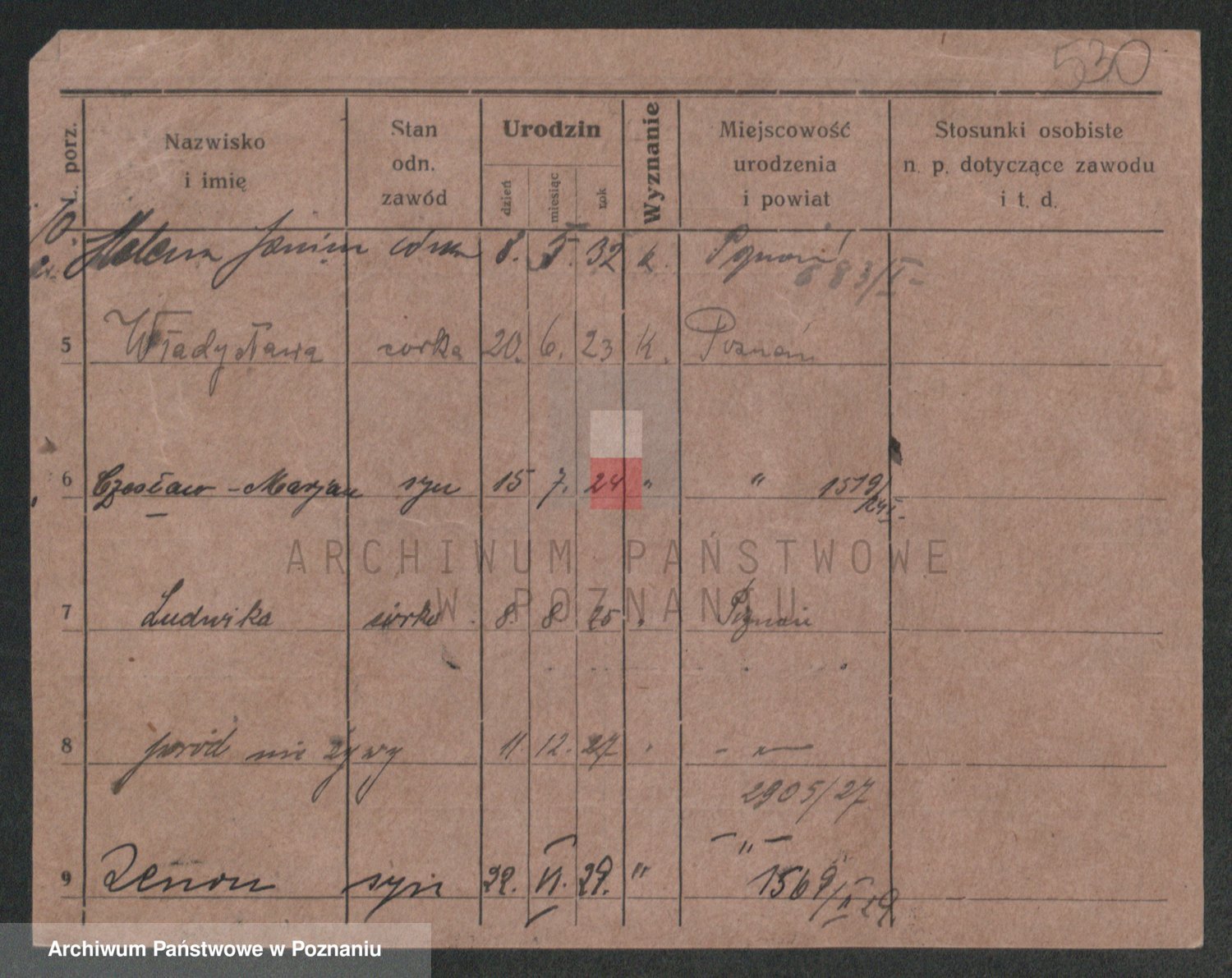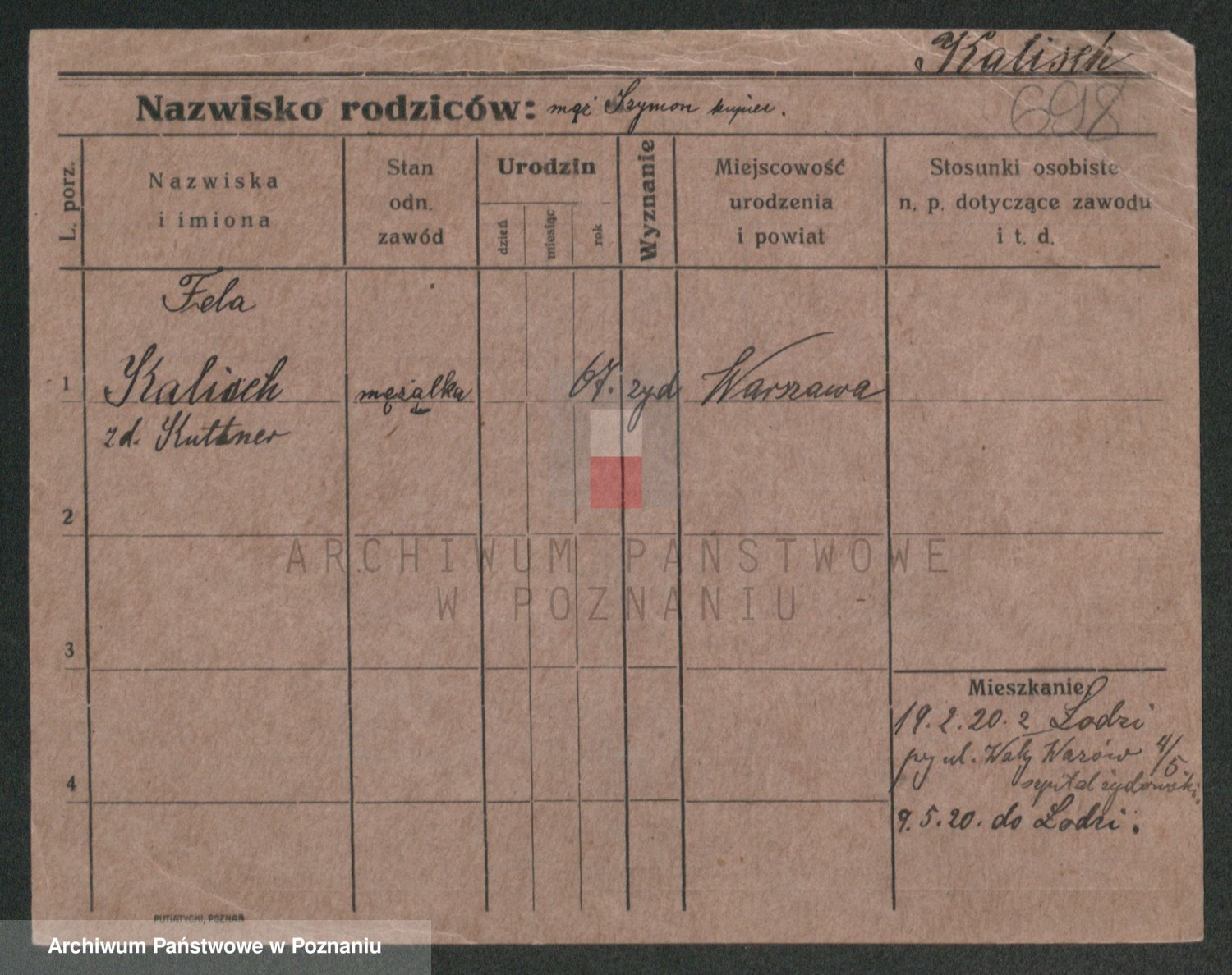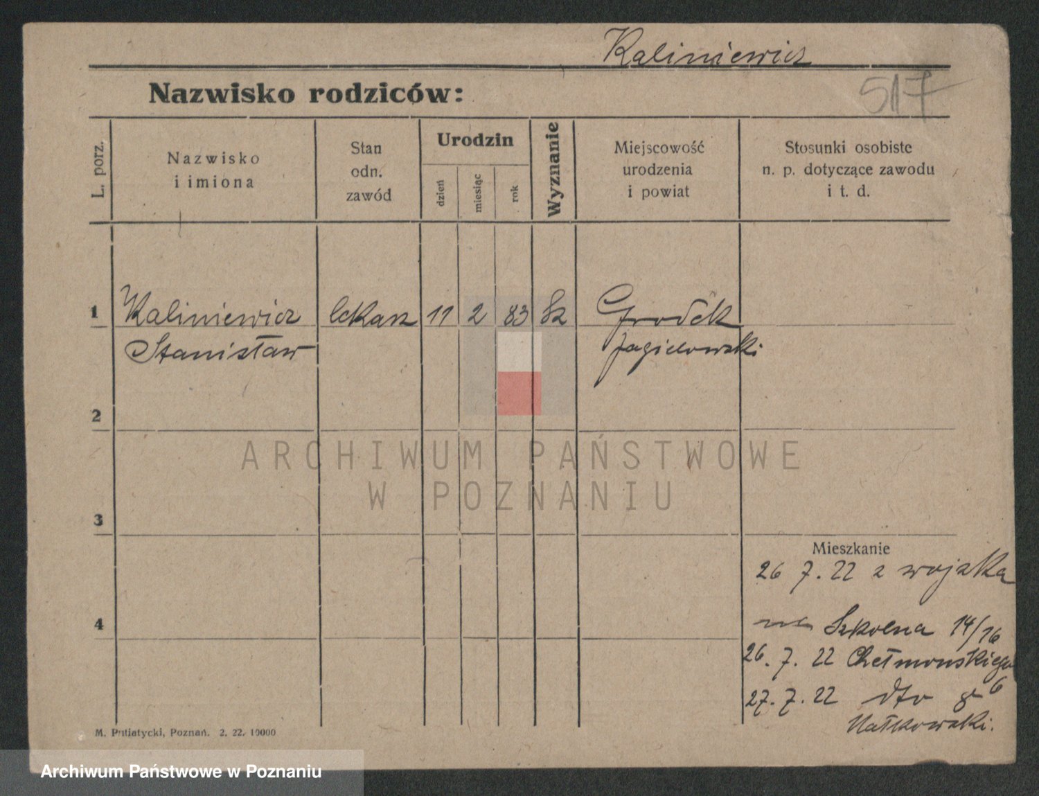 Podgląd karty osobowej dostępny jest po kliknięciu na nazwisko lub ikonkę karty. Można dokonywać powiększenia (ikony na górze) lub przechodzić między kolejnymi skanami (strzałki po bokach).