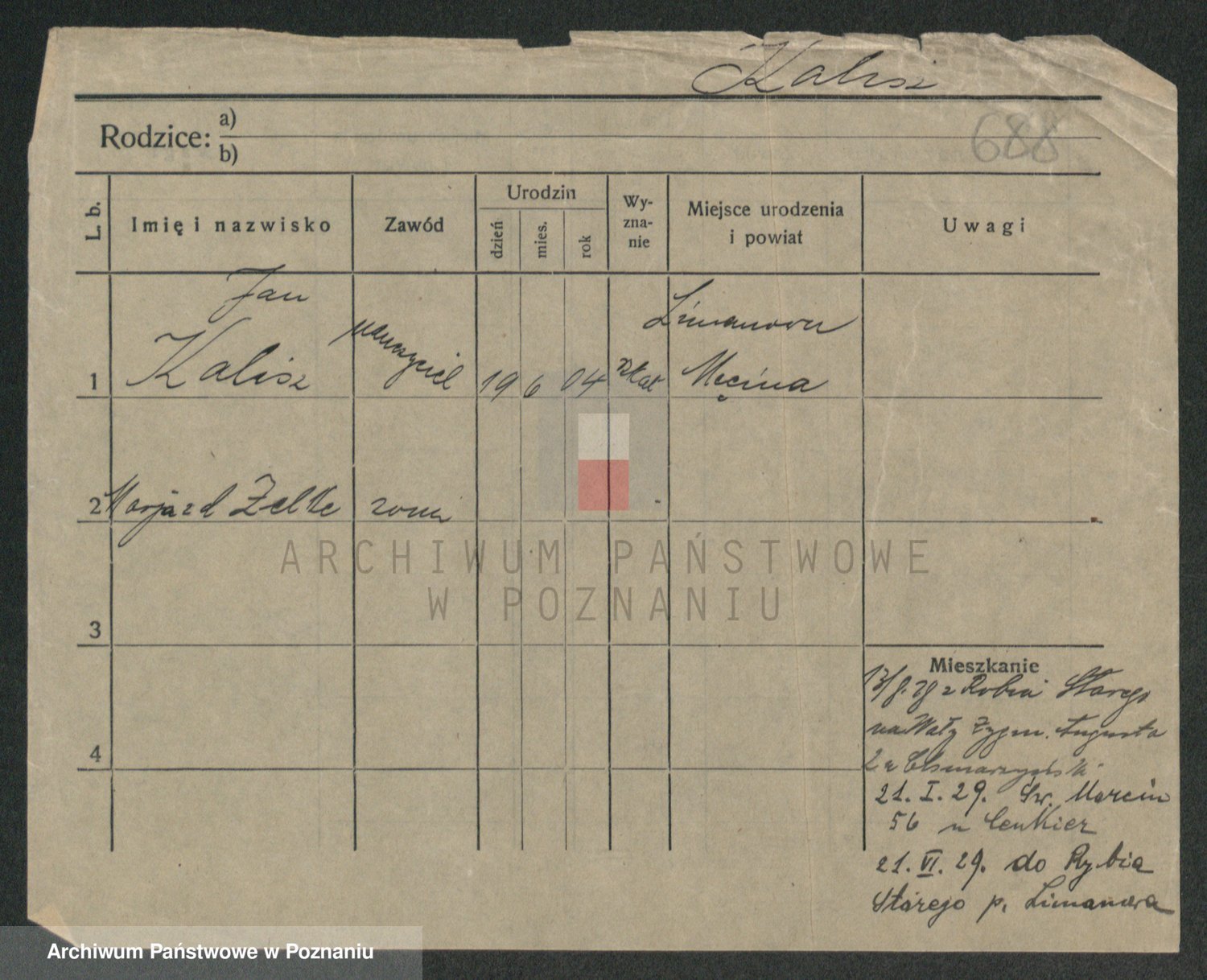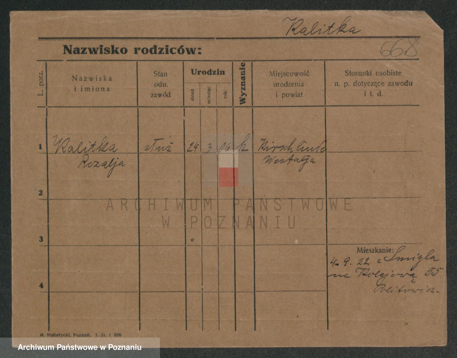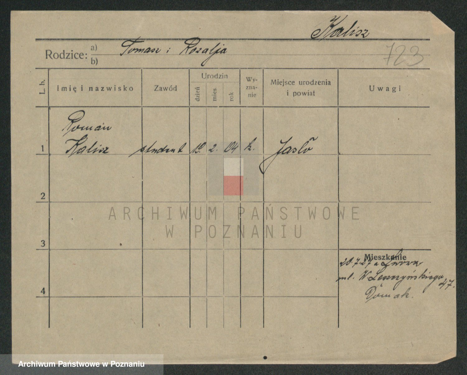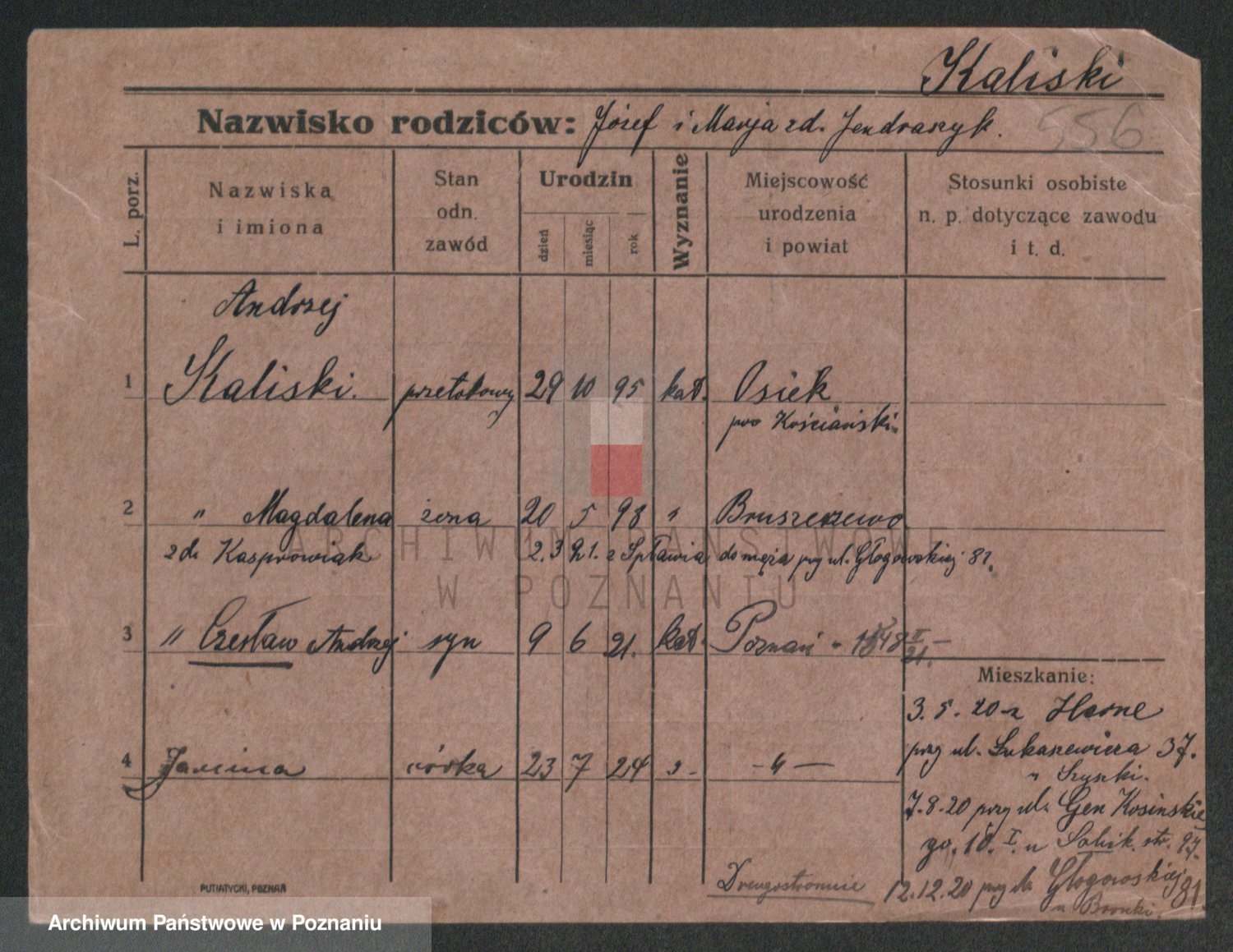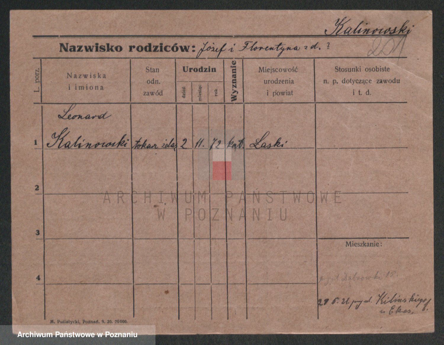 Podgląd karty osobowej dostępny jest po kliknięciu na nazwisko lub ikonkę karty. Można dokonywać powiększenia (ikony na górze) lub przechodzić między kolejnymi skanami (strzałki po bokach).