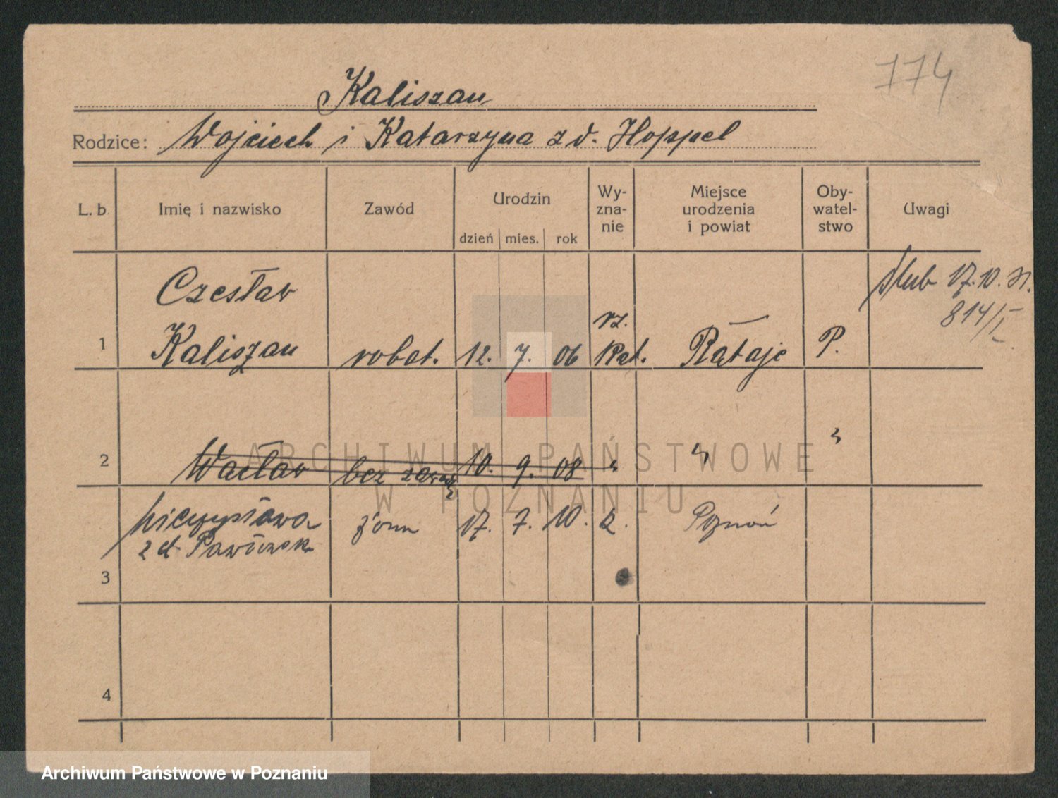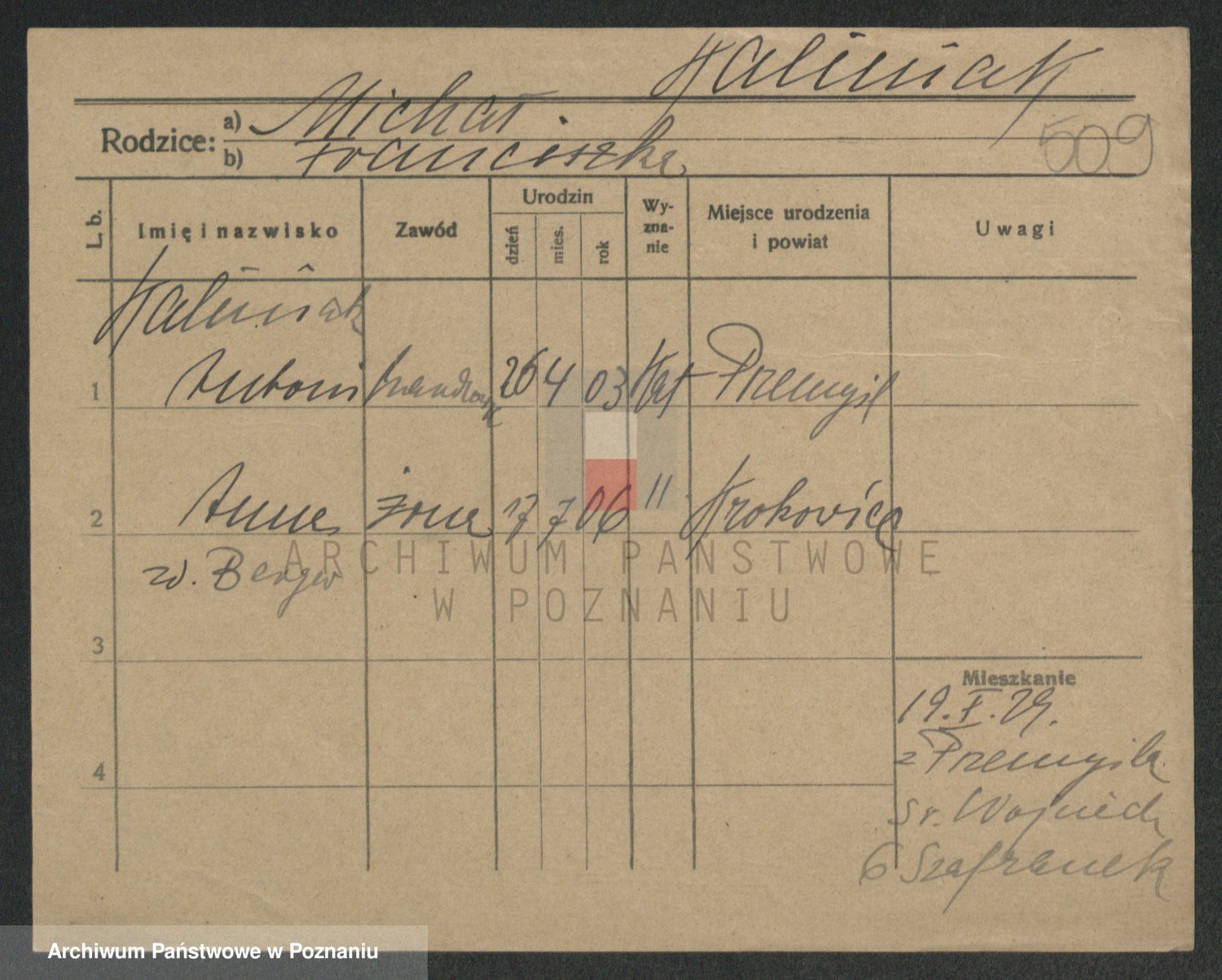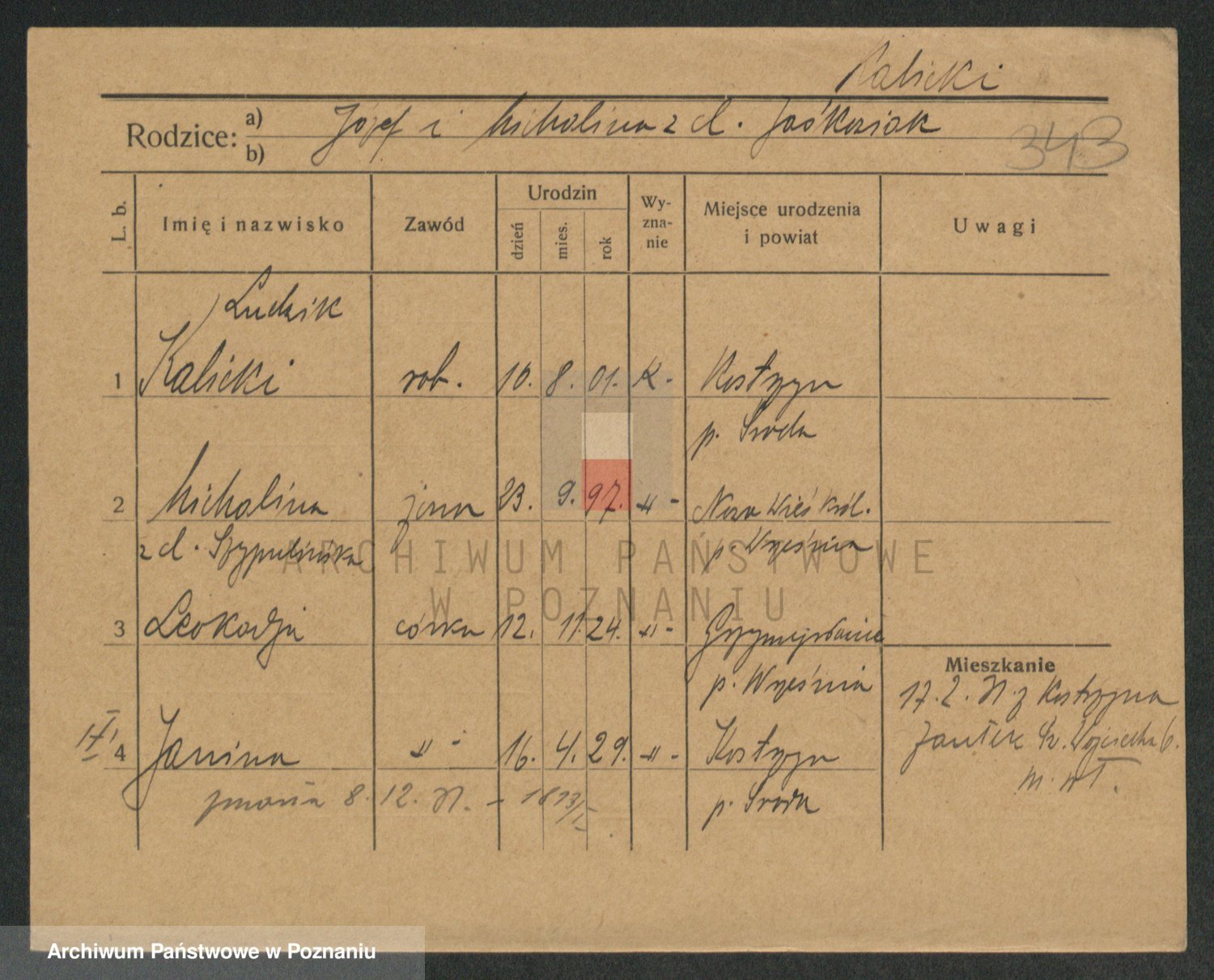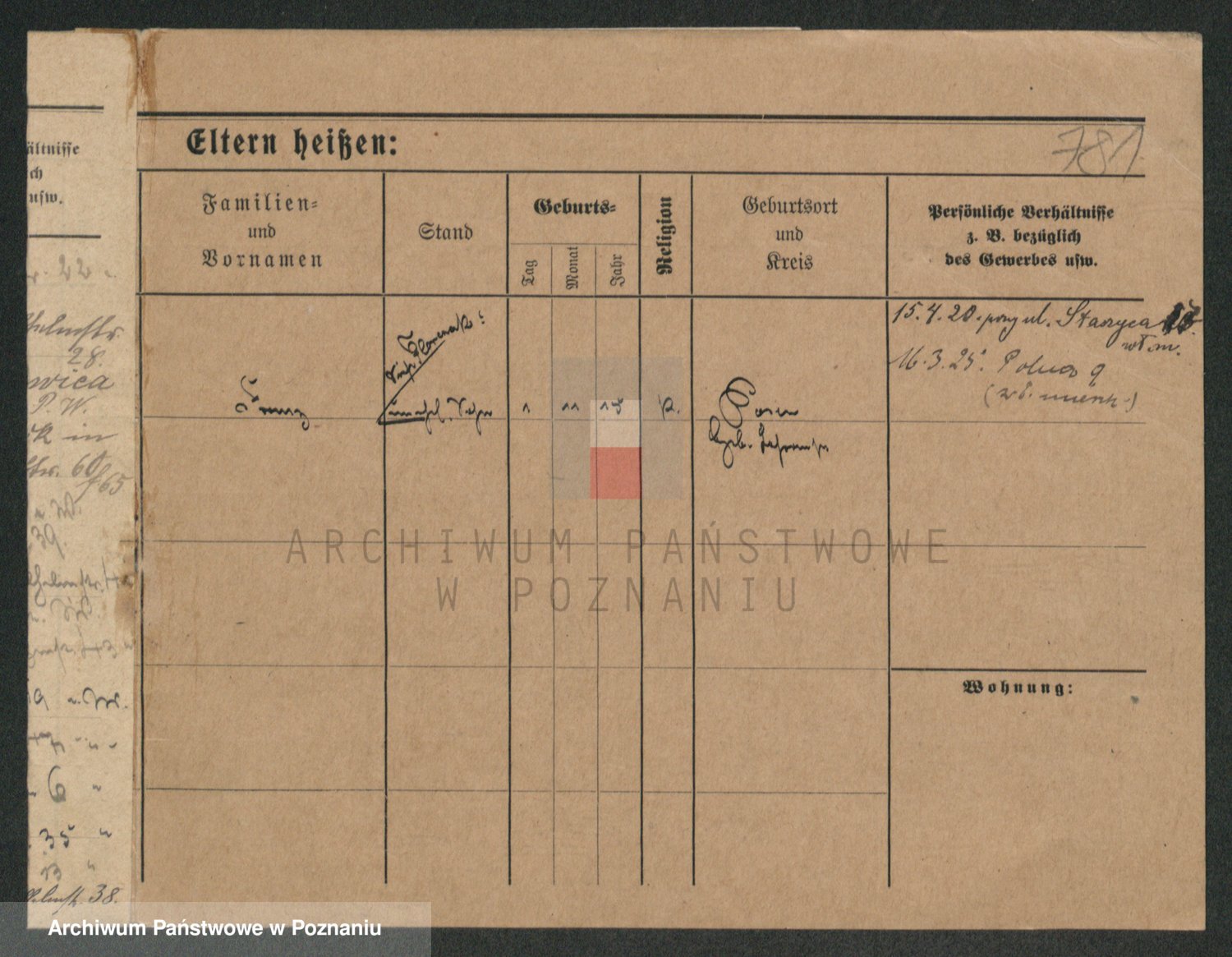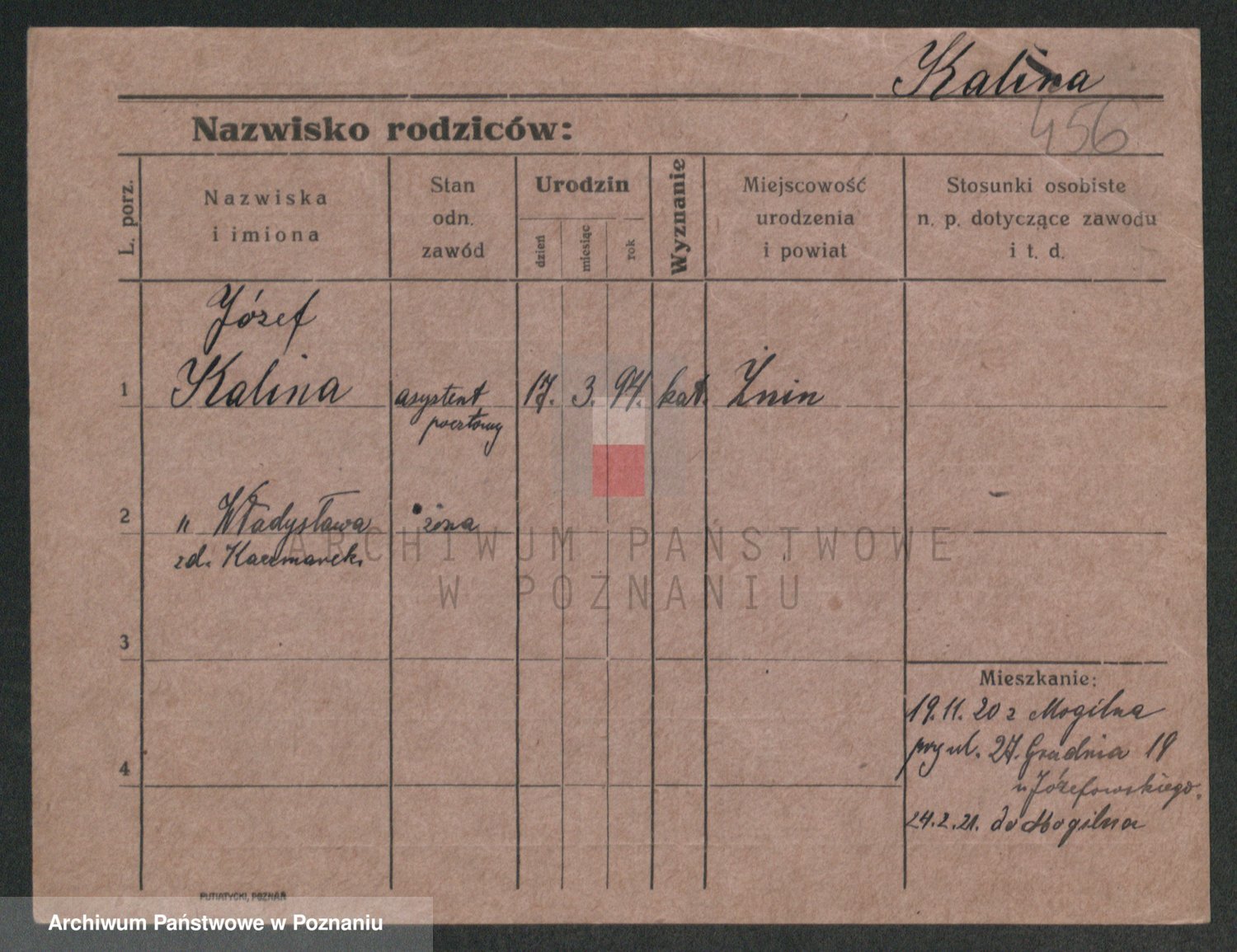 Podgląd karty osobowej dostępny jest po kliknięciu na nazwisko lub ikonkę karty. Można dokonywać powiększenia (ikony na górze) lub przechodzić między kolejnymi skanami (strzałki po bokach).