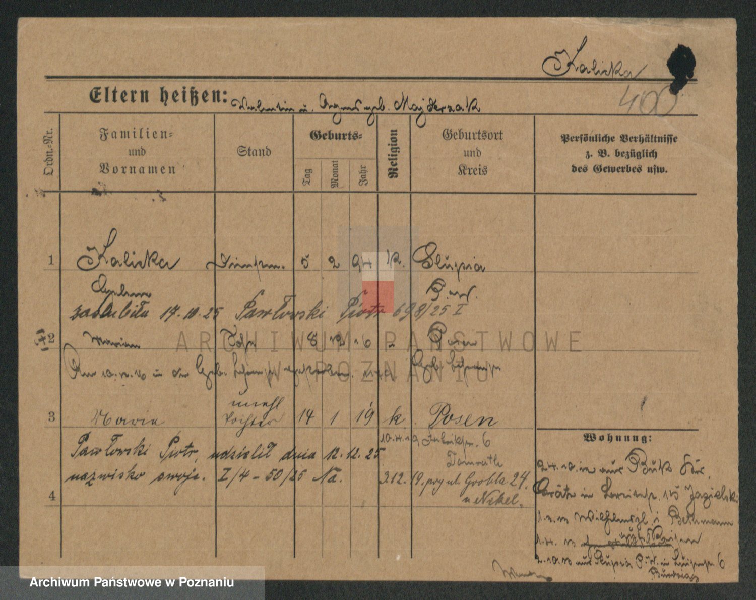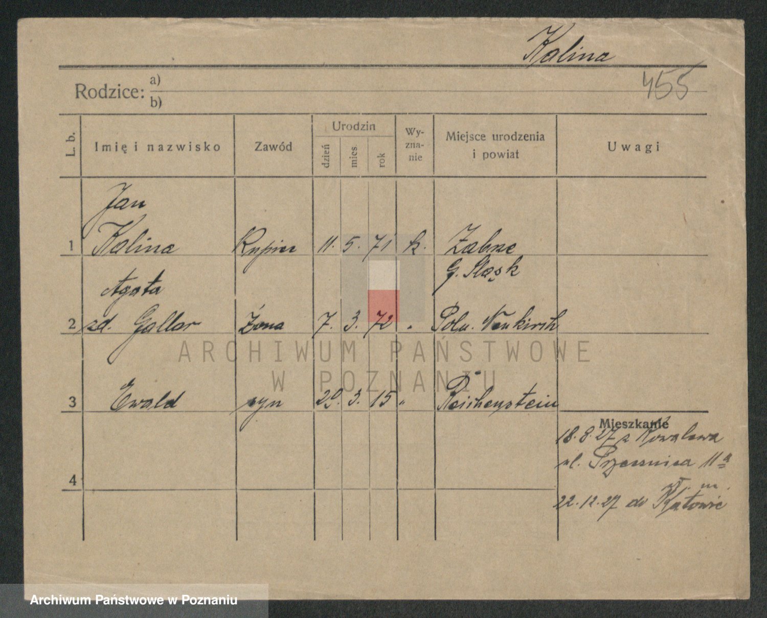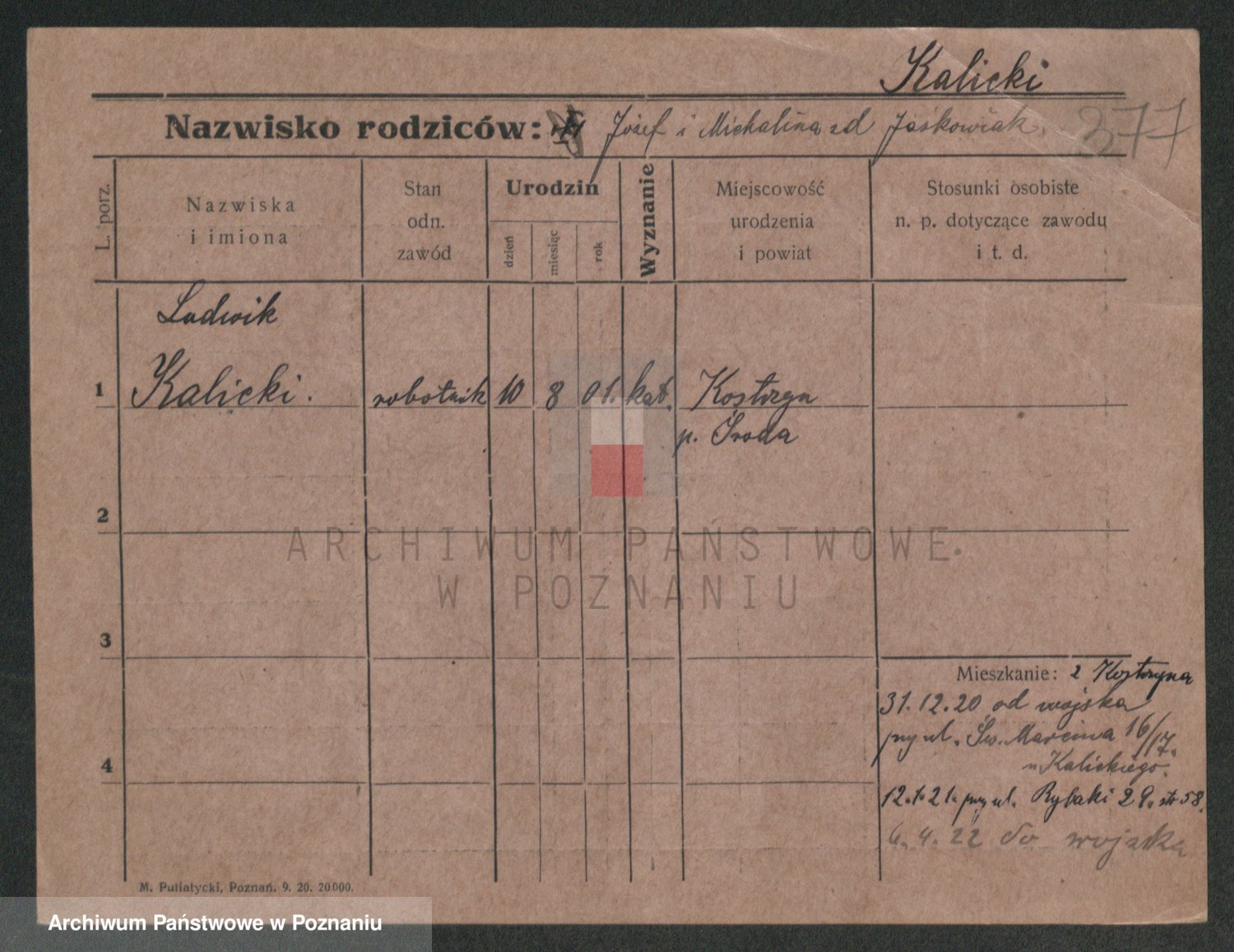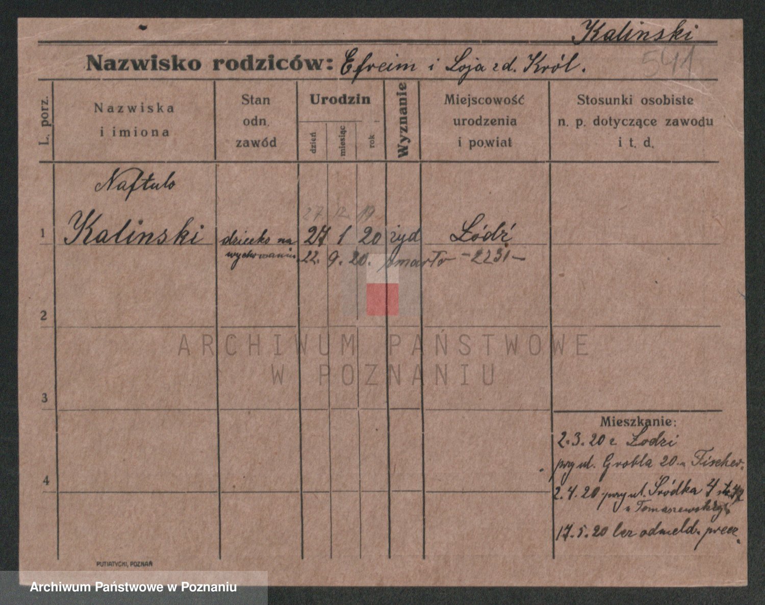 Podgląd karty osobowej dostępny jest po kliknięciu na nazwisko lub ikonkę karty. Można dokonywać powiększenia (ikony na górze) lub przechodzić między kolejnymi skanami (strzałki po bokach).