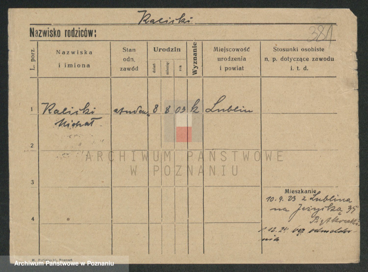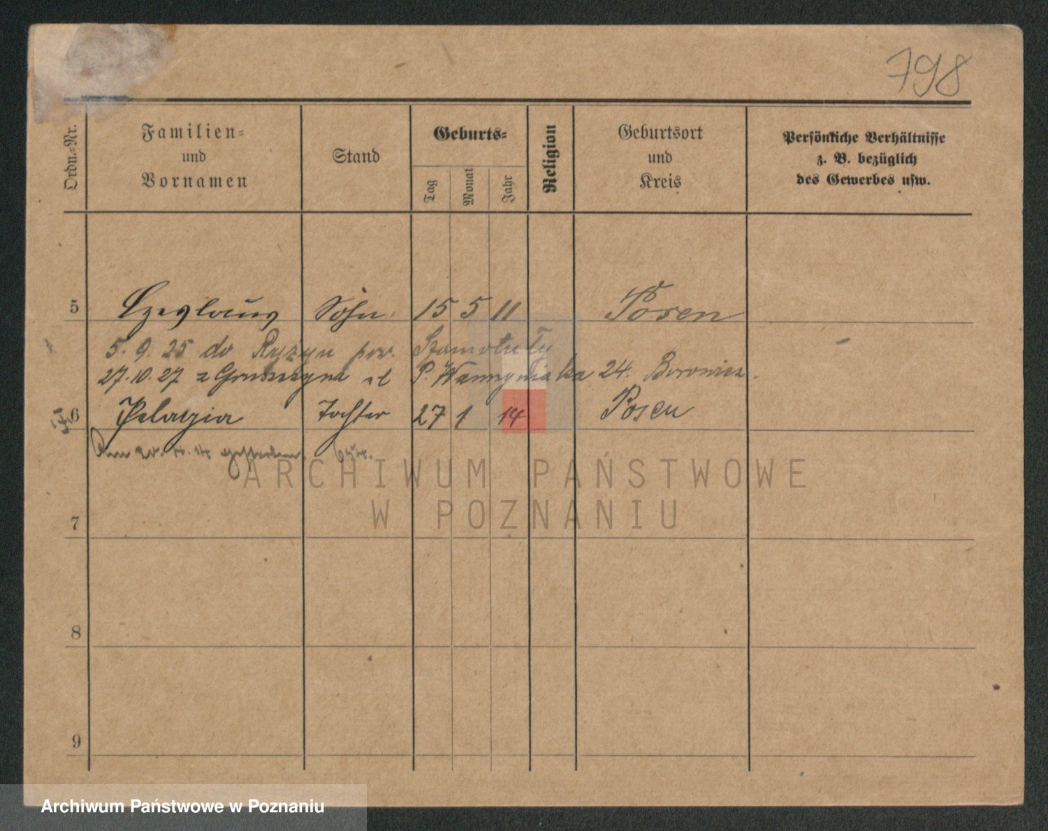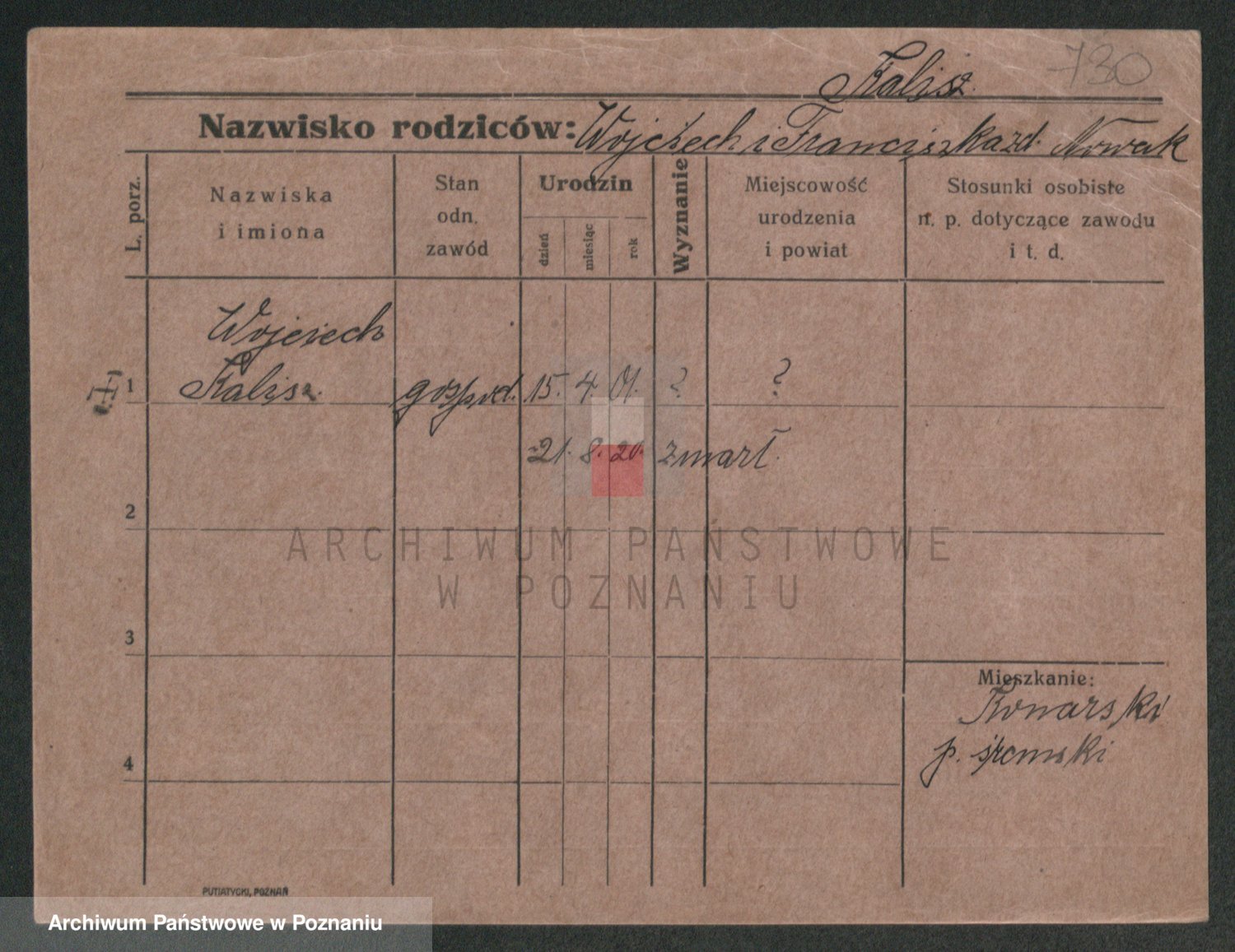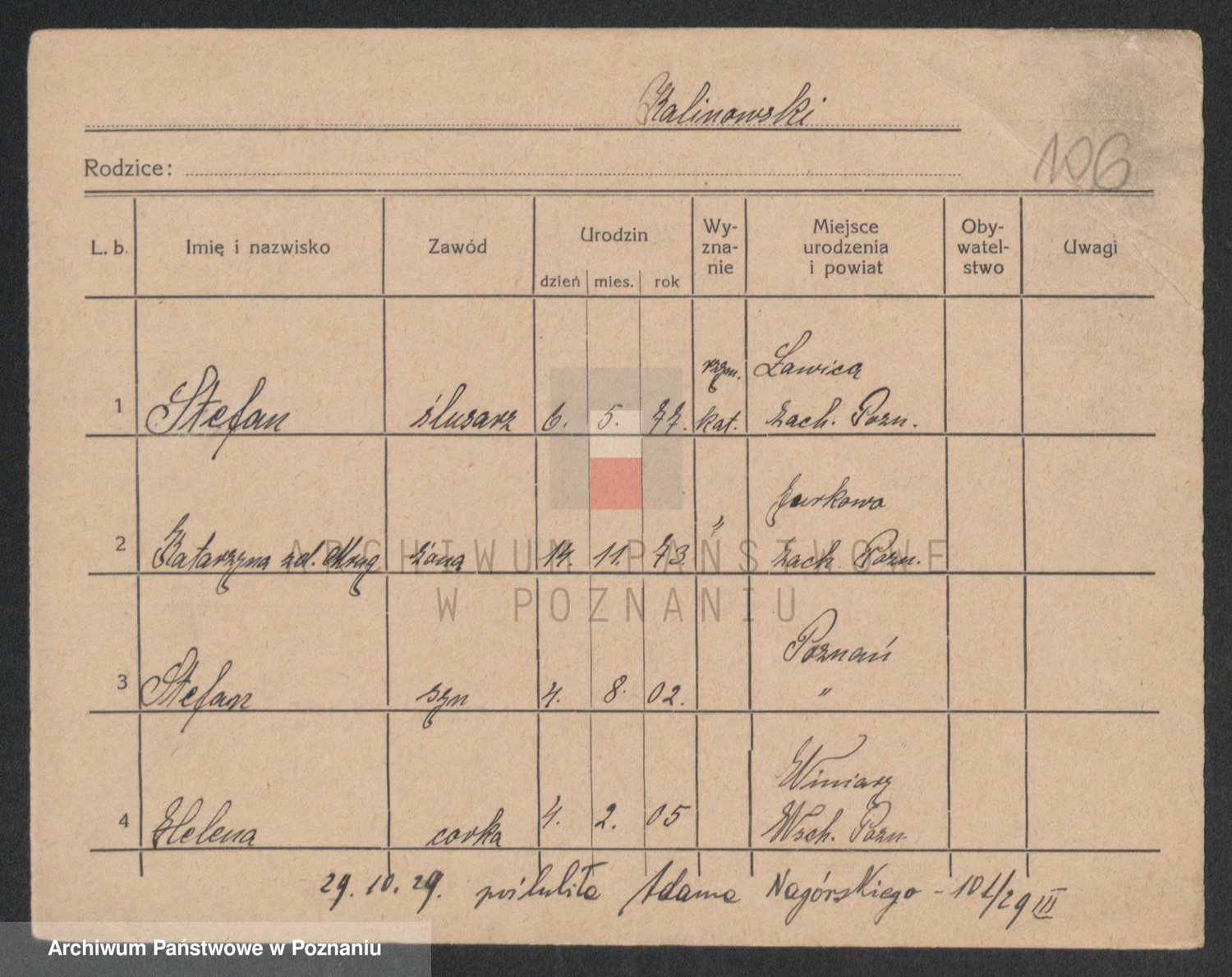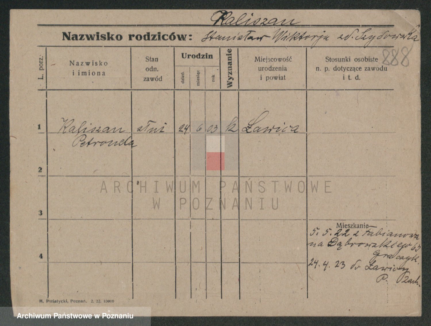 Podgląd karty osobowej dostępny jest po kliknięciu na nazwisko lub ikonkę karty. Można dokonywać powiększenia (ikony na górze) lub przechodzić między kolejnymi skanami (strzałki po bokach).