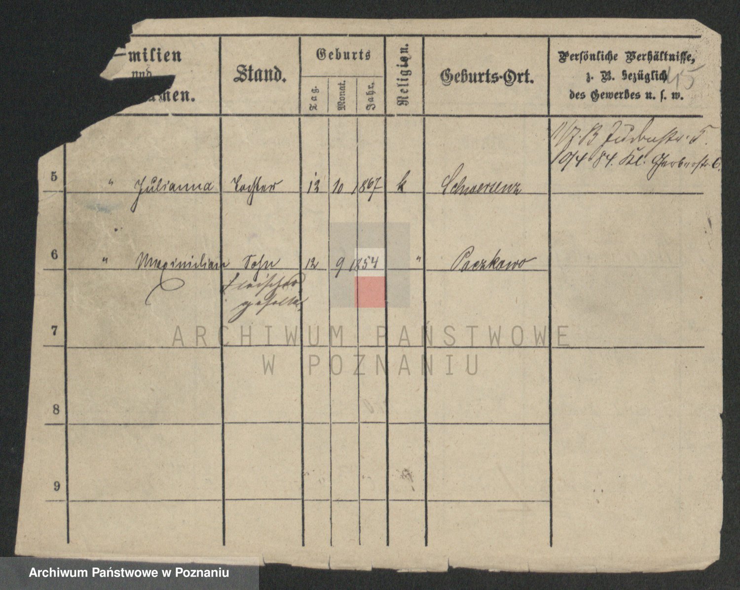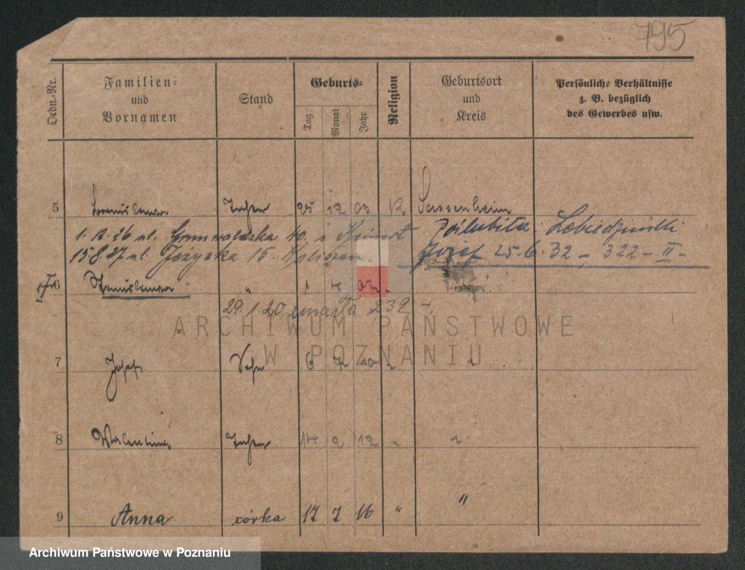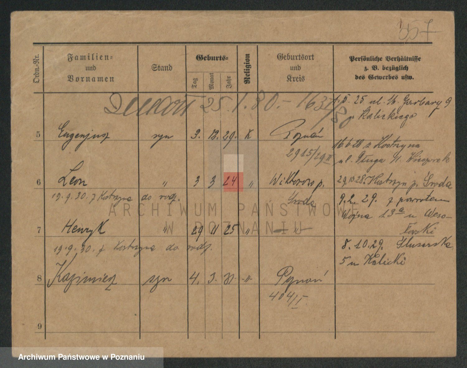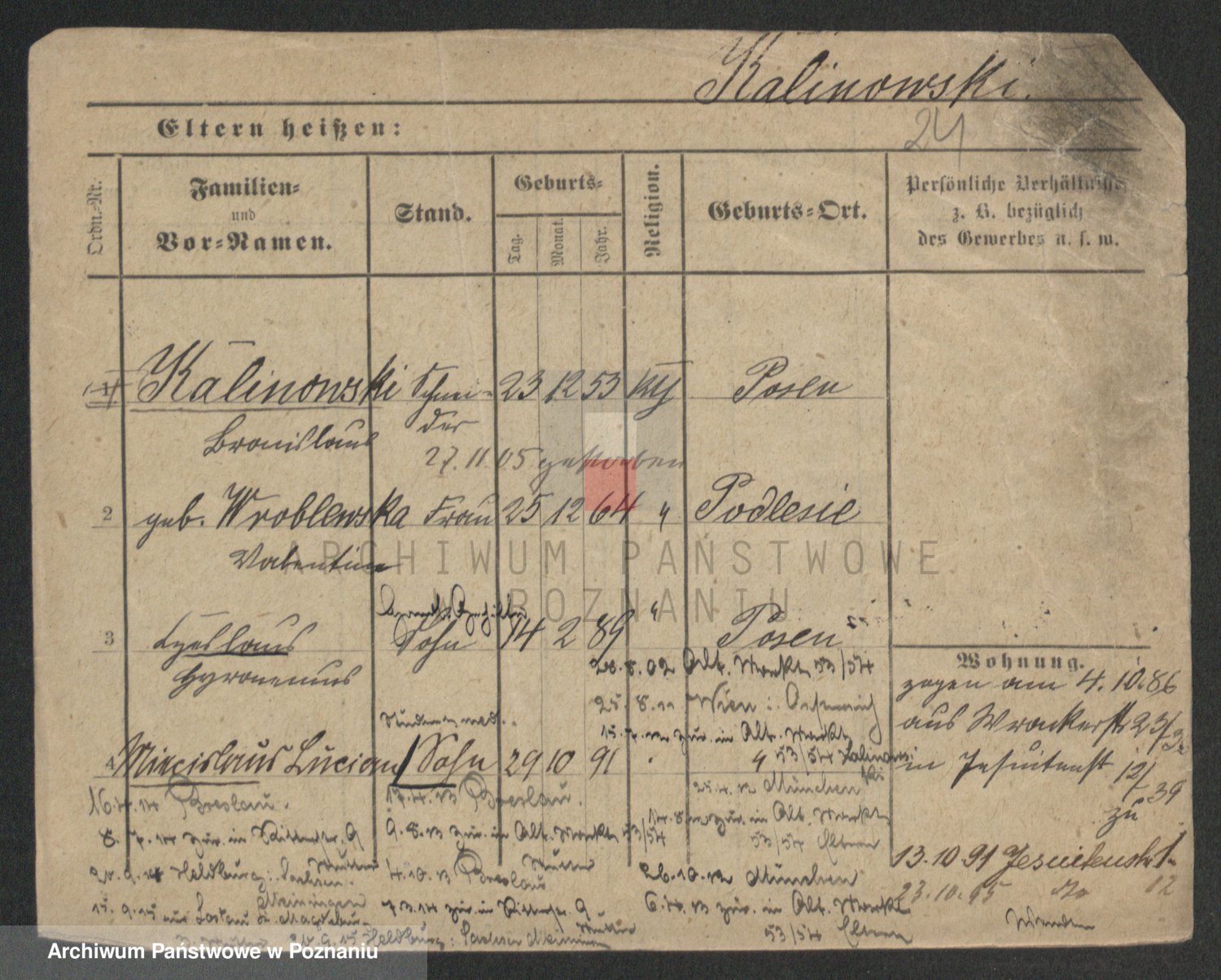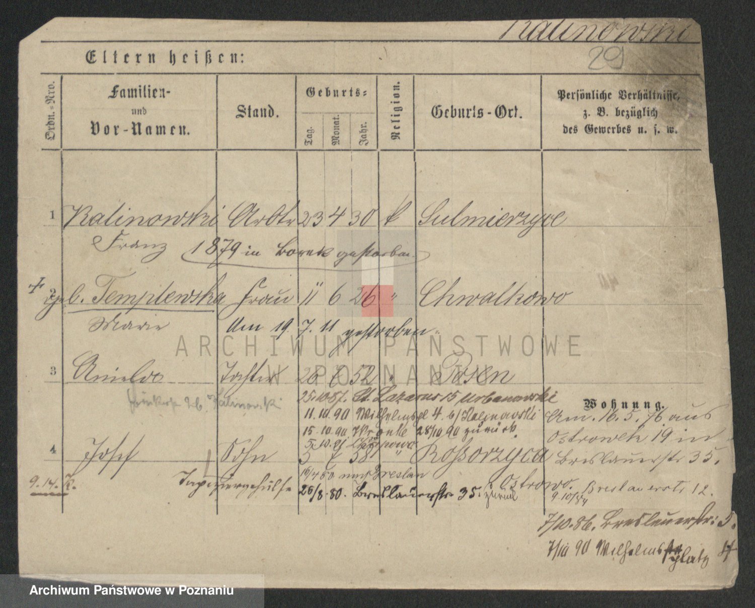 Podgląd karty osobowej dostępny jest po kliknięciu na nazwisko lub ikonkę karty. Można dokonywać powiększenia (ikony na górze) lub przechodzić między kolejnymi skanami (strzałki po bokach).