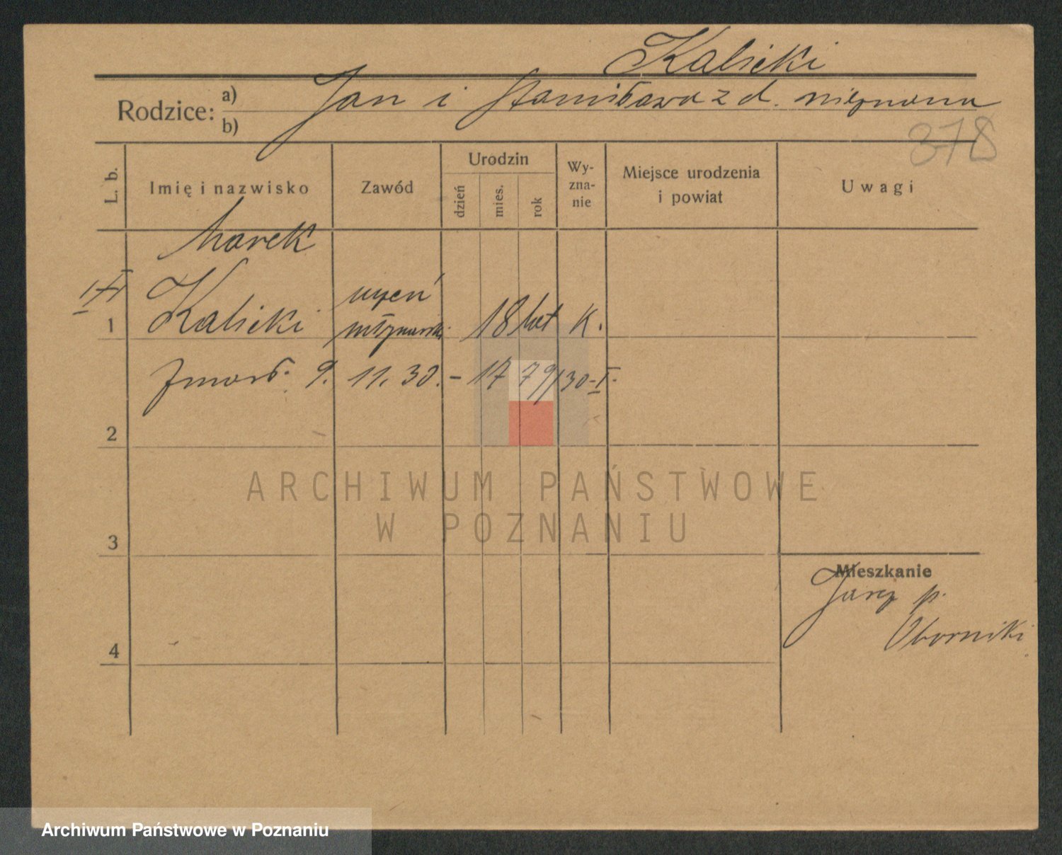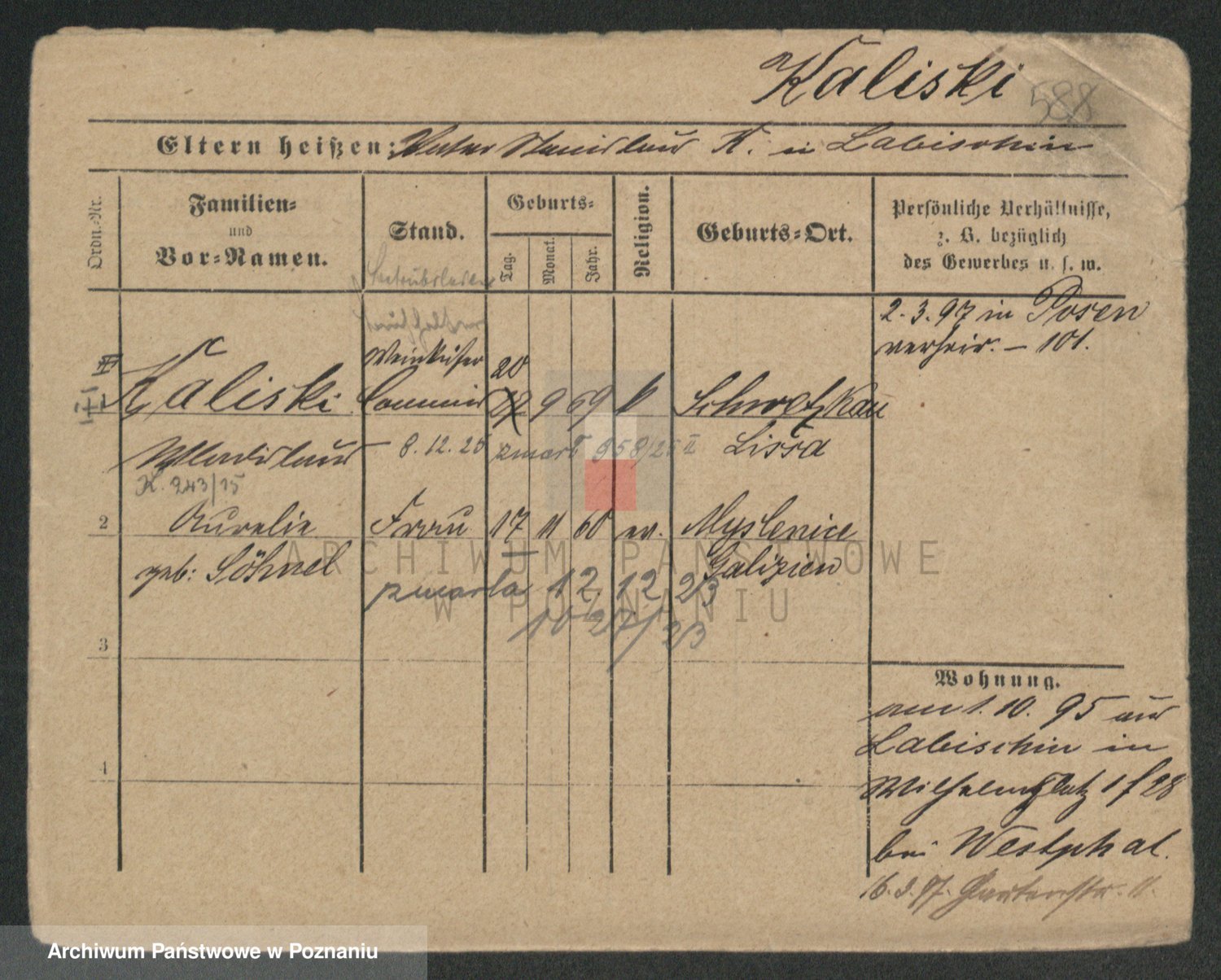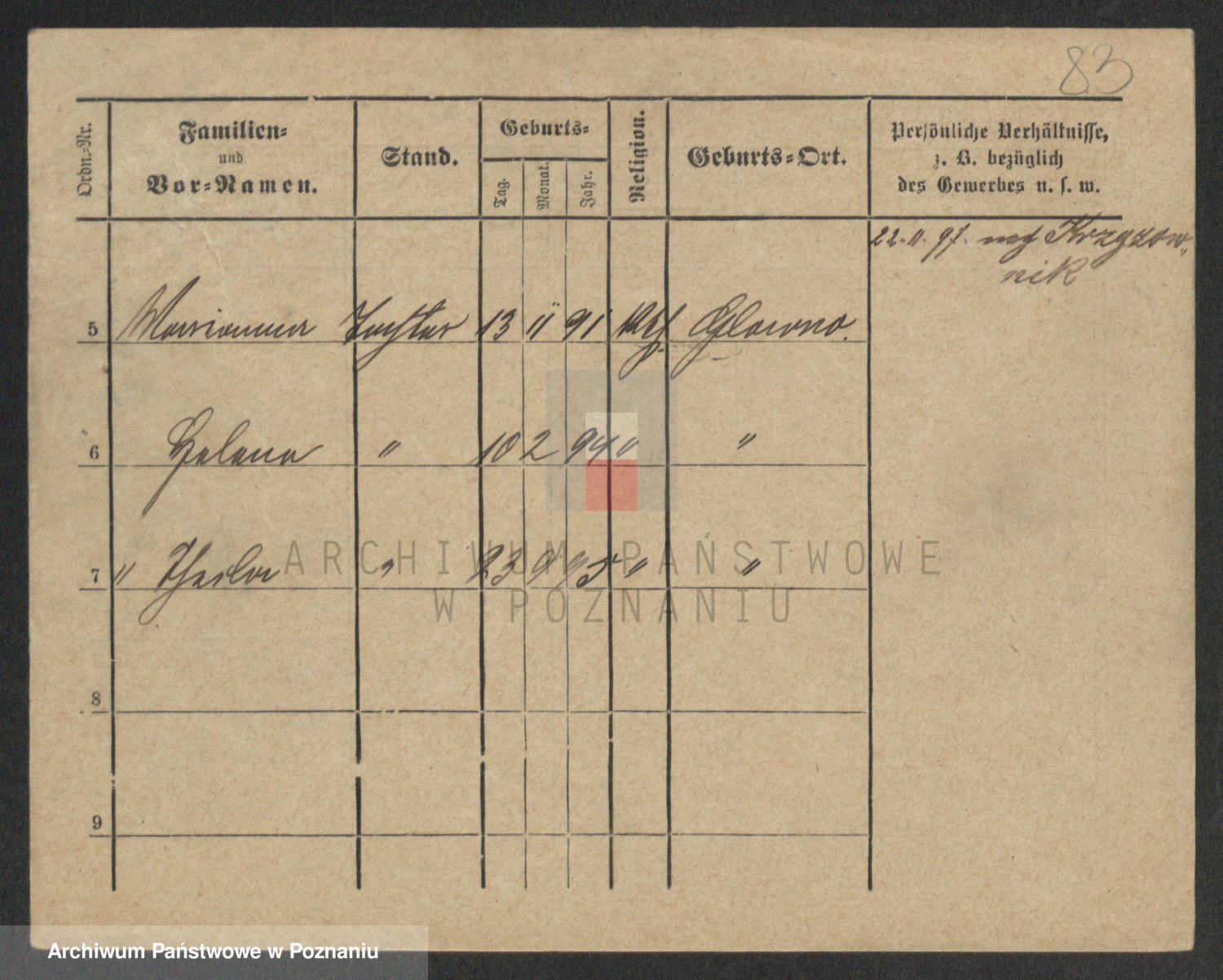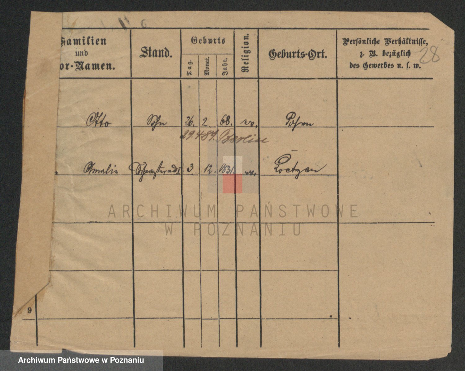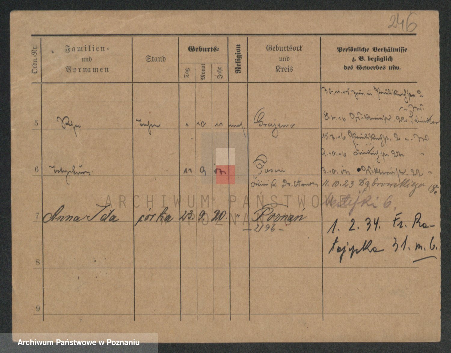 Podgląd karty osobowej dostępny jest po kliknięciu na nazwisko lub ikonkę karty. Można dokonywać powiększenia (ikony na górze) lub przechodzić między kolejnymi skanami (strzałki po bokach).