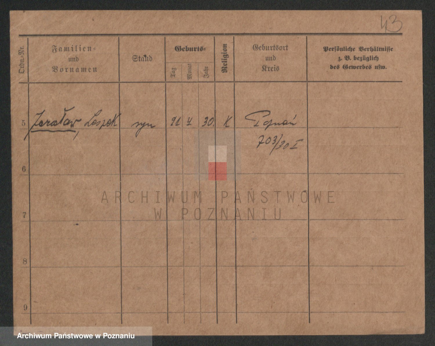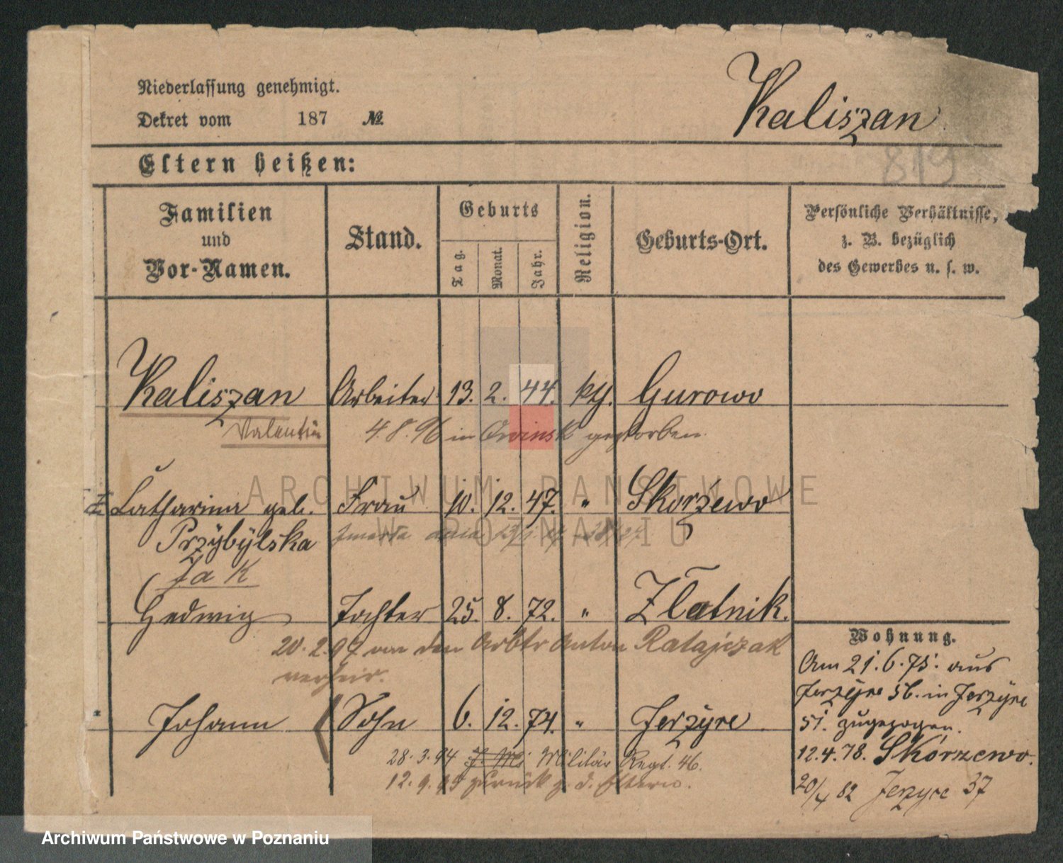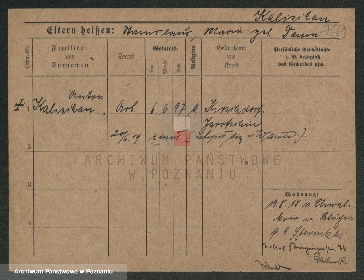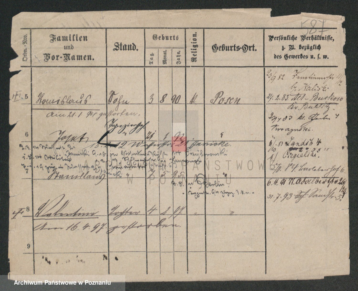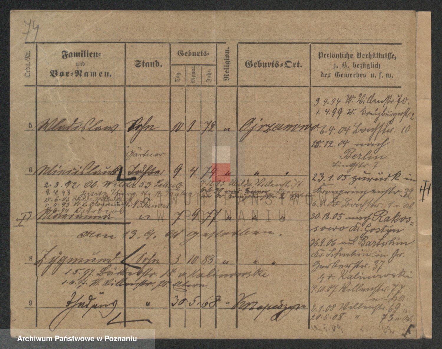 Podgląd karty osobowej dostępny jest po kliknięciu na nazwisko lub ikonkę karty. Można dokonywać powiększenia (ikony na górze) lub przechodzić między kolejnymi skanami (strzałki po bokach).