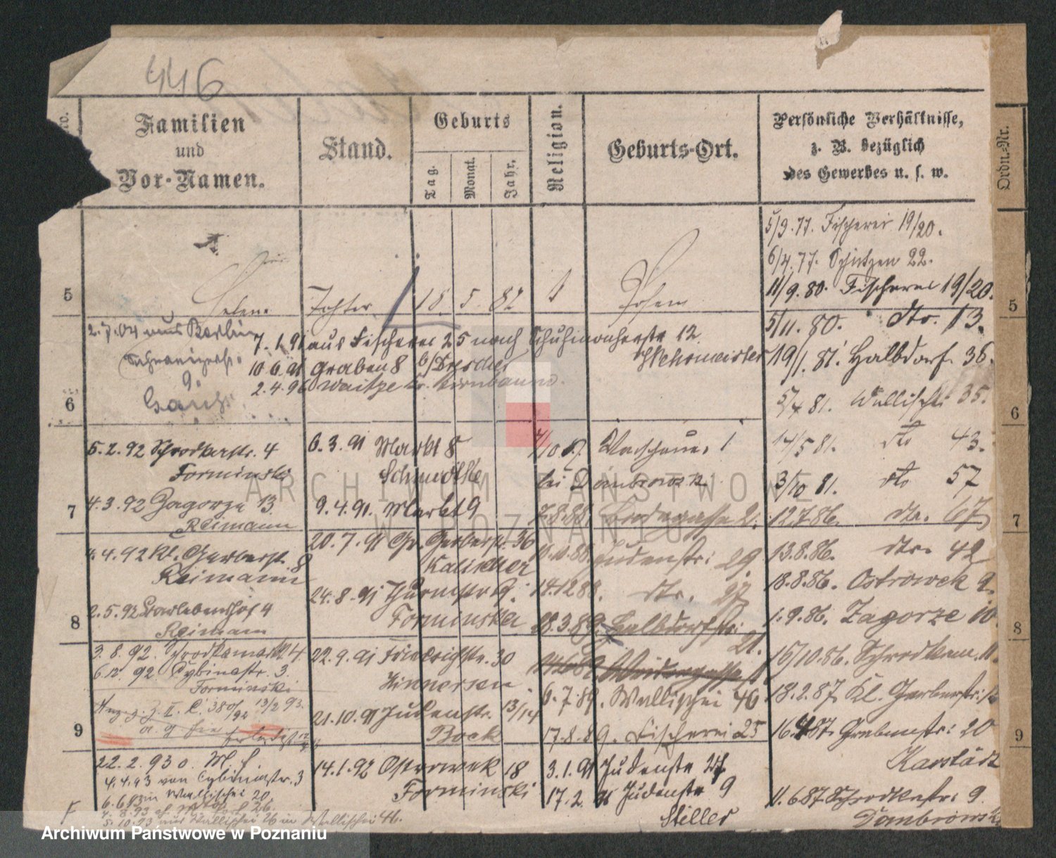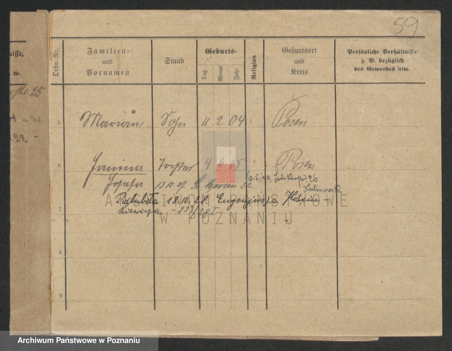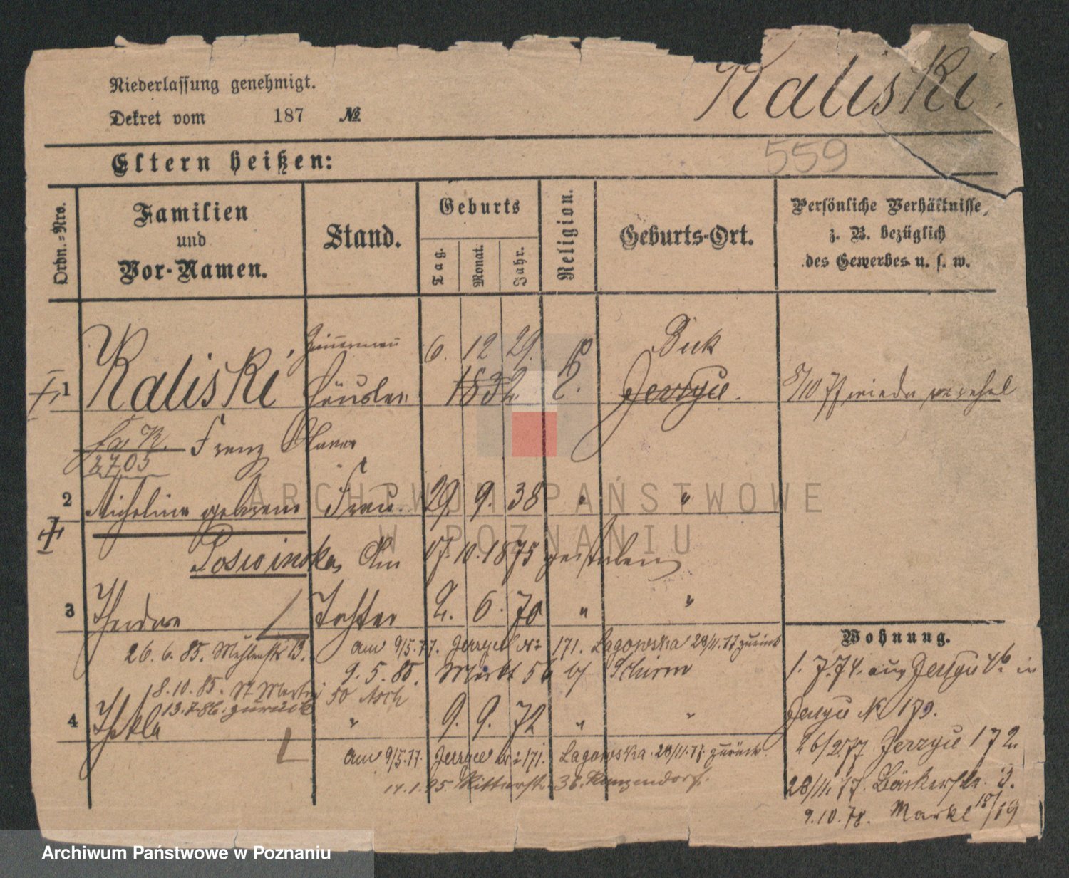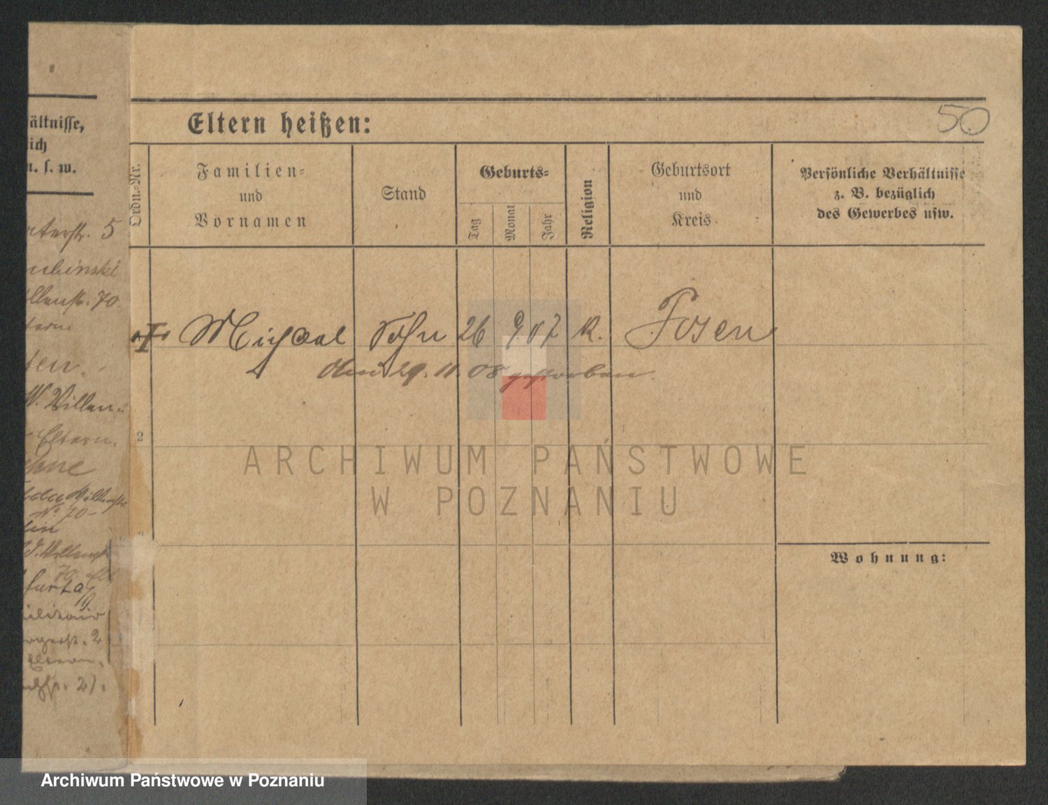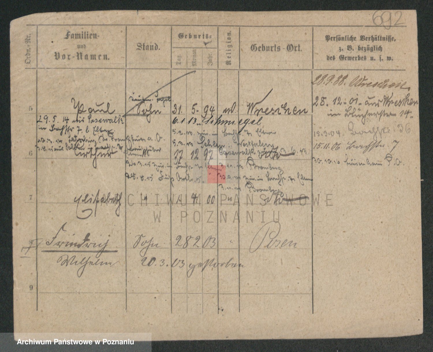 Podgląd karty osobowej dostępny jest po kliknięciu na nazwisko lub ikonkę karty. Można dokonywać powiększenia (ikony na górze) lub przechodzić między kolejnymi skanami (strzałki po bokach).