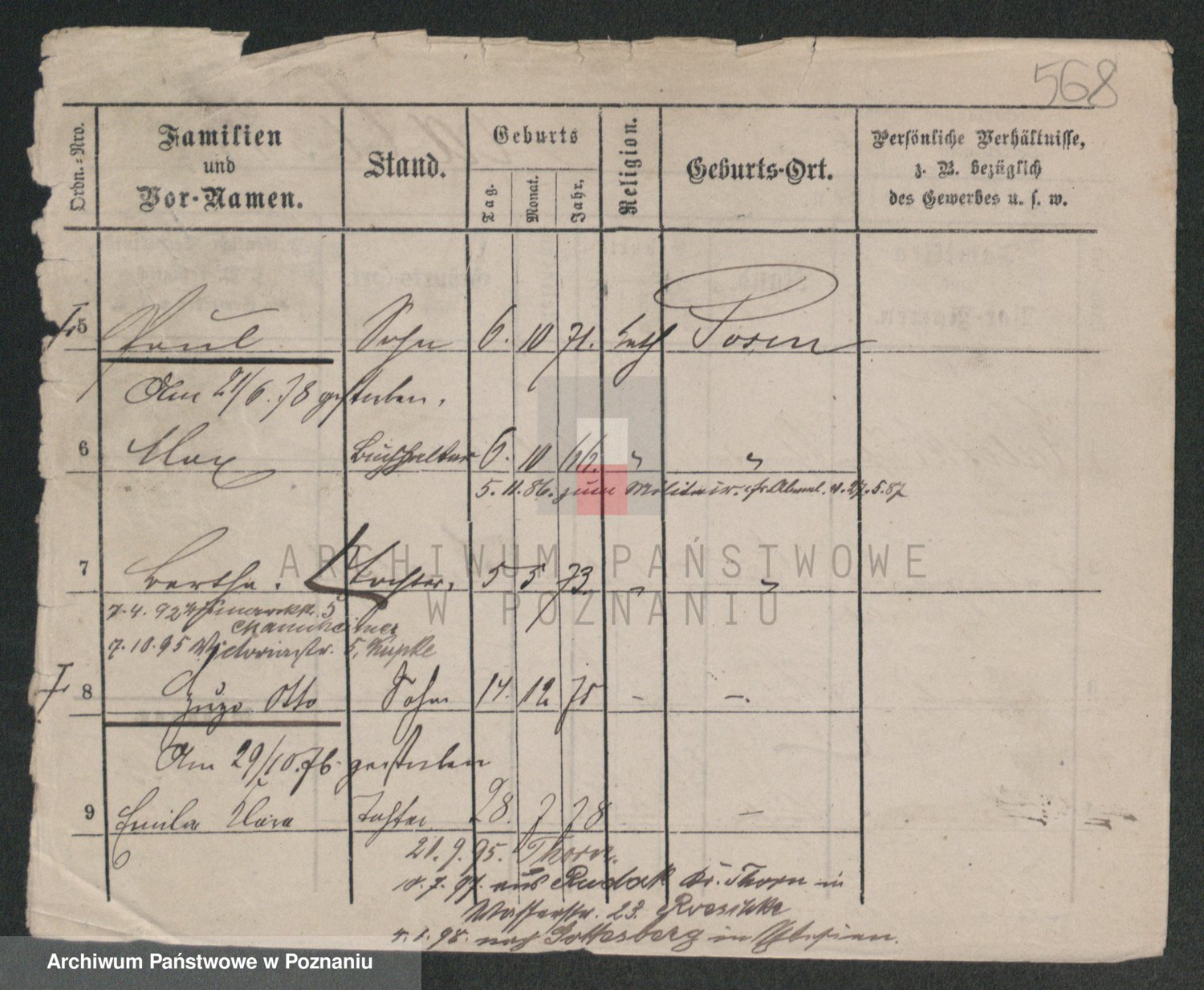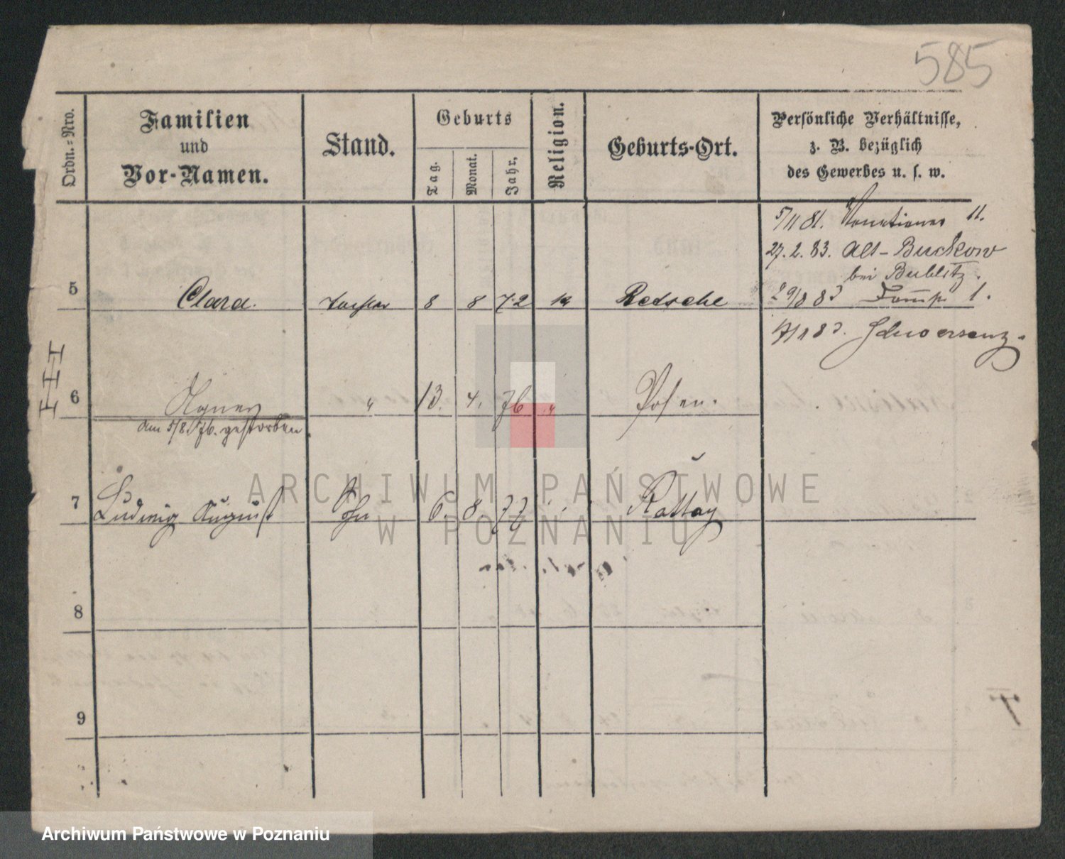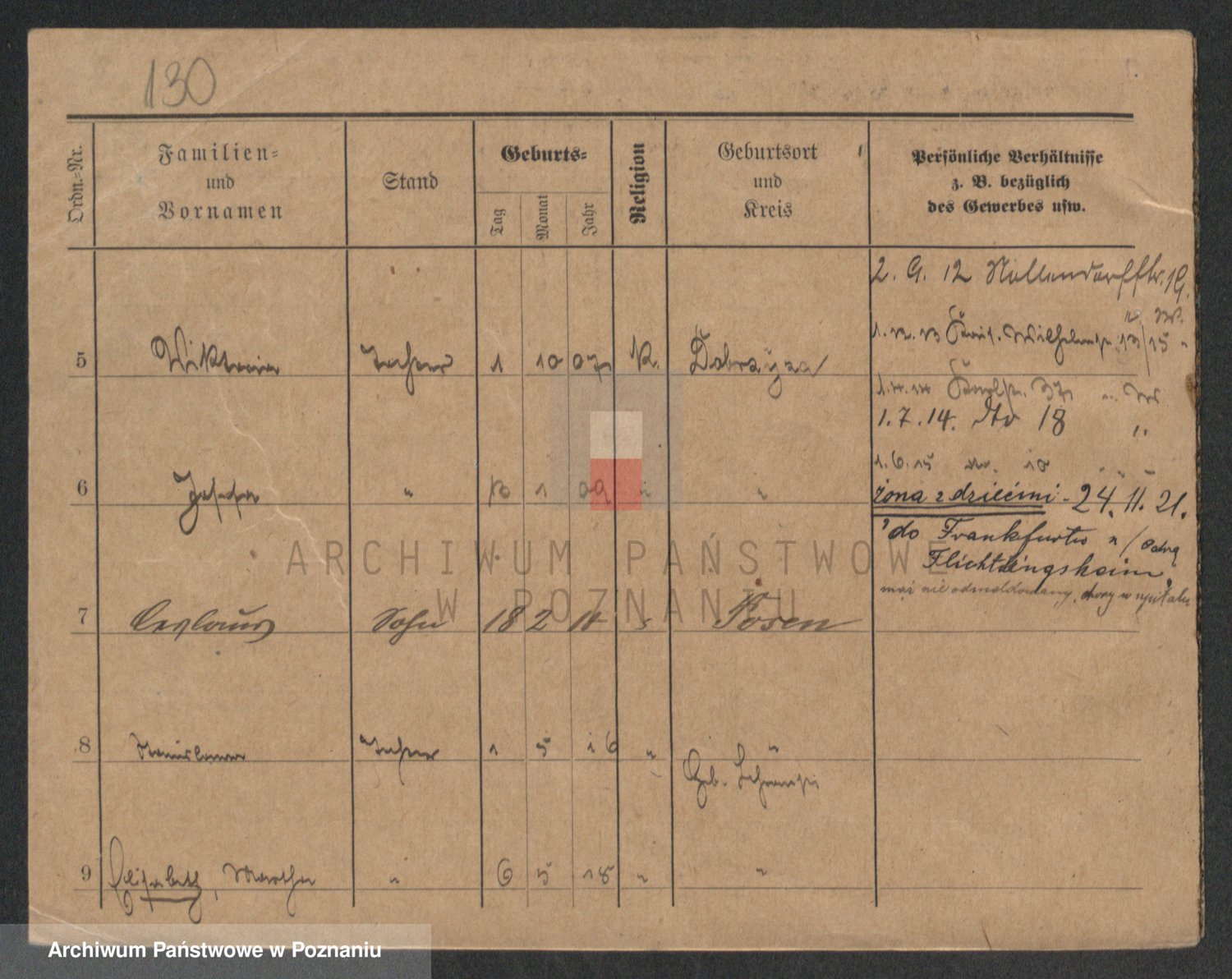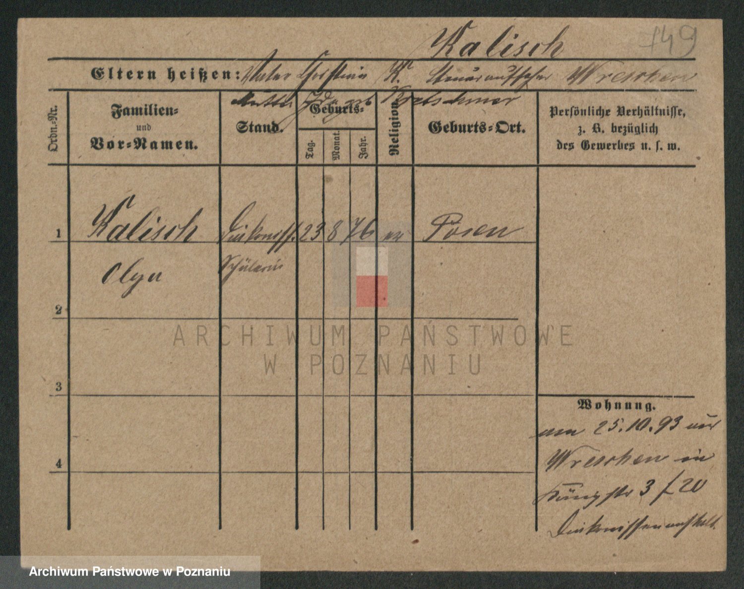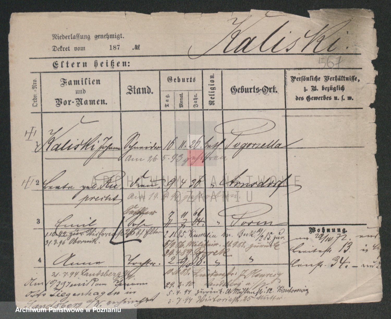 Podgląd karty osobowej dostępny jest po kliknięciu na nazwisko lub ikonkę karty. Można dokonywać powiększenia (ikony na górze) lub przechodzić między kolejnymi skanami (strzałki po bokach).