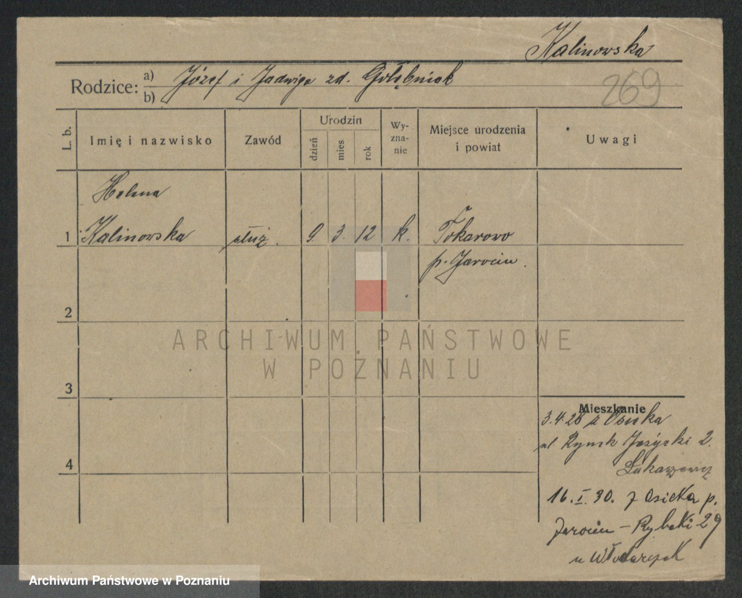 Kalinowski z d. Tembowska, Józefa
