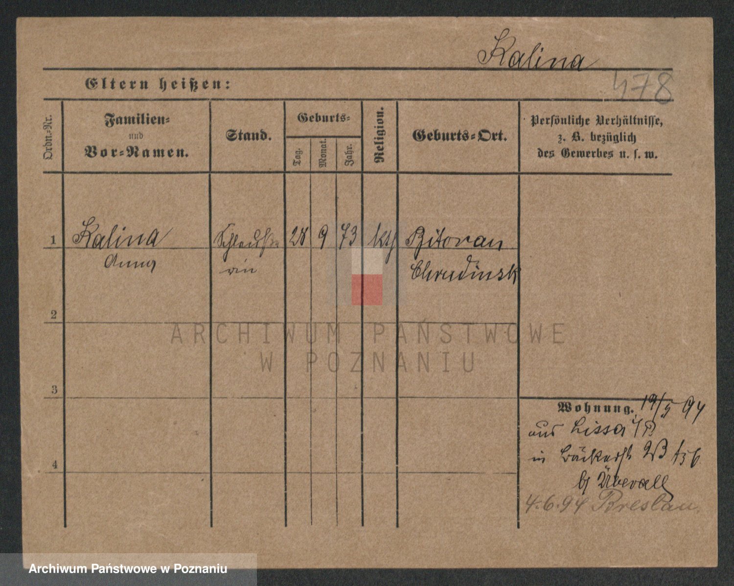 Kaliszan z d. Szudarska, Katharina