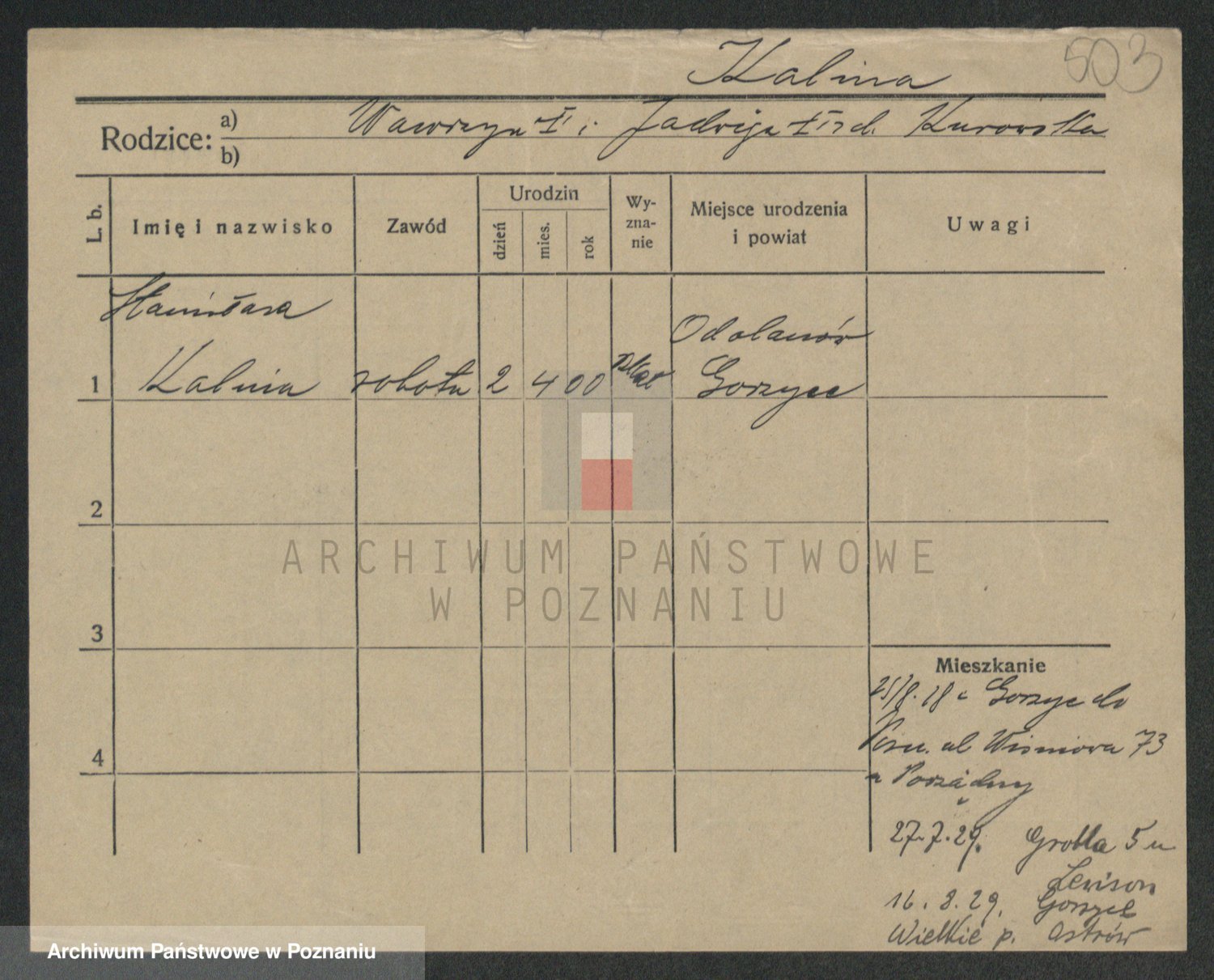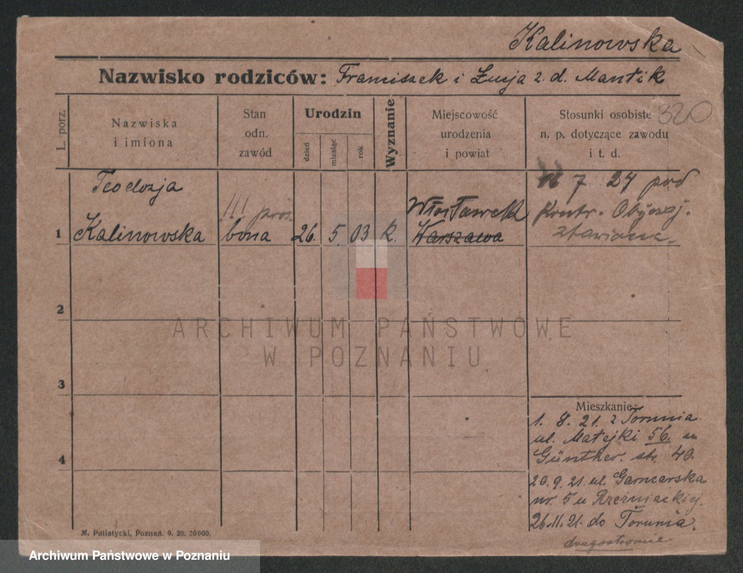 Kalicinski z d. Buratowska, Marja
