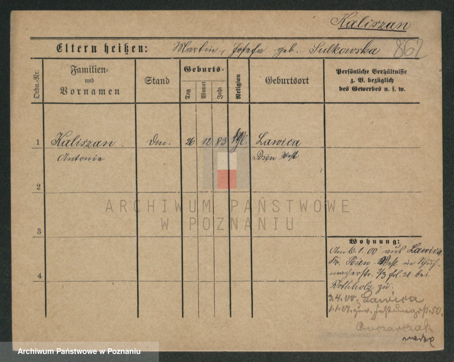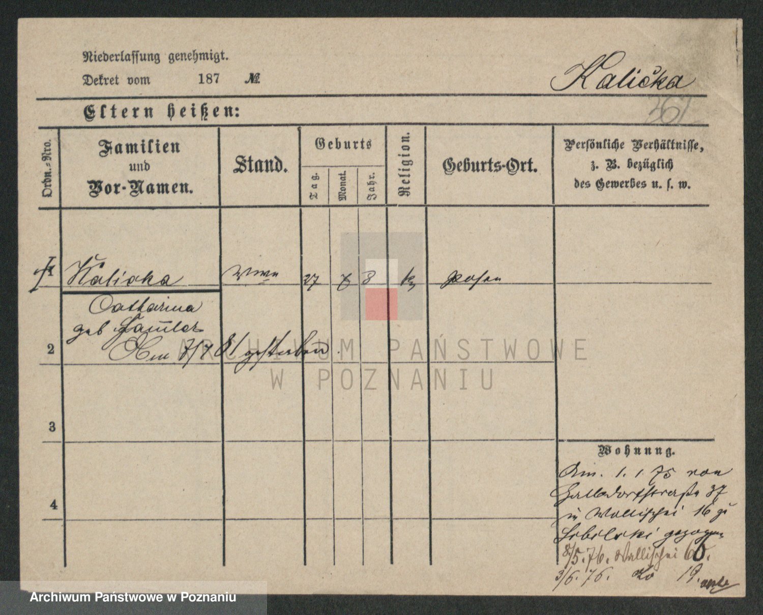 Kaliszan z d. Przybylska, Catharina