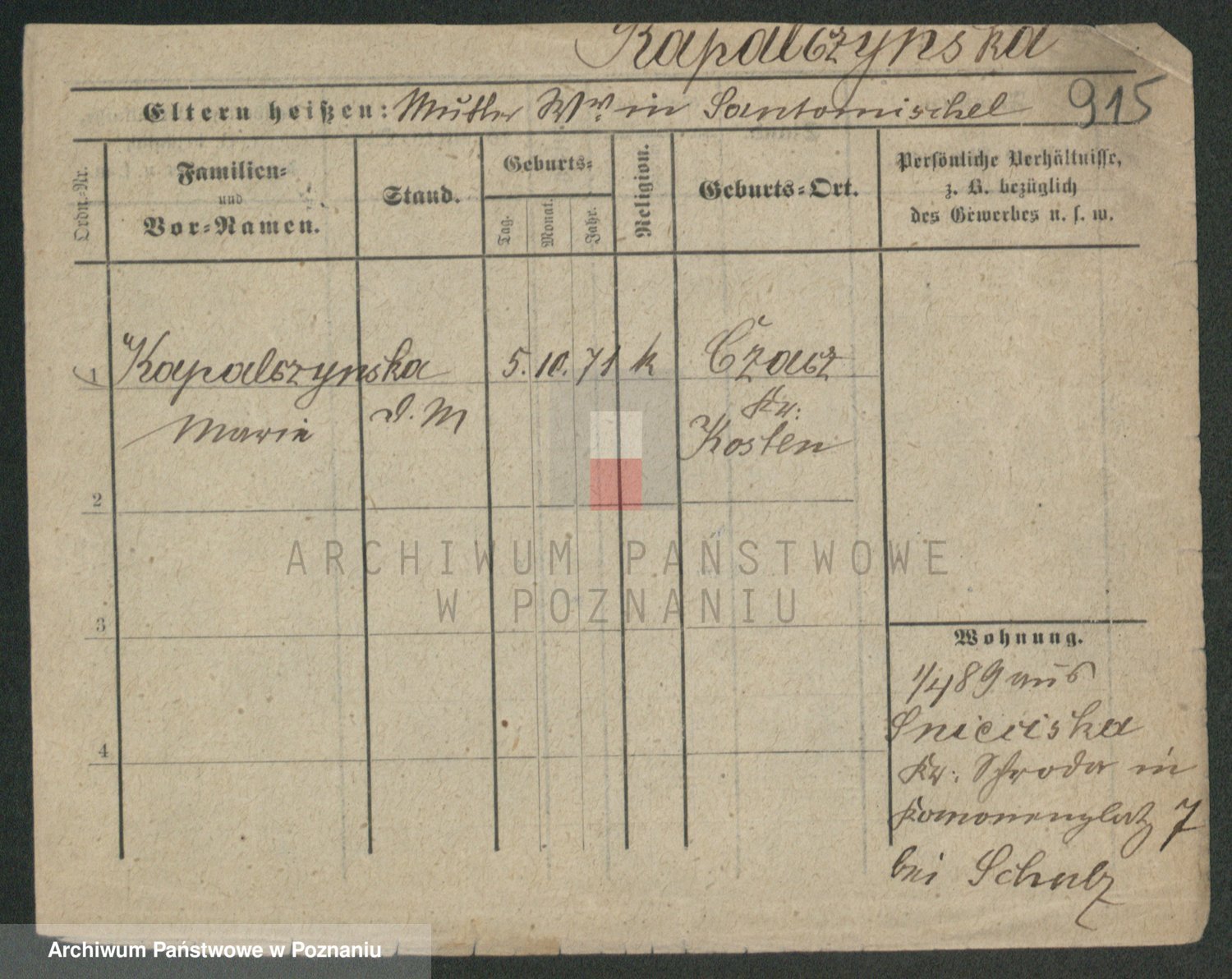 Kapalczynski z d. Sokolnicka von, Hedwig